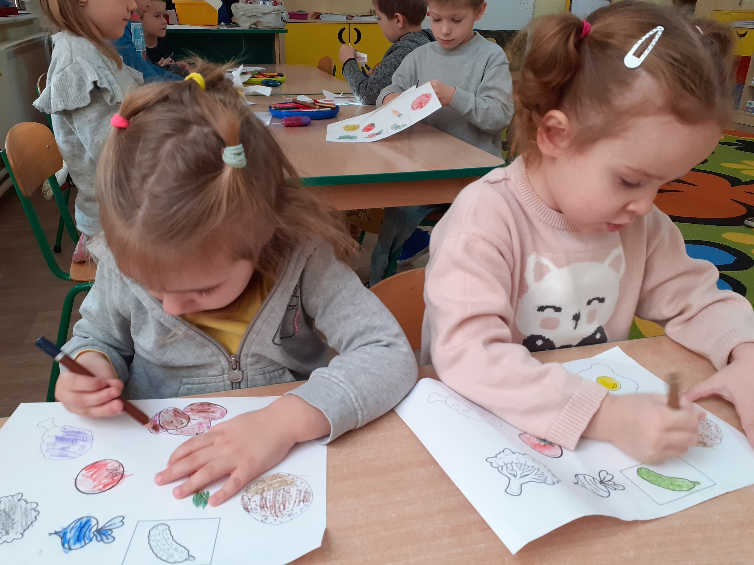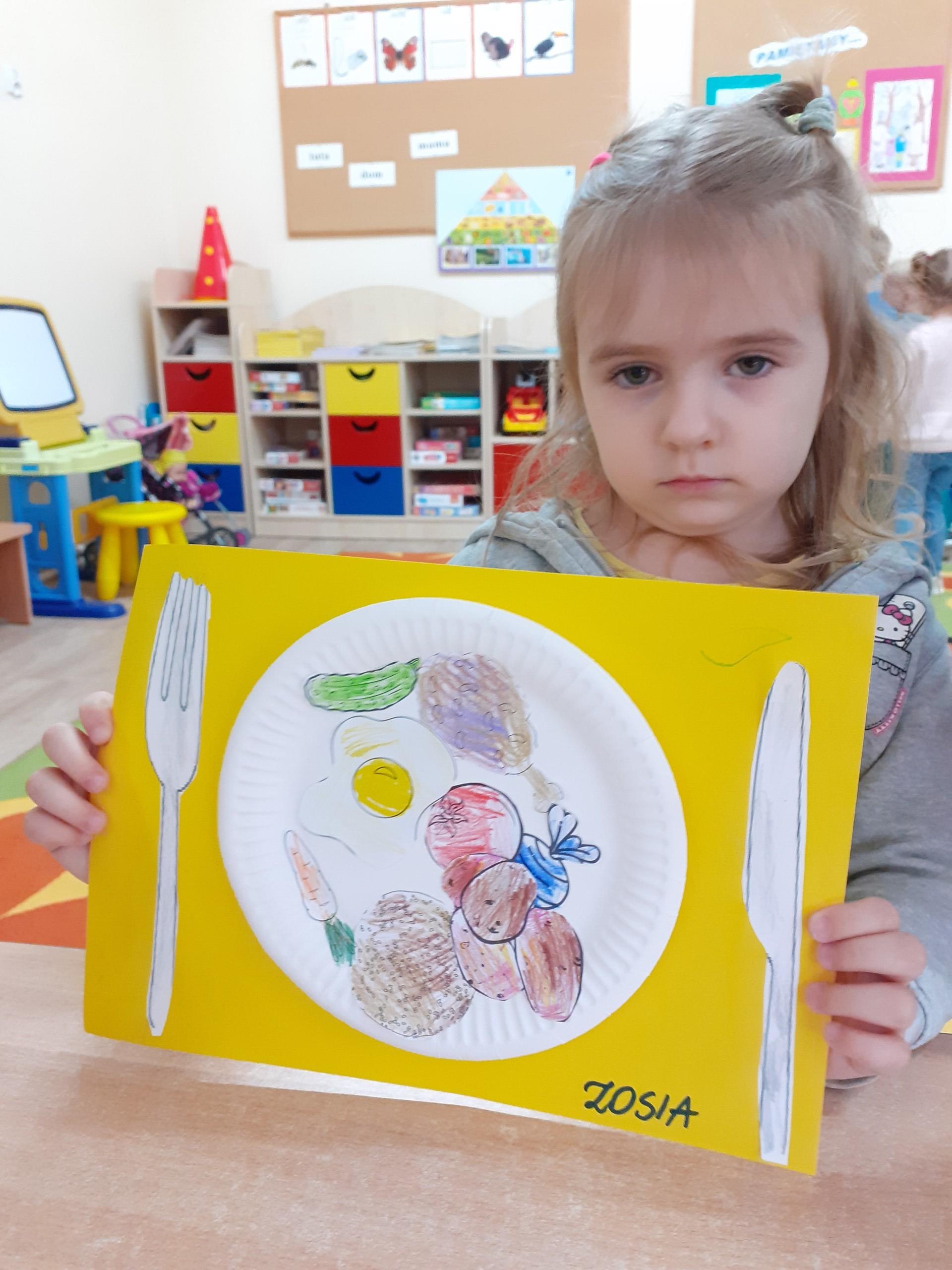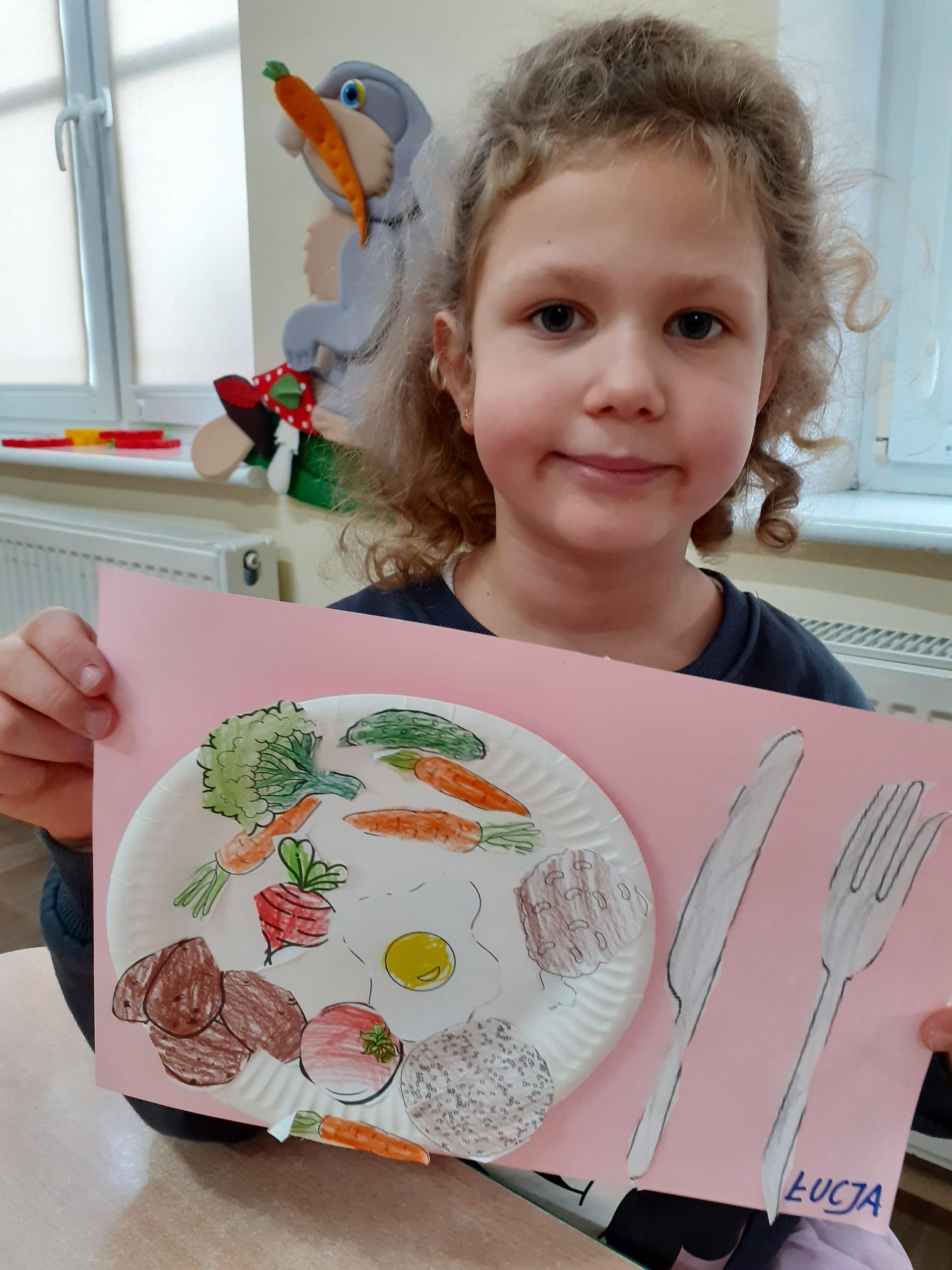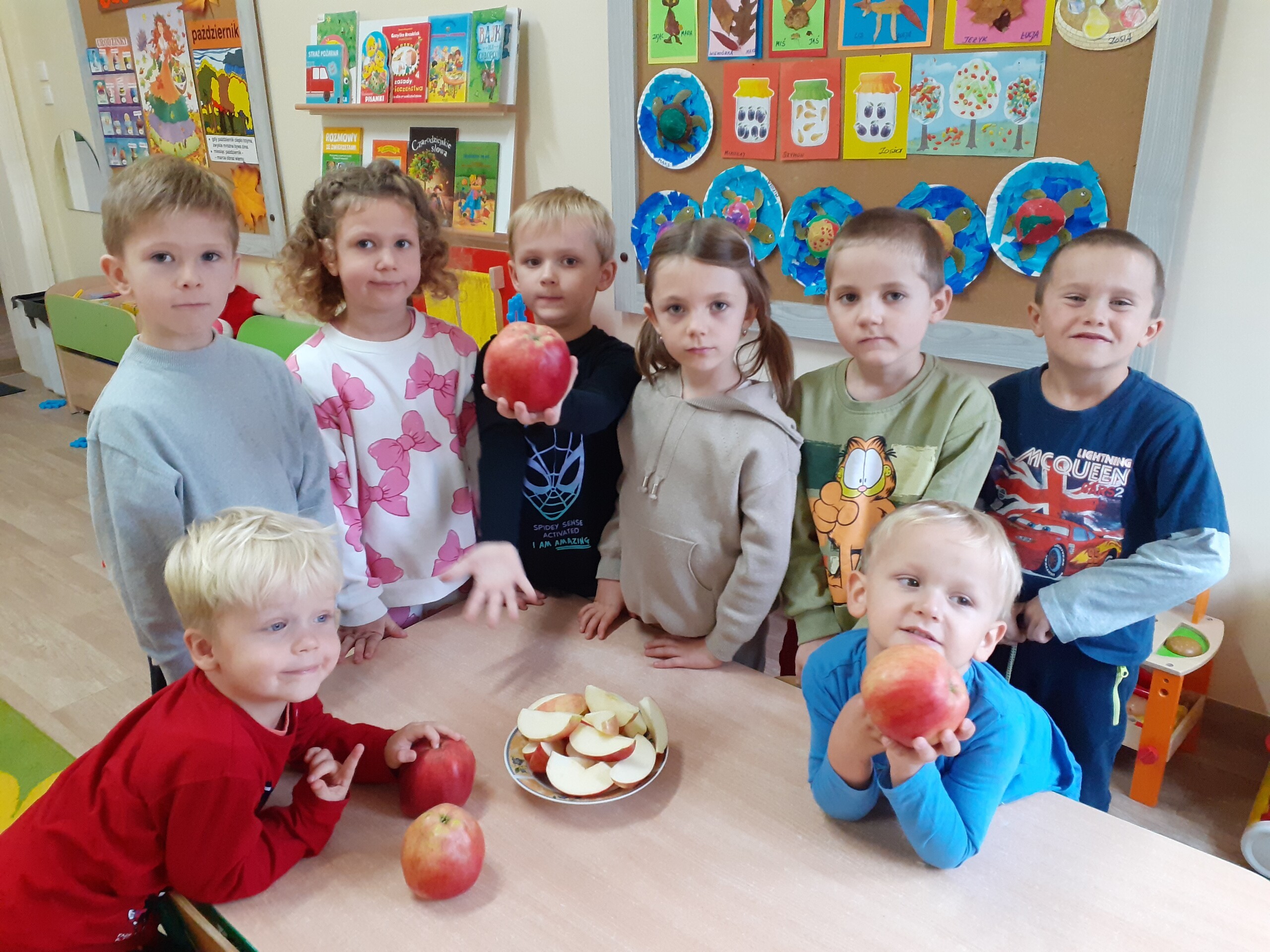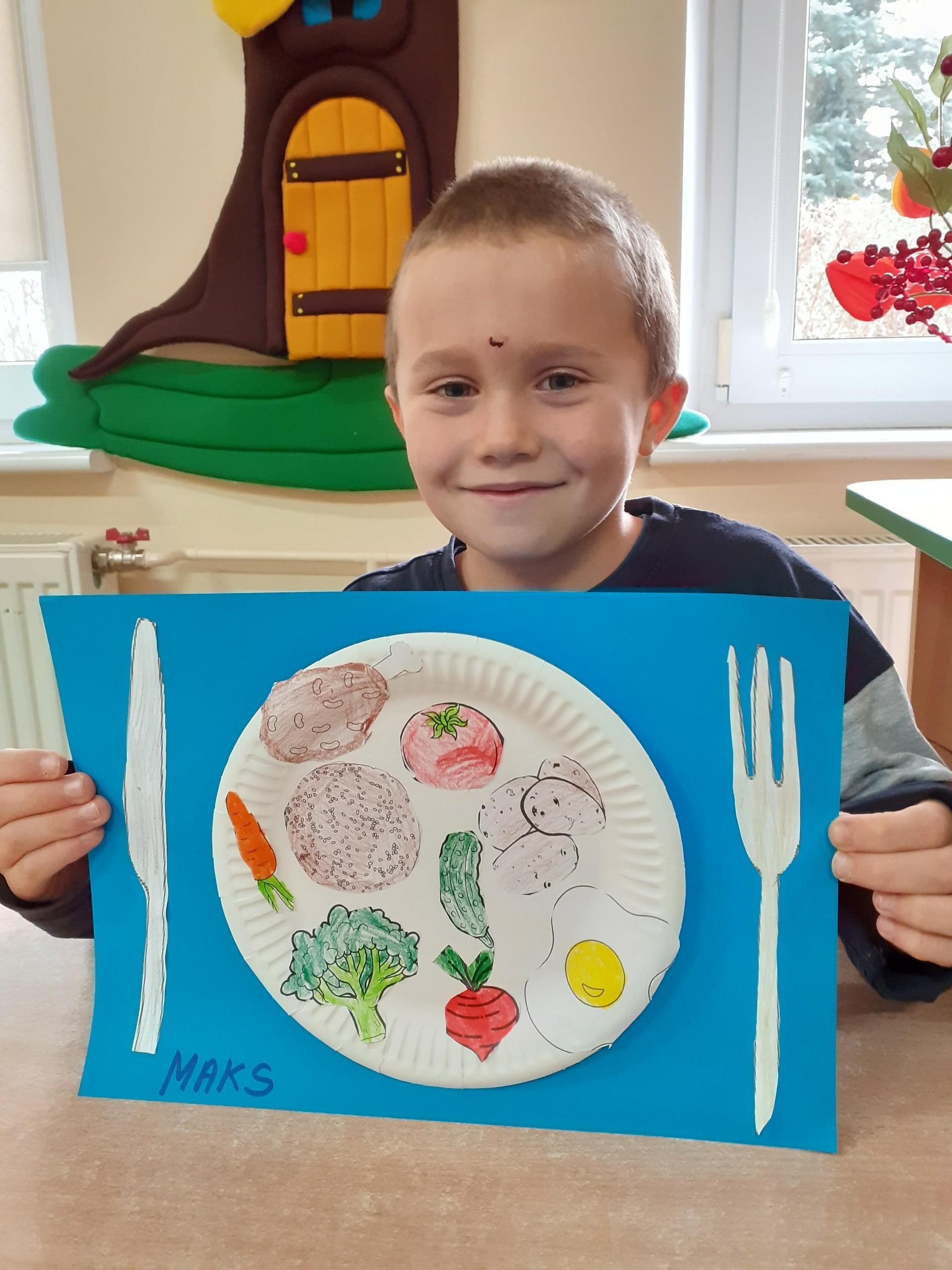 W związku z omawianą tematyką ,,Zdrowie naszym skarbem" powstały prace plastyczne pod hasłem ,,Zdrowie na talerzu" oraz ponownie przyrządziliśmy sok owocowy z jabłek przyniesionych przez Maksa, Kacpra i Szymona. Dziękujemy, były pyszne!