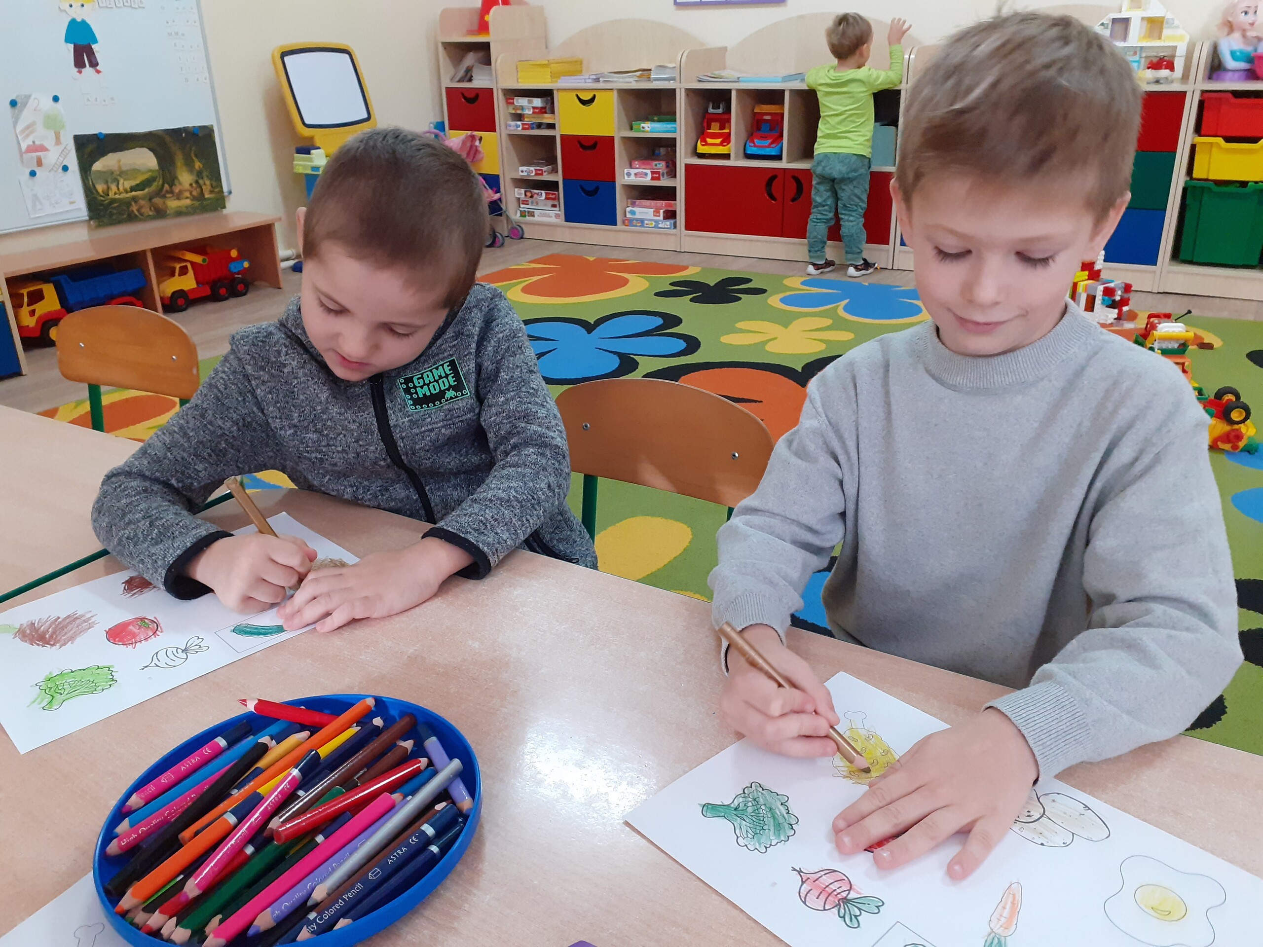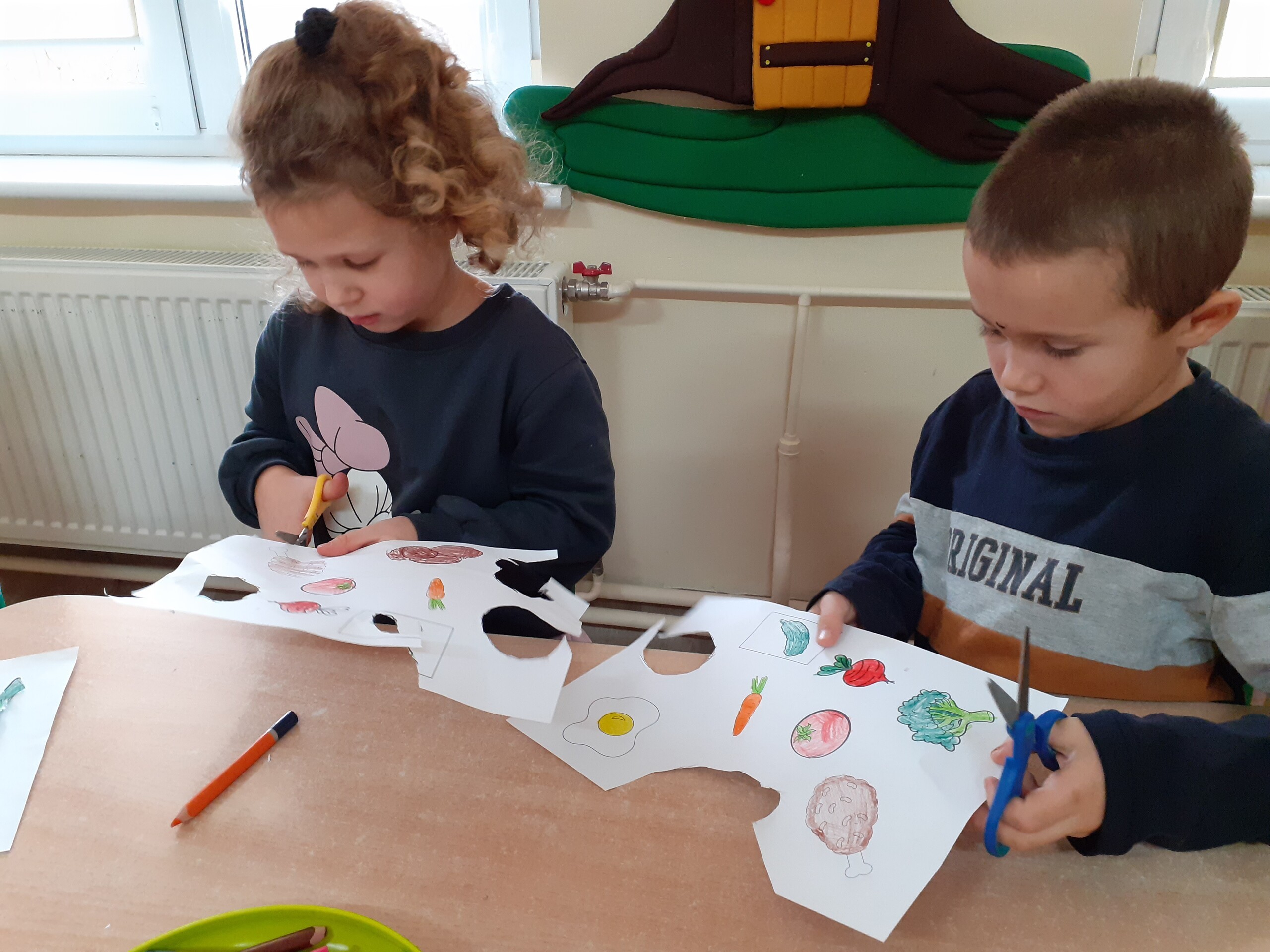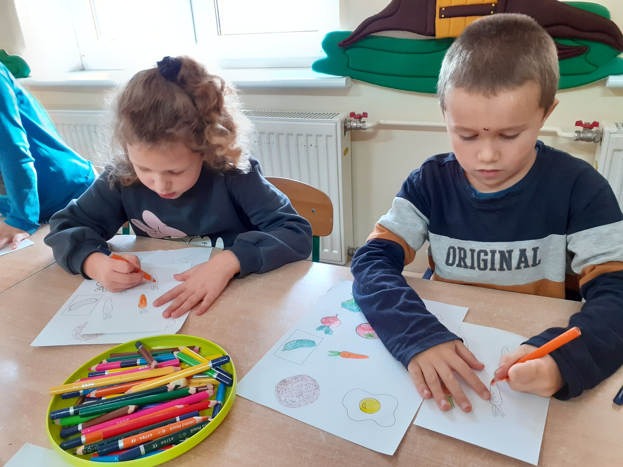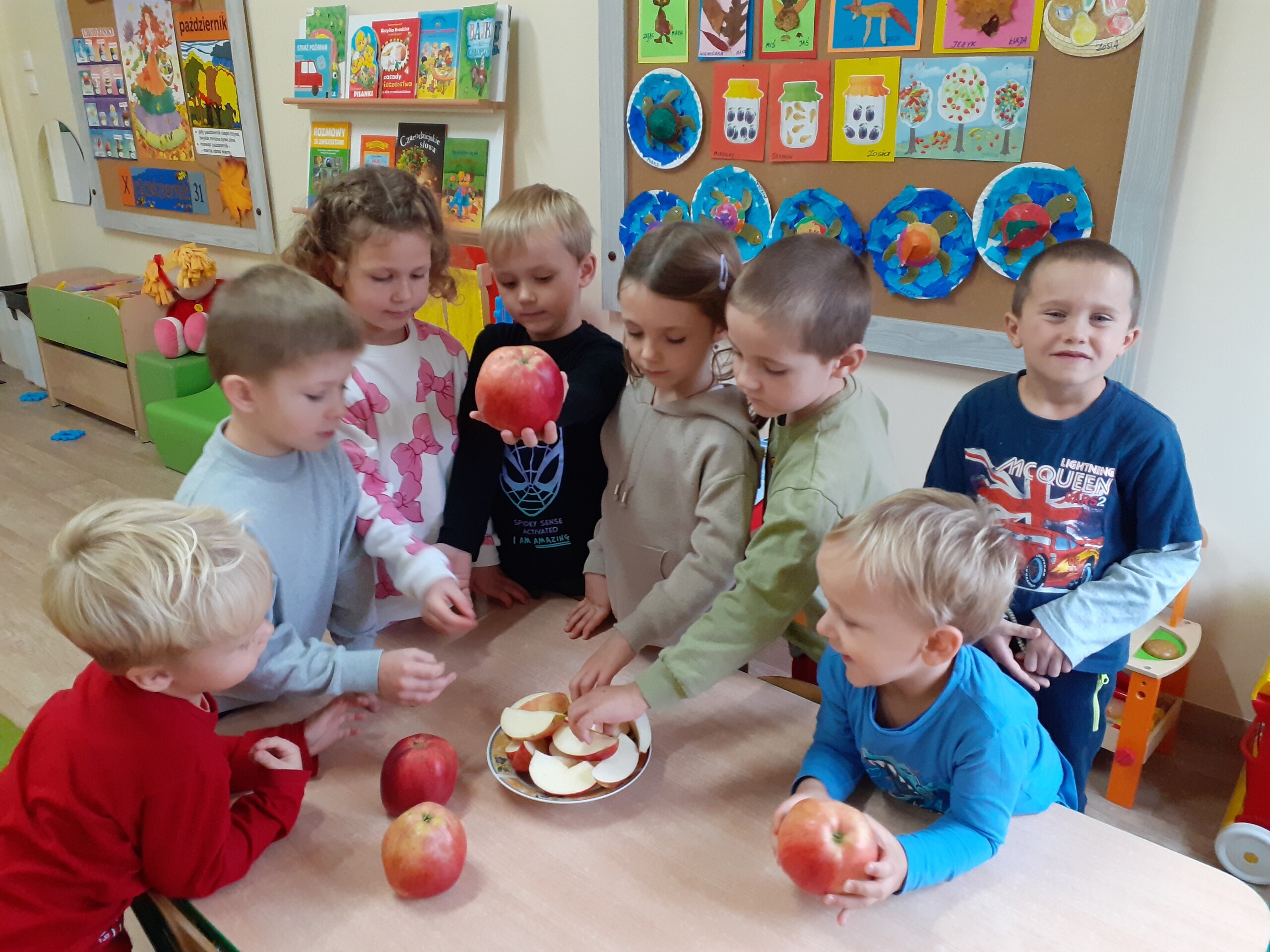 W związku z omawianą tematyką ,,Zdrowie naszym skarbem" powstały prace plastyczne pod hasłem ,,Zdrowie na talerzu" oraz ponownie przyrządziliśmy sok owocowy z jabłek przyniesionych przez Maksa, Kacpra i Szymona. Dziękujemy, były pyszne!