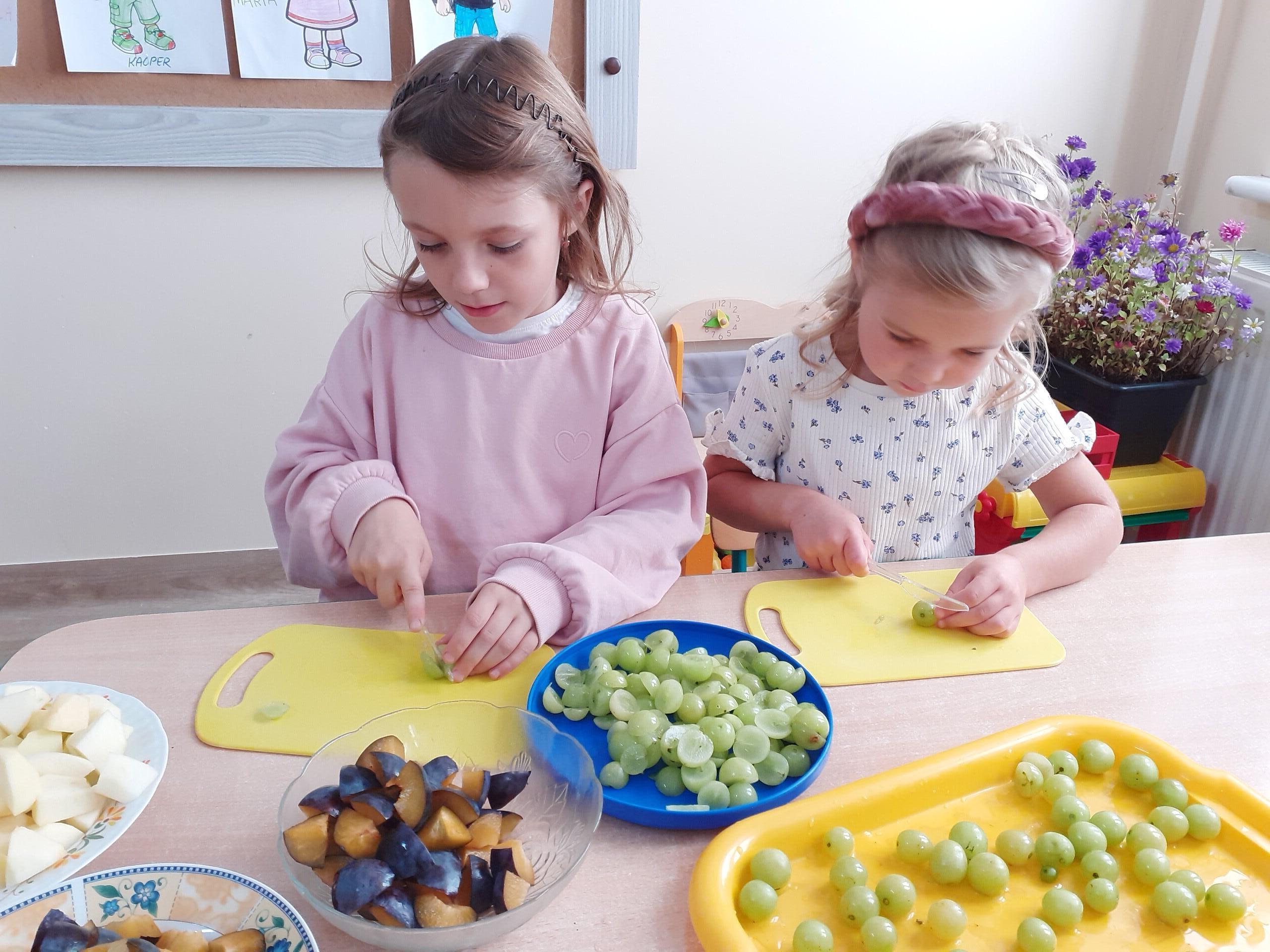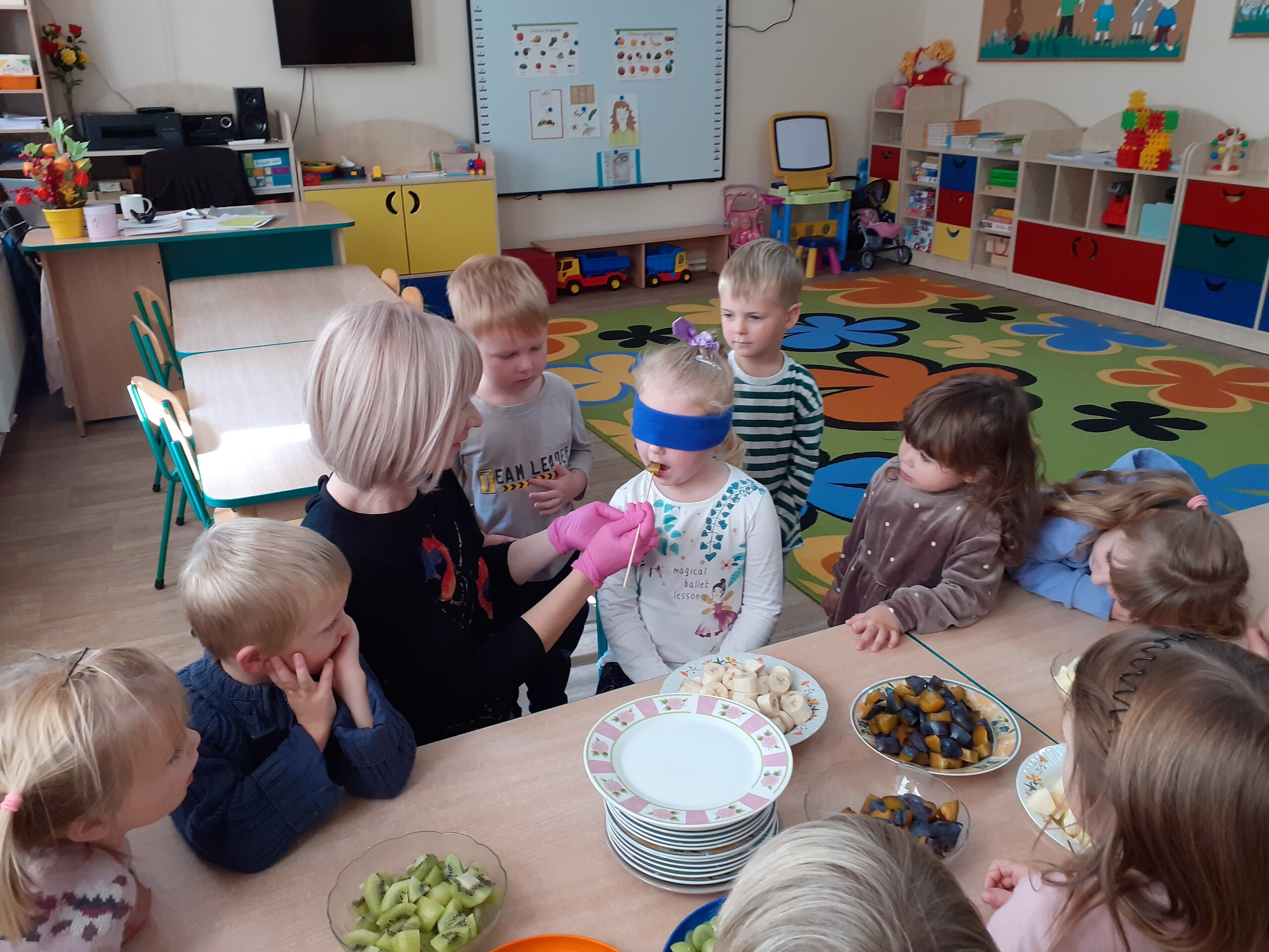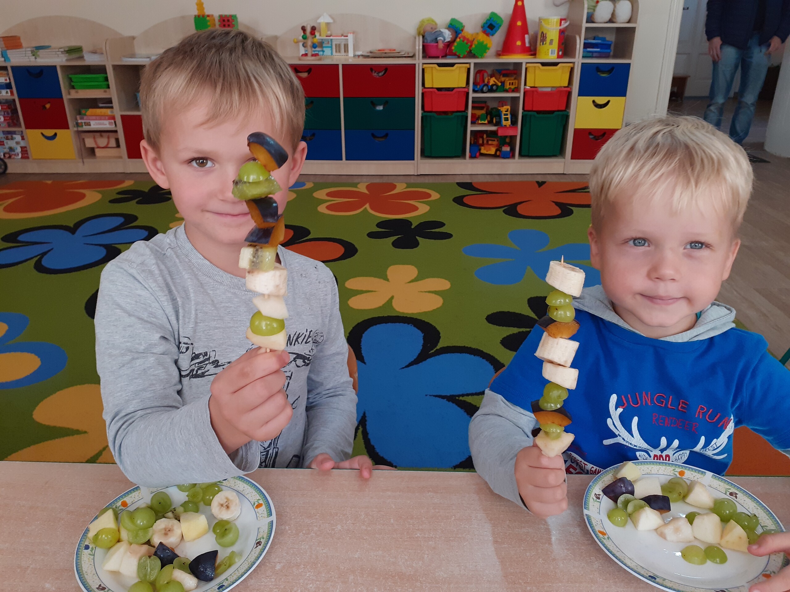 Korzystając z darów jesieni przedszkolaki przygotowały owocowe szaszłyki, które nie tylko pięknie wyglądały, ale i pysznie smakowały. Była to dla nich okazja do nauki zdrowych nawyków żywieniowych, rozwijania samodzielności i motoryki małej.