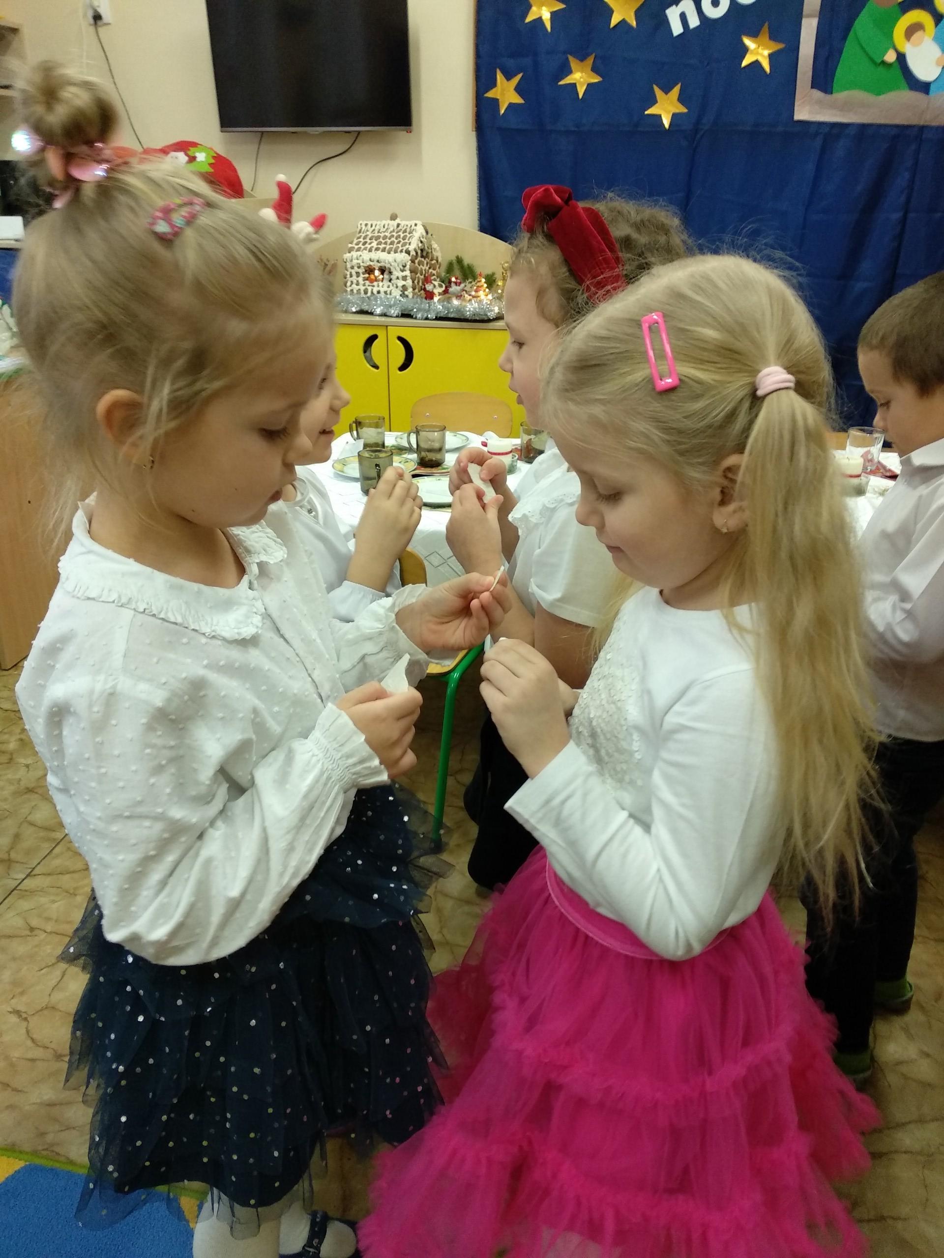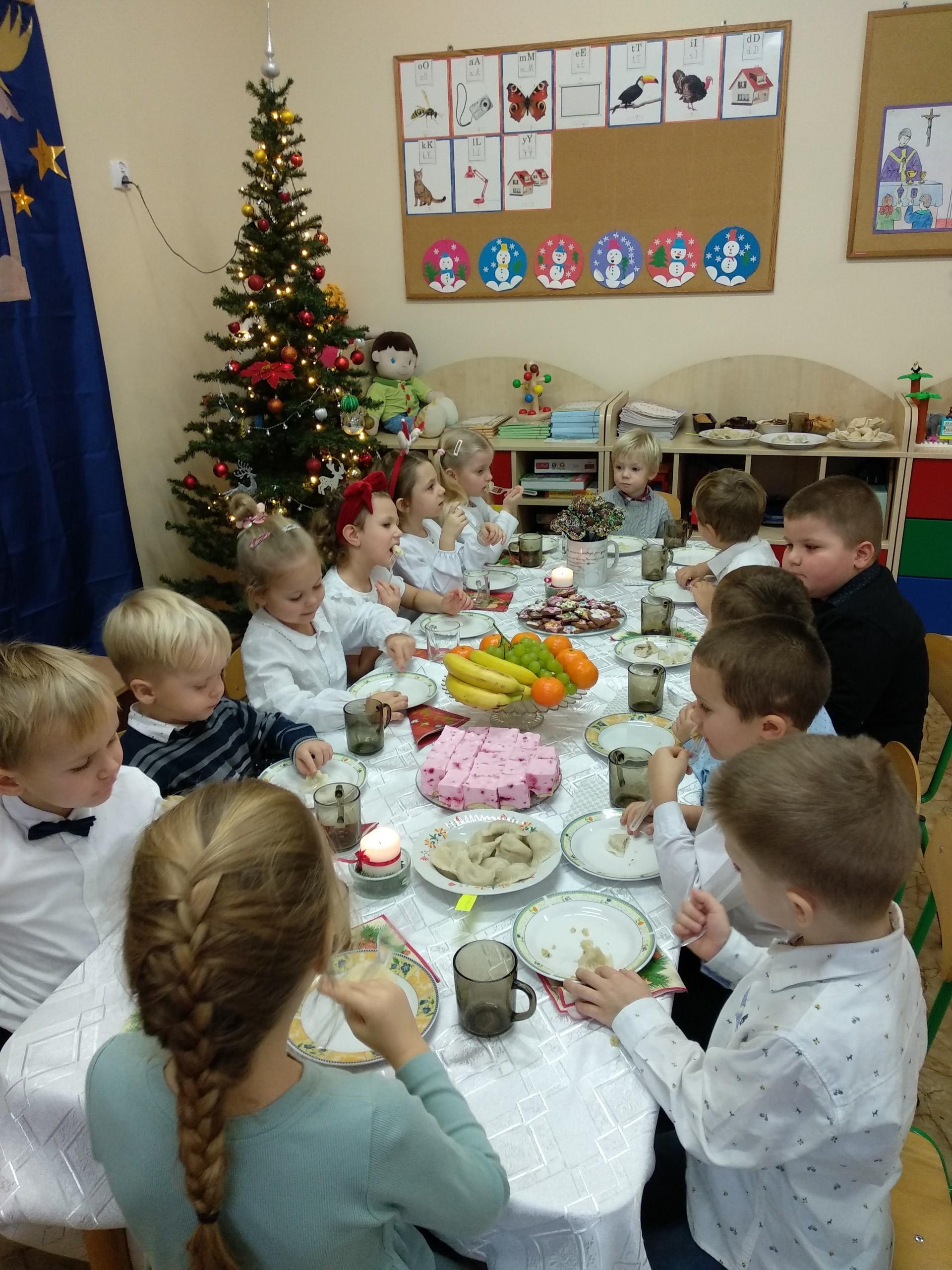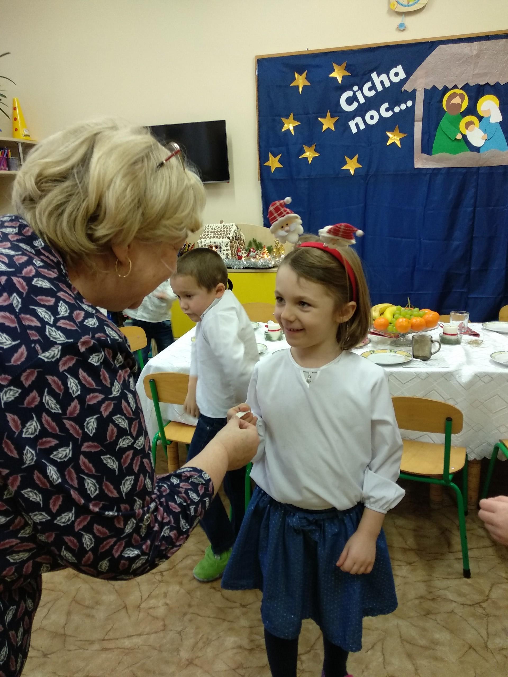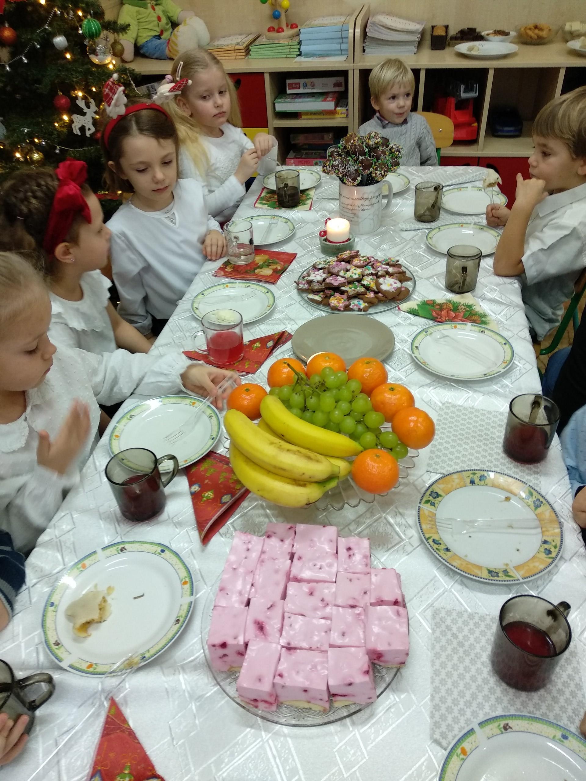 Przygotowania do wigilii z udziałem przedszkolaków. Mamie Kacperka dziękujemy za pyszne słodkości.