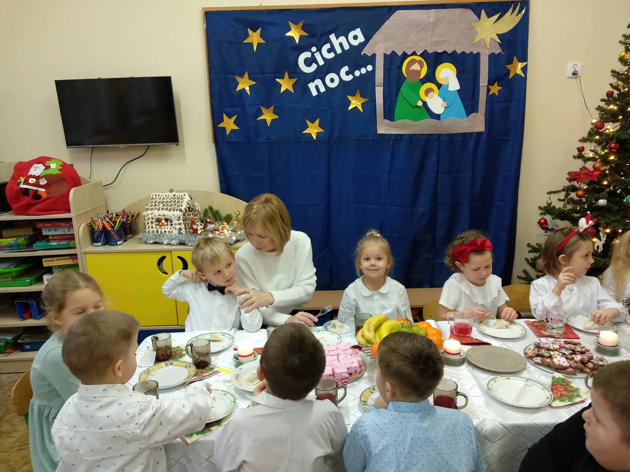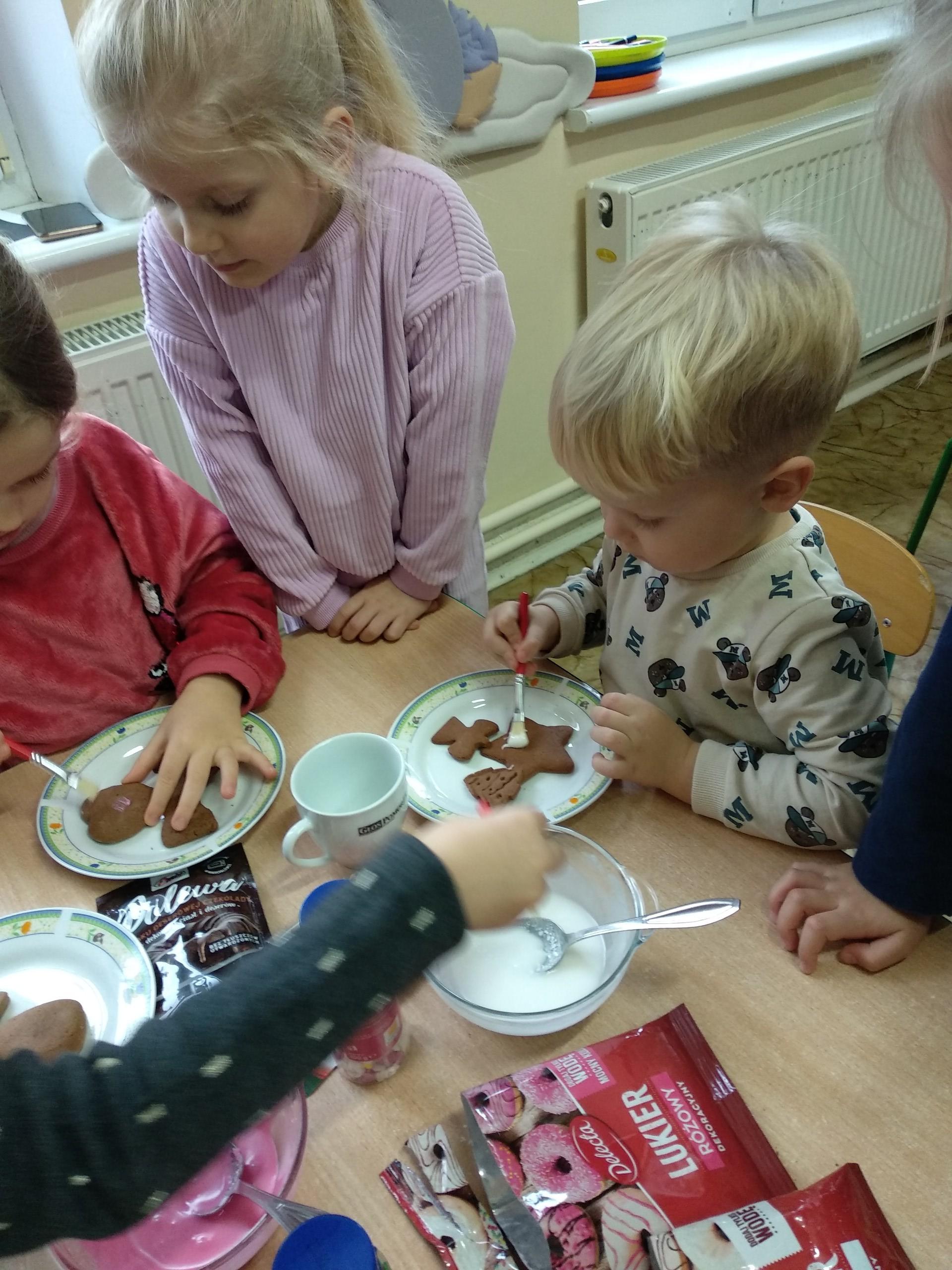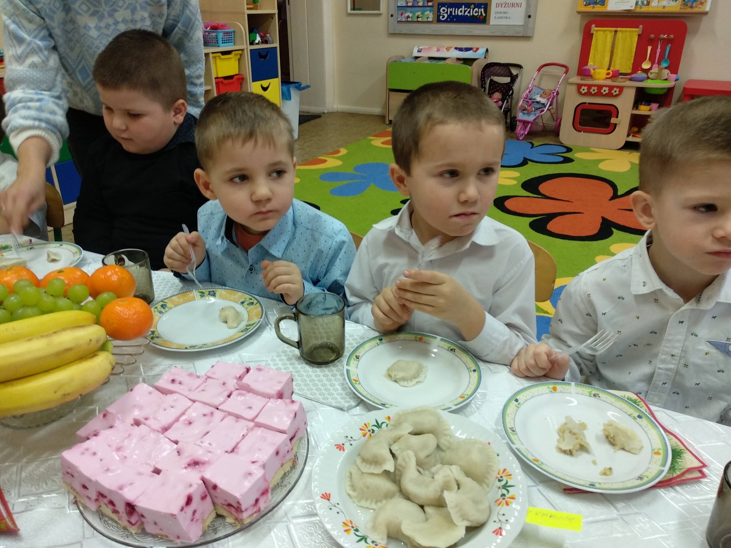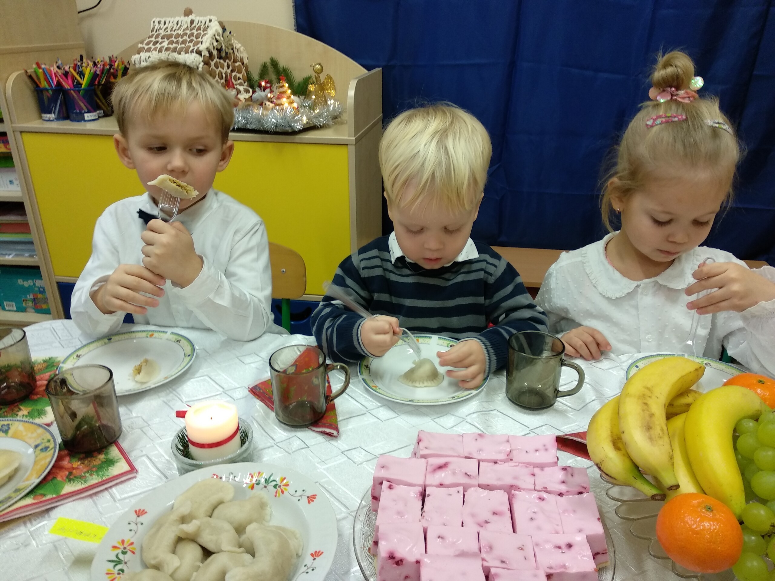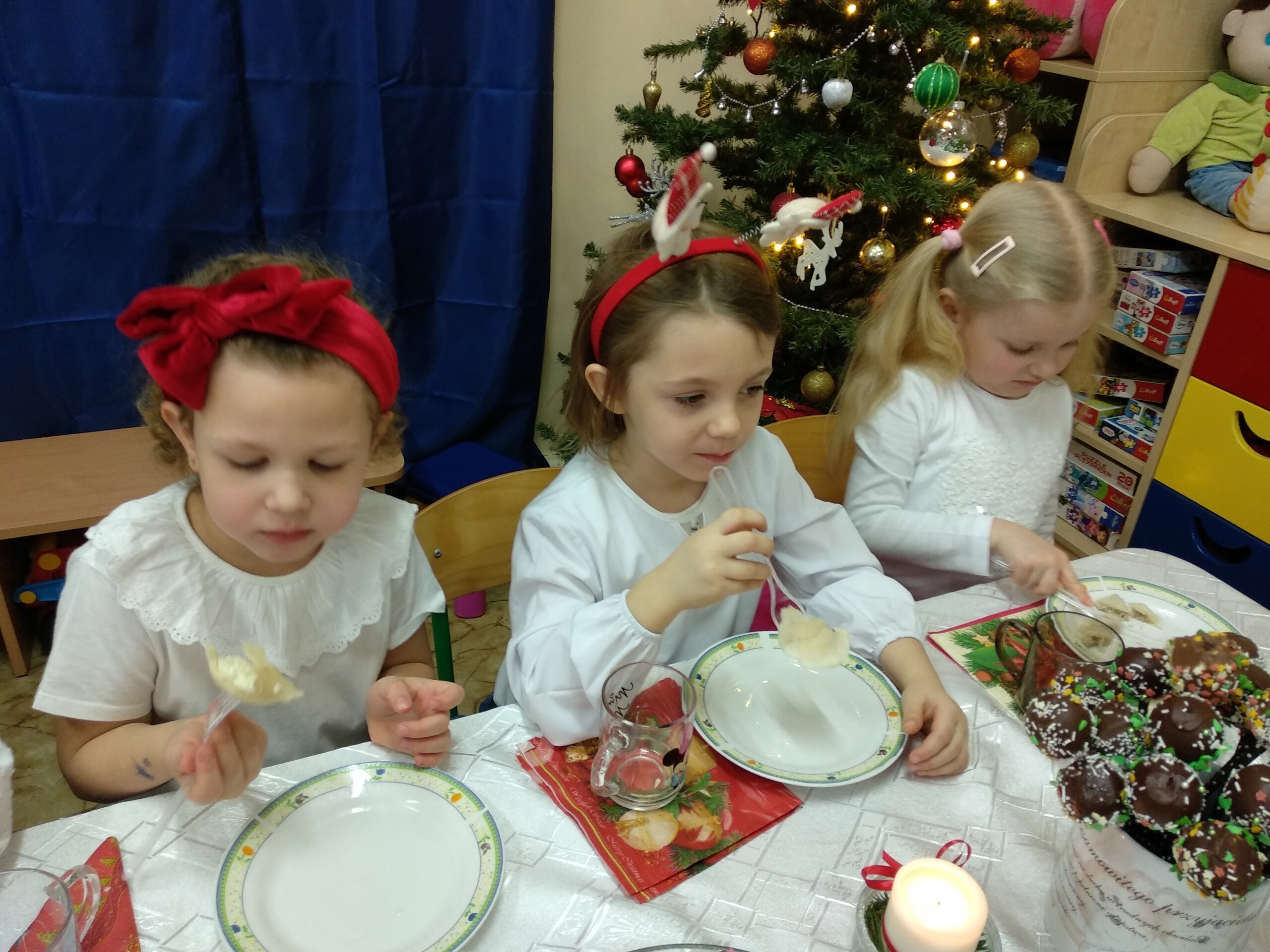 Przygotowania do wigilii z udziałem przedszkolaków. Mamie Kacperka dziękujemy za pyszne słodkości.