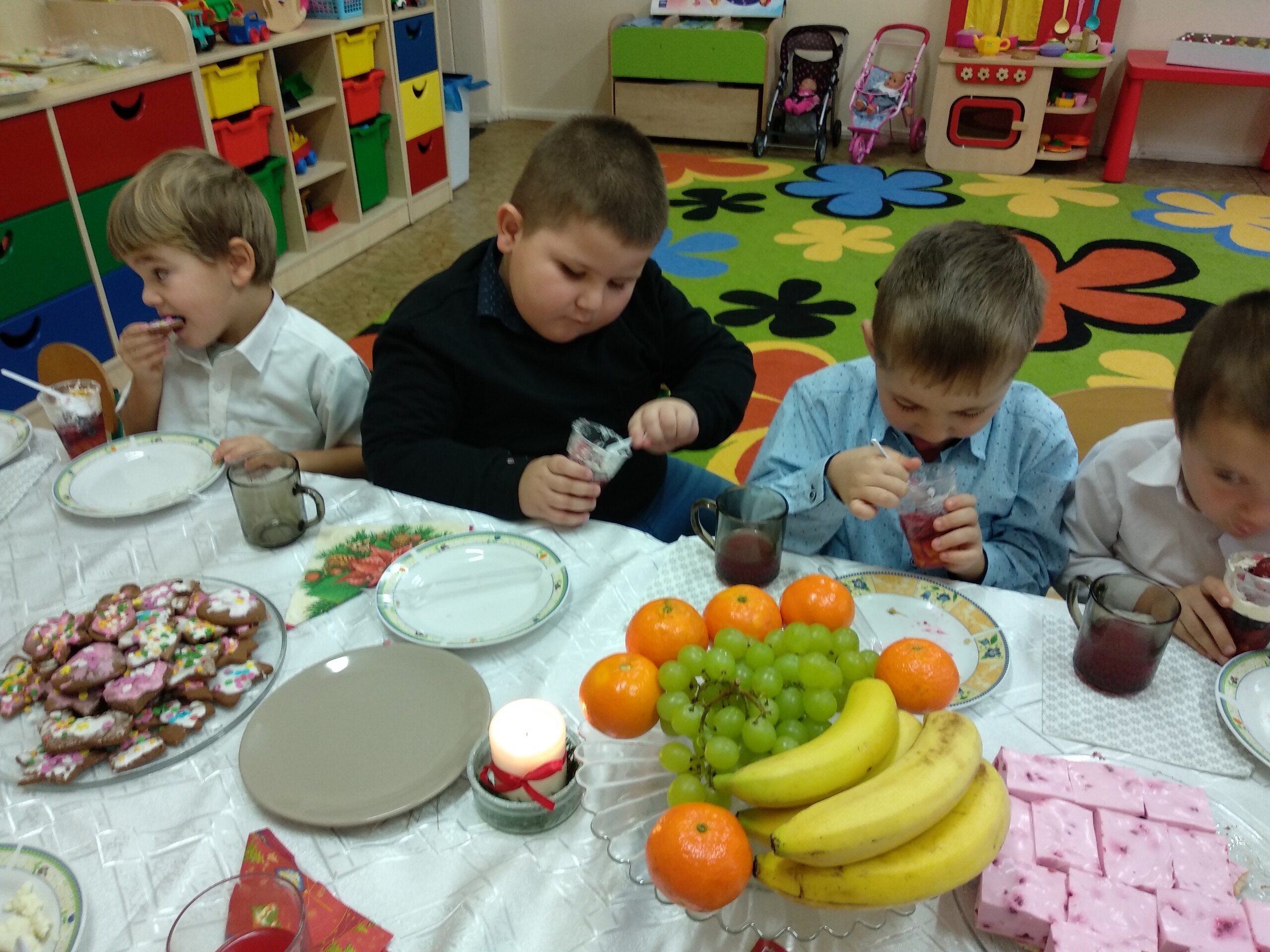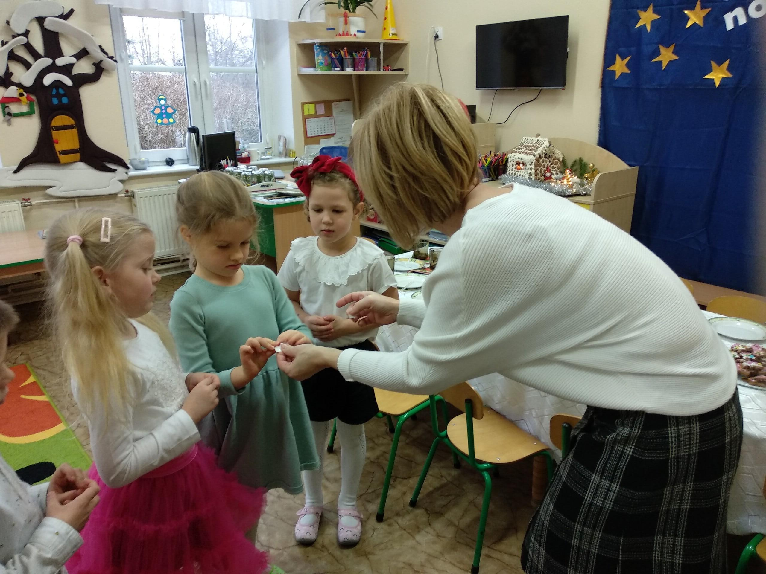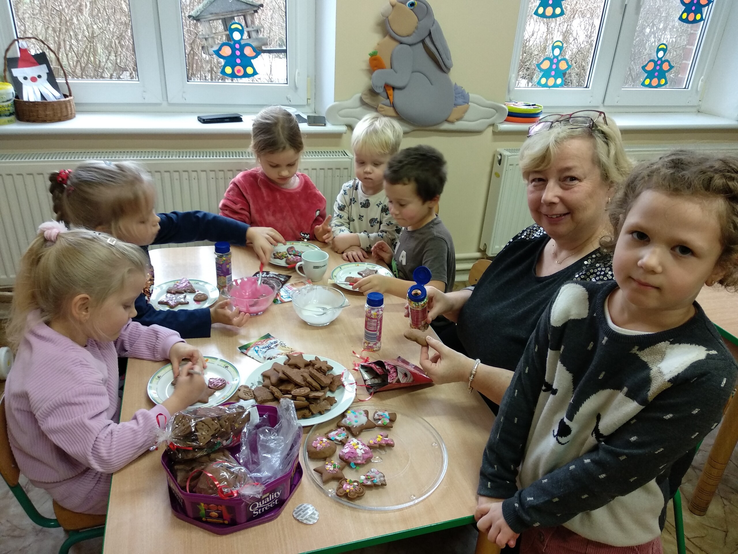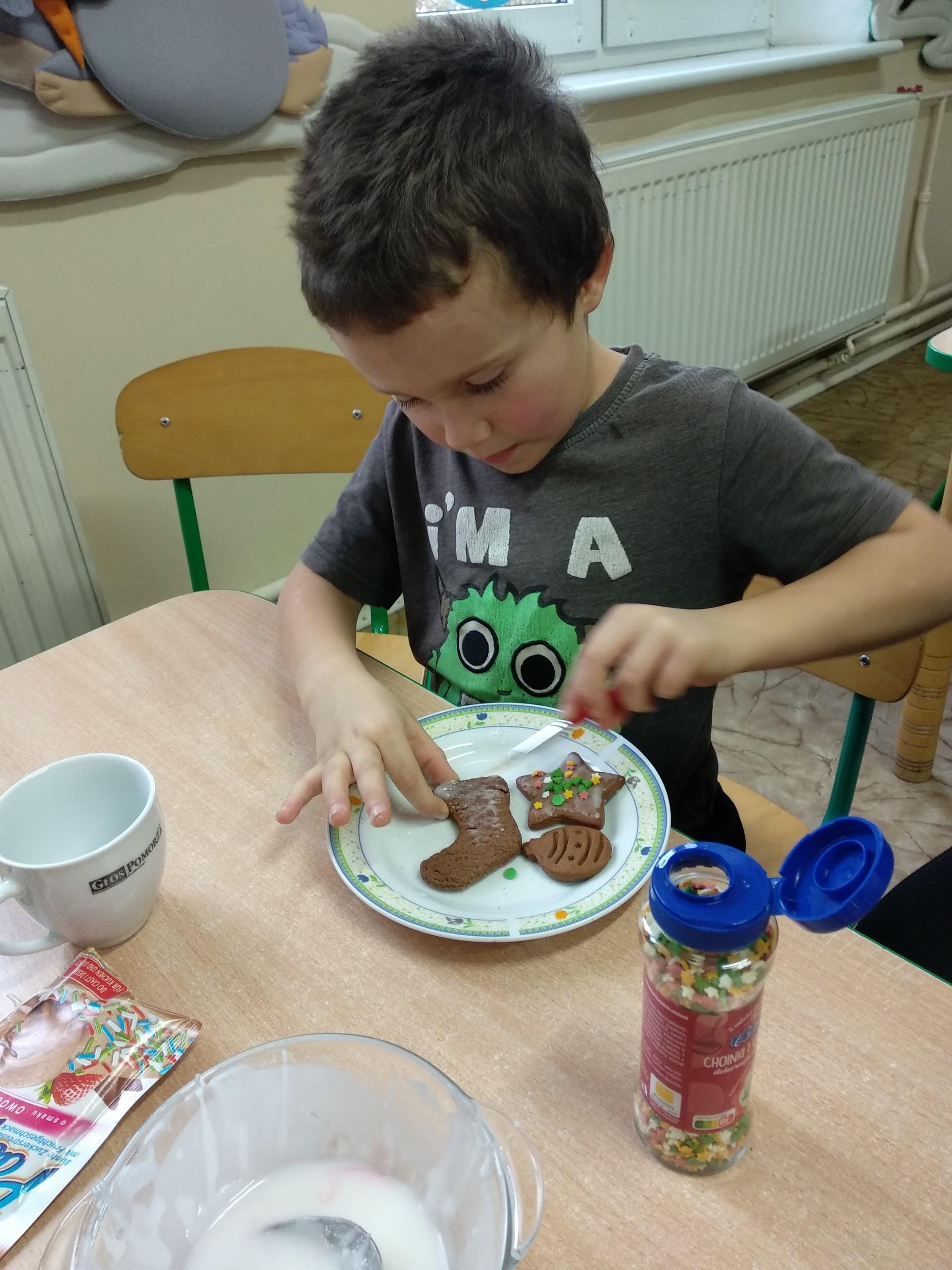 Przygotowania do wigilii z udziałem przedszkolaków. Mamie Kacperka dziękujemy za pyszne słodkości.