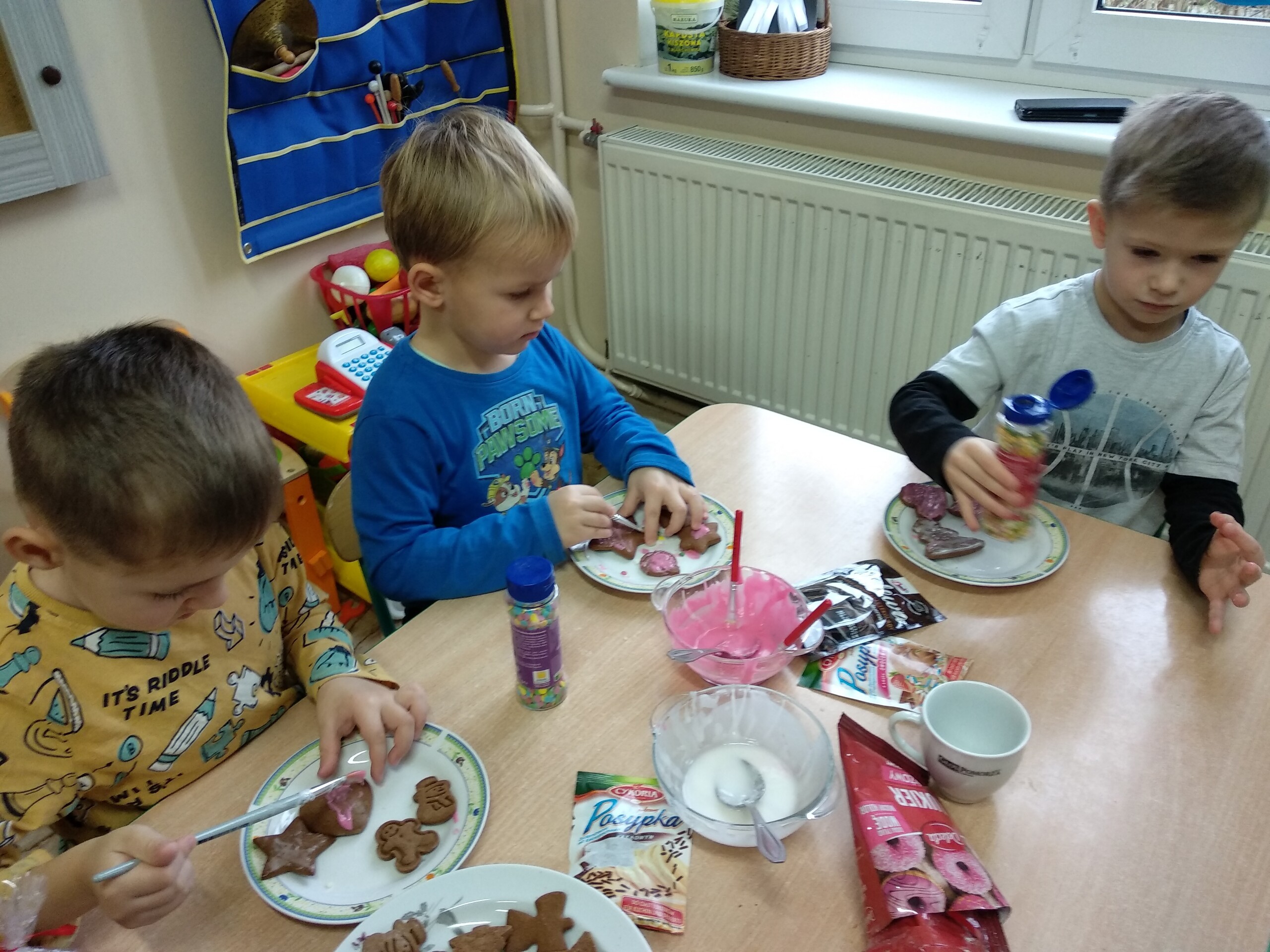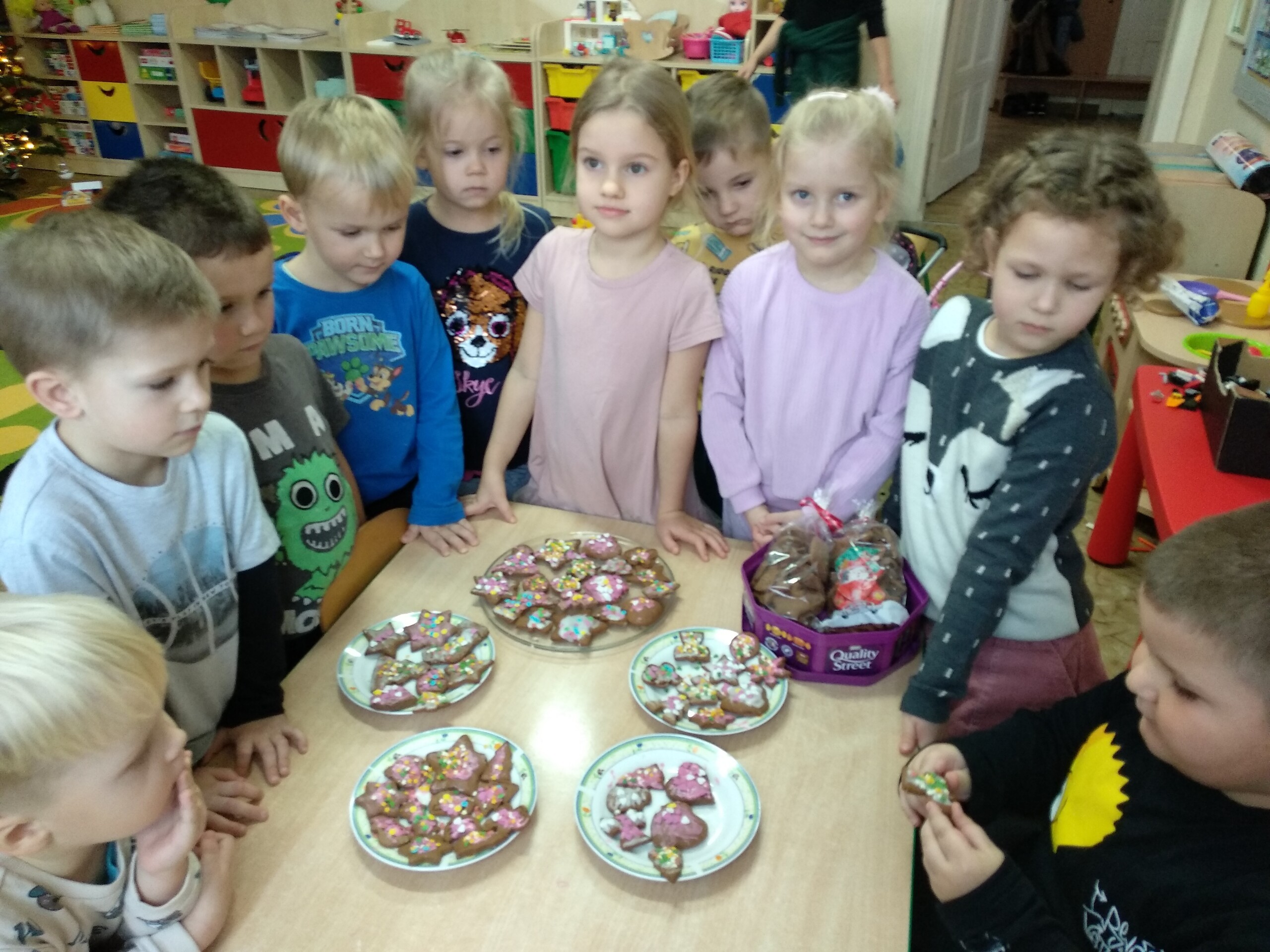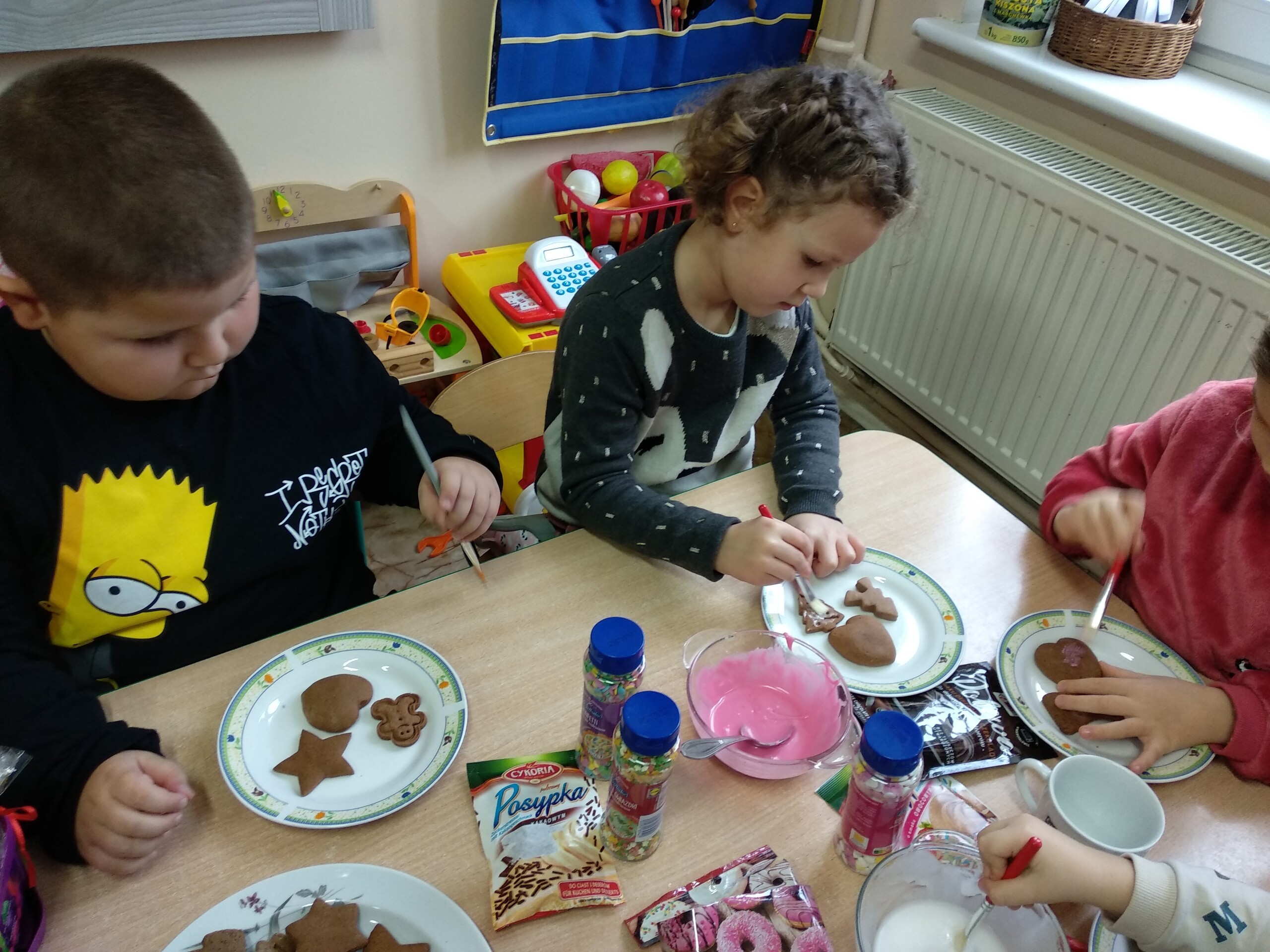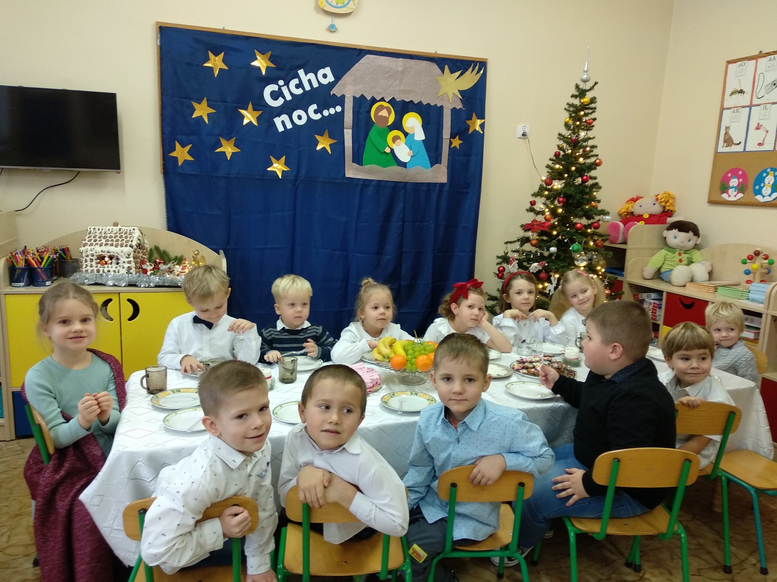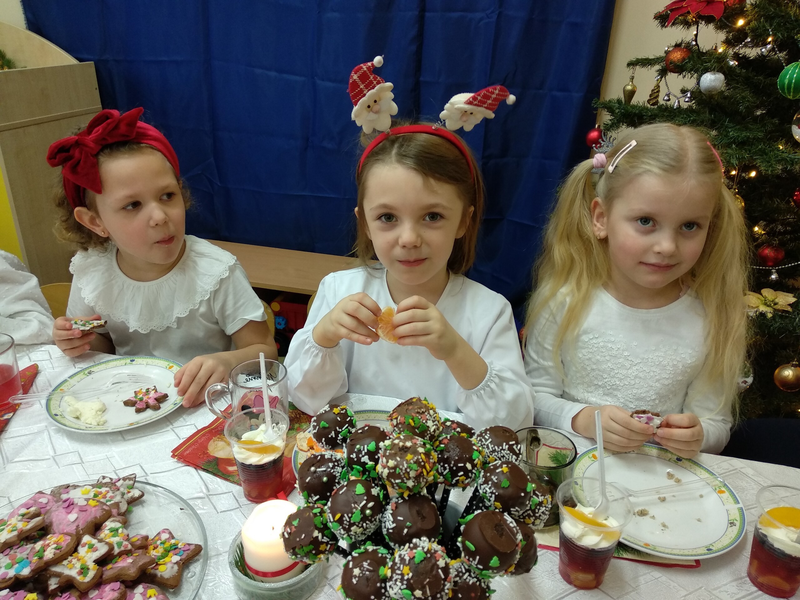 Przygotowania do wigilii z udziałem przedszkolaków. Mamie Kacperka dziękujemy za pyszne słodkości.