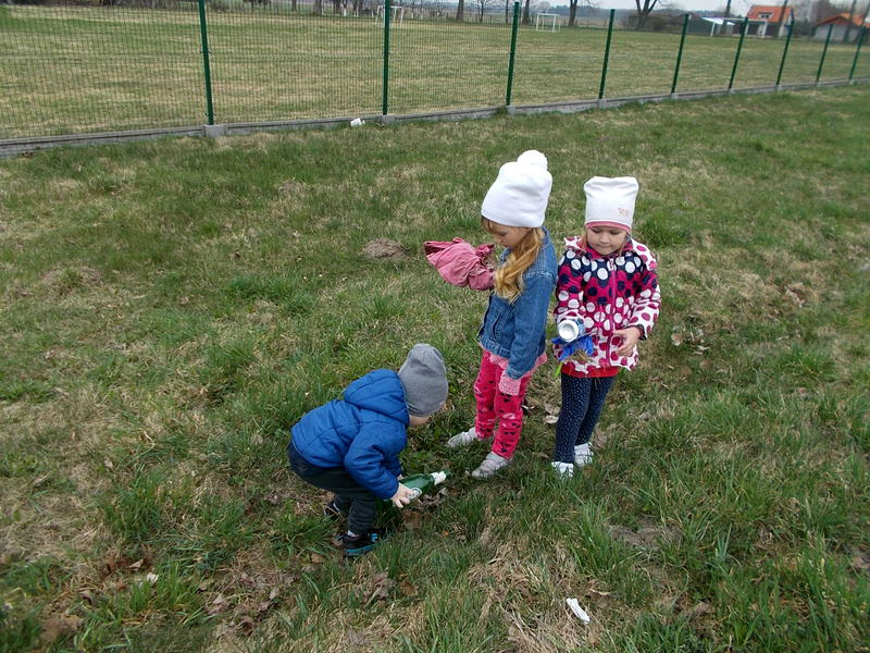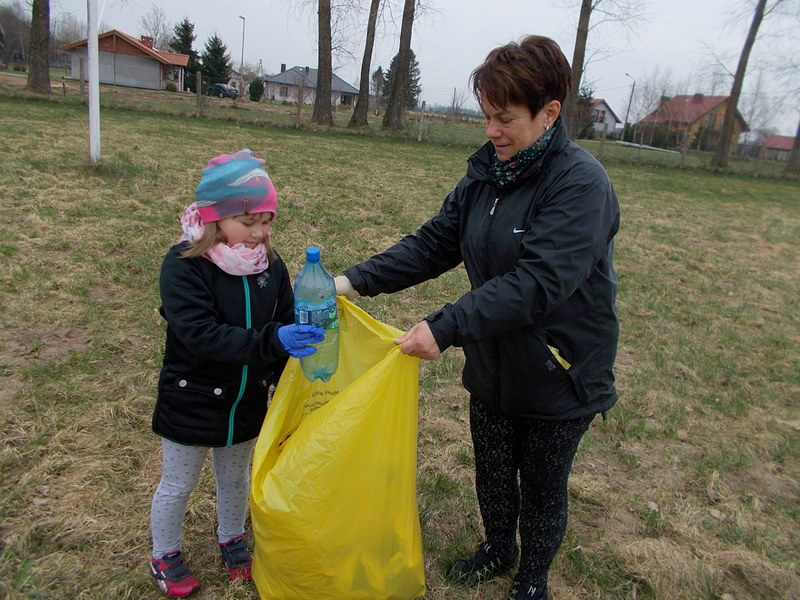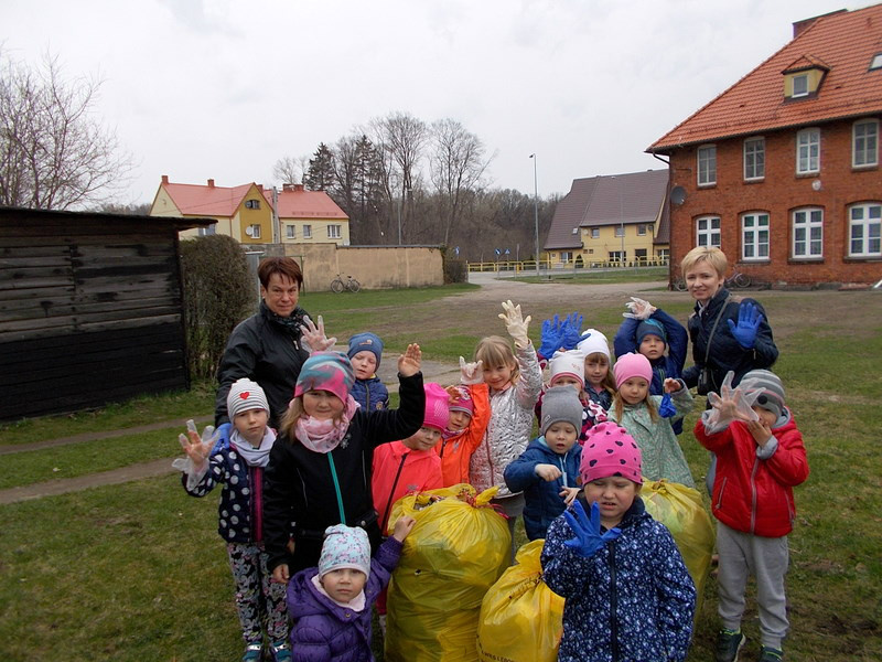 Przedszkolaki, zaopatrzone w rękawiczki i worki na śmieci, uporządkowały teren boiska wiejskiego oraz plac zabaw. Celem akcji było uświadomienie dzieciom, że nawet mały człowiek może dbać o swoją dużą planetę.