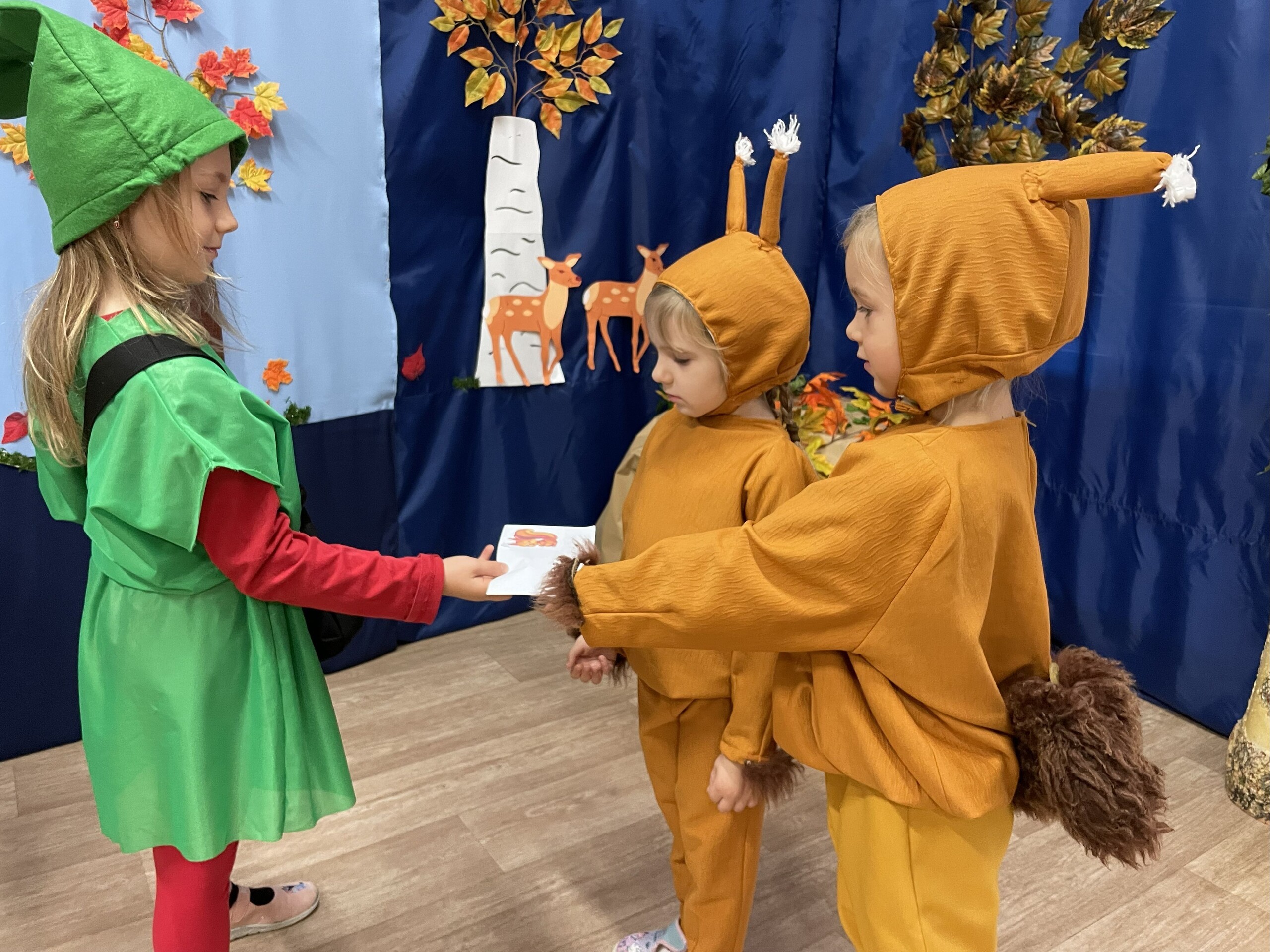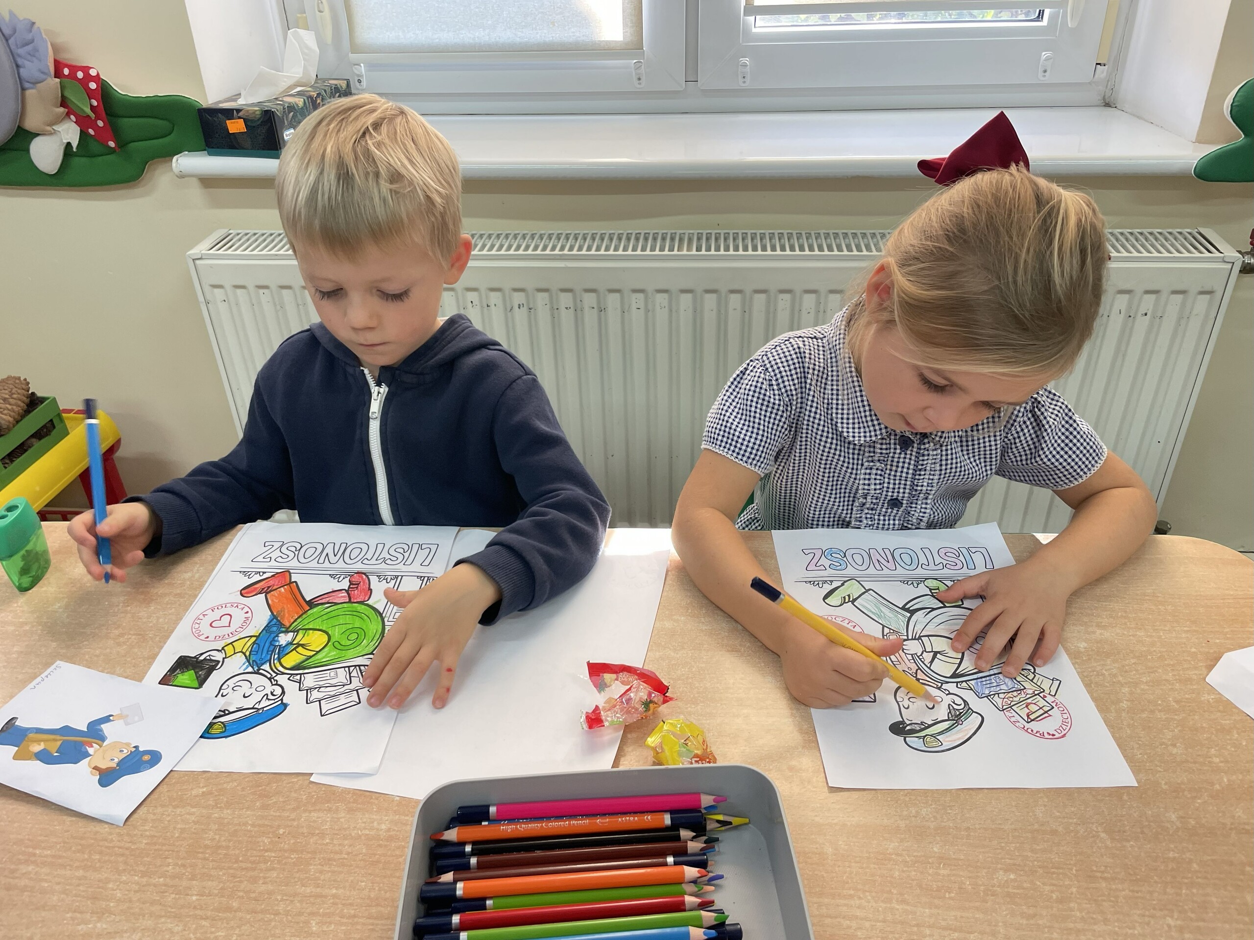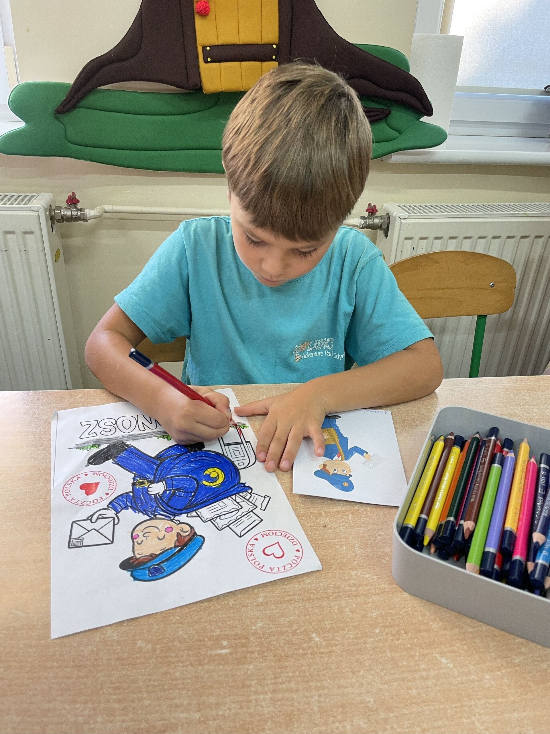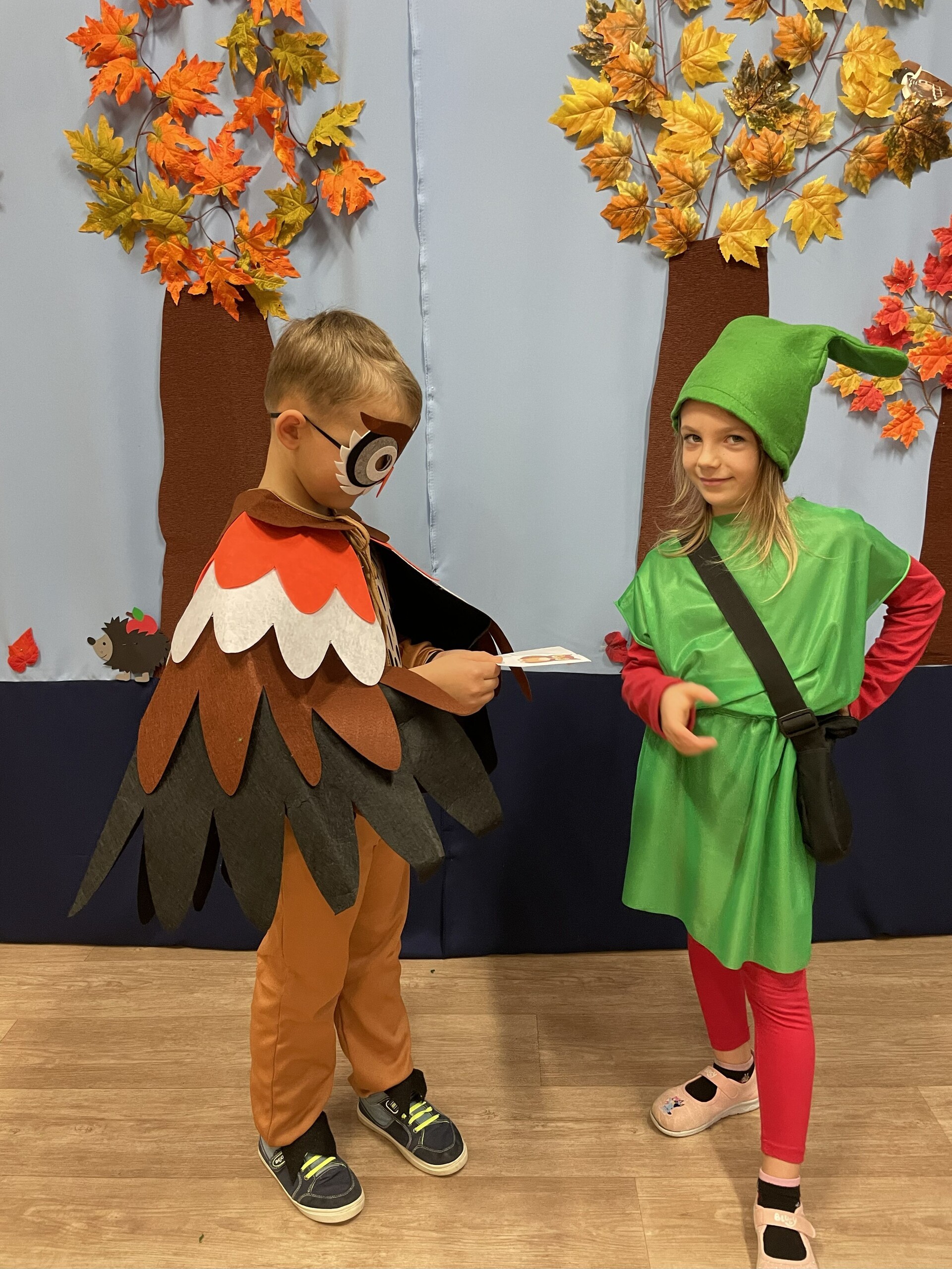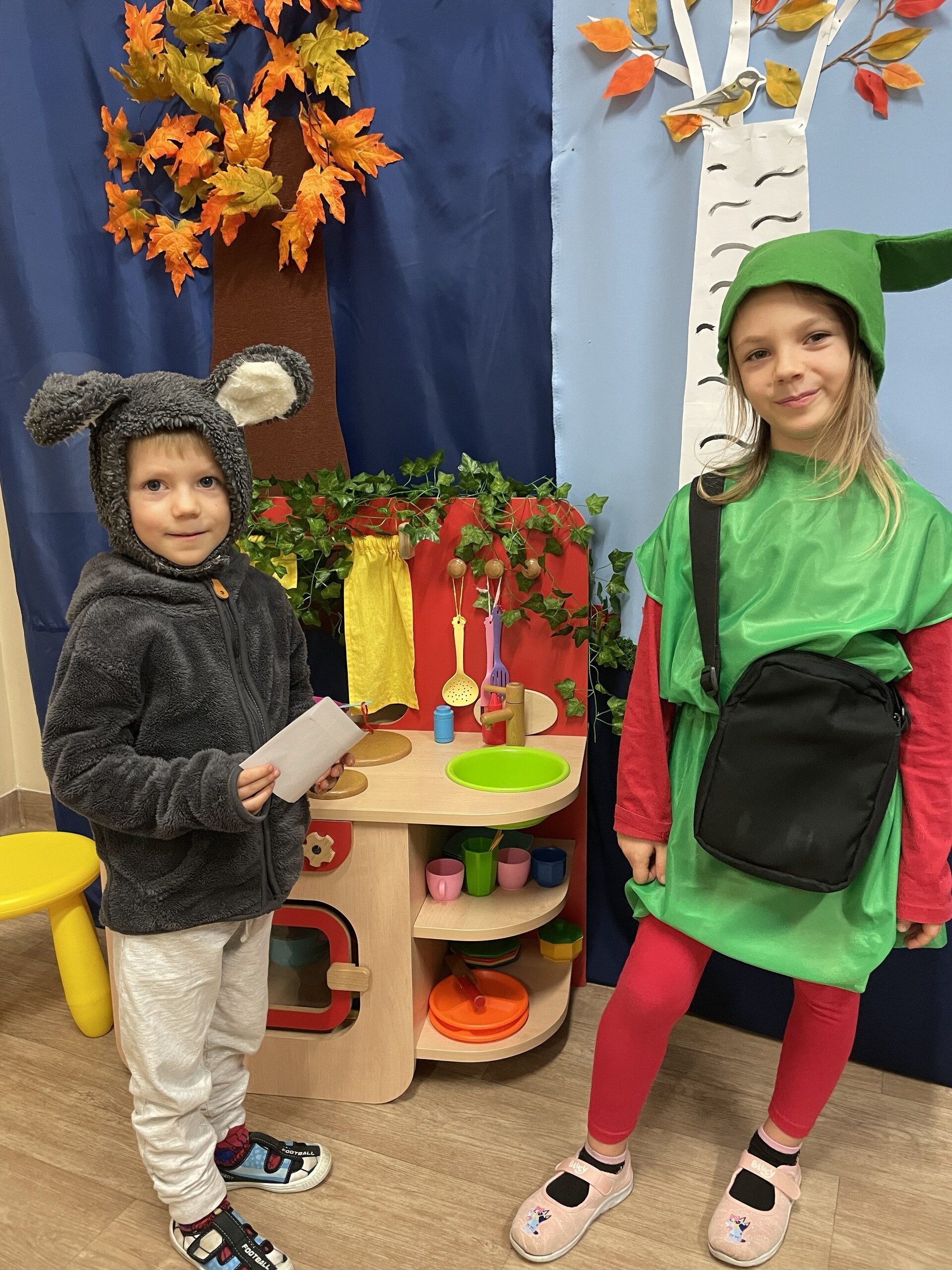 Pan Radek - nasz listonosz, był gościem przedszkolaków. Wszyscy, od dłuższego czasu, przygotowywaliśmy się do tego spotkania aby wypadło ono jak najlepiej i aby nasz gość był zadowolony. Tak też było, pan Radek nie spodziewał się takiej gościnności. Również pani dyrektor doceniła nasze starania. Dzieci w pięknych strojach i leśnej scenerii wystawiły teatrzyk ,,Leśny listonosz". Nasz gość również opowiedział o swojej pracy, pokazał akcesoria, których używa, umożliwił dzieciom postawienie stempla (każde chciało spróbować). Na koniec wspólna zabawa i poczęstunek (dziękuję p. Małgosi i p. Beacie). Pan listonosz również zaskoczył dzieci. Miał dla nich słodycze, kolorowanki, koperty i znaczki pocztowe. Wszyscy stwierdziliśmy, że zasługuje na ,,Medal dla super listonosza" oraz dodatkowym upominkiem była sowa, która miała przypominać gościowi teatrzyk i nasze spotkanie.