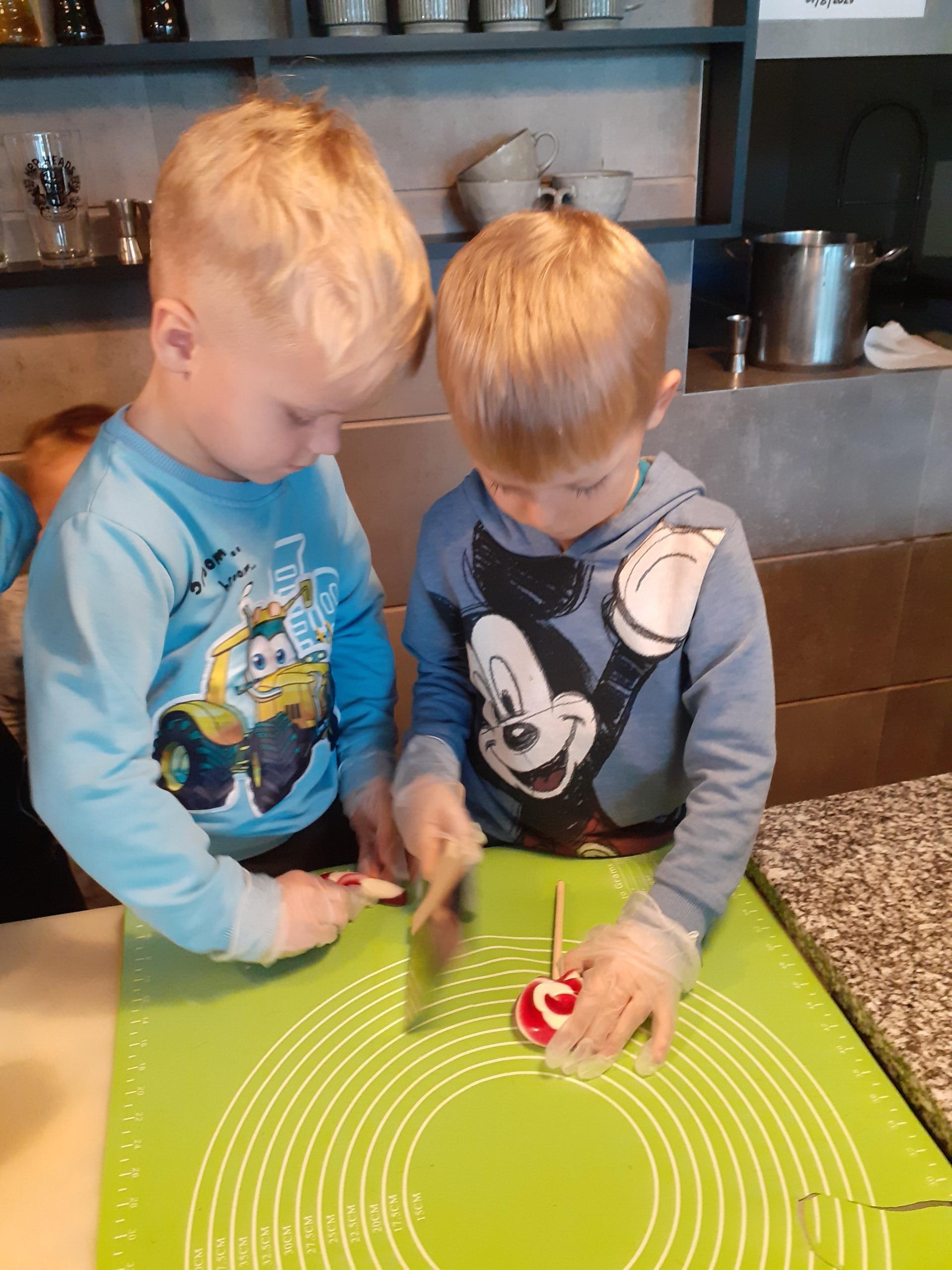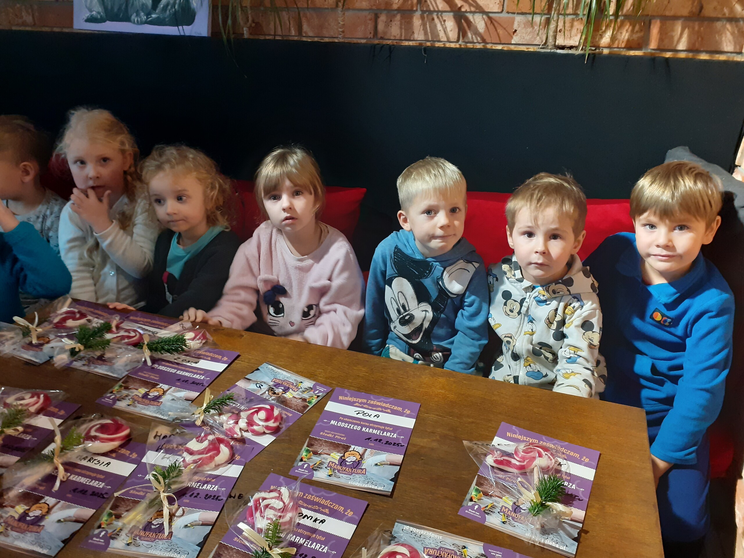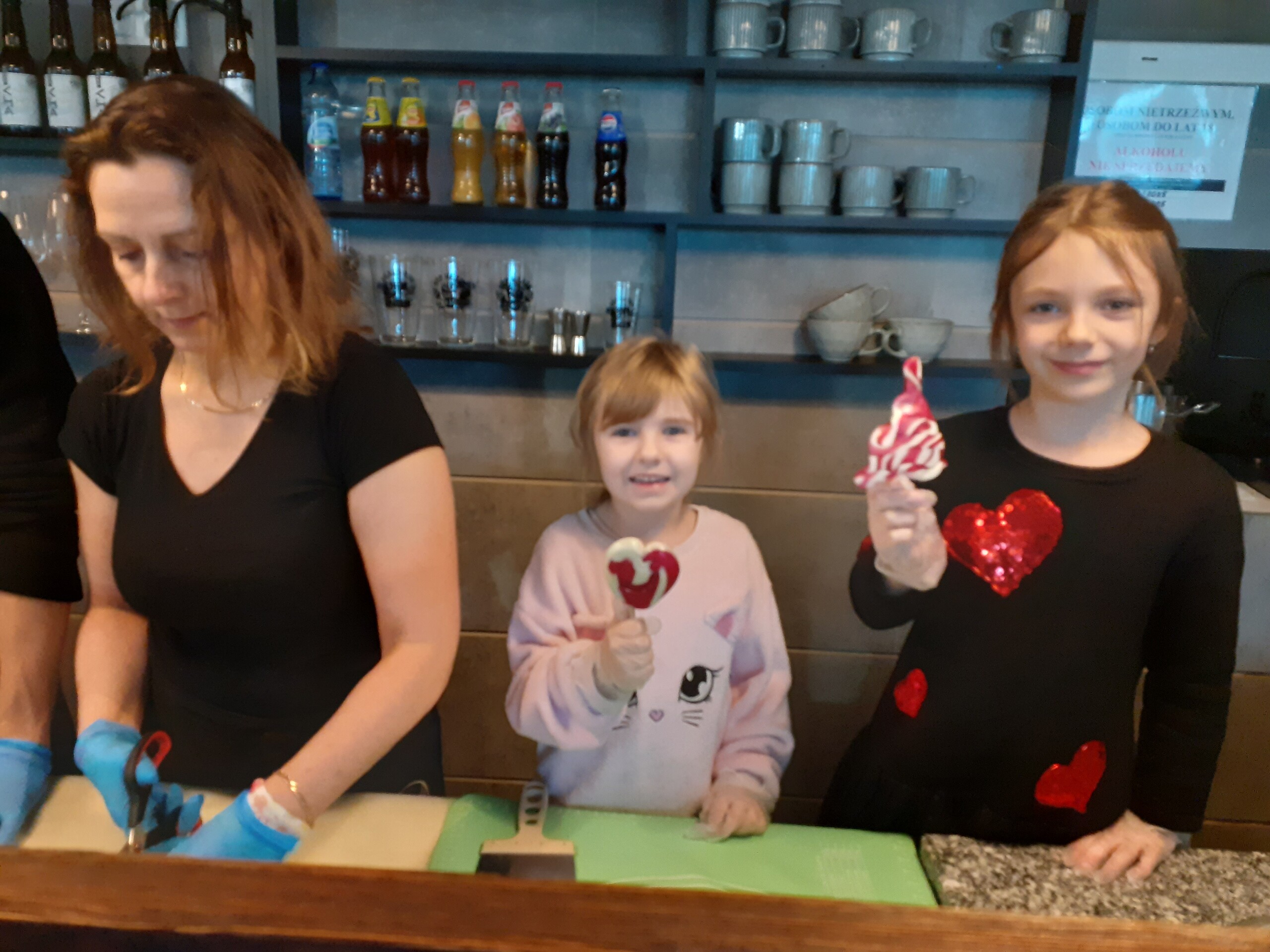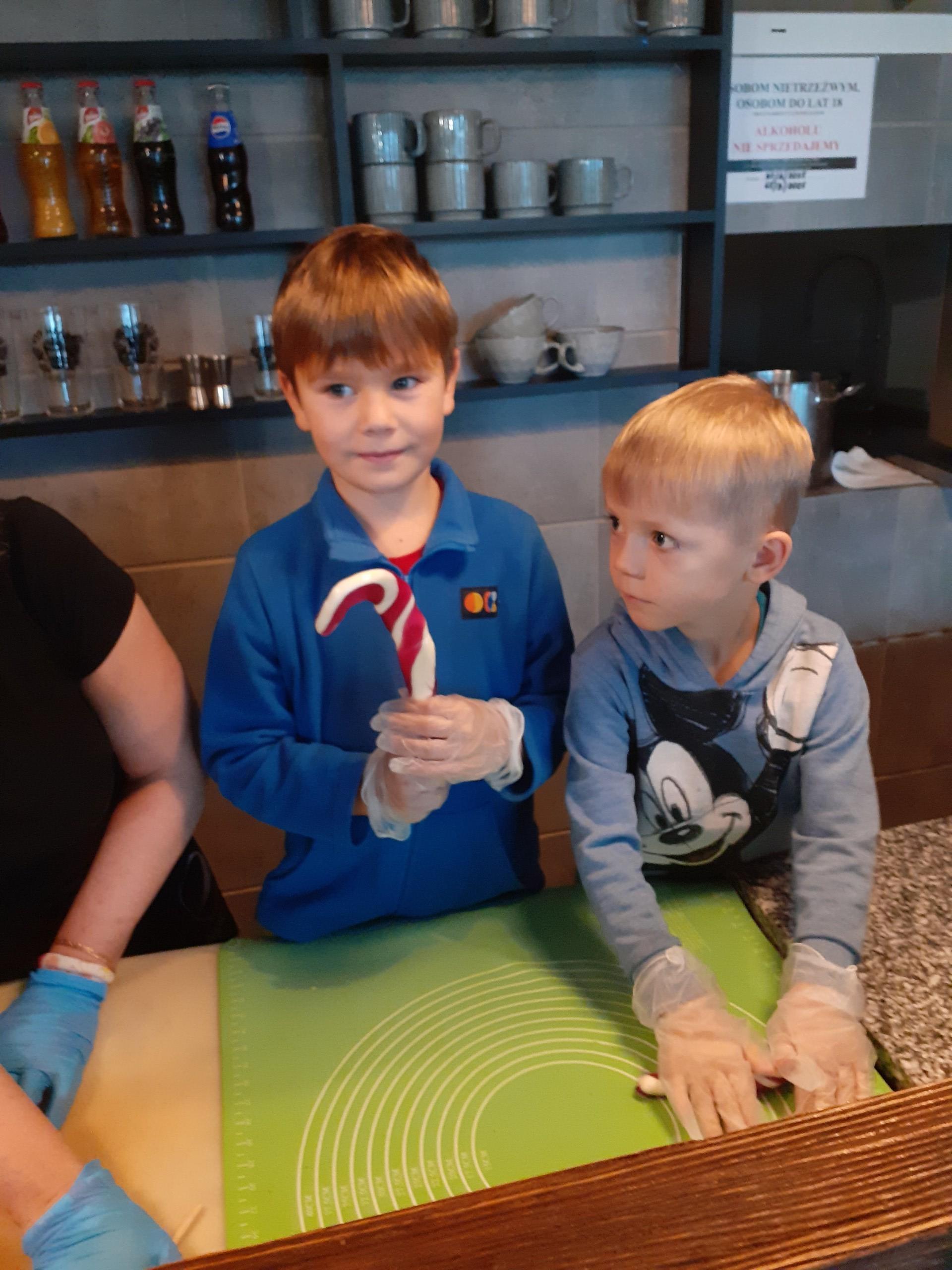 Przedszkolaki udały się do Manufaktury Słodyczy w Łebie. Wzięły udział w warsztatach, podczas których poznali etapy tworzenia słodyczy a następnie podjęli próbę wykonania lizaków z przygotowanego wcześniej karmelu.