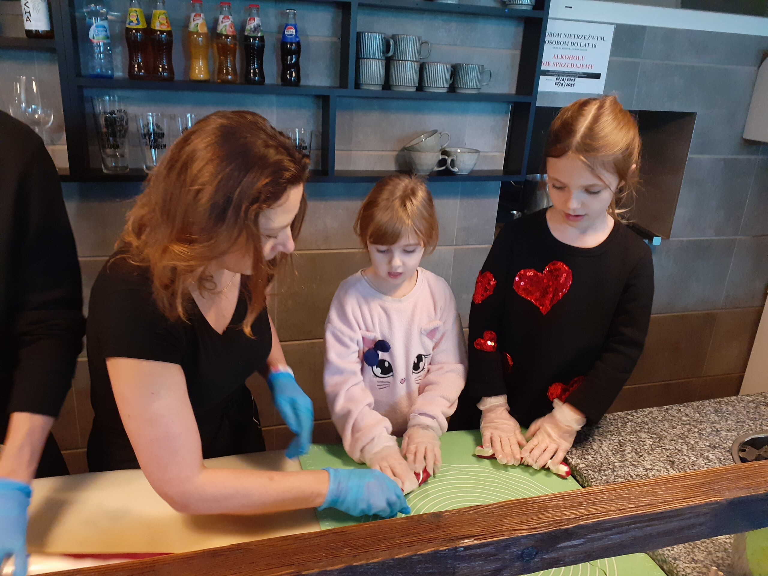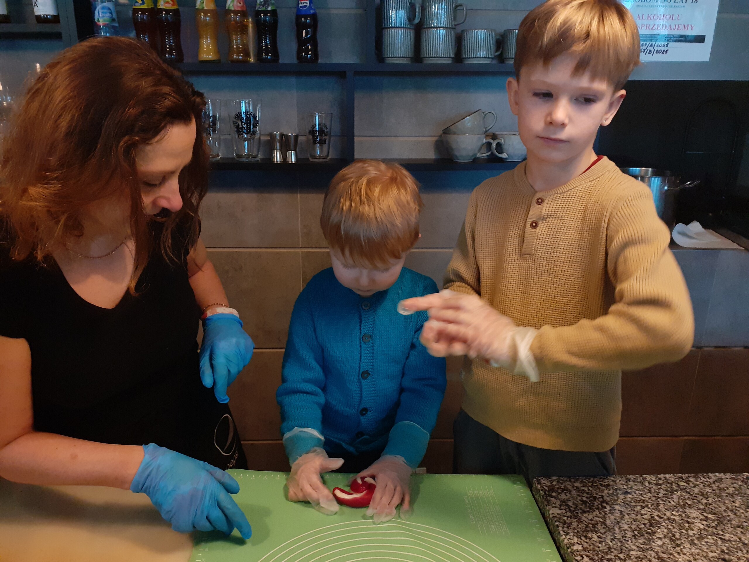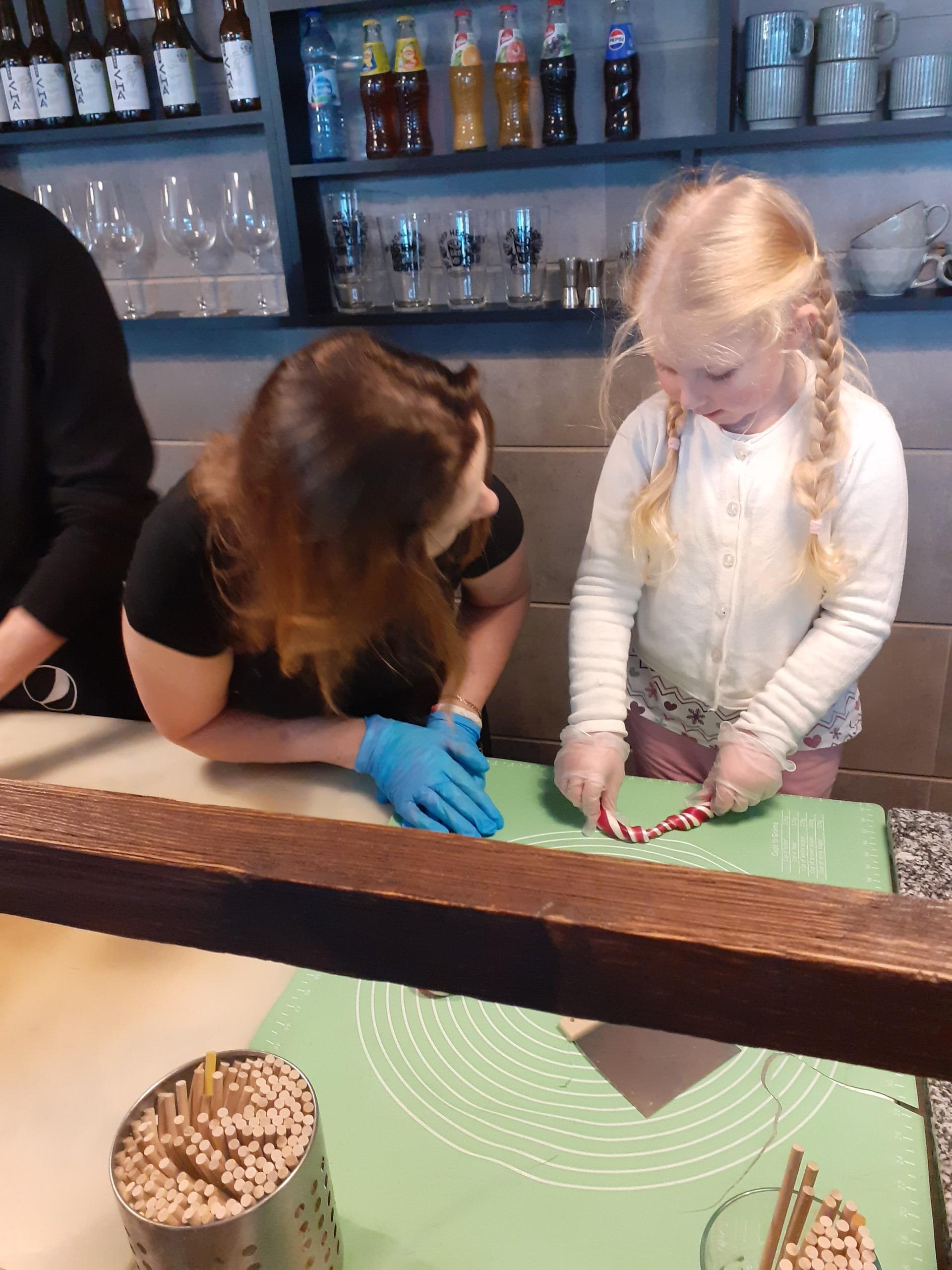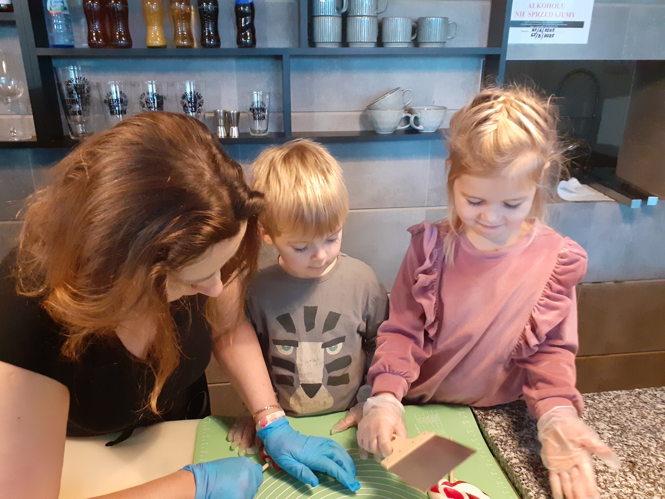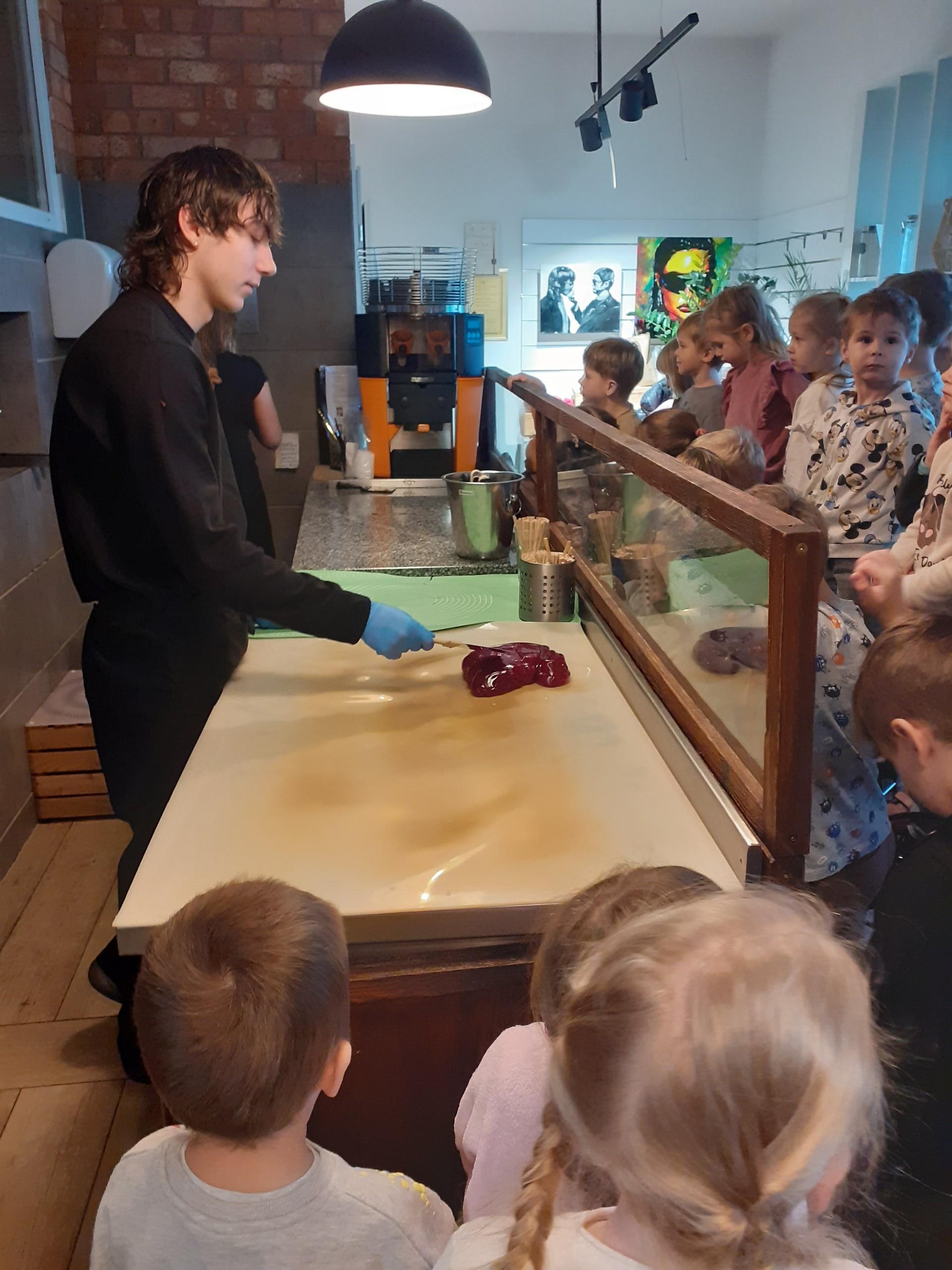 Przedszkolaki udały się do Manufaktury Słodyczy w Łebie. Wzięły udział w warsztatach, podczas których poznali etapy tworzenia słodyczy a następnie podjęli próbę wykonania lizaków z przygotowanego wcześniej karmelu.