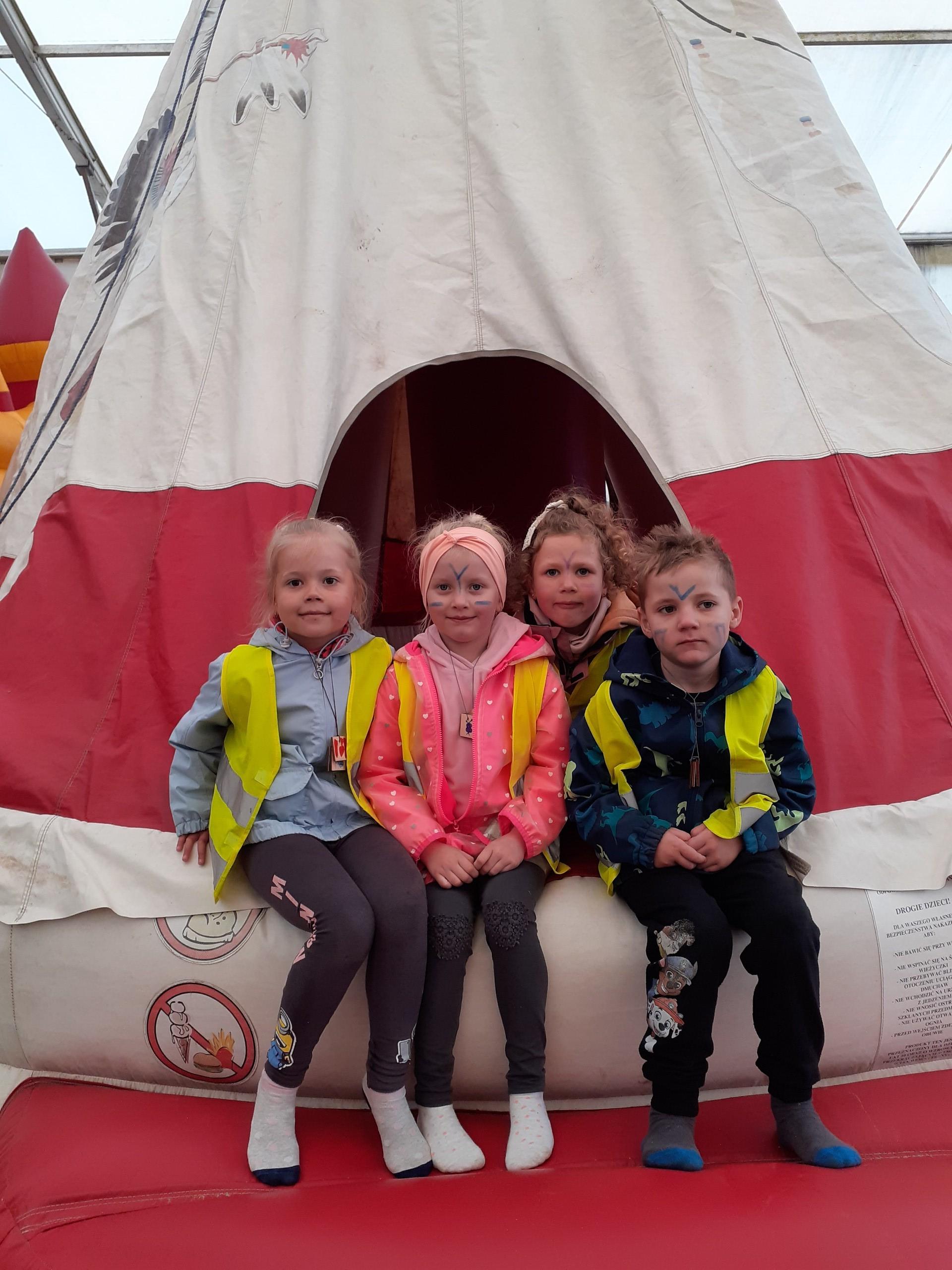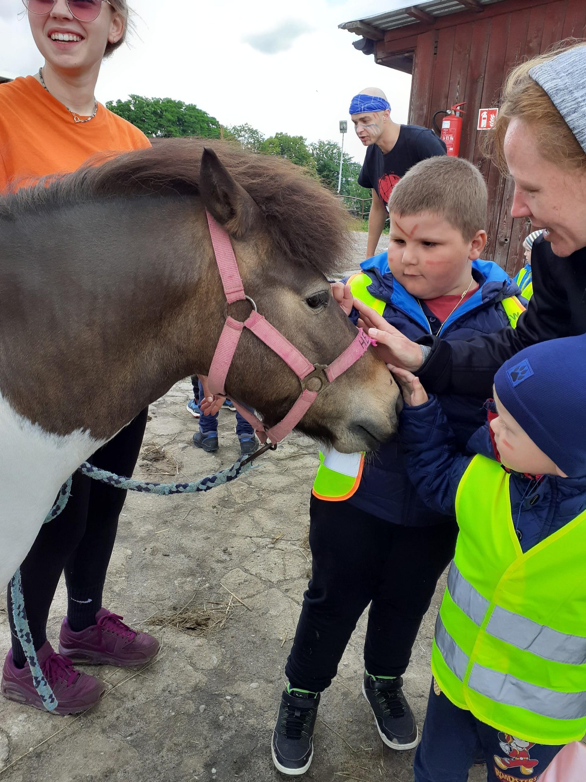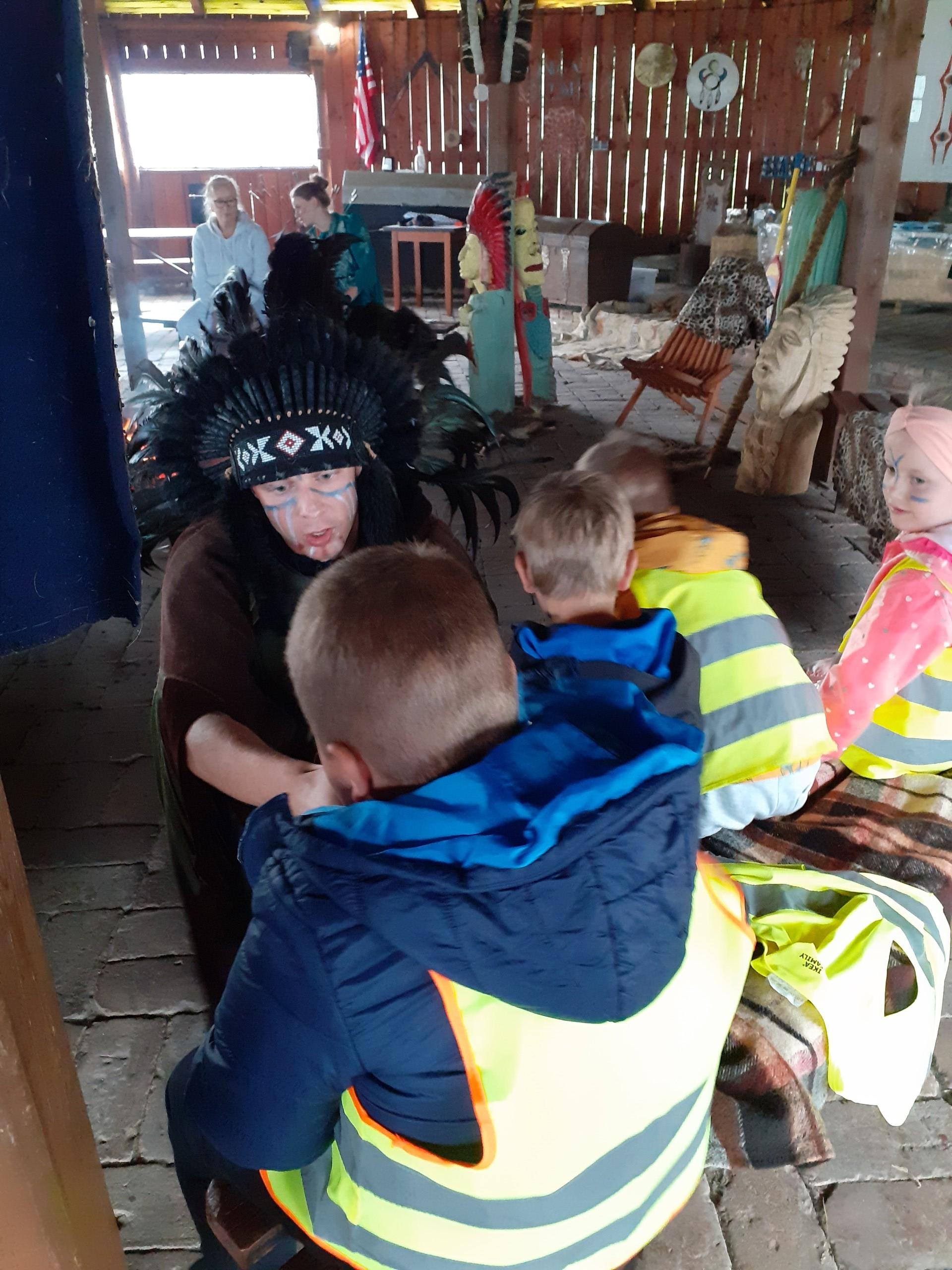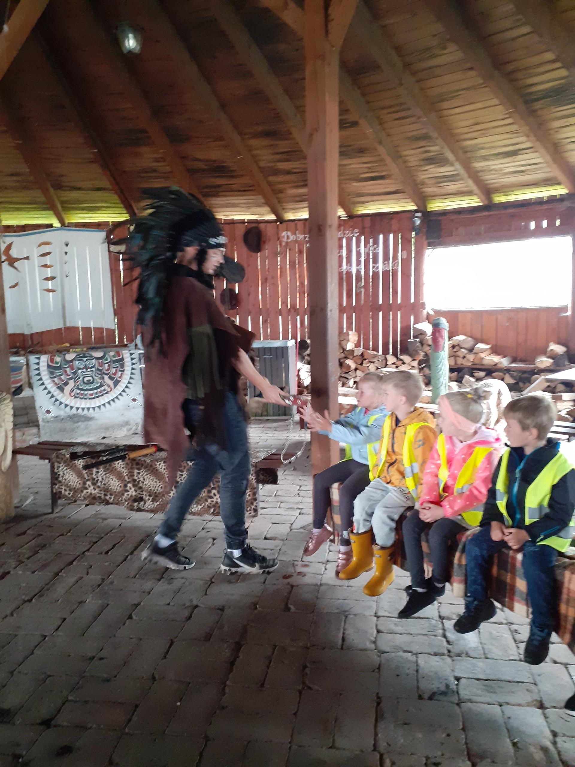 Atrakcji było wiele: pobyt w Indiańskiej Wiosce, gdzie poznawaliśmy elementy kultury indiańskiej, zwiedzanie stadniny koni, gdzie poznaliśmy jej mieszkańców oraz atrybuty potrzebne do jazdy konnej, a na koniec pobyt na placu zabaw i szaleństwo na dmuchańcach.