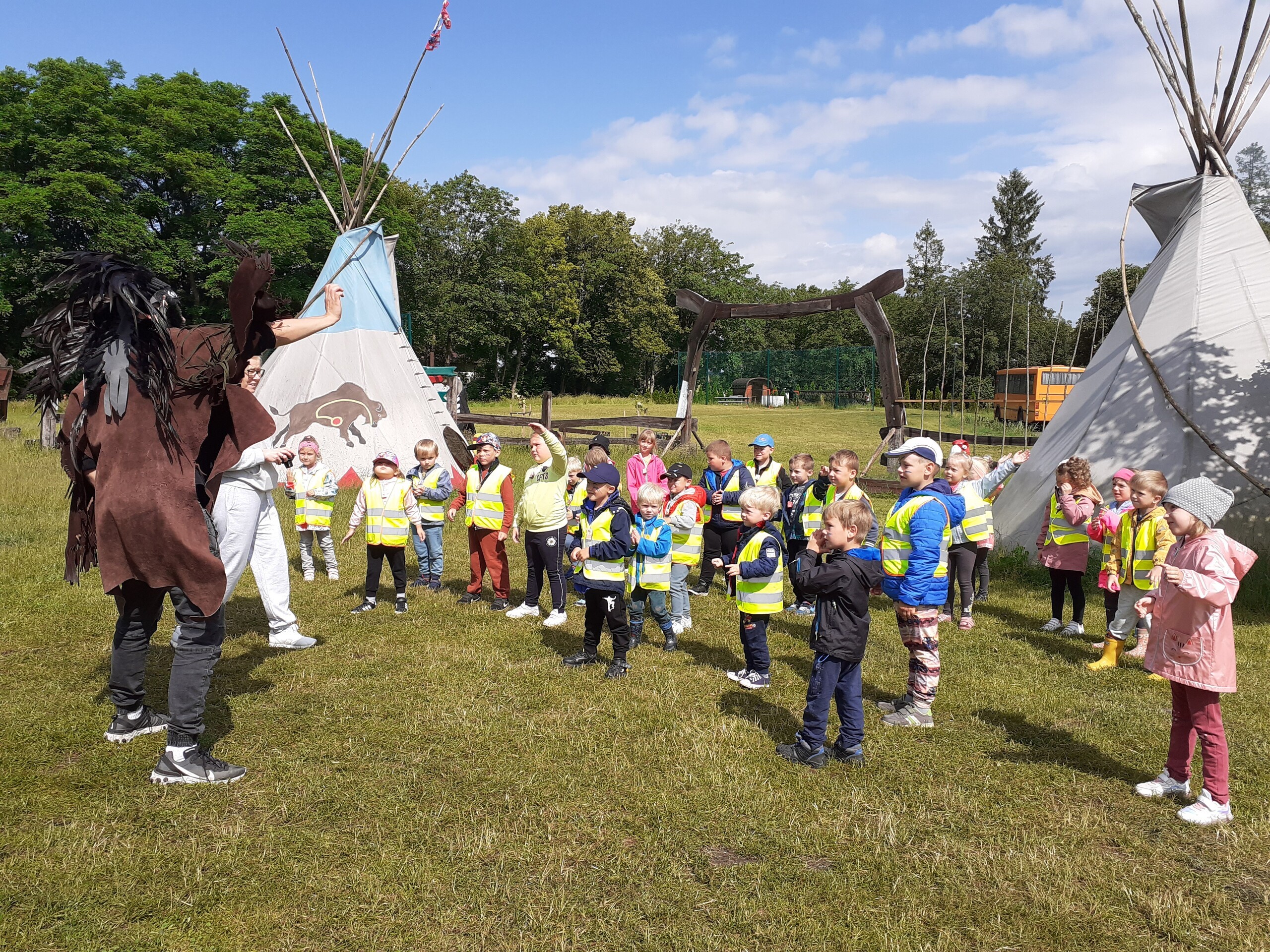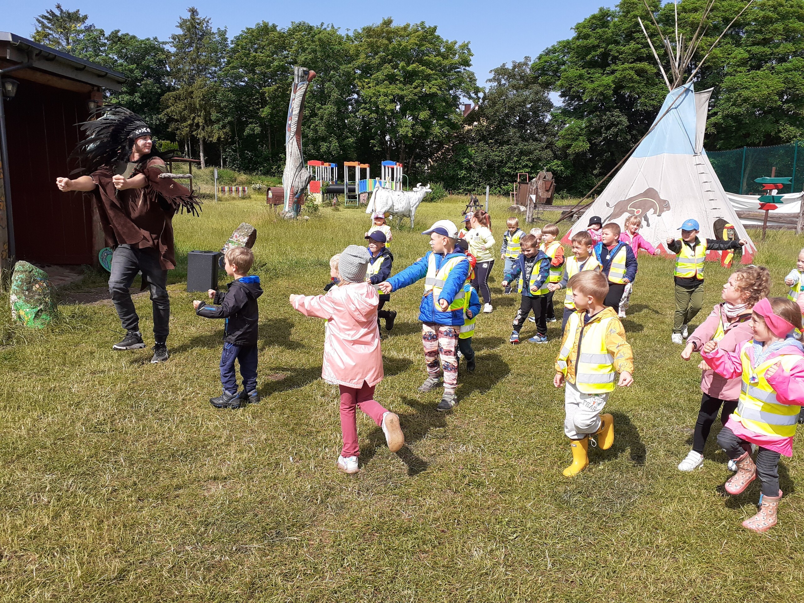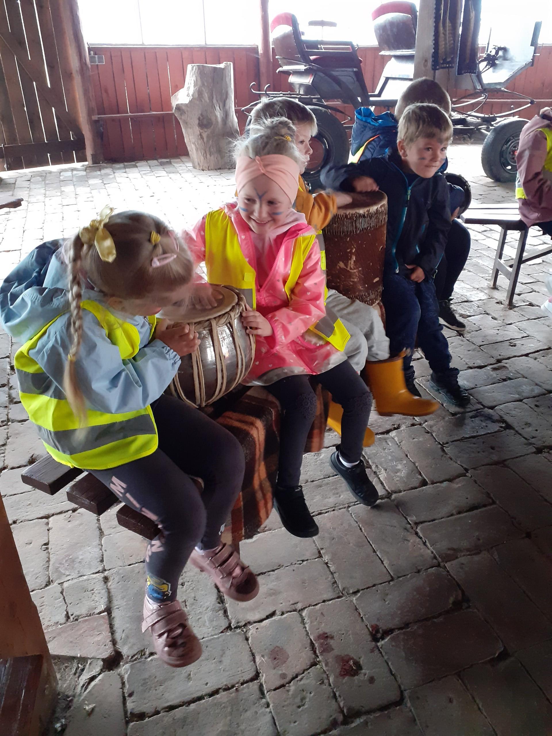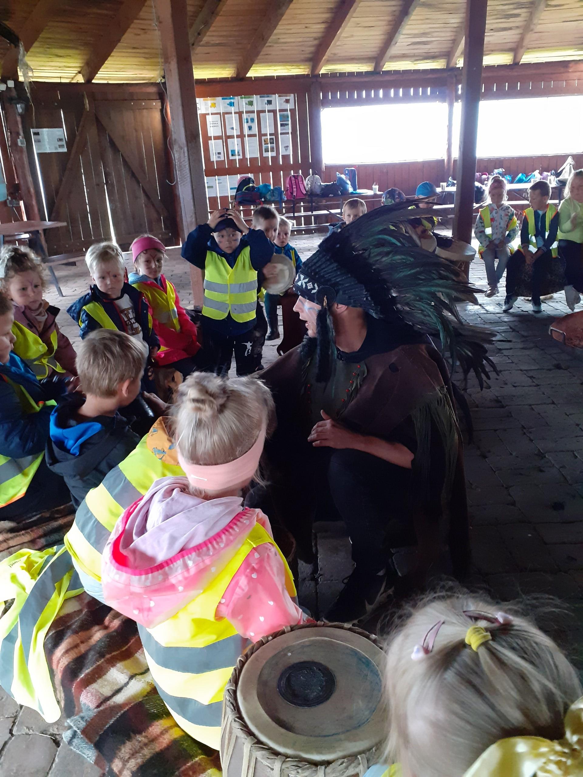 Atrakcji było wiele: pobyt w Indiańskiej Wiosce, gdzie poznawaliśmy elementy kultury indiańskiej, zwiedzanie stadniny koni, gdzie poznaliśmy jej mieszkańców oraz atrybuty potrzebne do jazdy konnej, a na koniec pobyt na placu zabaw i szaleństwo na dmuchańcach.