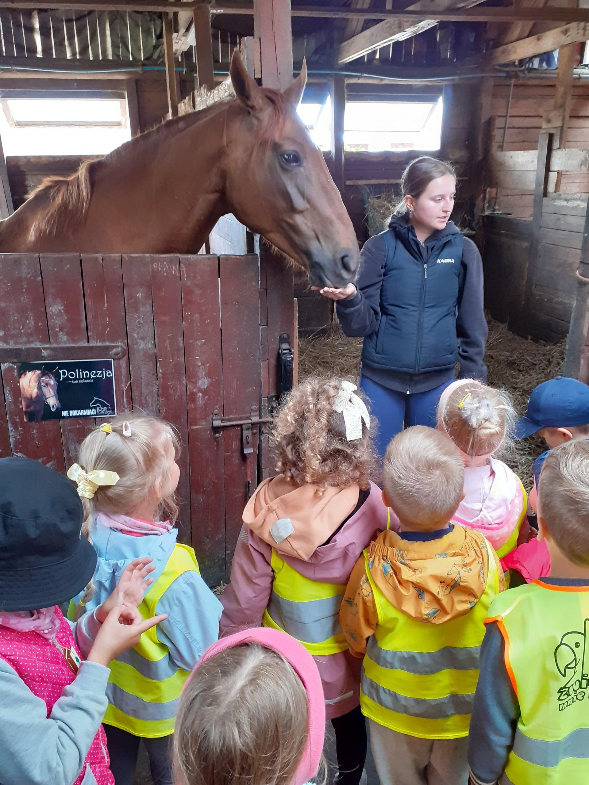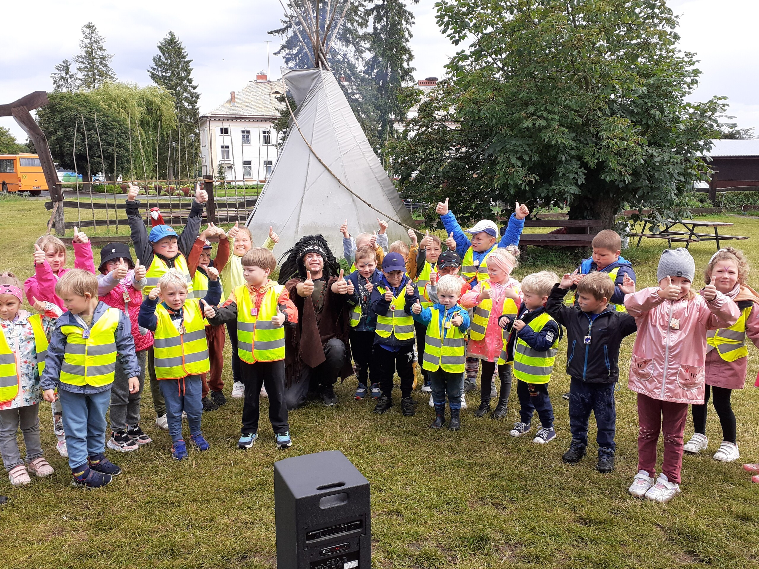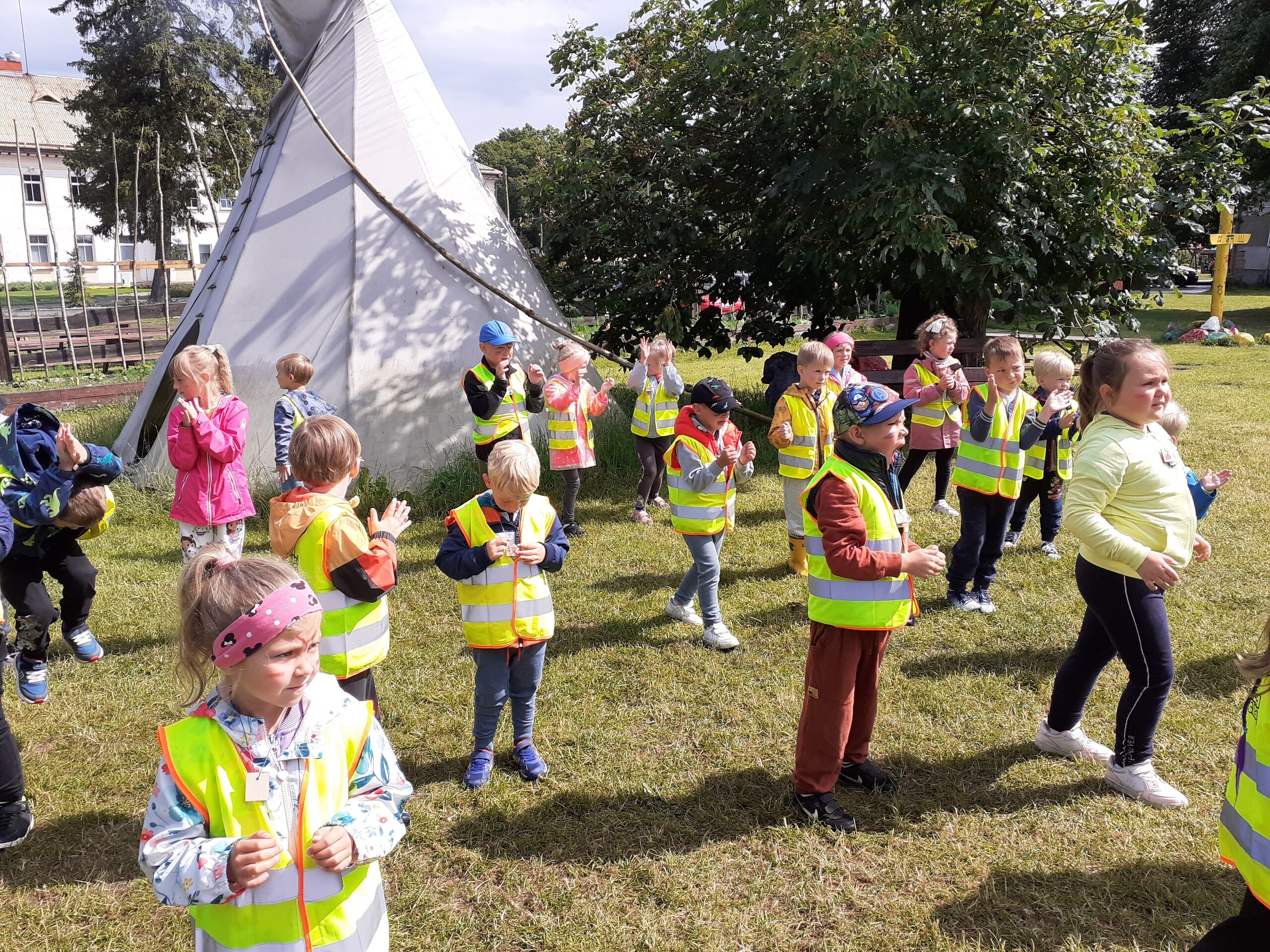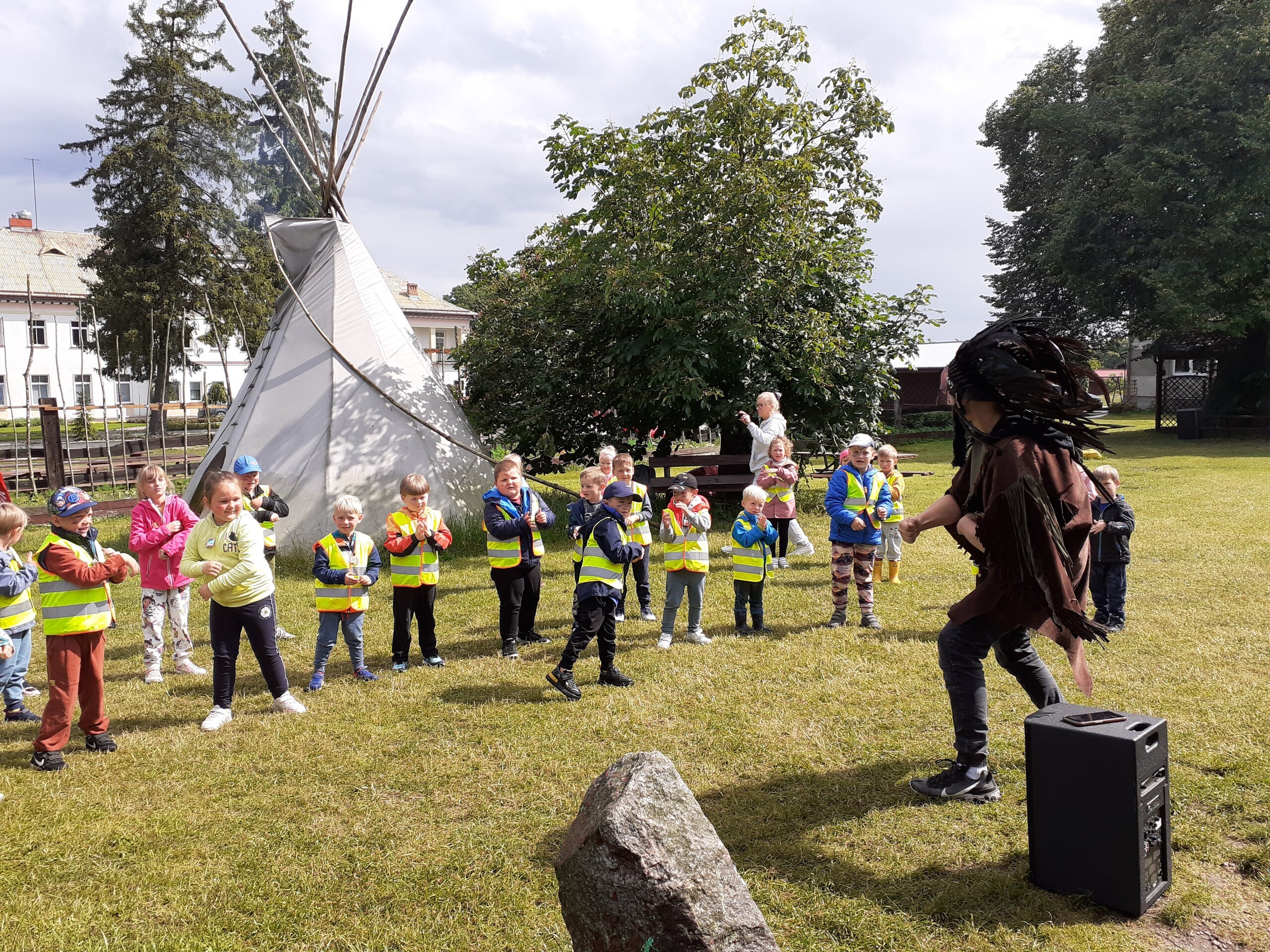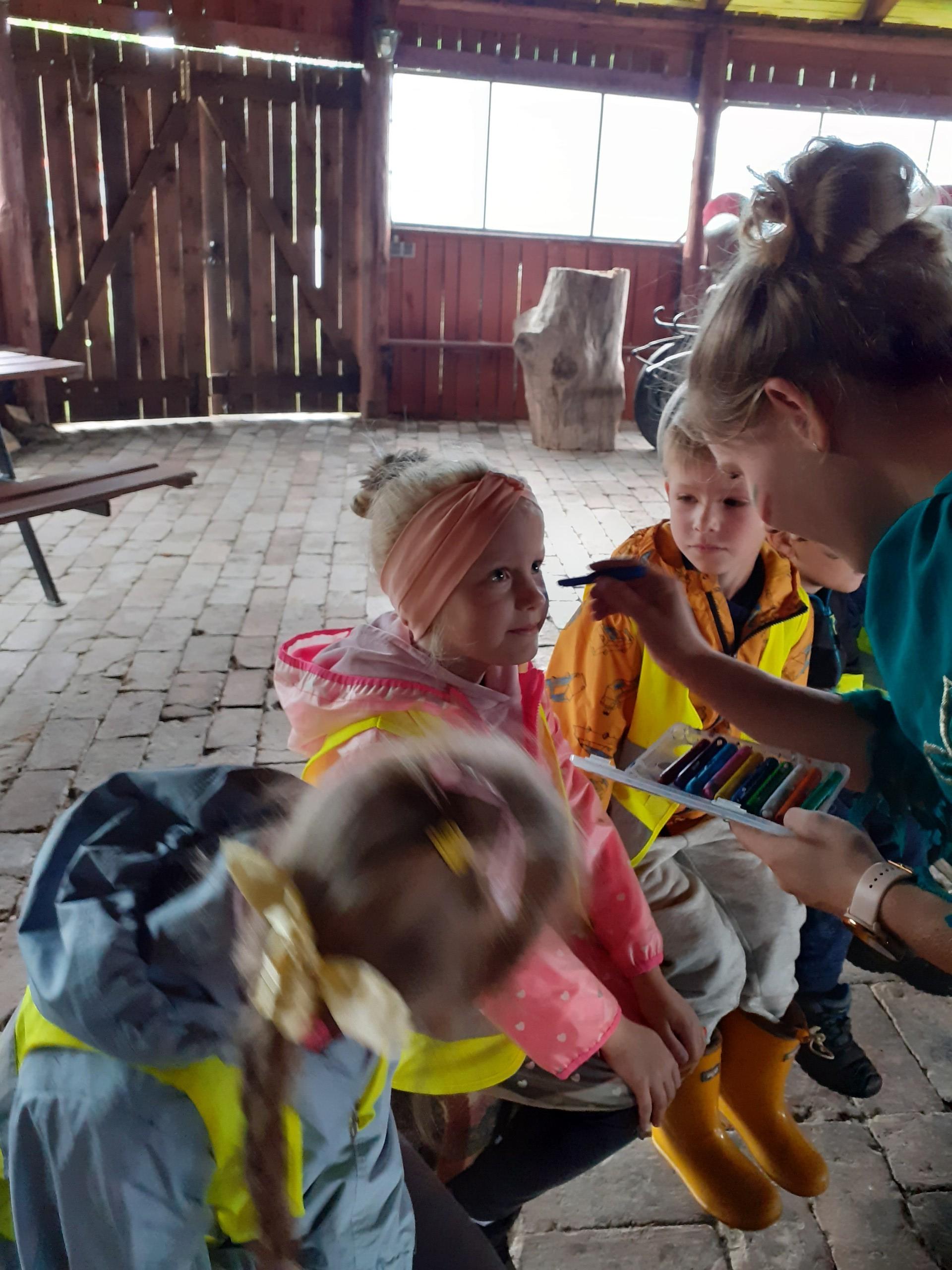 Atrakcji było wiele: pobyt w Indiańskiej Wiosce, gdzie poznawaliśmy elementy kultury indiańskiej, zwiedzanie stadniny koni, gdzie poznaliśmy jej mieszkańców oraz atrybuty potrzebne do jazdy konnej, a na koniec pobyt na placu zabaw i szaleństwo na dmuchańcach.