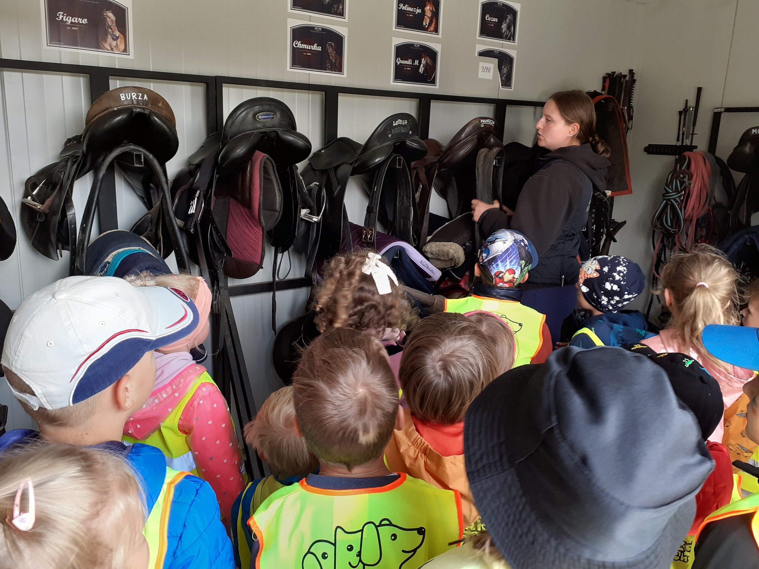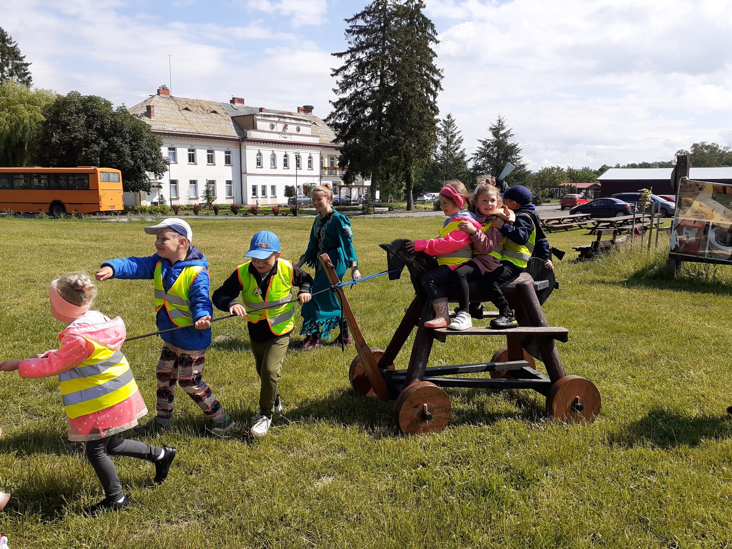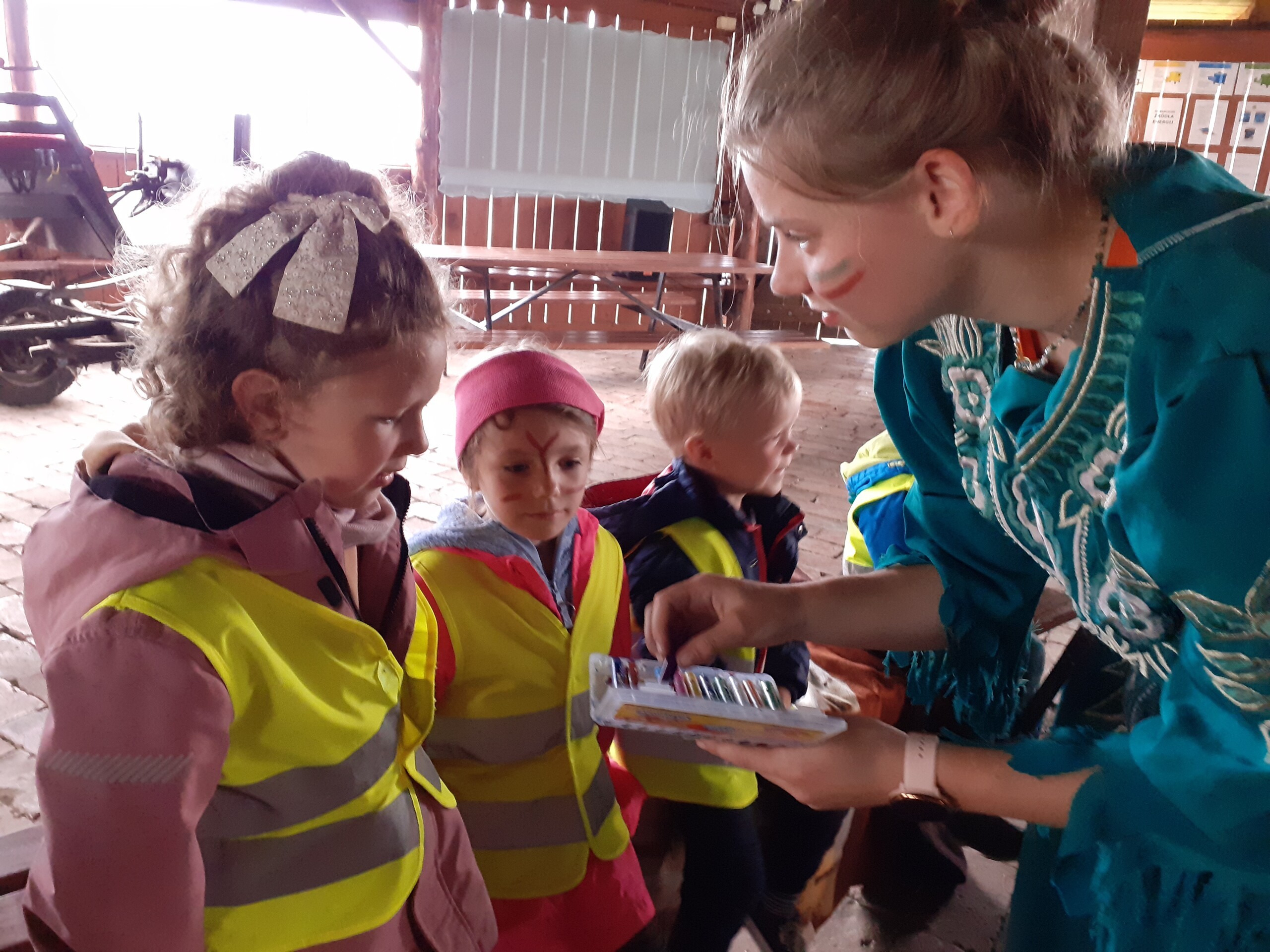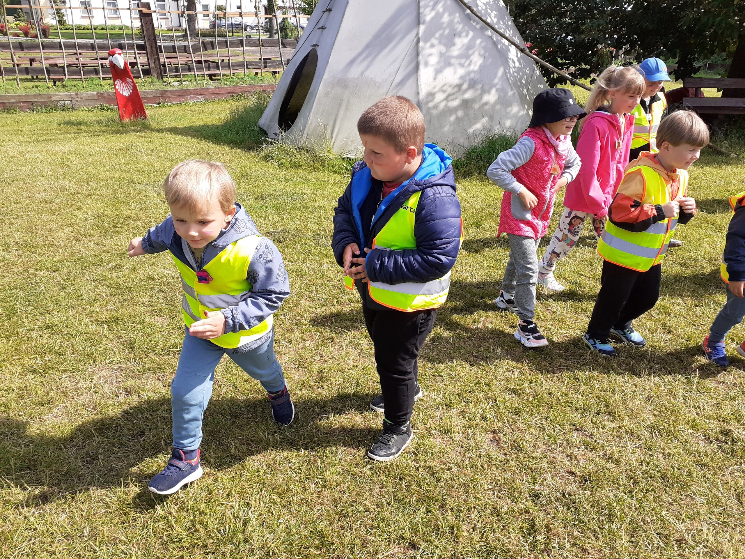 Atrakcji było wiele: pobyt w Indiańskiej Wiosce, gdzie poznawaliśmy elementy kultury indiańskiej, zwiedzanie stadniny koni, gdzie poznaliśmy jej mieszkańców oraz atrybuty potrzebne do jazdy konnej, a na koniec pobyt na placu zabaw i szaleństwo na dmuchańcach.