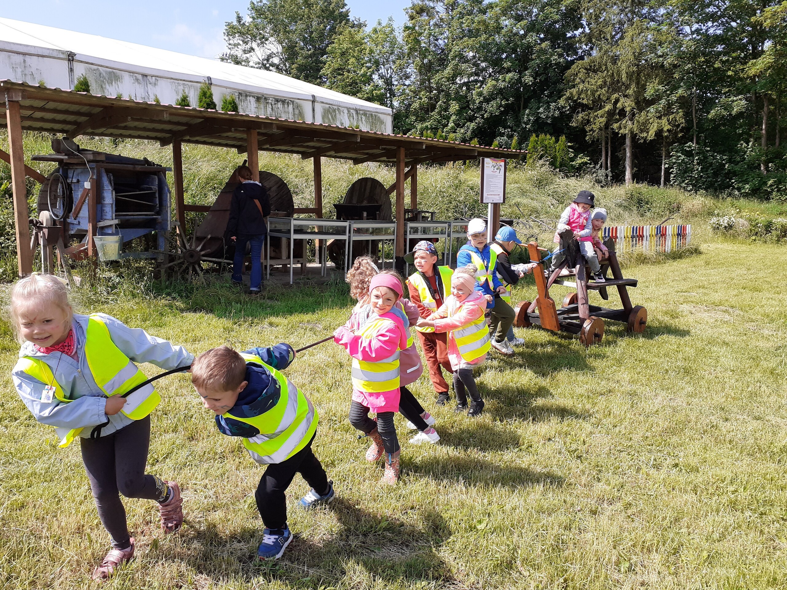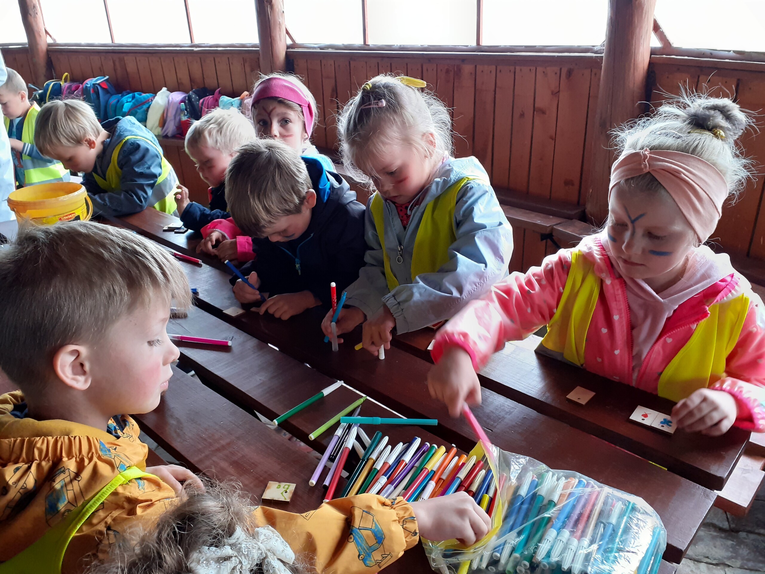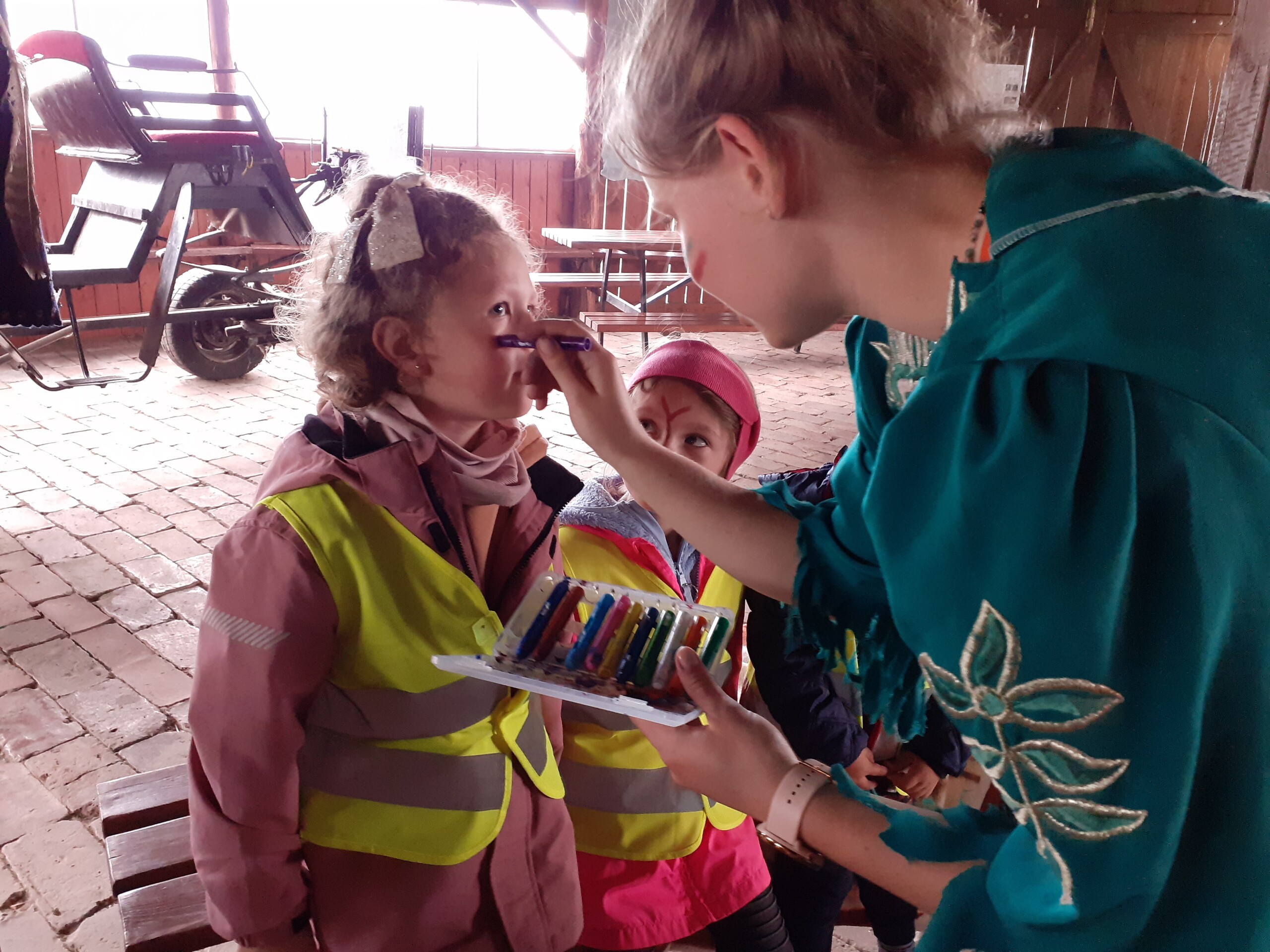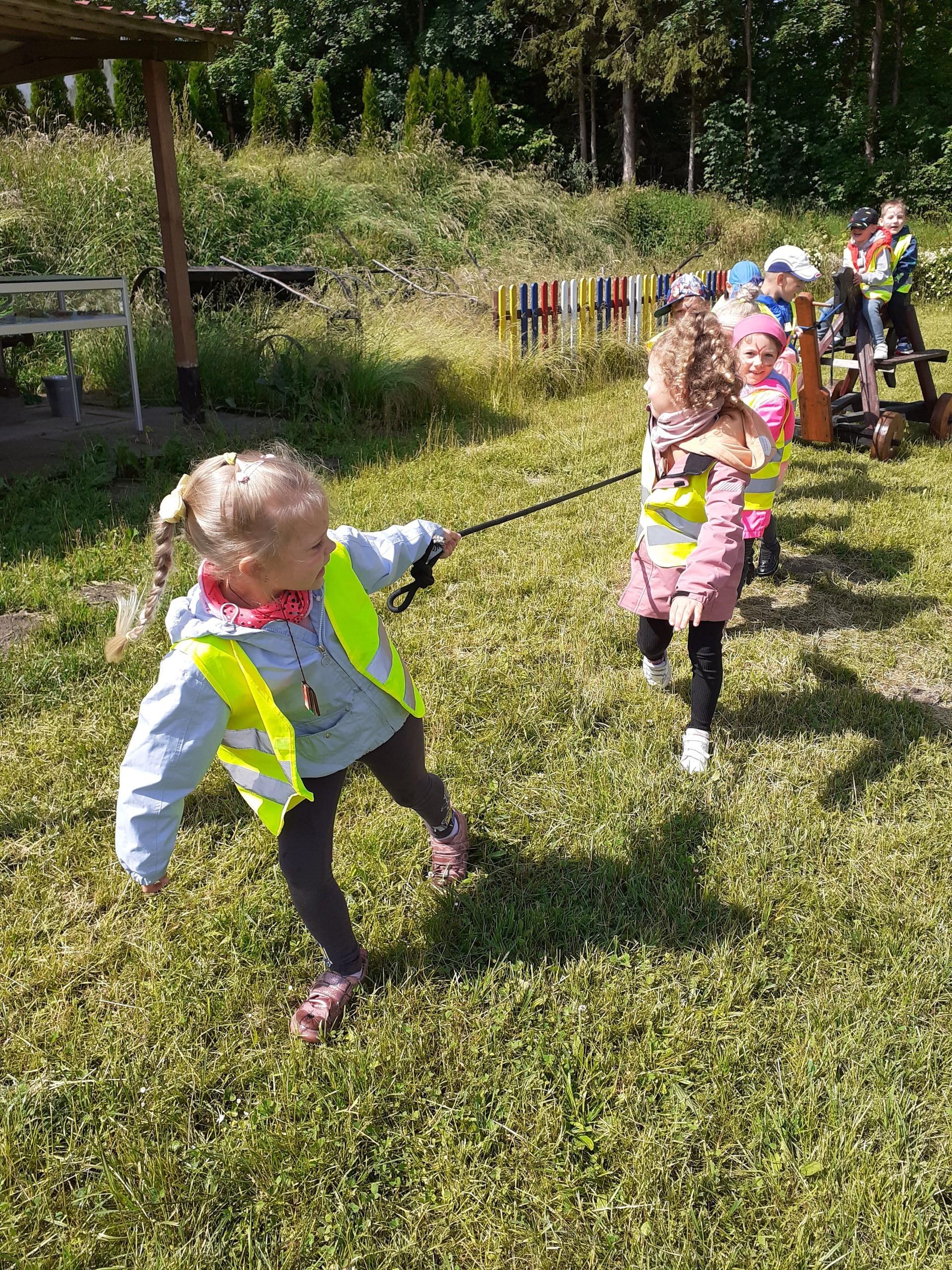 Atrakcji było wiele: pobyt w Indiańskiej Wiosce, gdzie poznawaliśmy elementy kultury indiańskiej, zwiedzanie stadniny koni, gdzie poznaliśmy jej mieszkańców oraz atrybuty potrzebne do jazdy konnej, a na koniec pobyt na placu zabaw i szaleństwo na dmuchańcach.