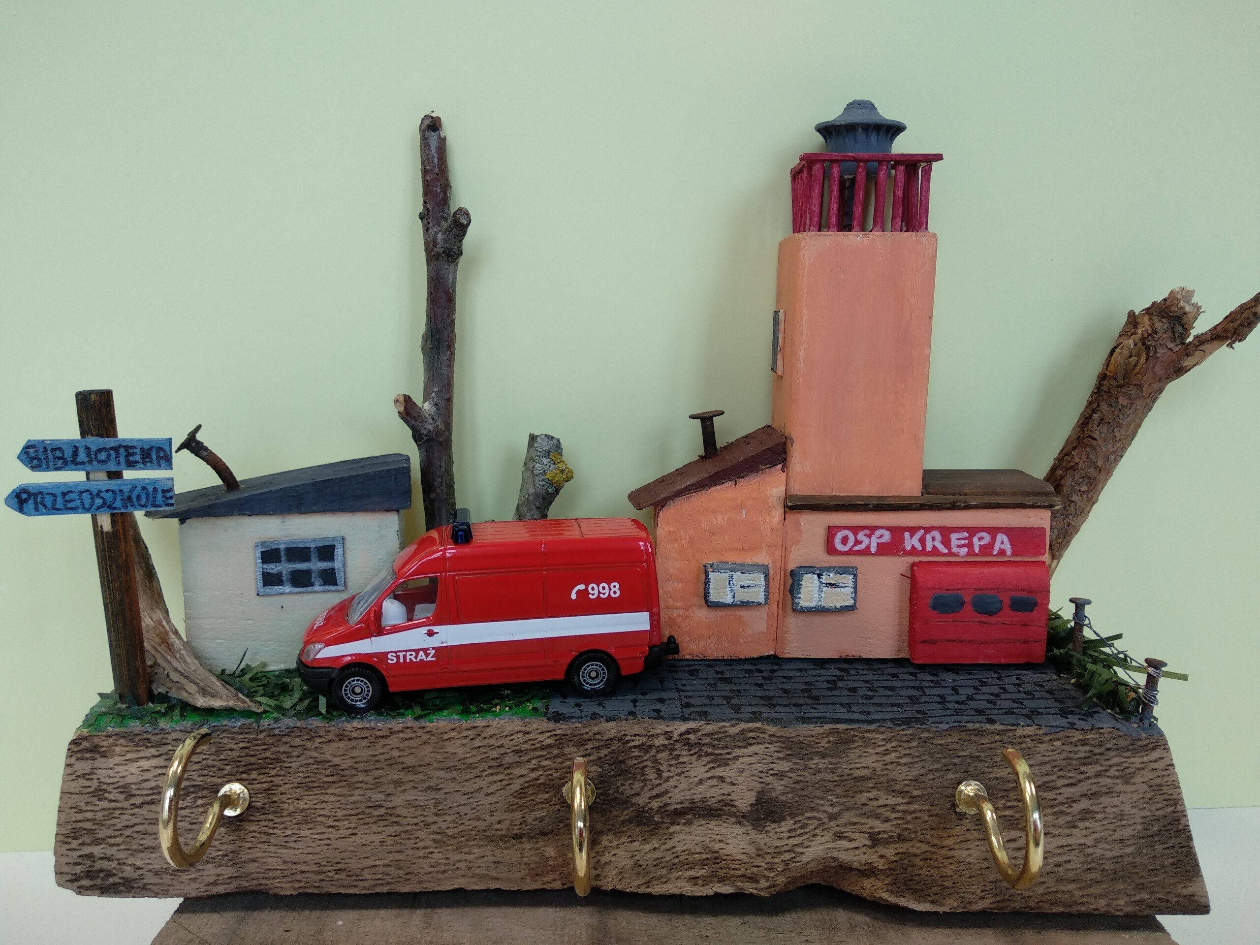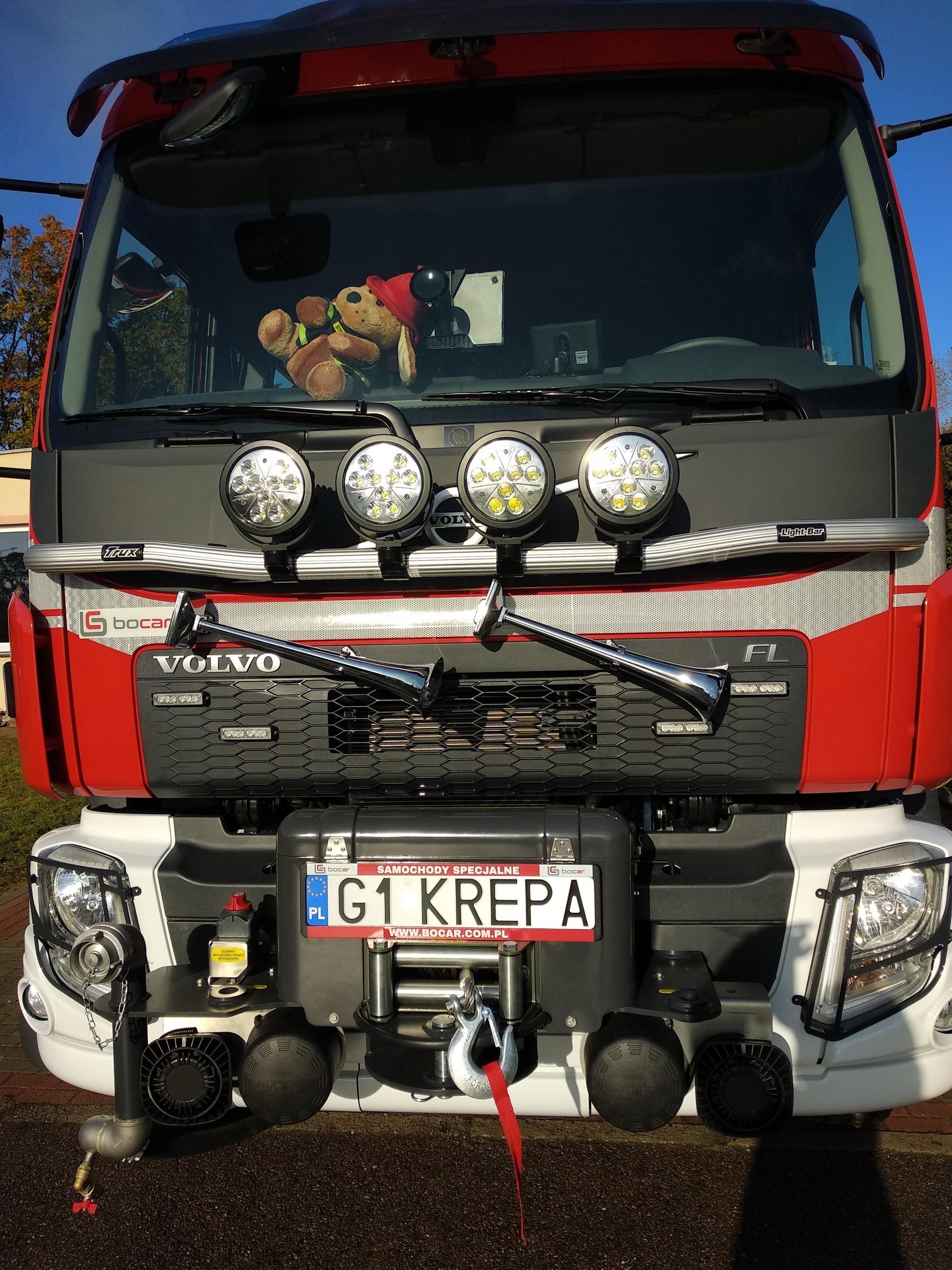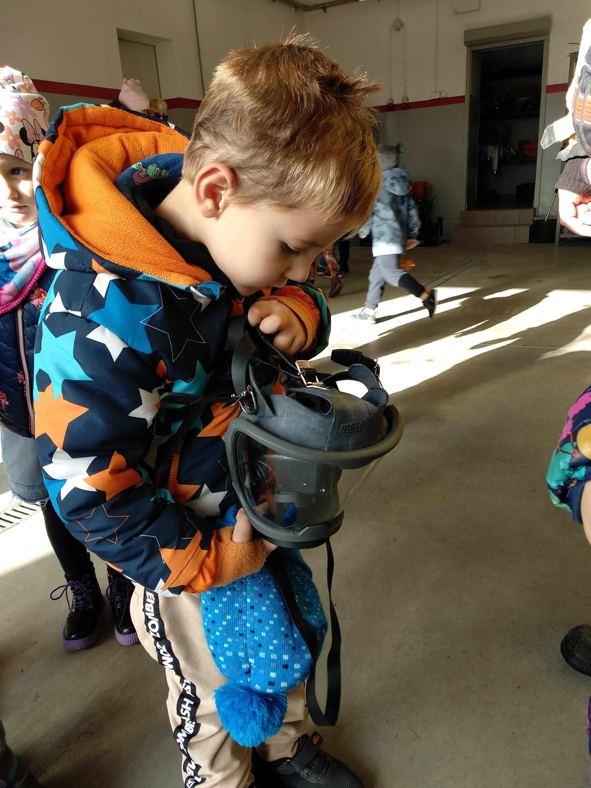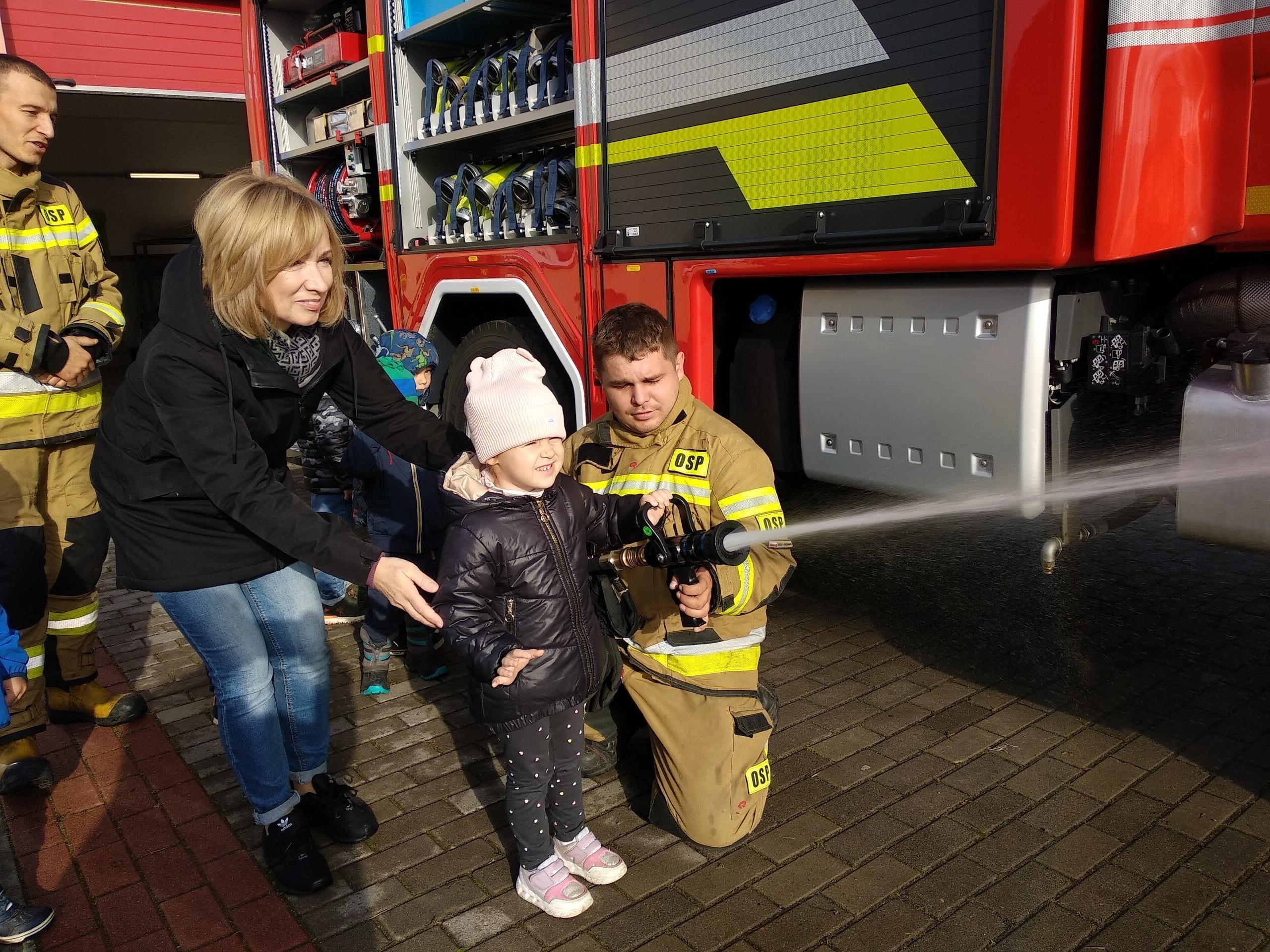 Bardzo przyjemnie i ciekawie spędziliśmy czas u naszych strażaków. Mieliśmy okazję nie tylko zobaczyć ich nowy samochód ratowniczo - gaśniczy wraz z całym wyposażeniem, ale również posłuchać w jakich sytuacjach dany sprzęt jest wykorzystywany. Strażacy zaprezentowali swój ubiór, który zakładają wezwani do akcji. Przybliżyli zakres swoich czynności, który nie tylko skupia się na gaszeniu pożarów. Dziękując strażakom za ich życzliwość, miłe przyjęcie i przekazanie ogromu wiedzy przekazaliśmy słodki upominek oraz nietypowy wieszak, np. na klucze, z makietą naszej straży. Wieszak ten, z wielkim zaangażowaniem, wykonała pani Basia Harnack, której bardzo dziękujemy. Strażacy, jak to strażacy zawsze przygotowani - każdy maluch otrzymał słodkość z niespodzianką, a do przedszkolnej biblioteczki otrzymaliśmy książeczkę o strażakach wraz z modelem wozu strażackiego. Dziękujemy i życzymy Wam bezpiecznego i skutecznego udziału w akcjach.