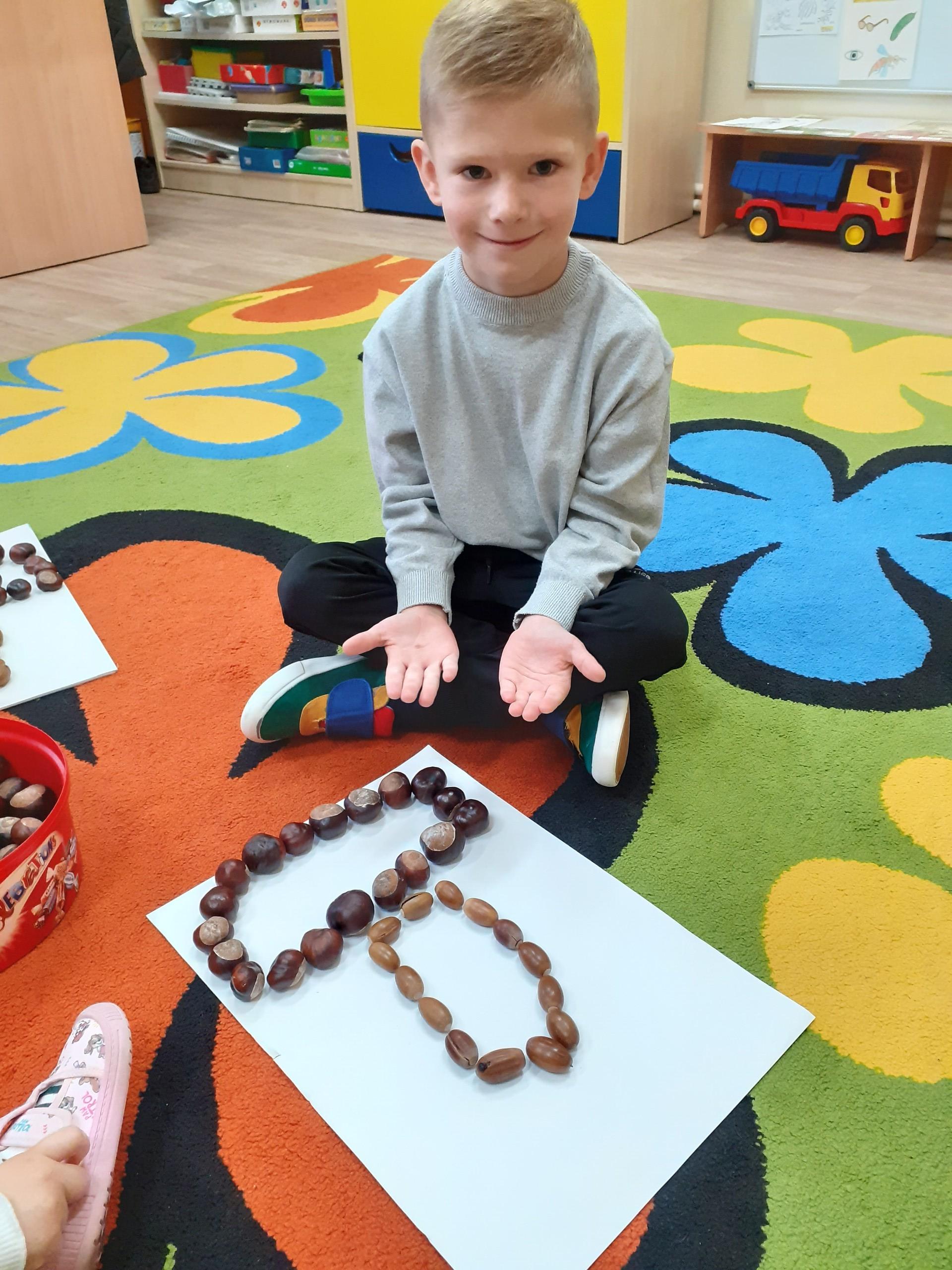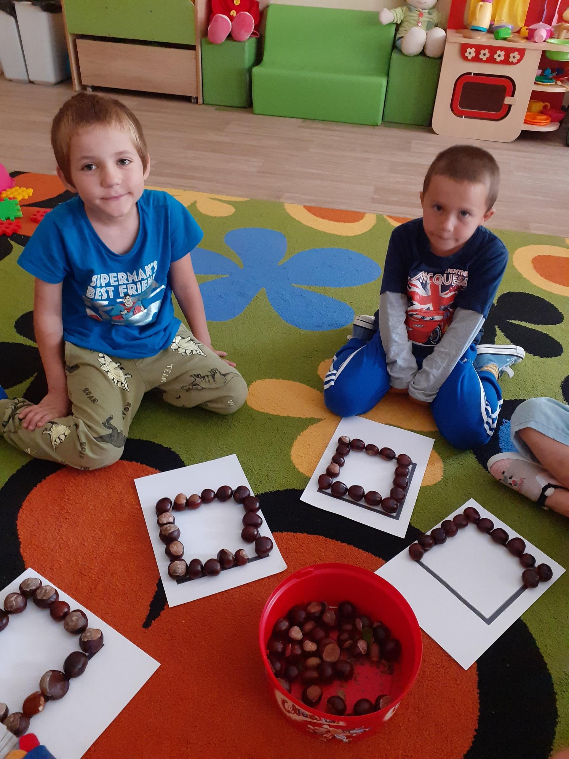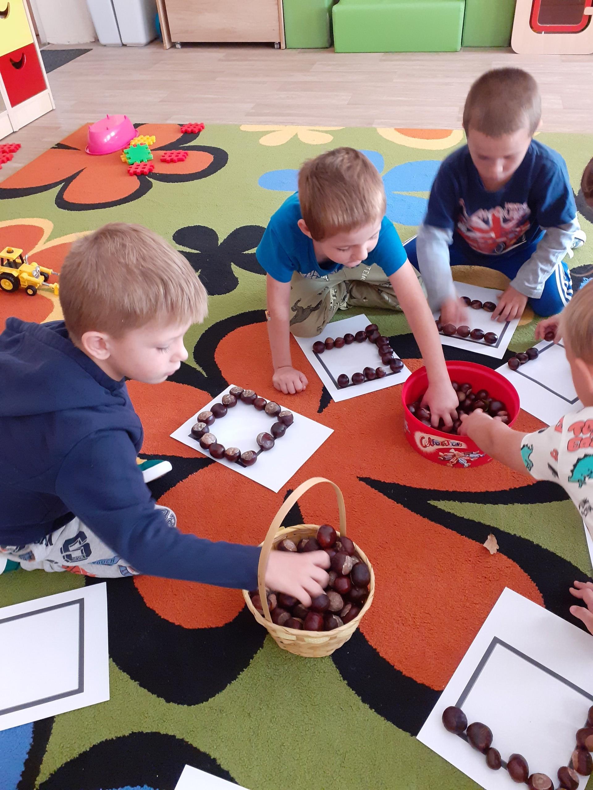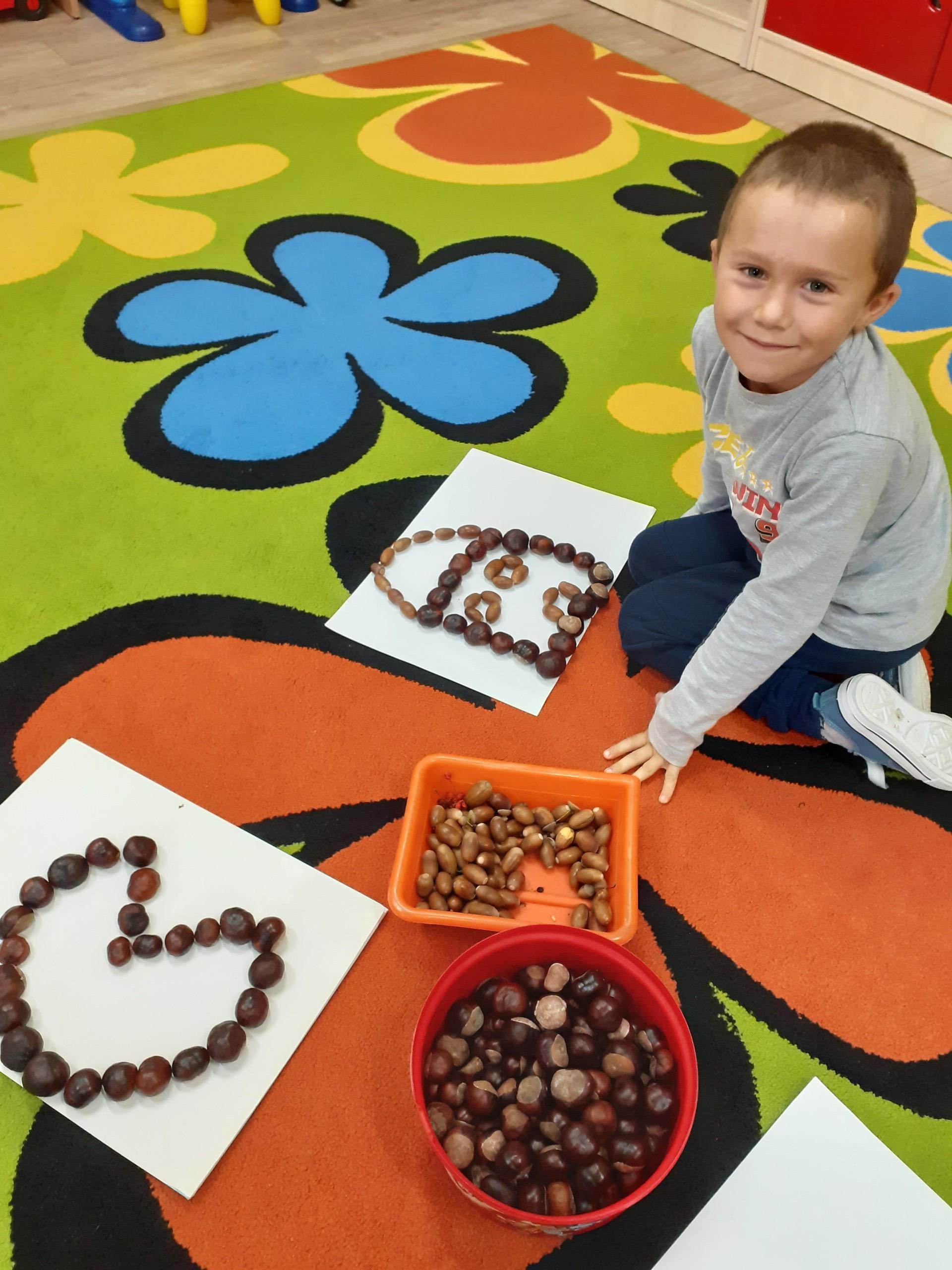 Wykorzystaliśmy dary dębu i kasztanowca do układania różnych wzorów.