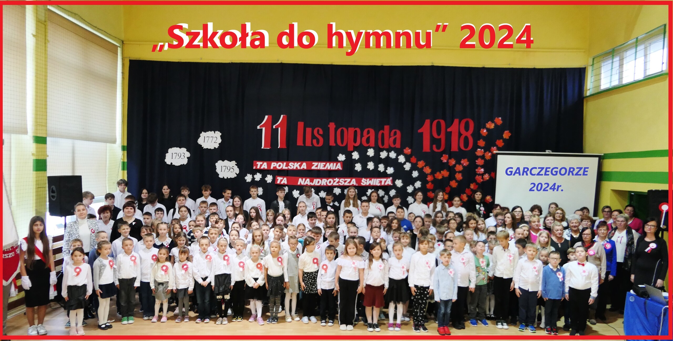 Z okazji Święta Niepodległości uczestniczyliśmy w uroczystym apelu, przygotowanym przez uczniów starszych klas. Wzięliśmy również udział w akcji "Szkoła do hymnu". Rodzice przygotowali dzieciom uroczyste, galowe stroje, a dzieci samodzielnie wykonały kokardę narodową i biało-czerwone chorągiewki.