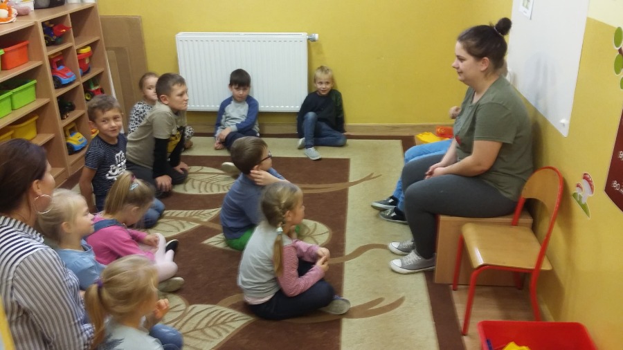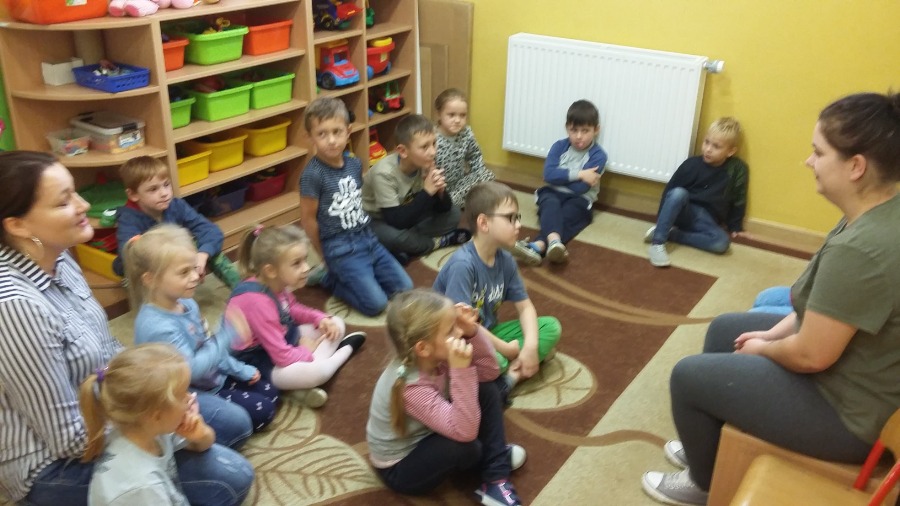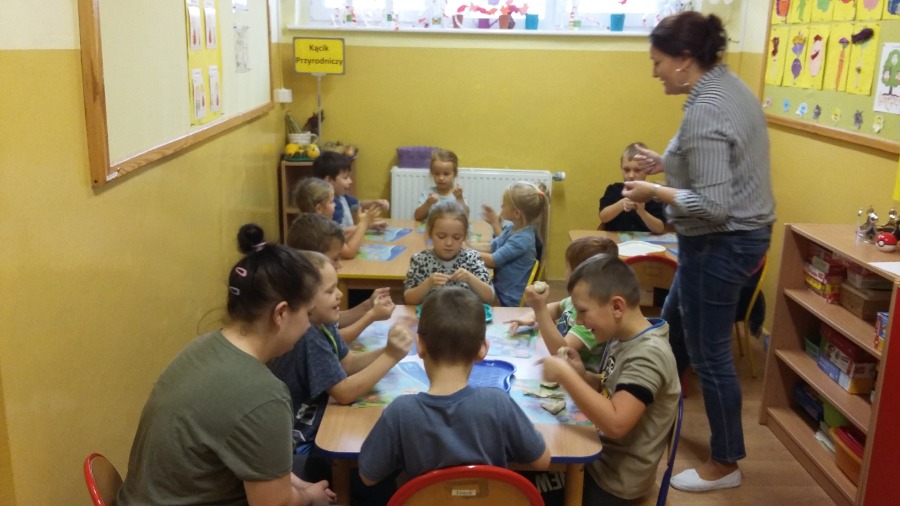 Zgodnie ze zwyczajem Kajtek zaprosił do naszej grupy gościa. Ciocia Kajetana opowiedziała nam o Kajtku, a następnie wzięła udział w lepieniu figurek-zwierząt z gliny rzeźbiarskiej. Przeczytała dzieciom bajkę o pt. "Przyjaciele dziadka Staszka" Pani Angelice dziękujemy za przybycie i niespodzianki.