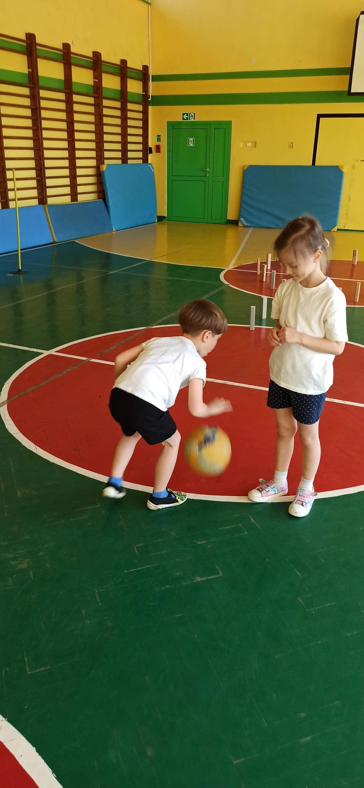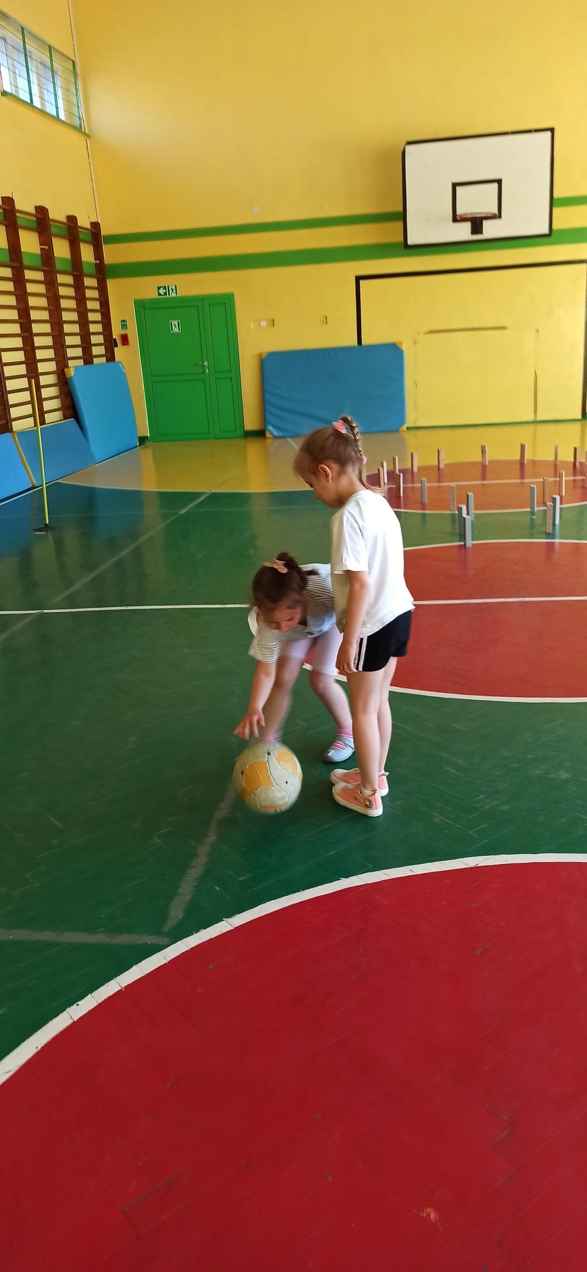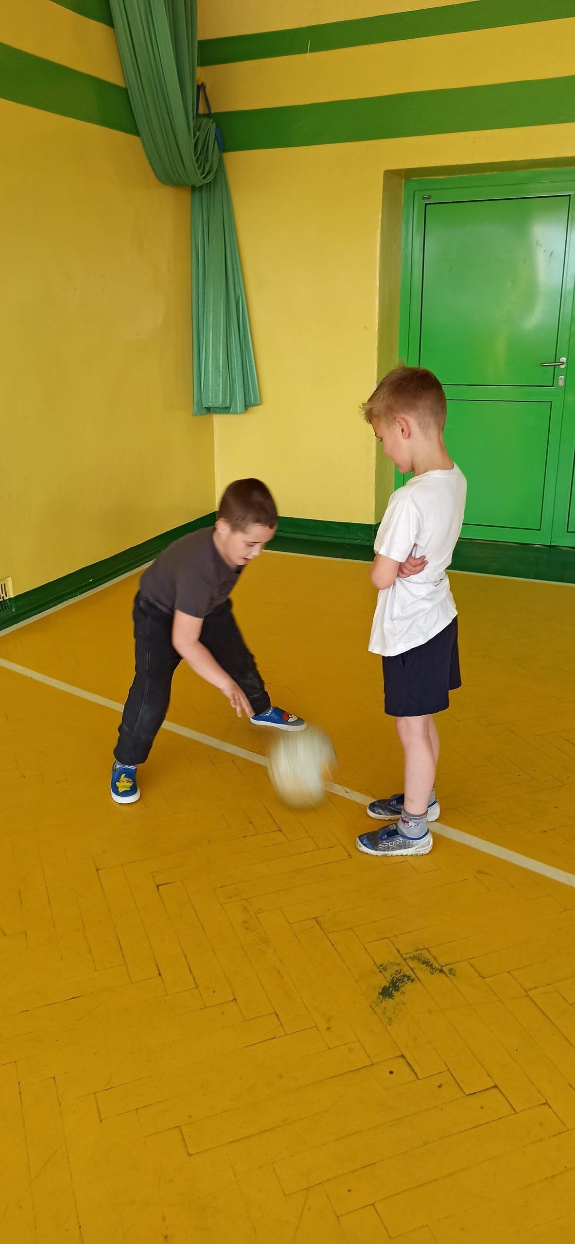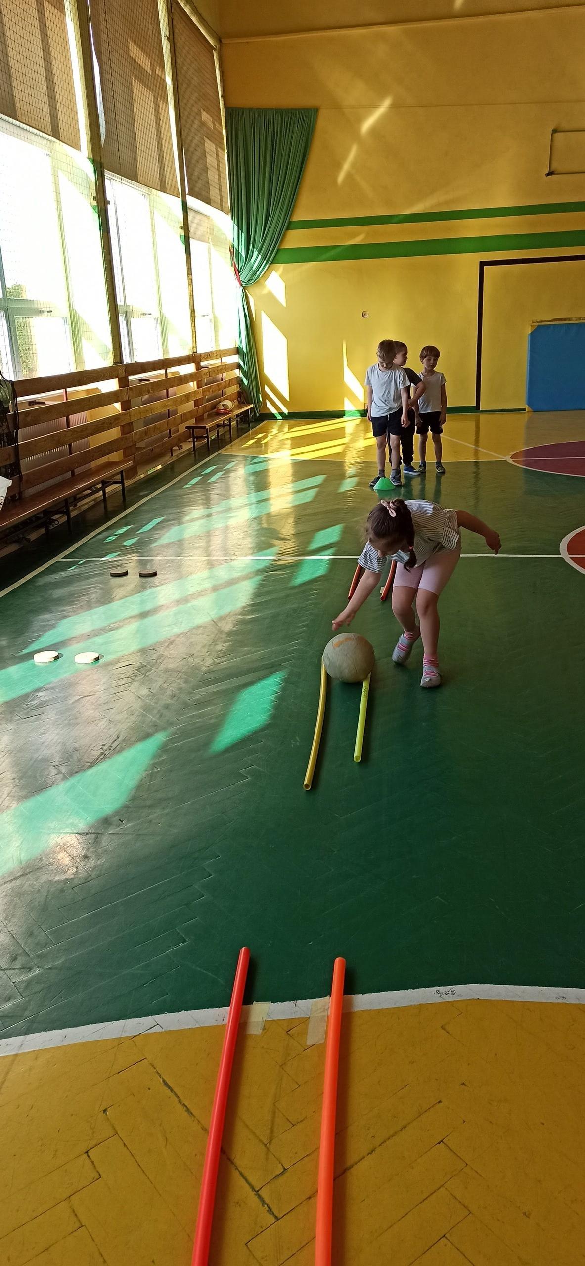 Wykonywaliśmy dziś ćwiczenia z piłką. Pokonywaliśmy tor przeszkód, slalom, ćwiczyliśmy podania i kozłowanie.