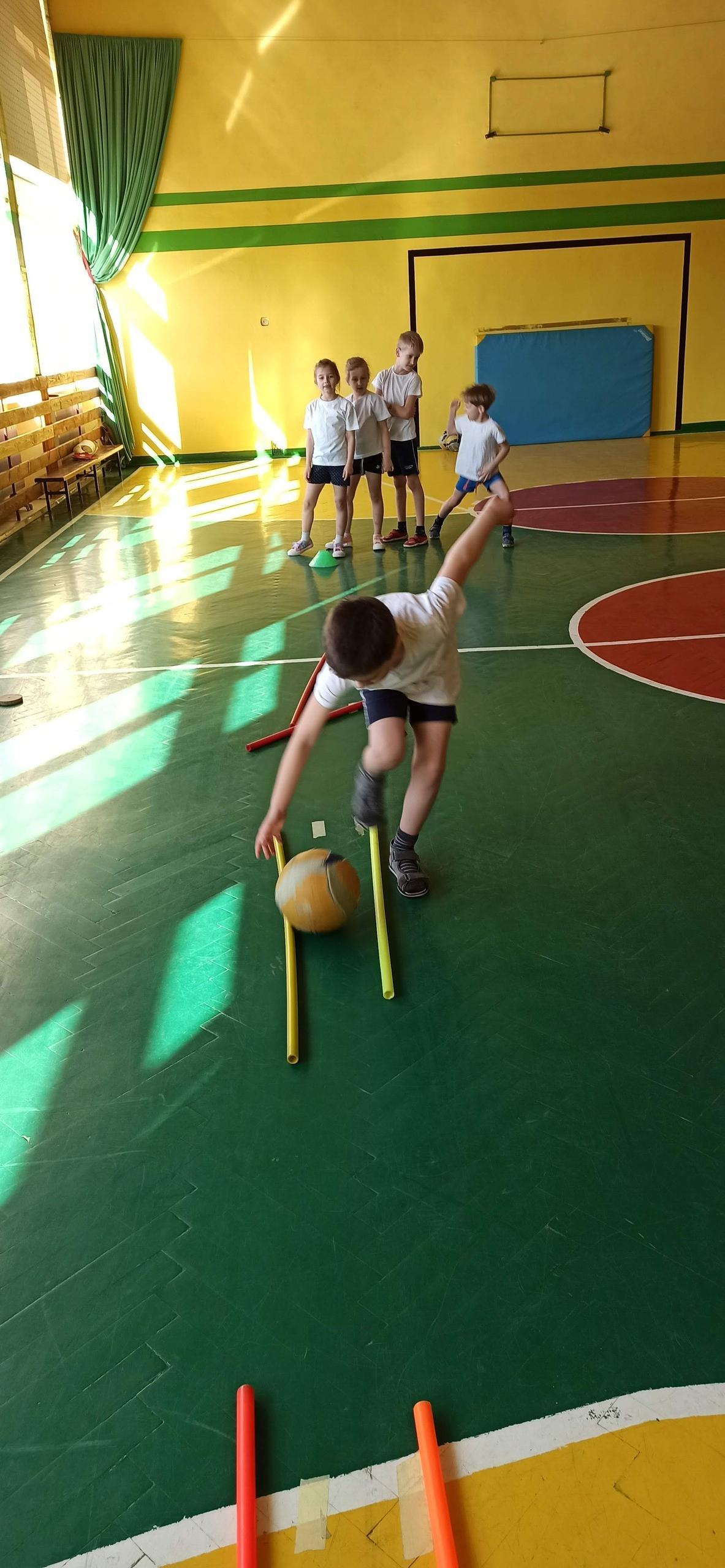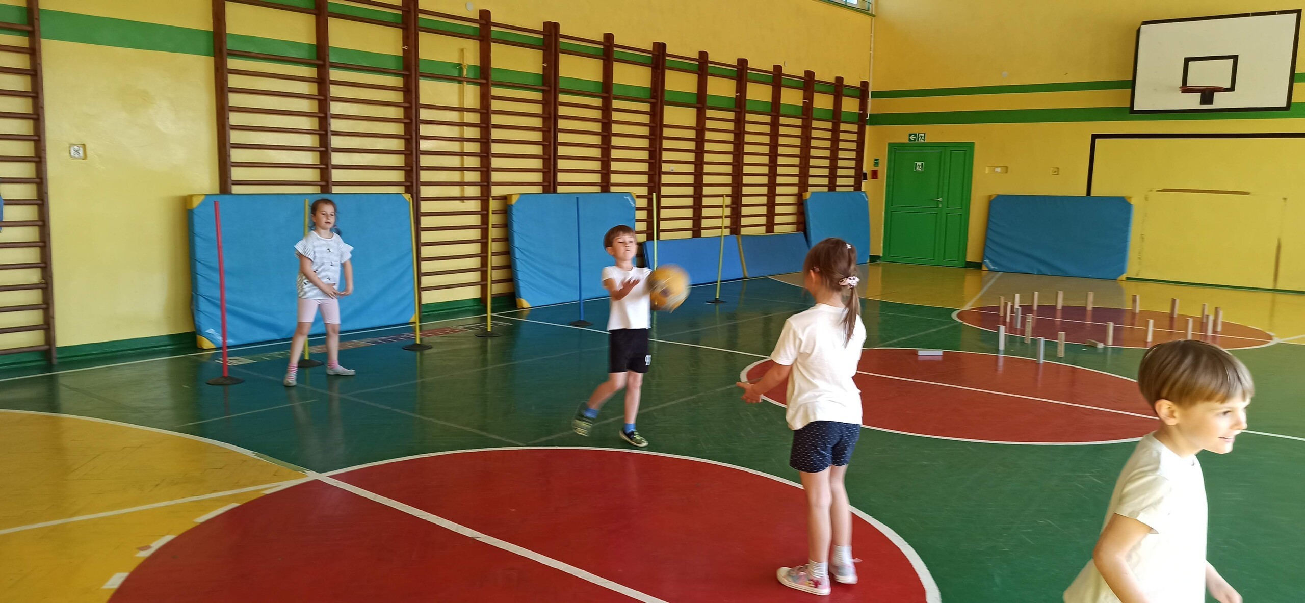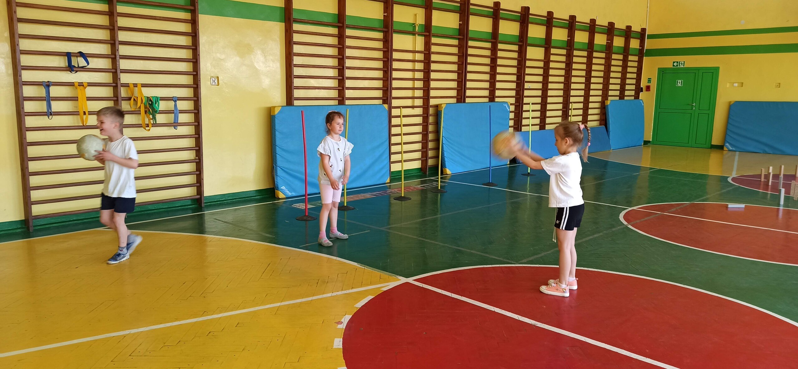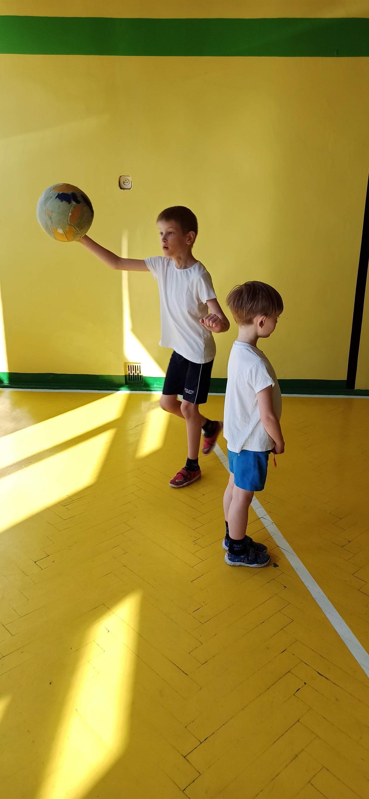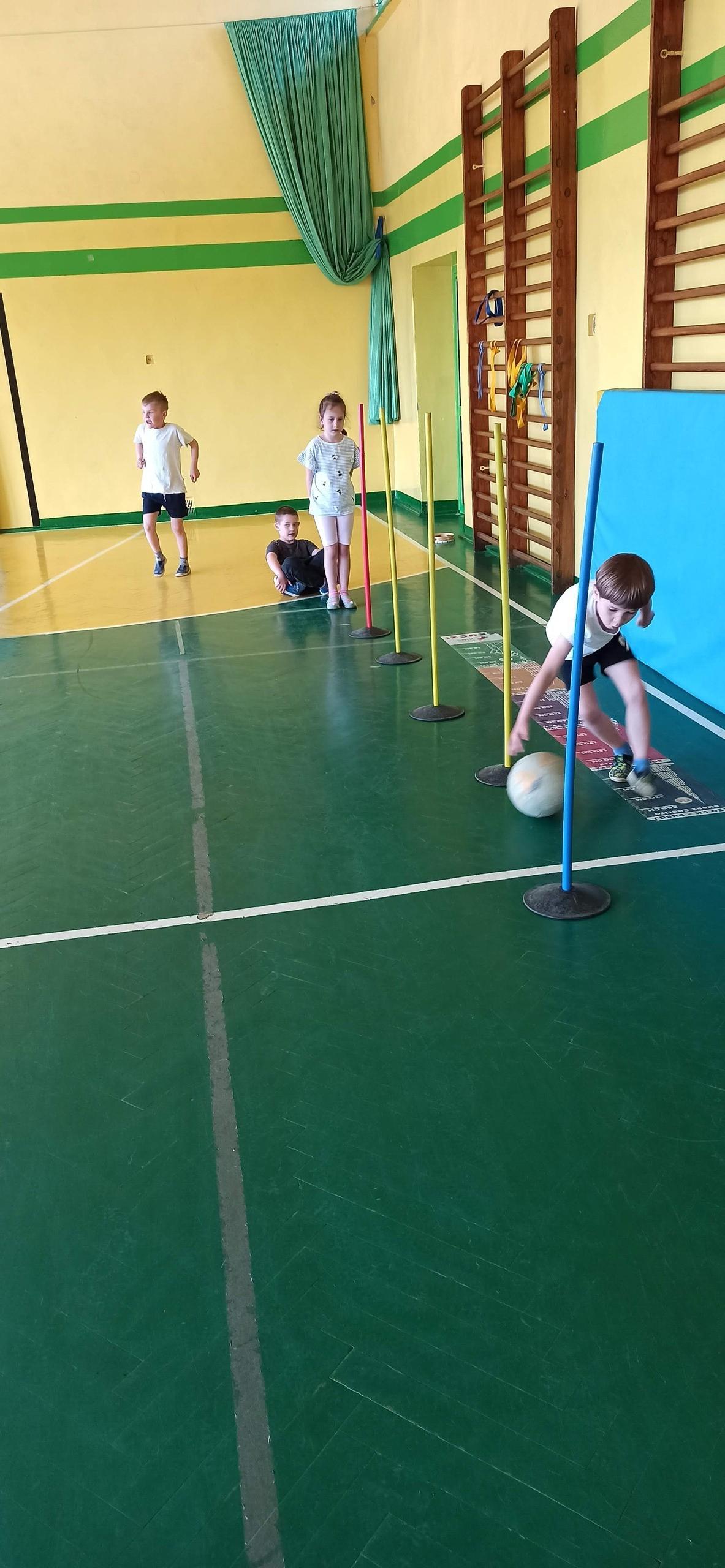 Wykonywaliśmy dziś ćwiczenia z piłką. Pokonywaliśmy tor przeszkód, slalom, ćwiczyliśmy podania i kozłowanie.