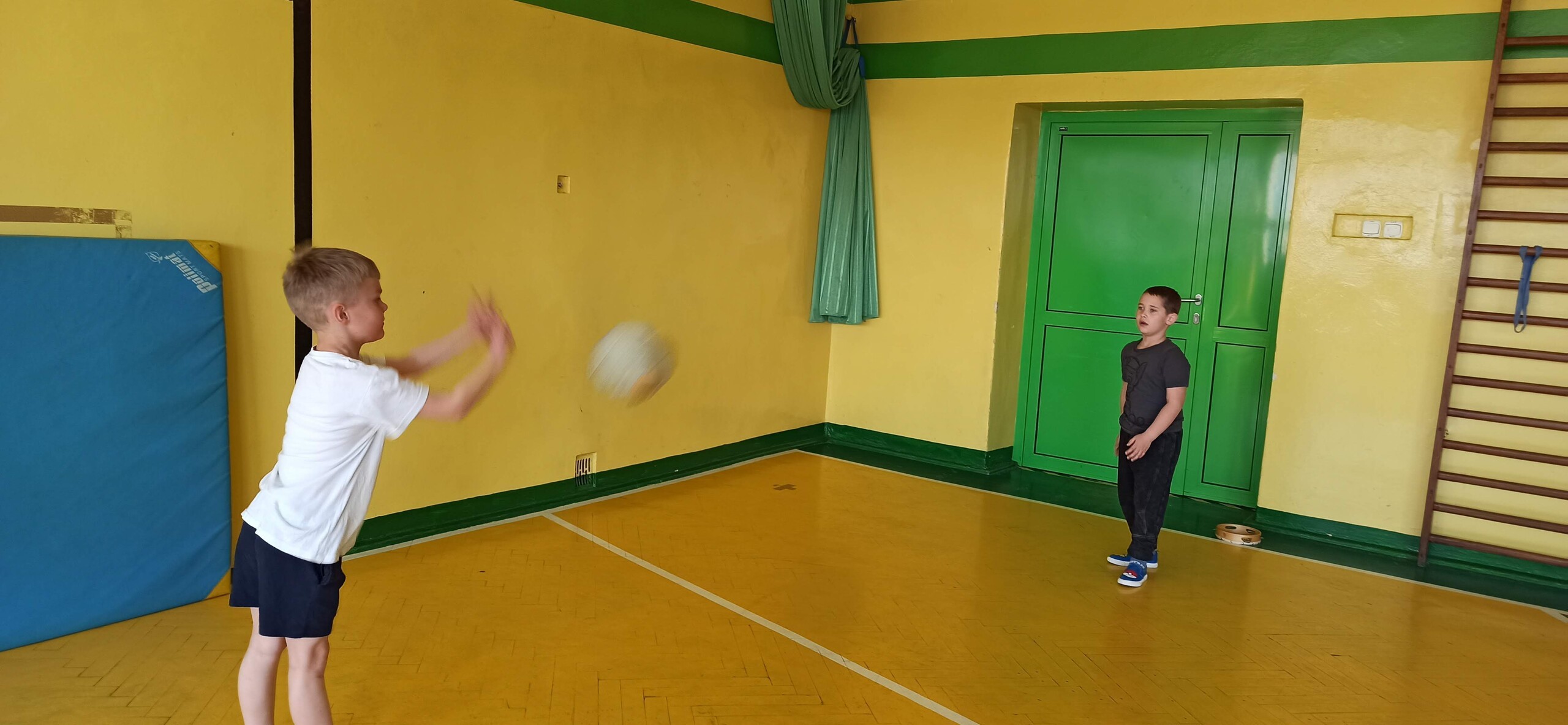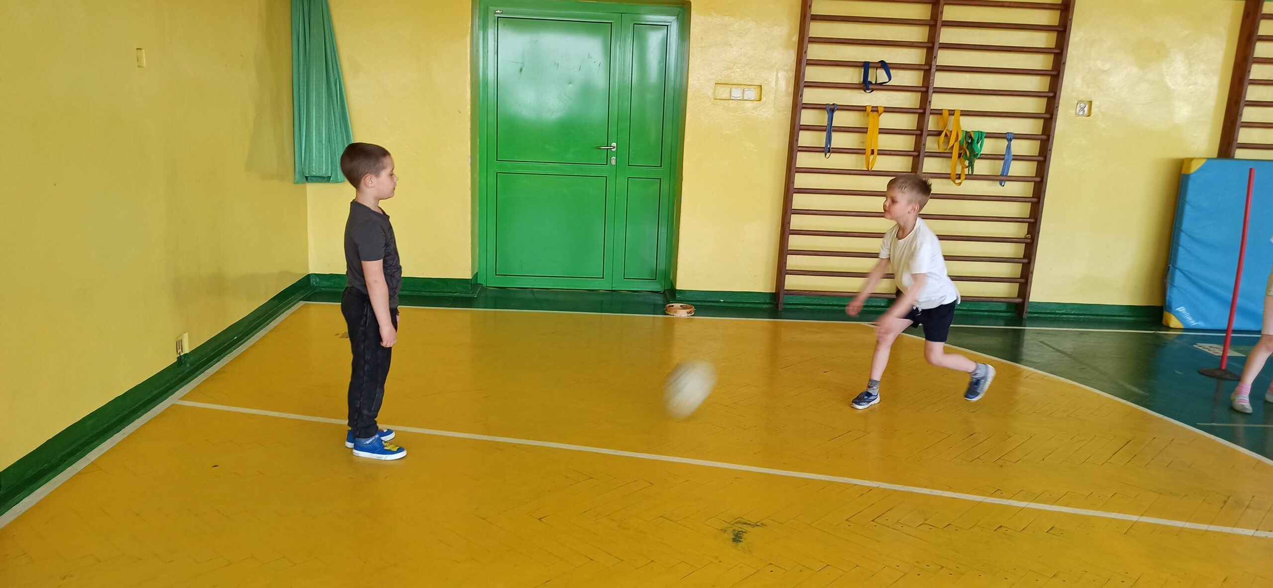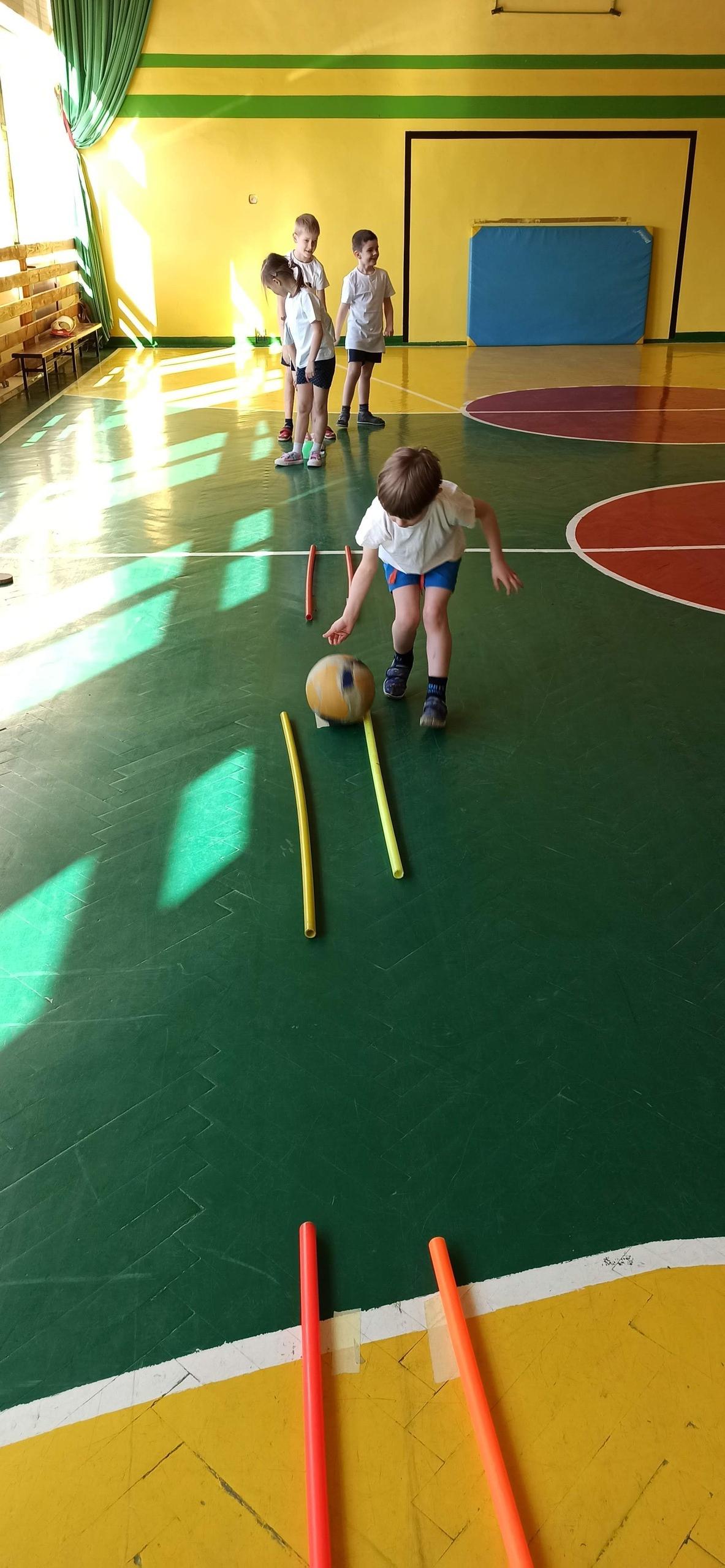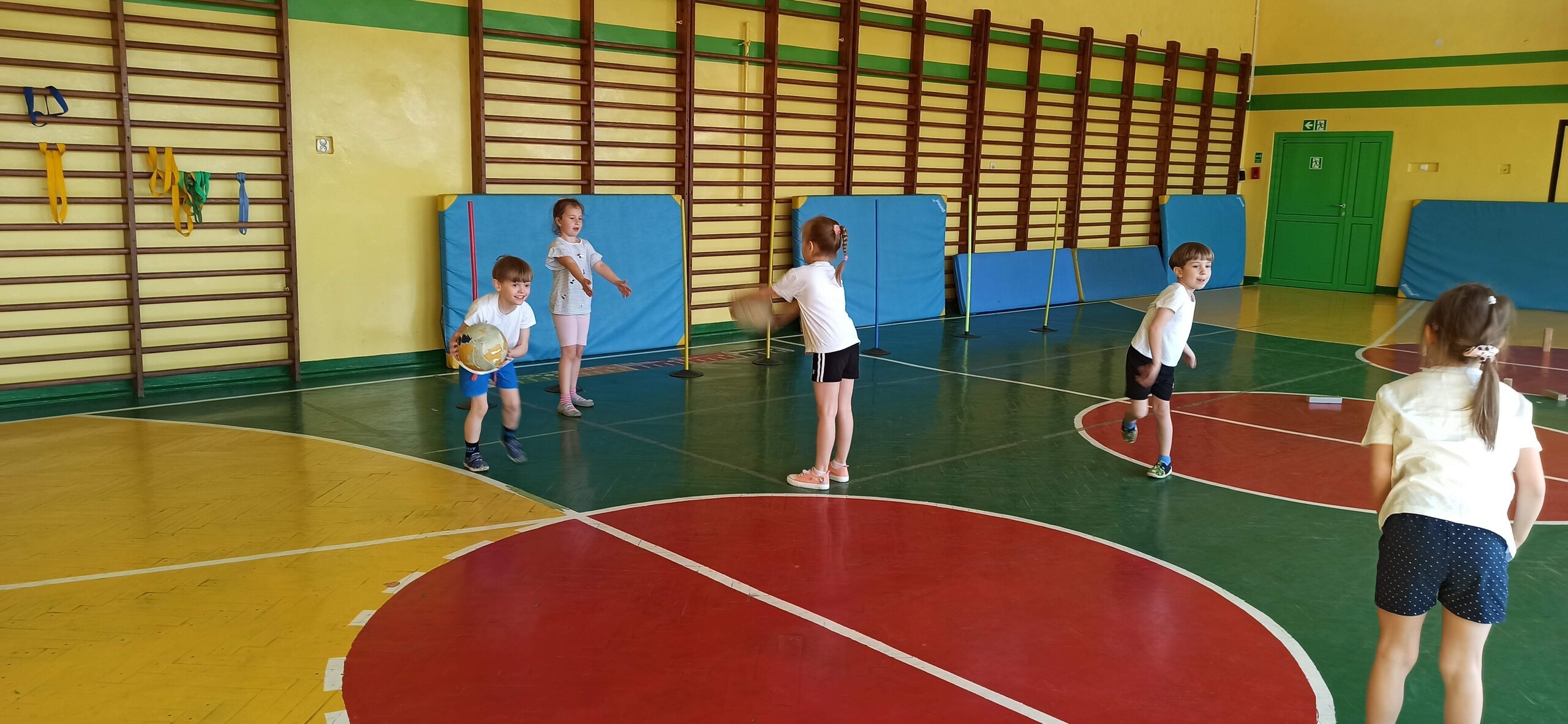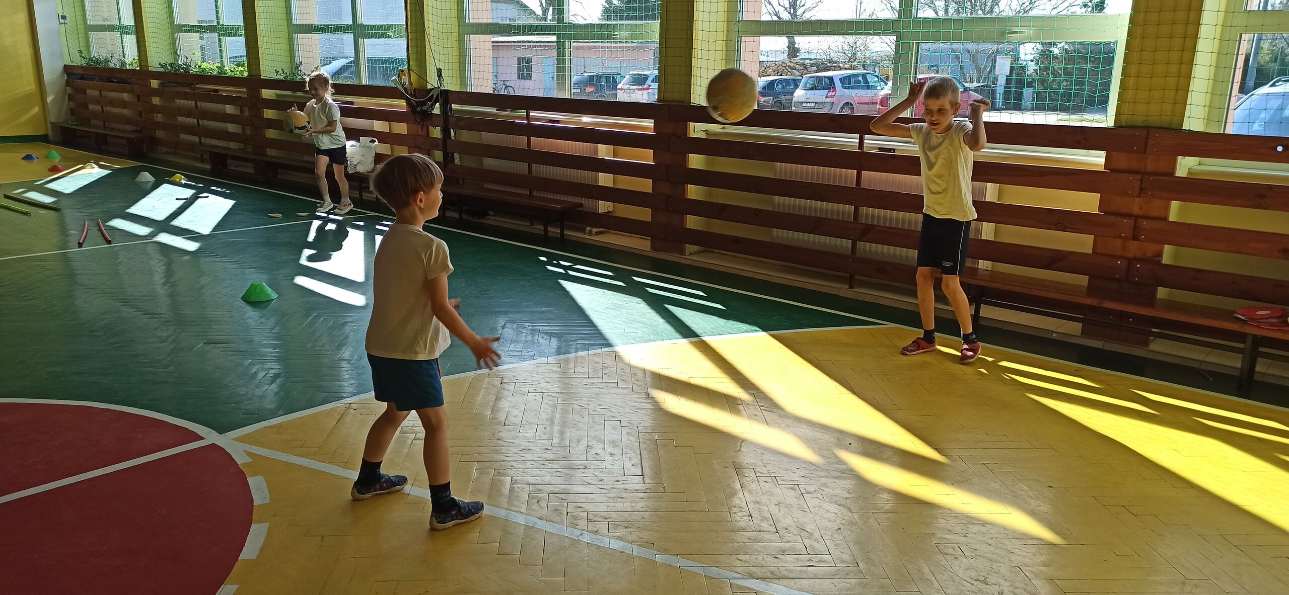 Wykonywaliśmy dziś ćwiczenia z piłką. Pokonywaliśmy tor przeszkód, slalom, ćwiczyliśmy podania i kozłowanie.