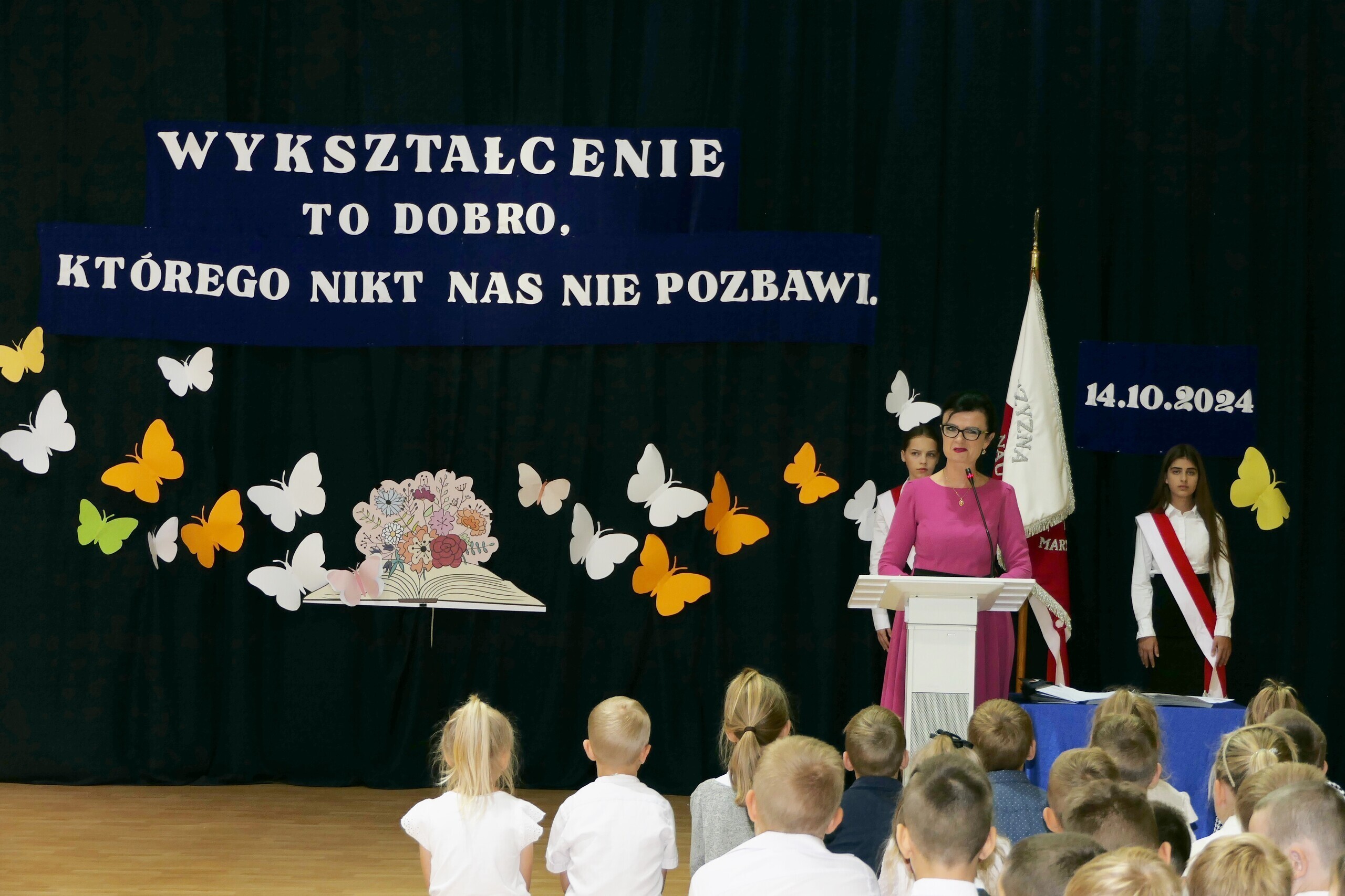Z okazji Dnia Edukacji Narodowej uczniowie złożyli życzenia nauczycielom uczącym w grupie i innym pracownikom szkoły. Wzięliśmy udział w uroczystym apelu przygotowanym przez uczniów klas czwartych. Pani Dyrektor wręczyła nauczycielom okolicznościowe nagrody.