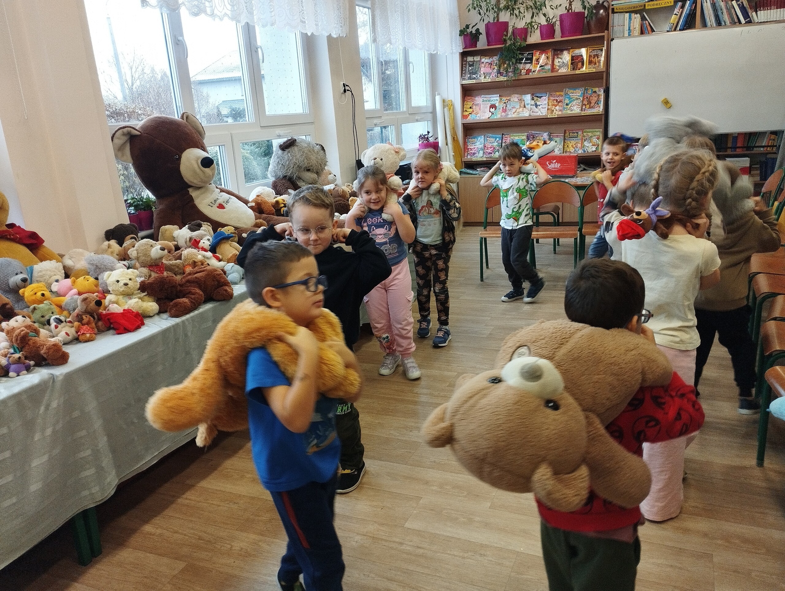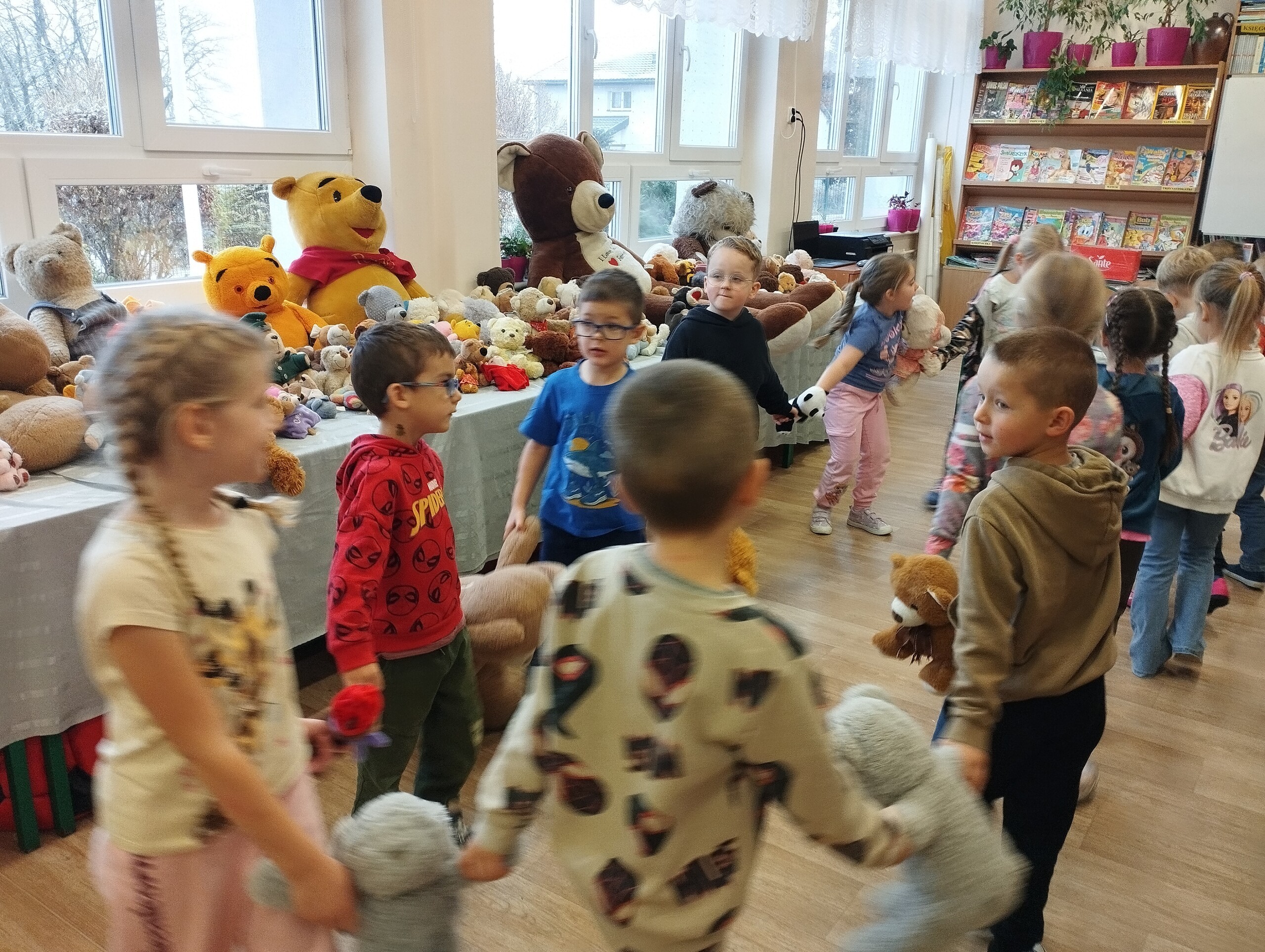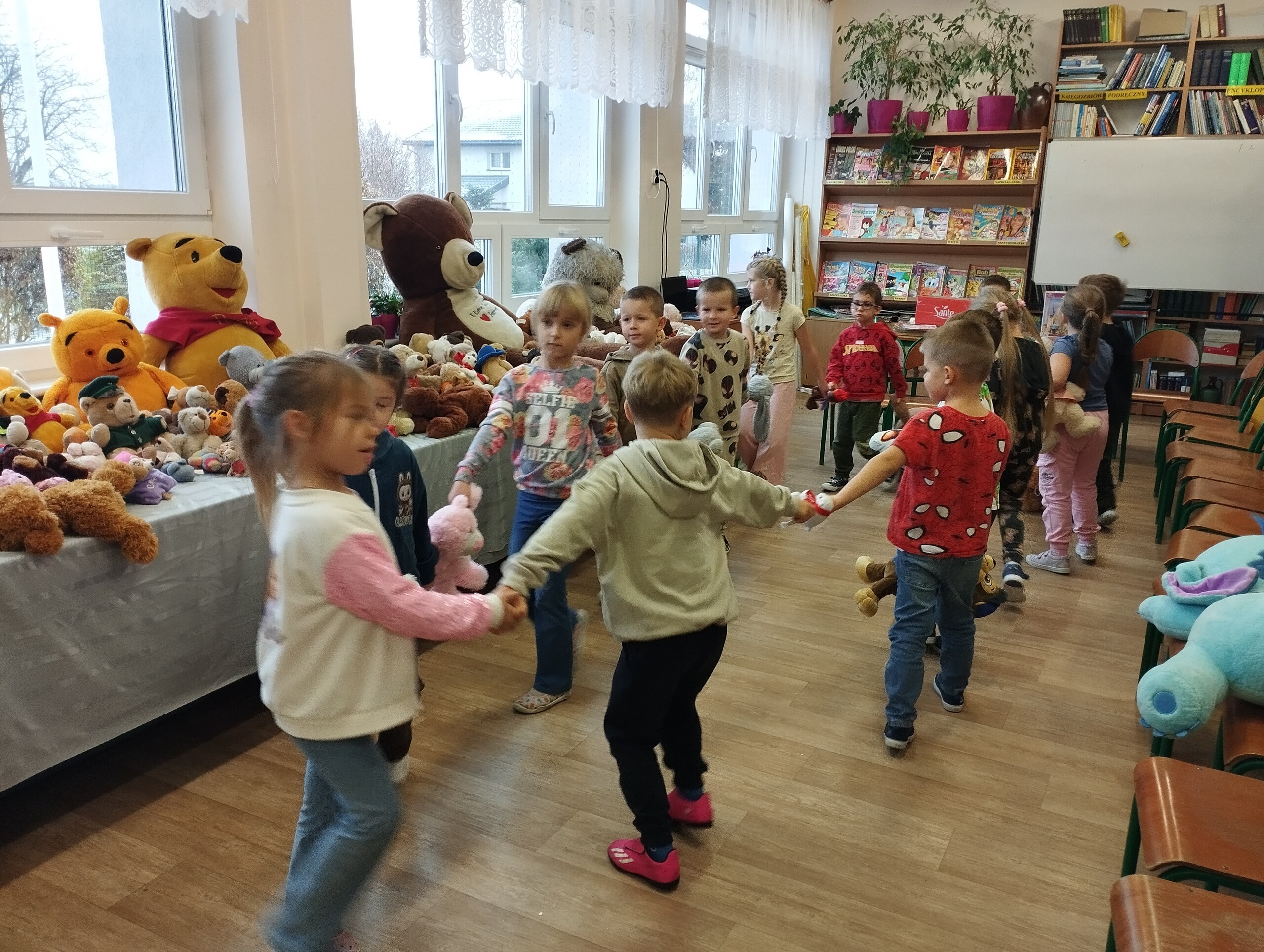 Z okazji Dnia Pluszowego Misia wzięliśmy udział w lekcji bibliotecznej, przygotowanej przez panią Bożenę Lenart. Były ciekawe zagadki, opowiadania o historii misiowych przytulanek, taniec z misiami. Każdy w tym dniu mógł przynieść swojego misia lub inną swoja przytulankę.