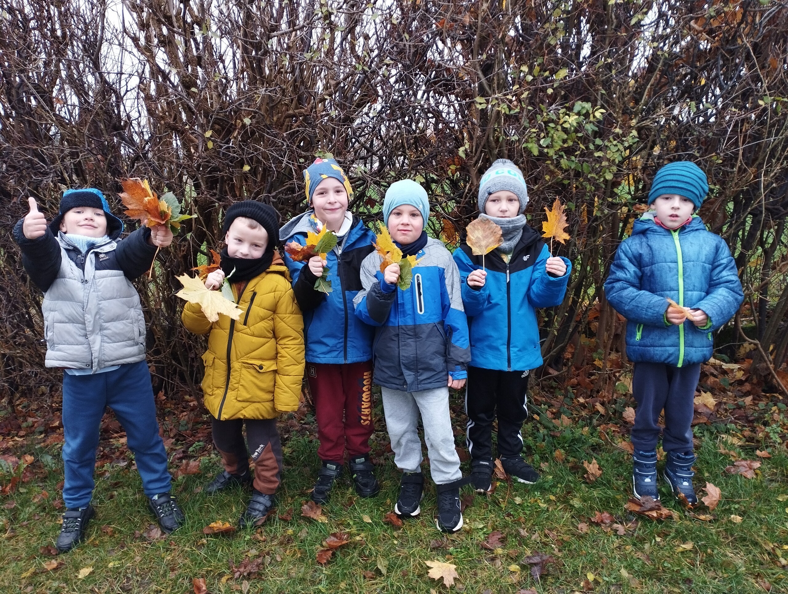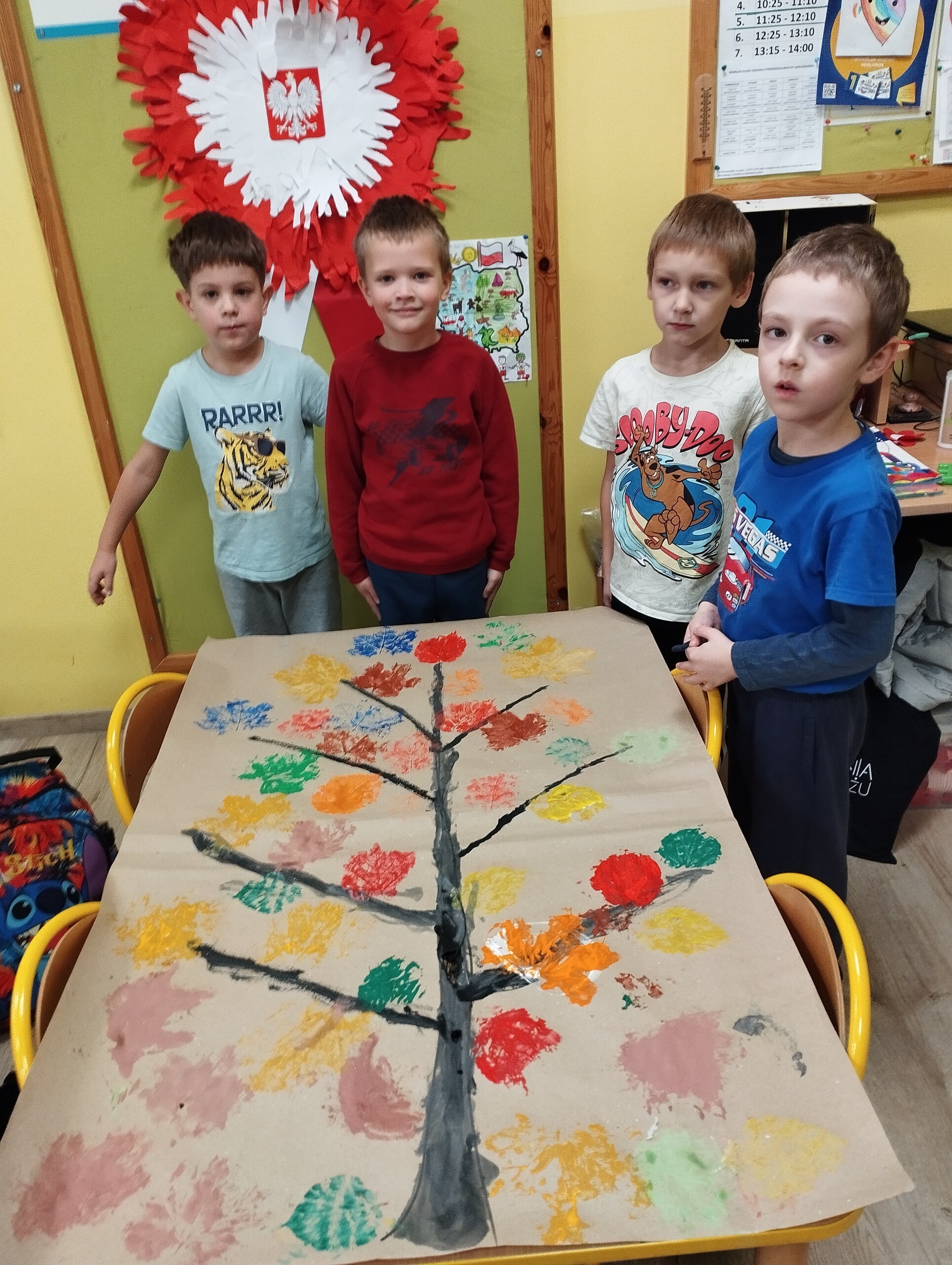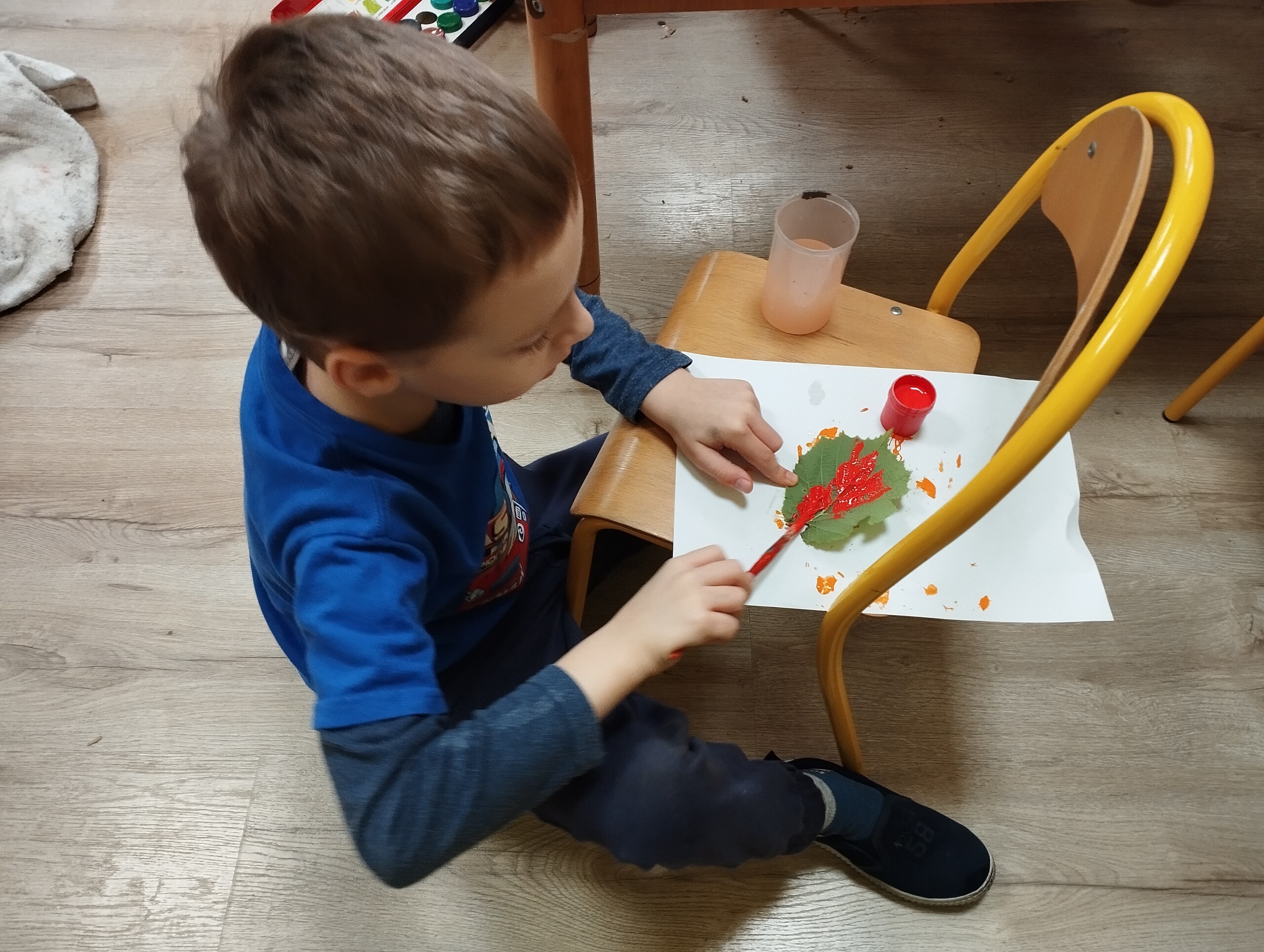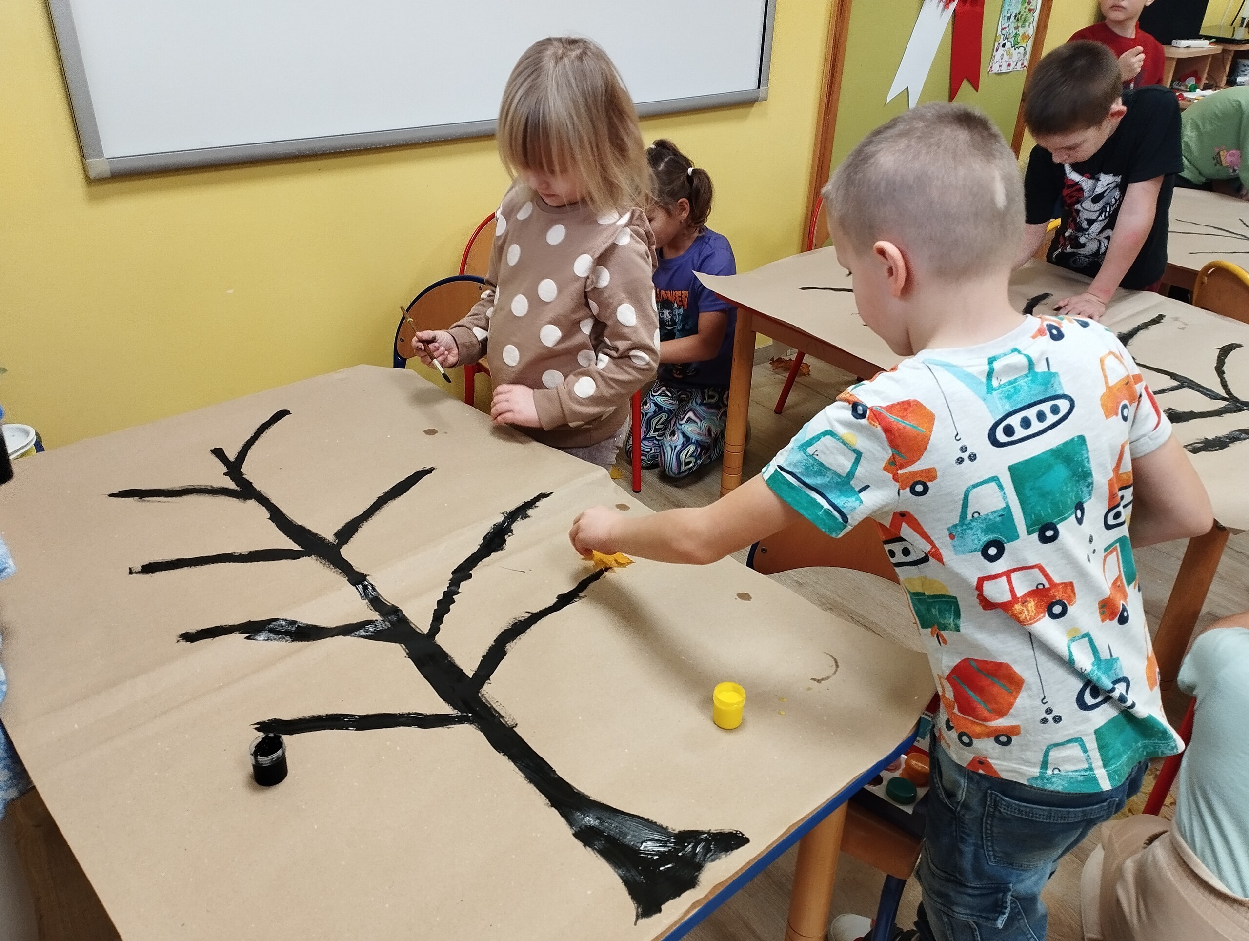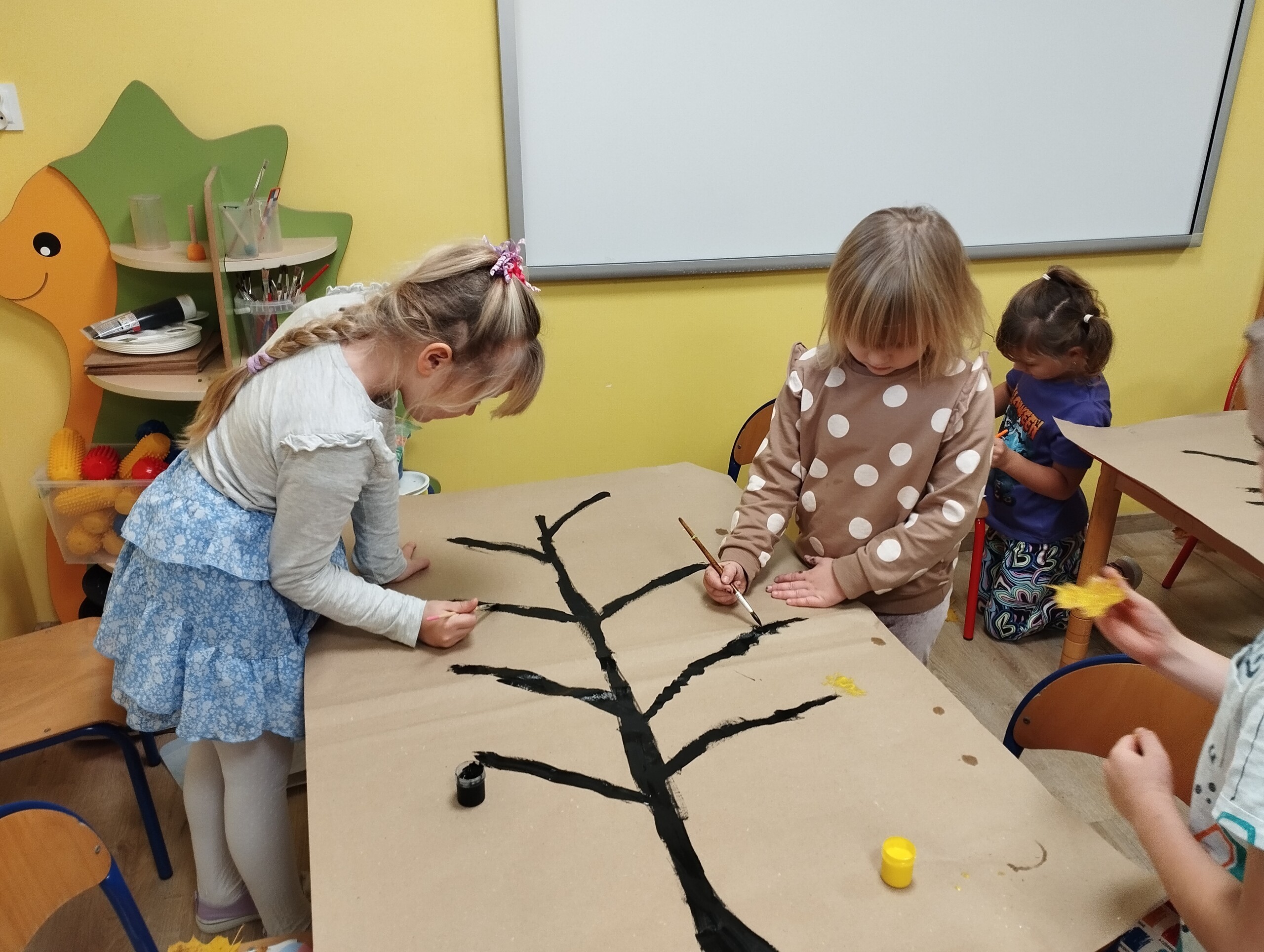 Dziś zbieraliśmy kolorowe jesienne liście i przy ich pomocy wykonaliśmy jesienne drzewa.