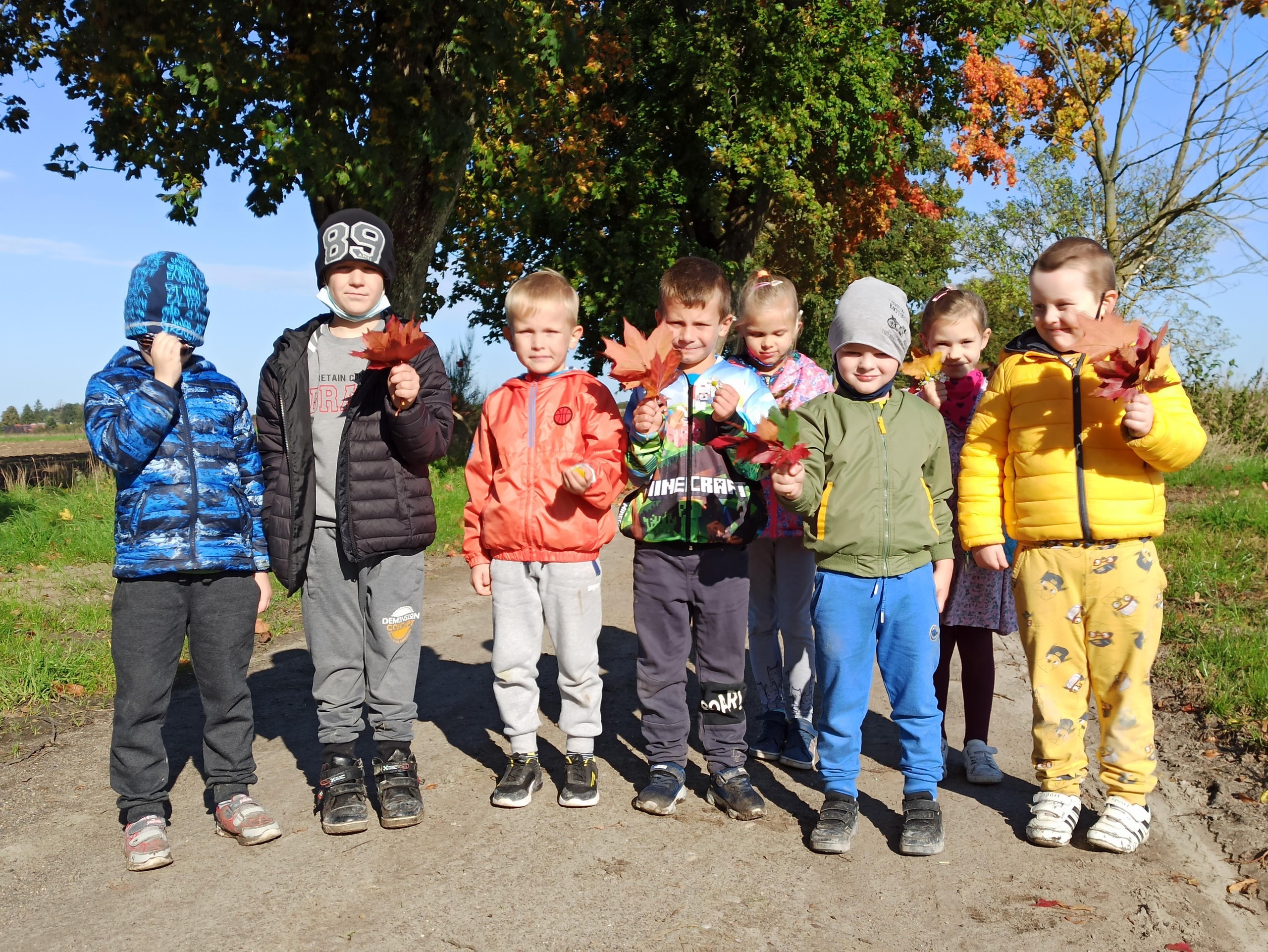 Korzystając z pięknej pogody wybraliśmy się na jesienny spacer. Obserwowaliśmy zmiany zachodzące w przyrodzie, zbieraliśmy piękne kolorowe liście i kasztany.