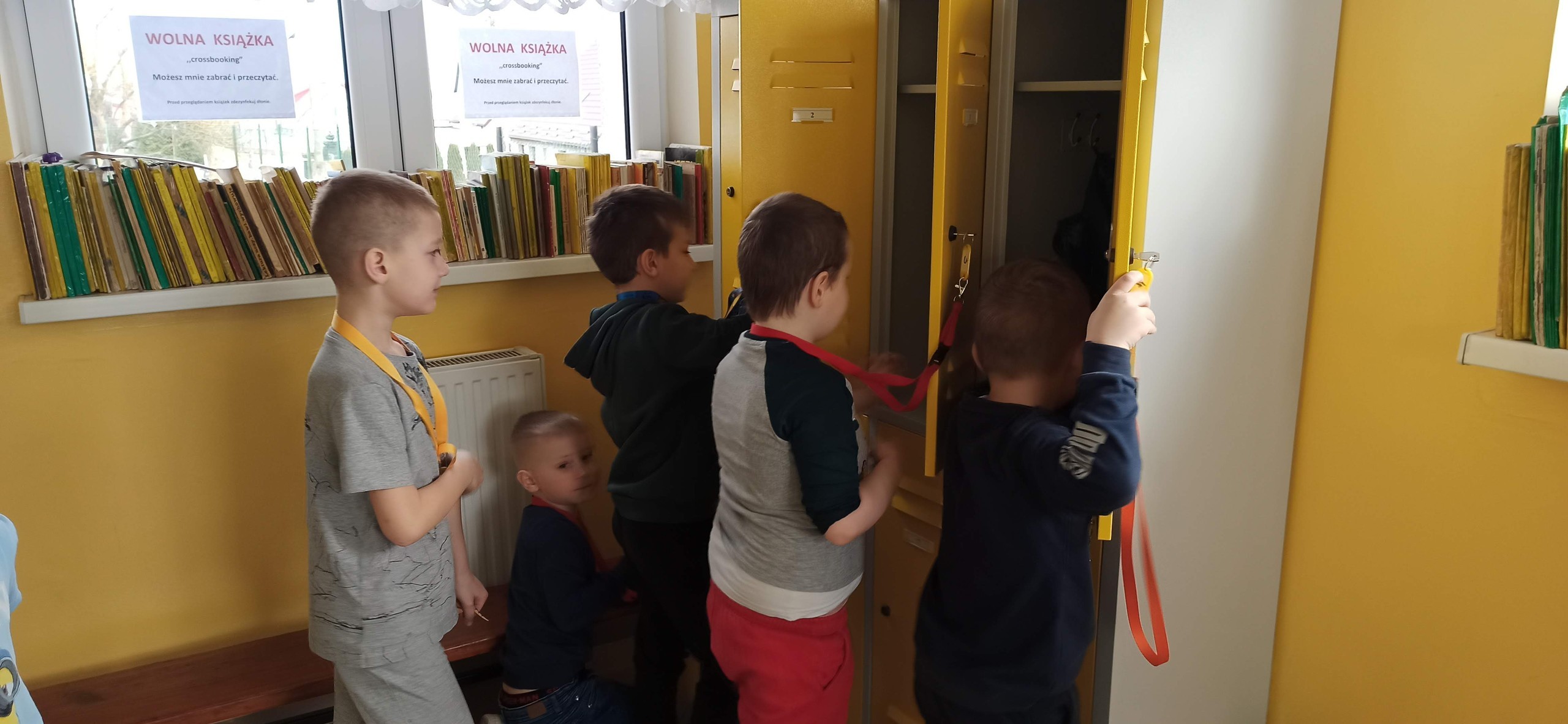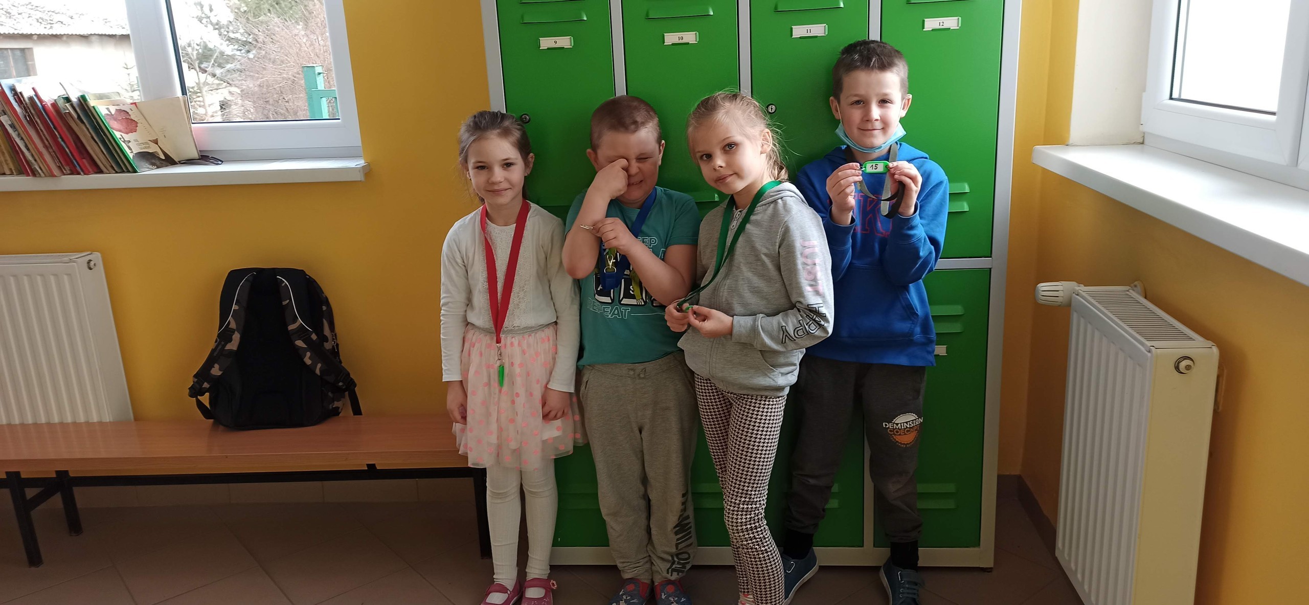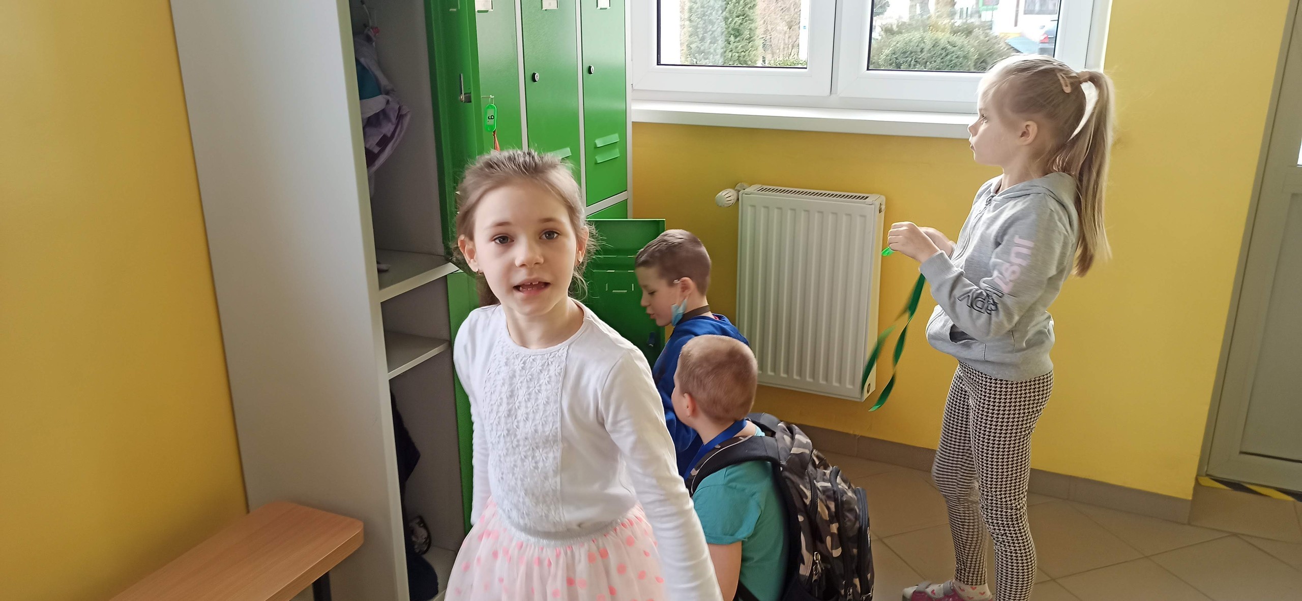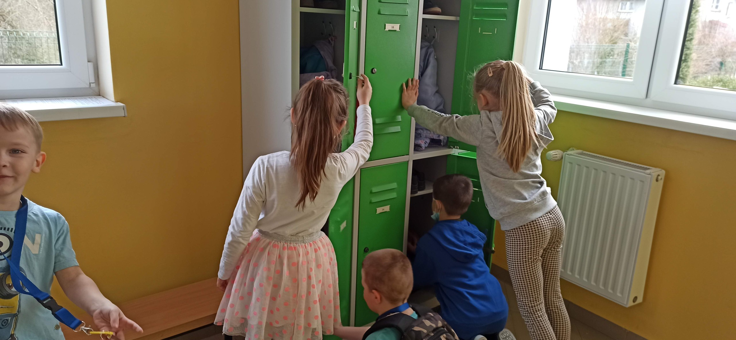 Z powodu reorganizacji i remontu naszej sali, dzieci otrzymały szafki uczniowskie na korytarzu szkolnym. Każdy poczuł się dumny z tego "awansu". Radości i emocji było wiele przy wybieraniu numerków, kolorów szafek, pasków na klucze. Wszyscy uczyli się samodzielnie otwierać i zamykać szafki. Poznawaliśmy zasady korzystania z nich, ustaliliśmy sposoby na przechowywanie klucza.