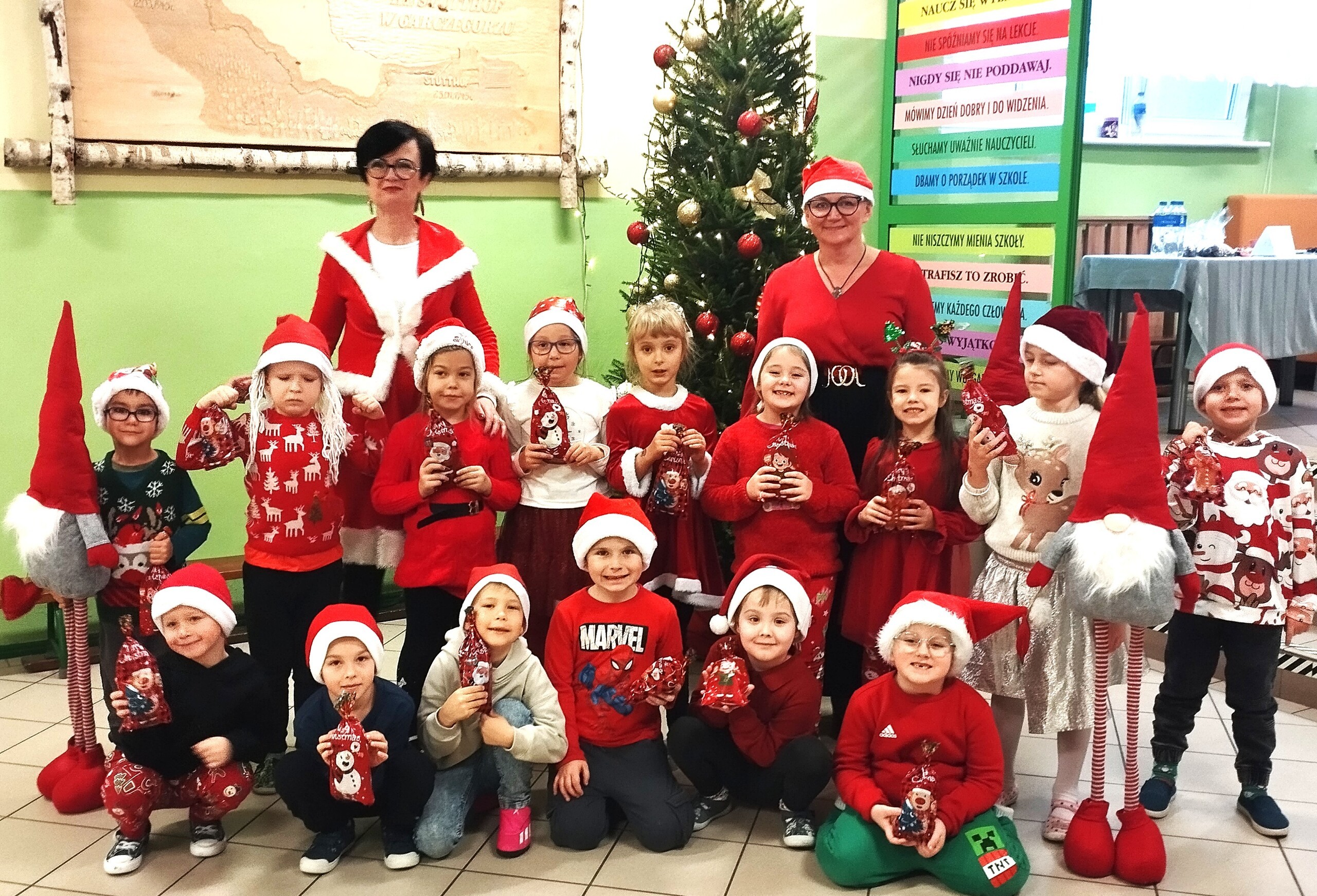 Dziś świętowaliśmy wspólnie Mikołajki. Wszyscy przygotowali stroje o tematyce świątecznej, wspólnie udekorowaliśmy naszą salę i udaliśmy się na poszukiwanie Świętego Mikołaja. Okazało się, że w czasie, gdy szukaliśmy go na górnym korytarzu, on podrzucił nam prezenty. Wszystkie dzieci bardzo się starały, więc Mikołaj to docenił i przygotował prezenty dla każdego. Pani Dyrektor Alicja Guźniczak również pomagała dziś Mikołajowi i przywiozła nam pięknego świątecznego skrzata, który ozdobi naszą klasę i umili nam przedświąteczny czas.