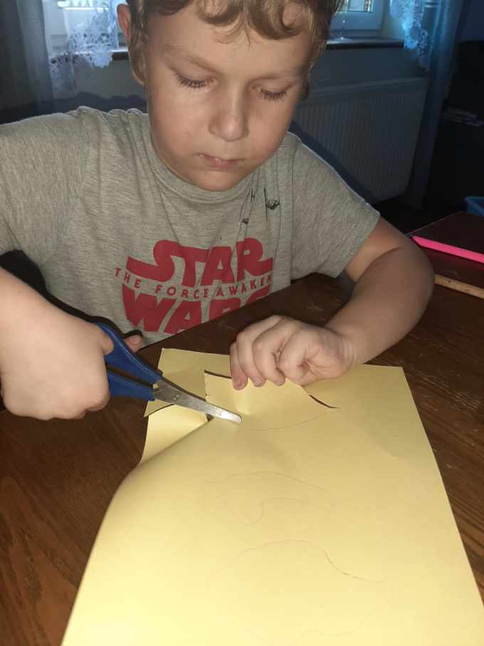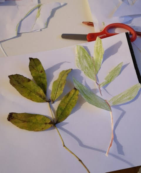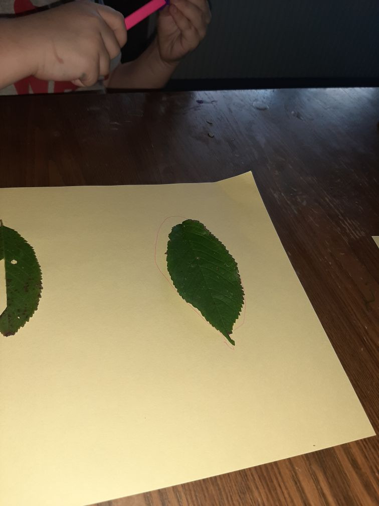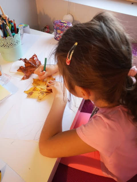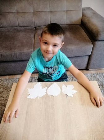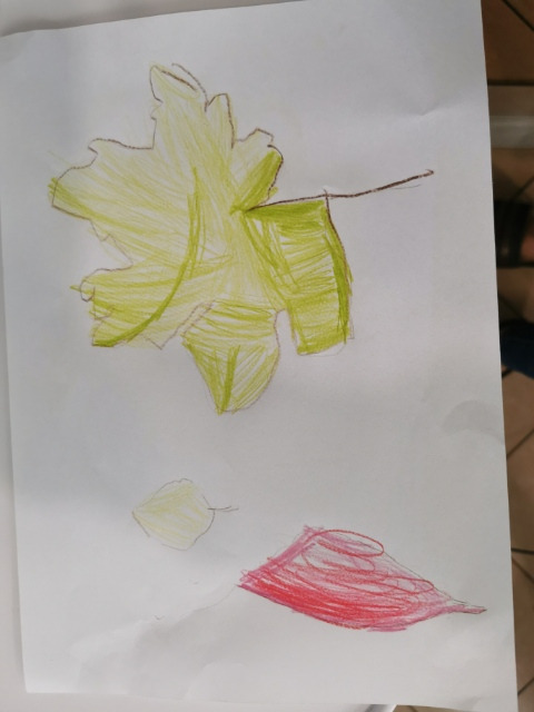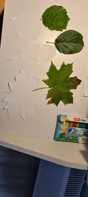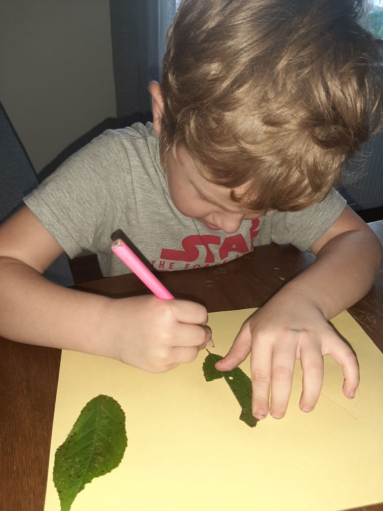 3. Ćwiczenie motoryki ręki- odrysuj na kartce trzy listki znalezione na podwórku i wytnij kontury.