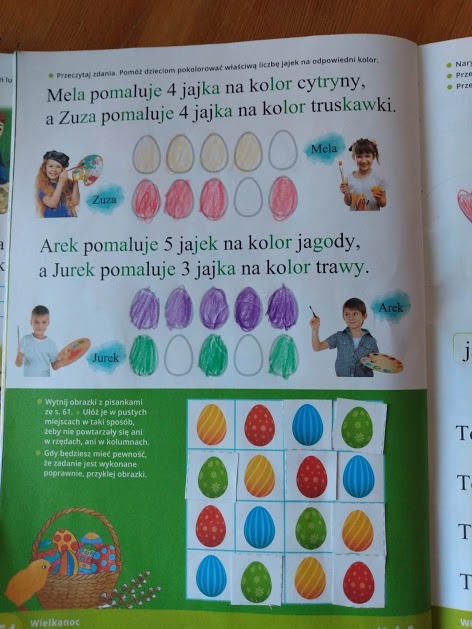 3.Z pomocą rodziców odczytaj polecenia do zadań ze str. 54, pokoloruj pisanki zgodnie z treścią poleceń.