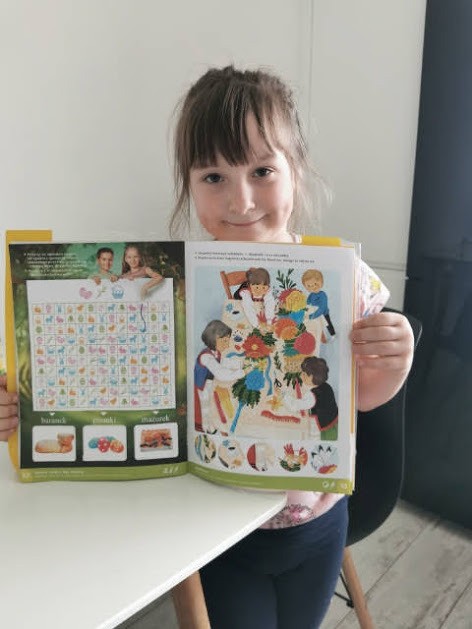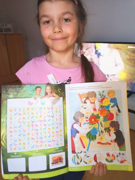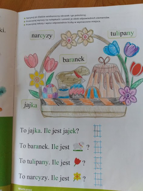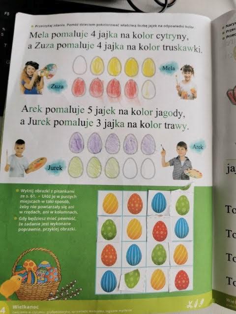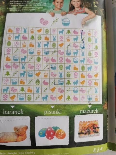 1.W książce Planeta dzieci 3, na stronie 52 znajduje się tabliczka z symbolami wielkanocnymi. Pomóż dzieciom odnaleźć drogę posługując się podanym kodem, wklej rozwiązanie.