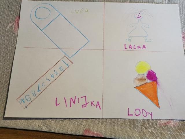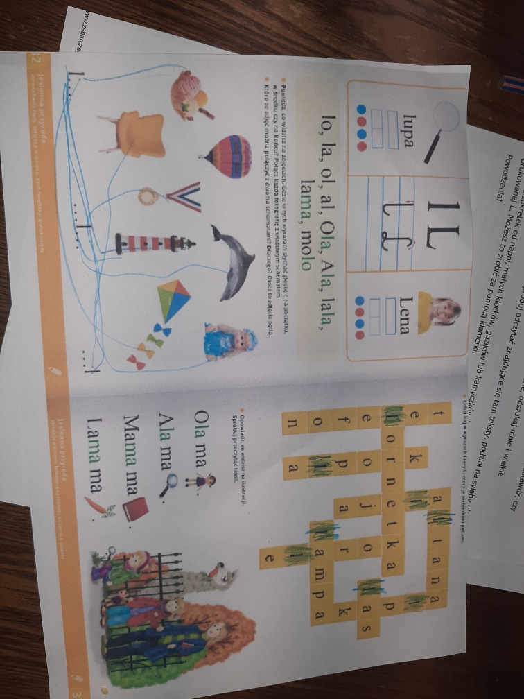 - Na kartce odwzoruj wygląd liter L,l i narysuj 4 przedmioty, które rozpoczynają się głoską l.