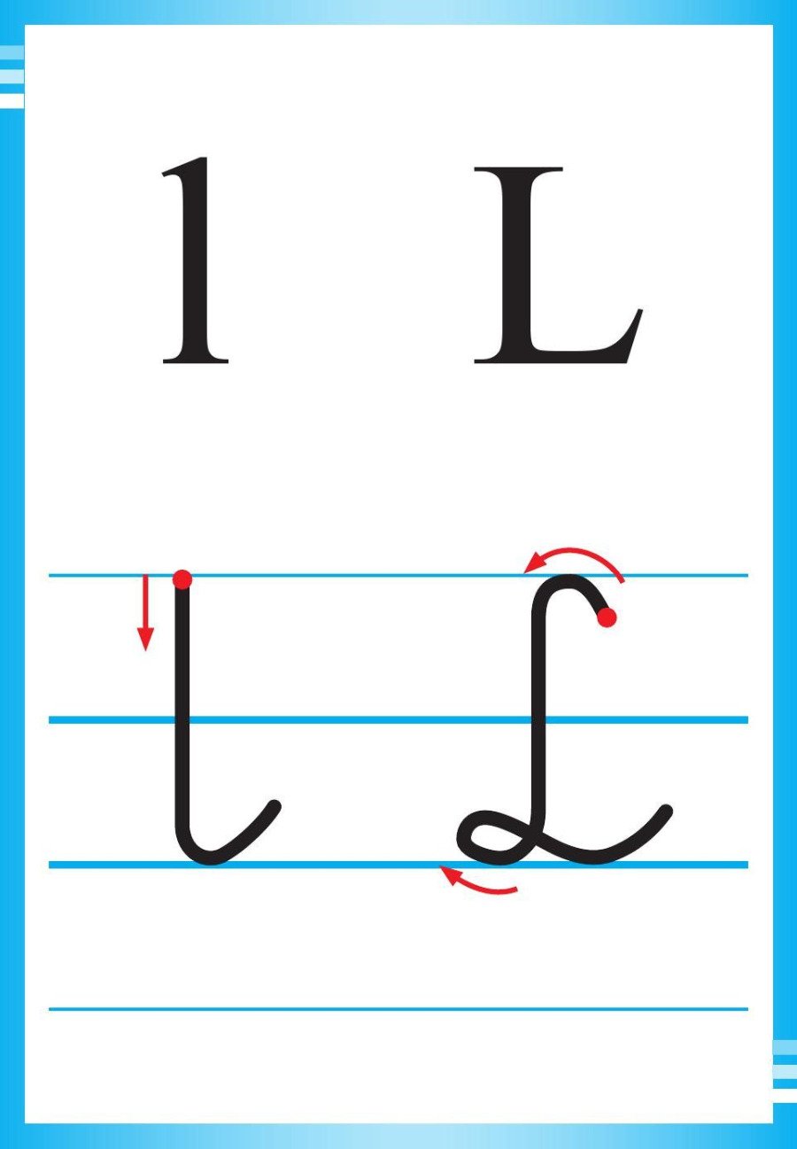 3. Wprowadzenie litery L,l. - zapoznaj się dokładnie z wyglądem liter drukowanych i pisanych przedstawionych na ilustracji.