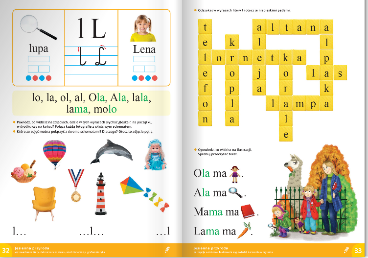 CELE OGÓLNE: zapoznanie z literami l, L, kształtowanie umiejętności analizy oraz syntezy sylabowej