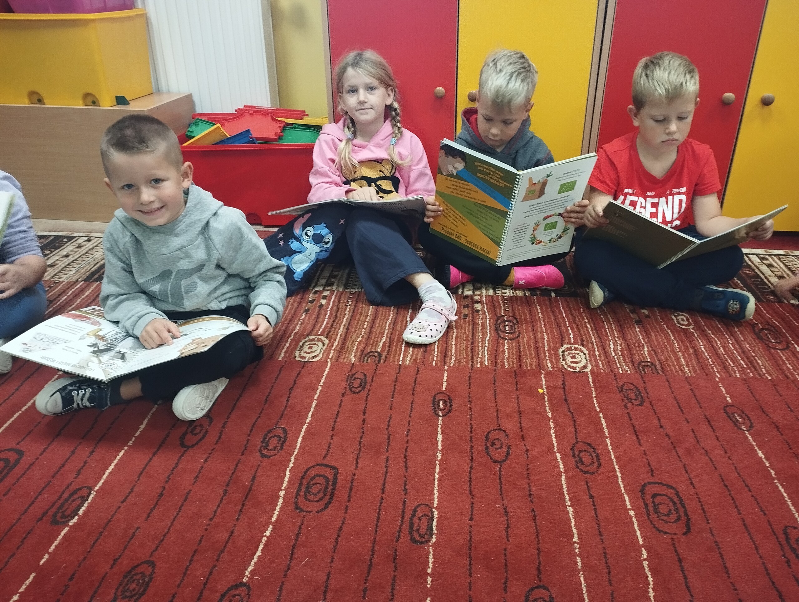 Realizujemy program "Skąd się biorą produkty ekologiczne". Dzieci dowiedziały się na czym polega ekologiczna uprawa warzyw, owoców, zbóż, ekologiczna hodowla zwierząt. Uczyły się rozpoznawać produkty ze znaczkiem ekologicznej produkcji. Warto kształtować u dzieci świadomość ekologicznej produkcji spożywczej, żeby mogły w przyszłości dokonywać świadomych wyborów konsumenckich.