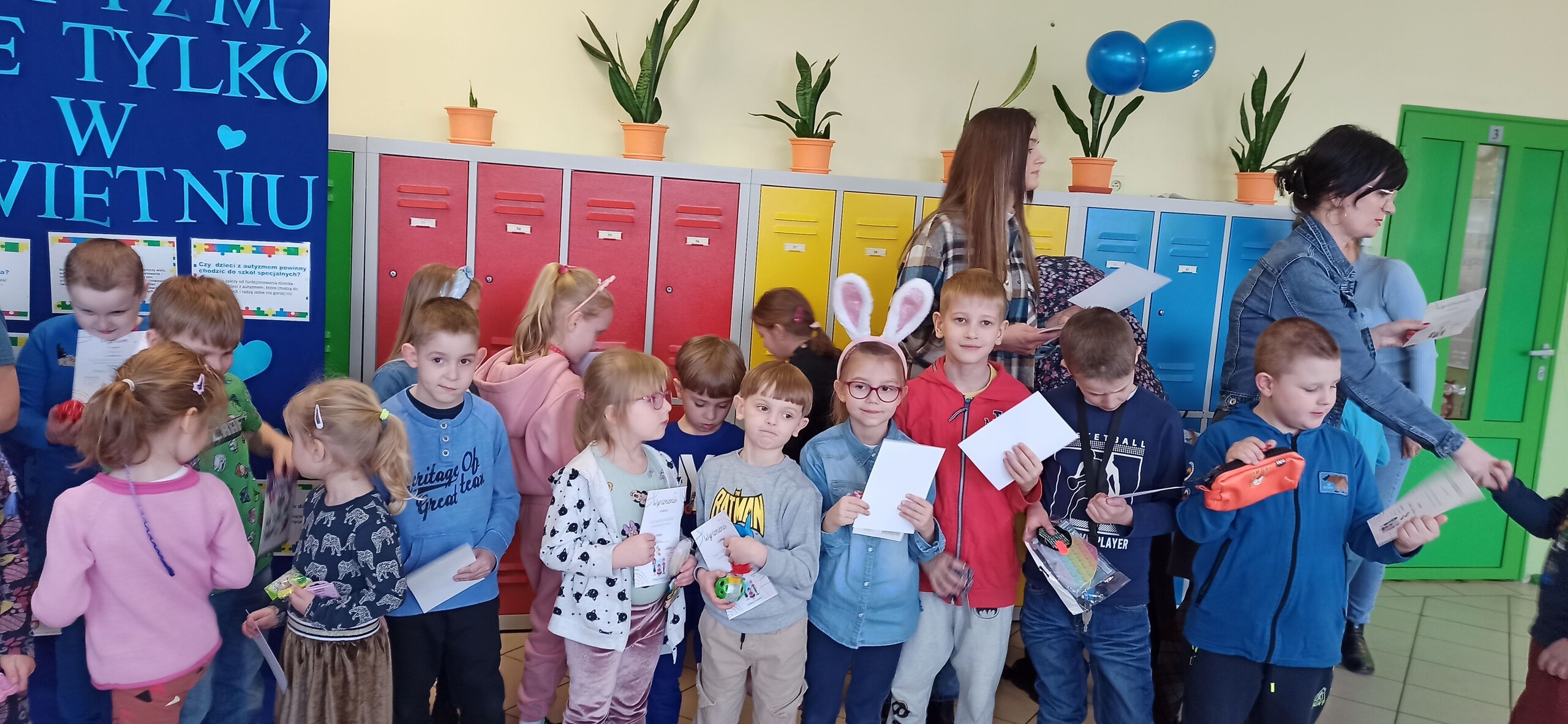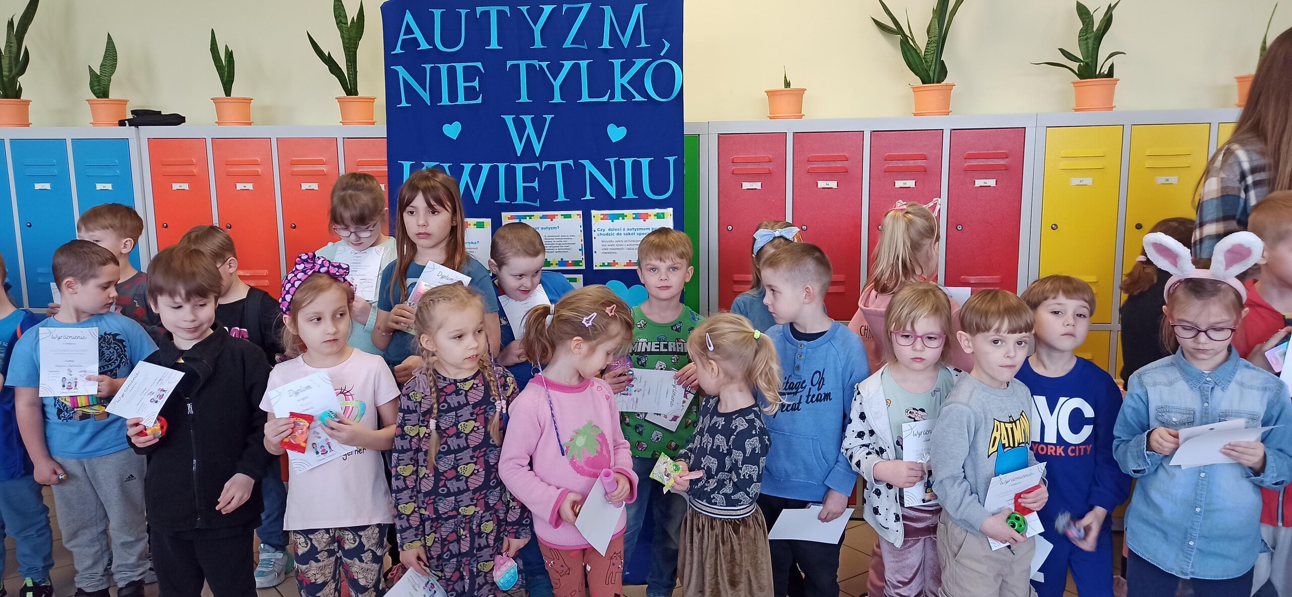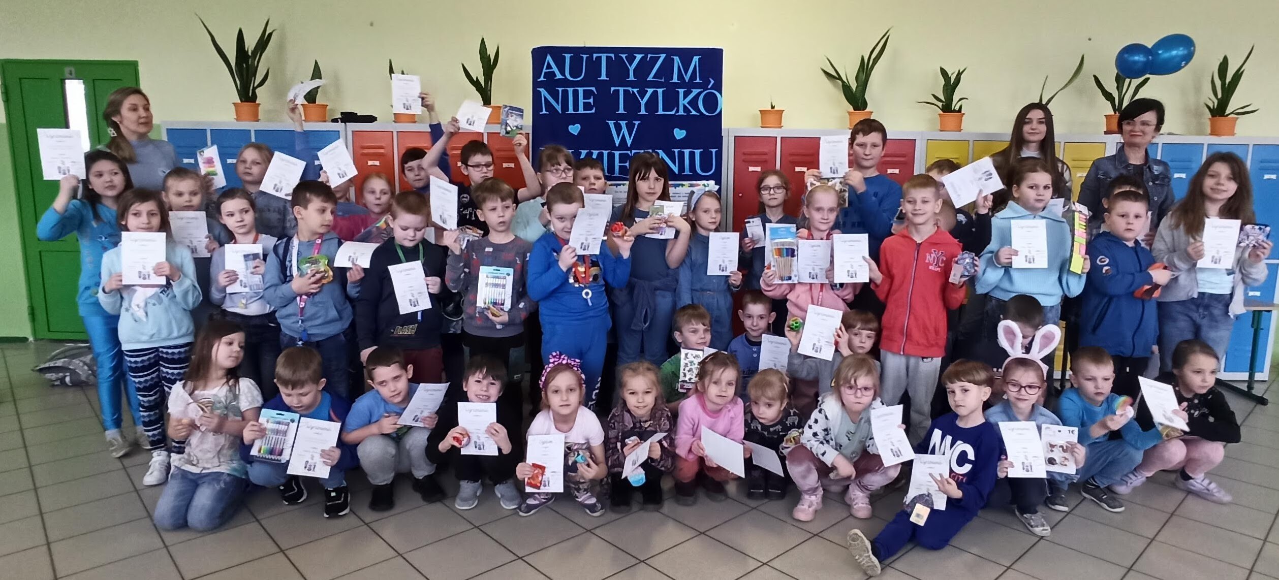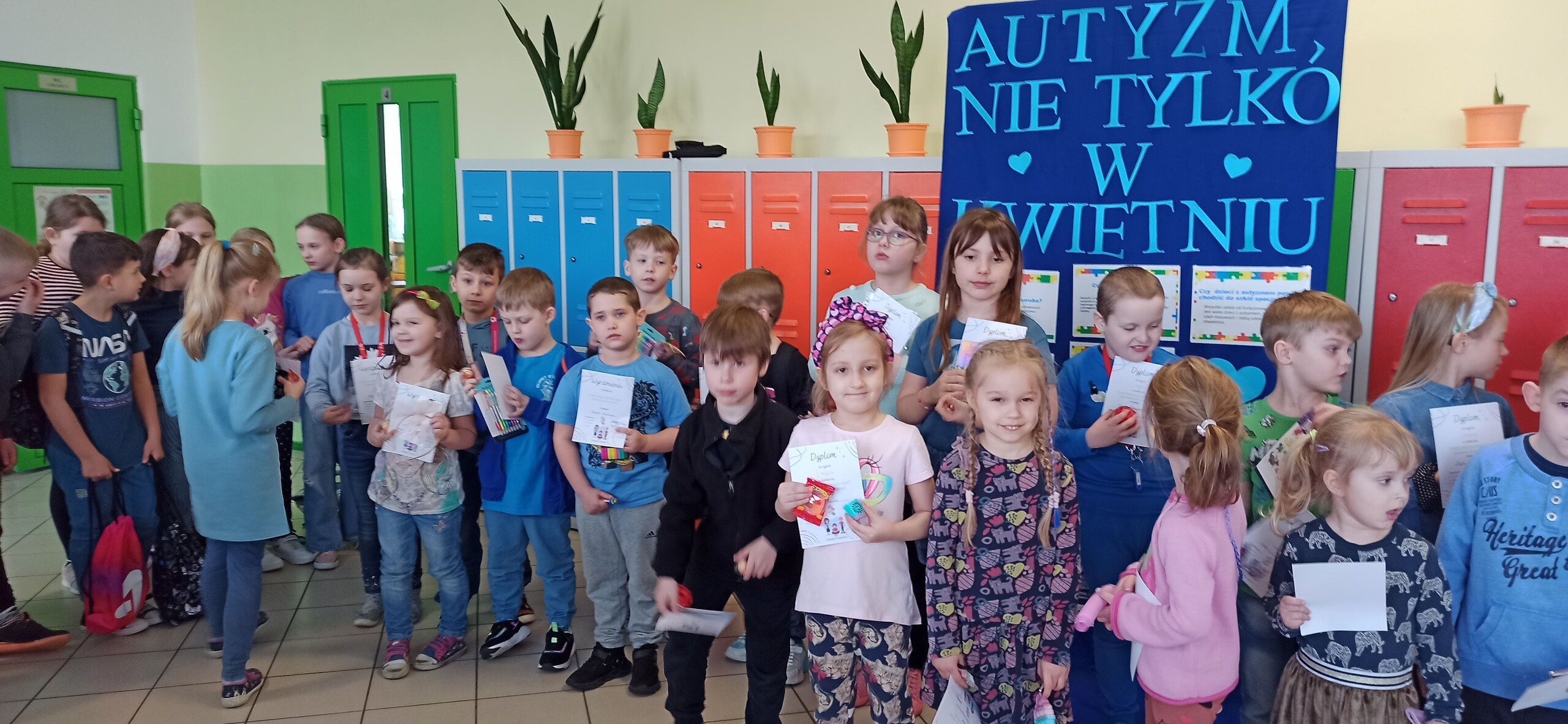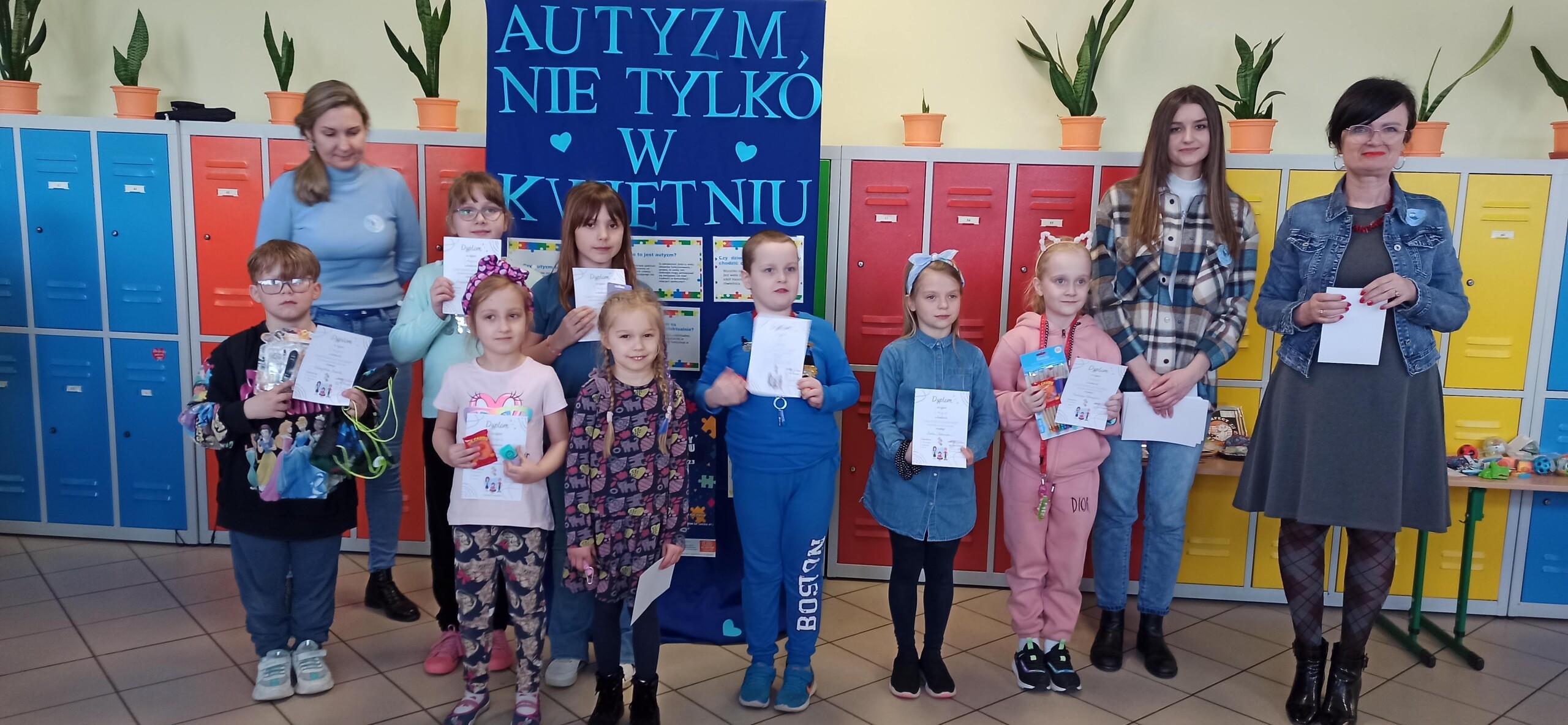Dzieci w czasie zajęć zapoznały się z informacjami o autyzmie, dowiedziały się jakie problemy w codziennym funkcjonowaniu mogą mieć osoby ze spektrum autyzmu i jak my możemy im pomóc. Dowiedziały się również, że autyzmowi często towarzyszą różne supermoce. Wzięliśmy udział w konkursie plastycznym na ten temat. Lenka Paczos zdobyła pierwsze miejsce na etapie szkolnym i jej praca została wysłana na etap powiatowy. Wszystkie osoby biorące udział w konkursie zostały nagrodzone dyplomami i drobnymi upominkami.