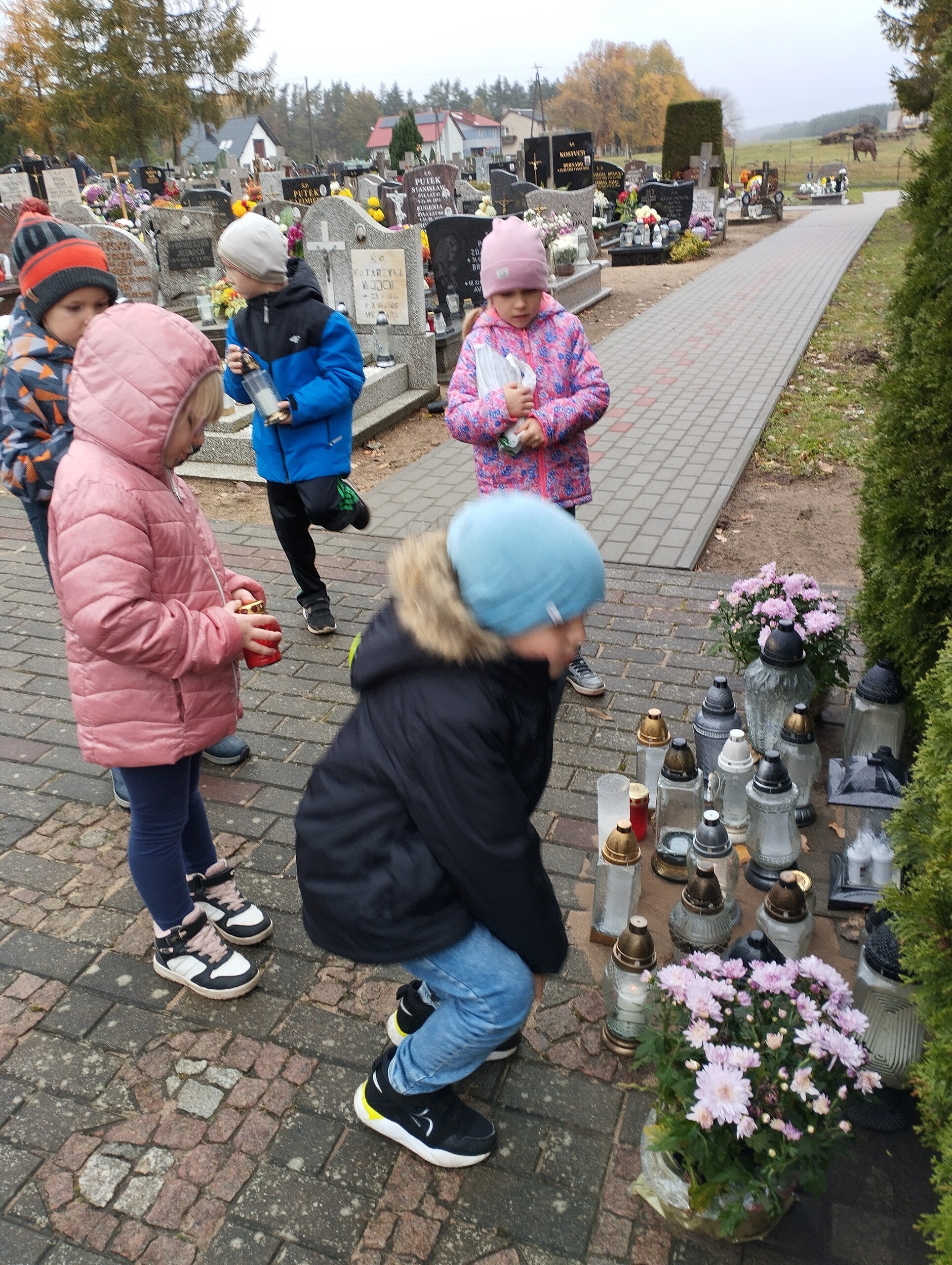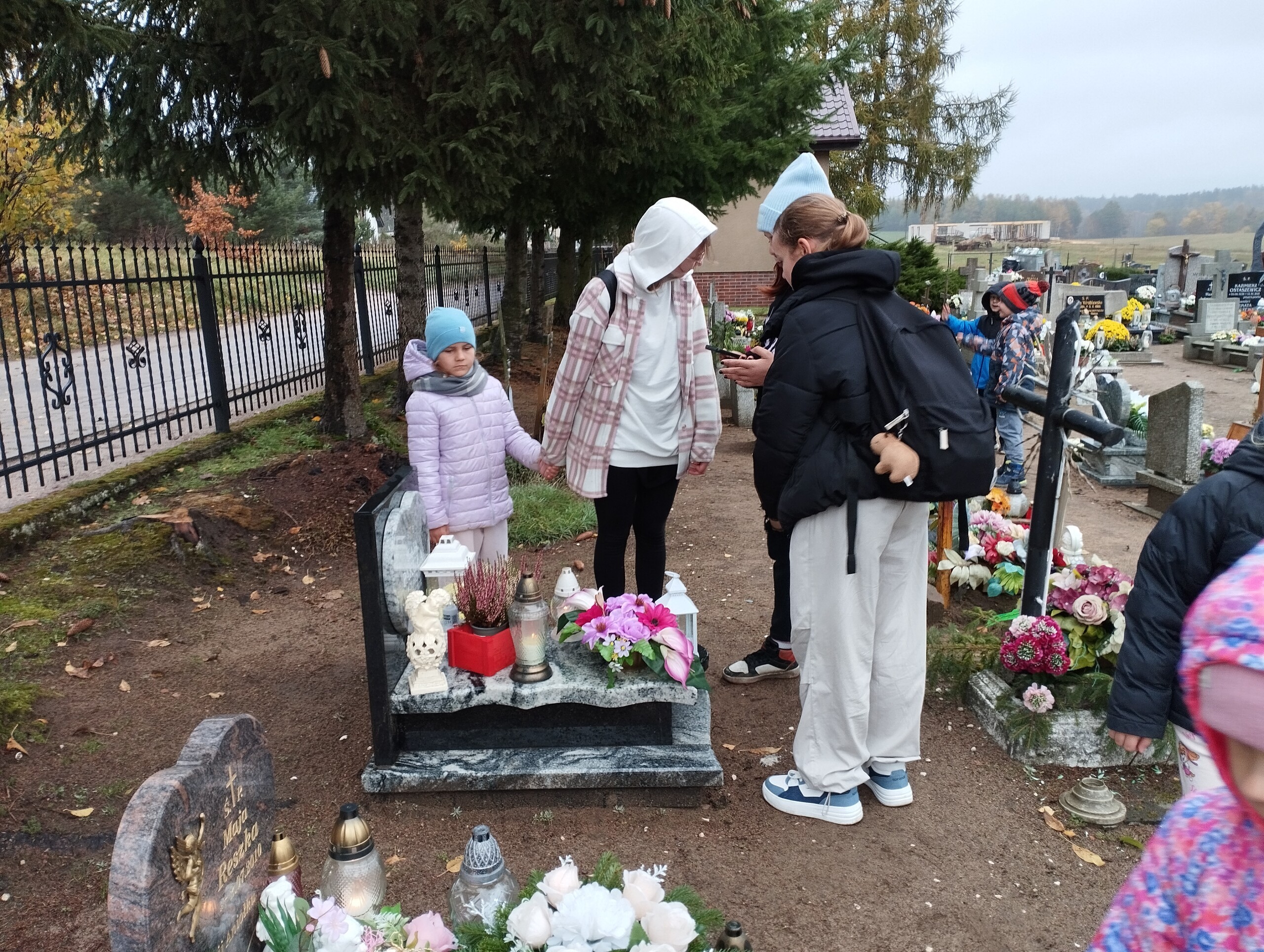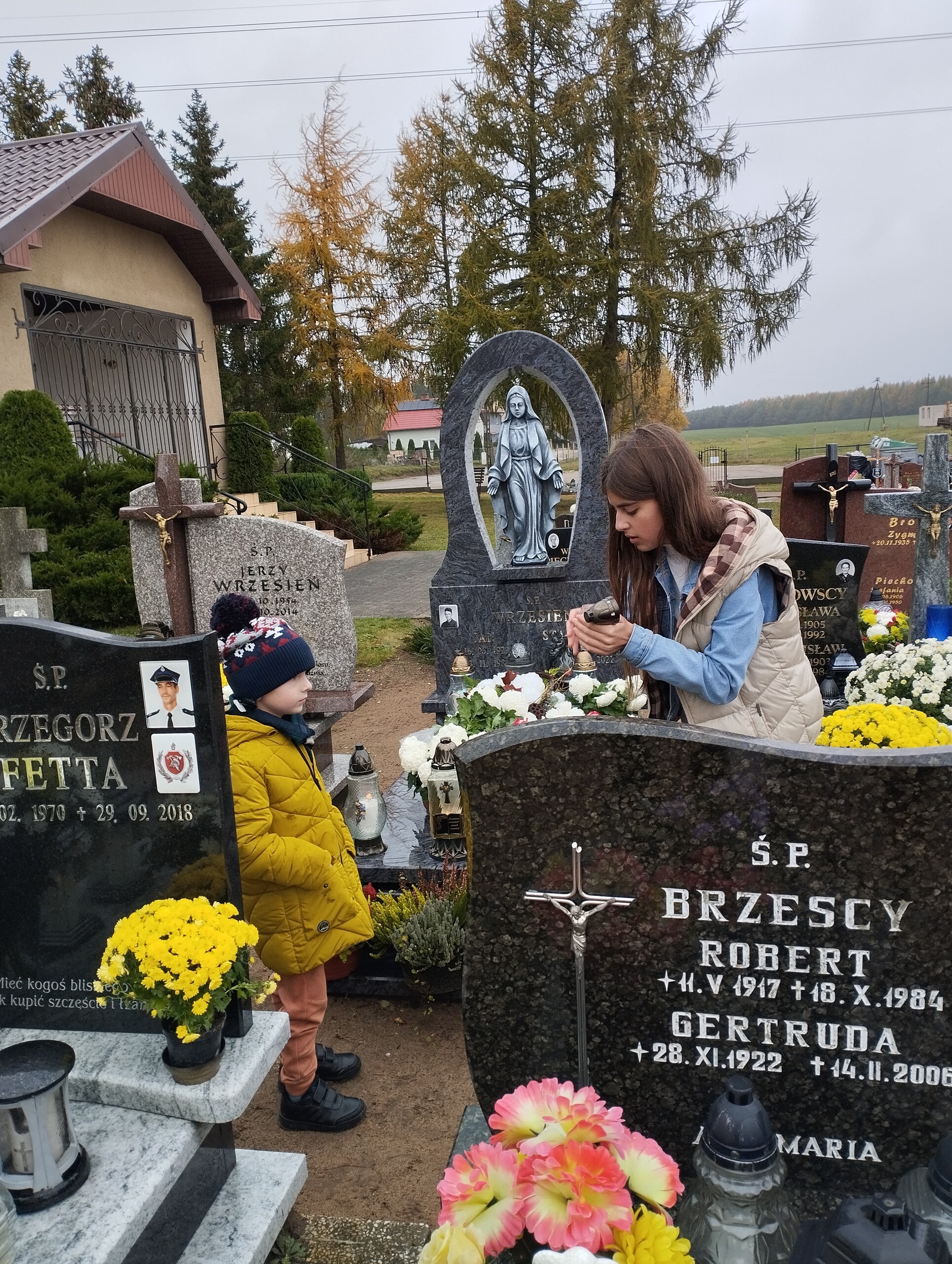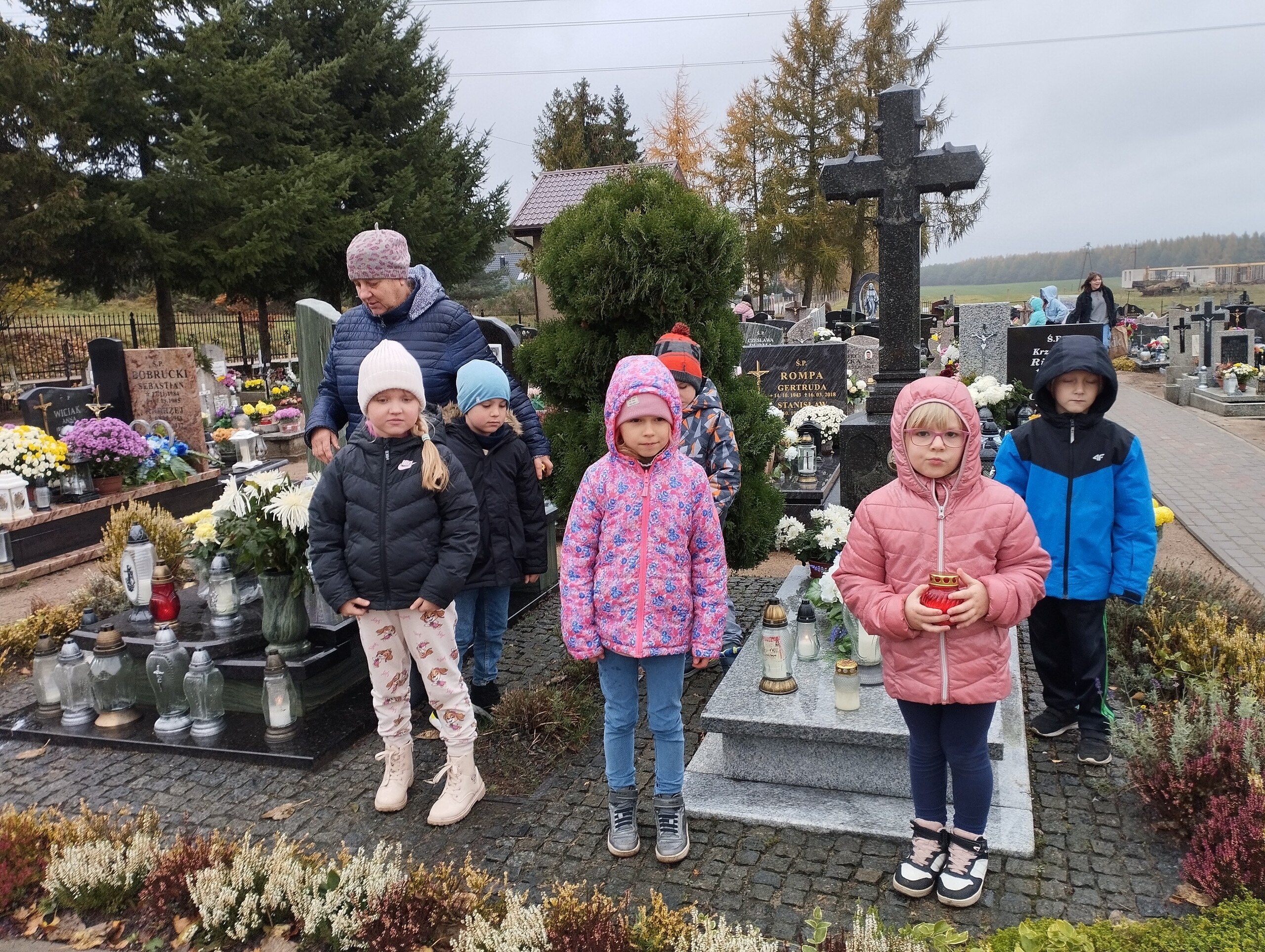 Dnia 6 listopada 2023 r. dzieci z Oddziału Przedszkolnego w Garczegorzu wraz z wolontariuszami z klas VII I VIII pod opieką pani Sabiny Semak-Studniarz I pani Honoraty Smentoch odwiedziły Cmentarz w Garczegorzu w ramach akcji "Szkoła Pamięta". Uczniowie złożyli znicze na grobach swoich krewnych oraz zapomnianych mogiłach. Wolontariusze pomagali młodszym uczniom odszukać groby bliskich osób i odpalić na nich znicze.