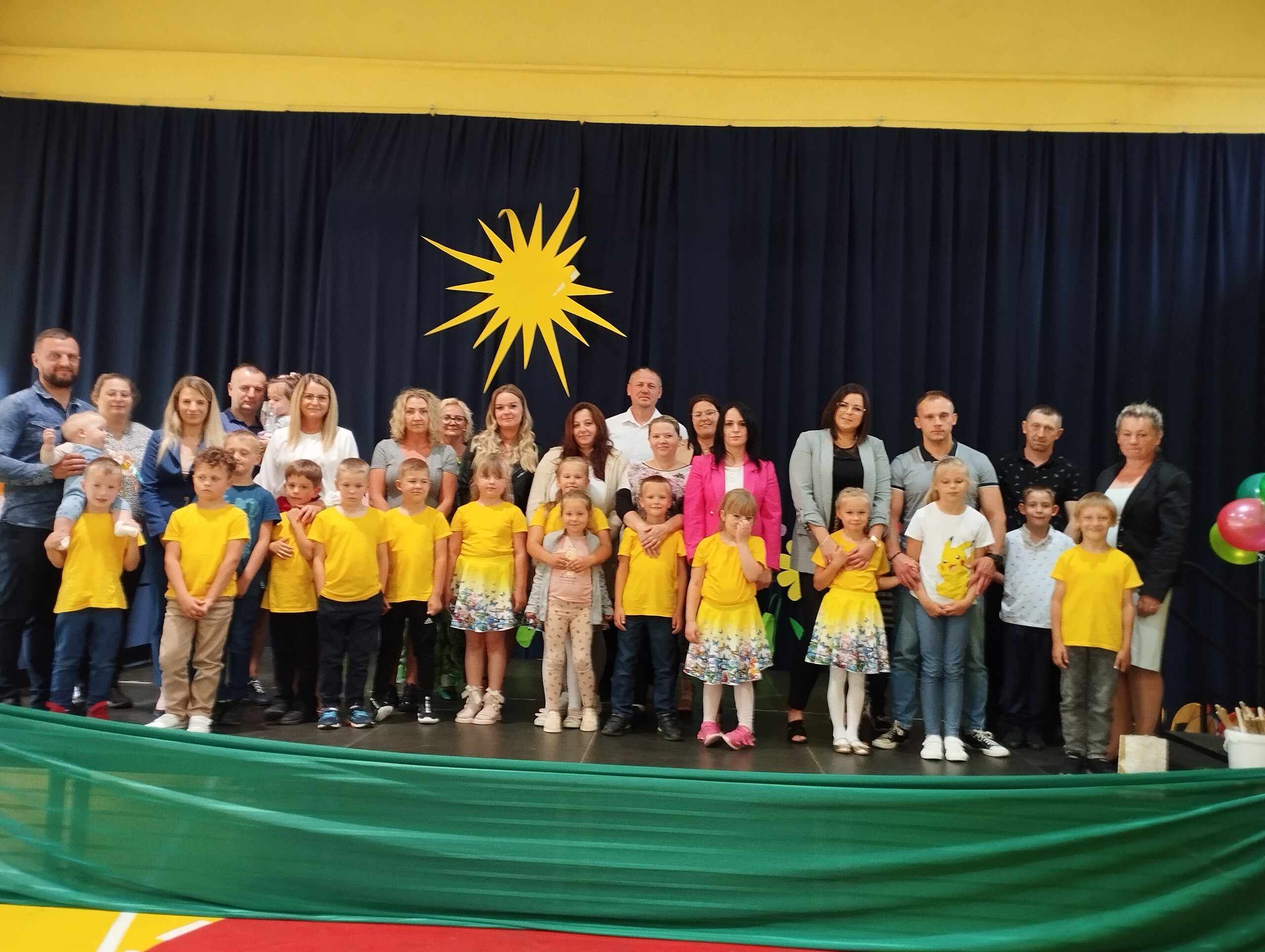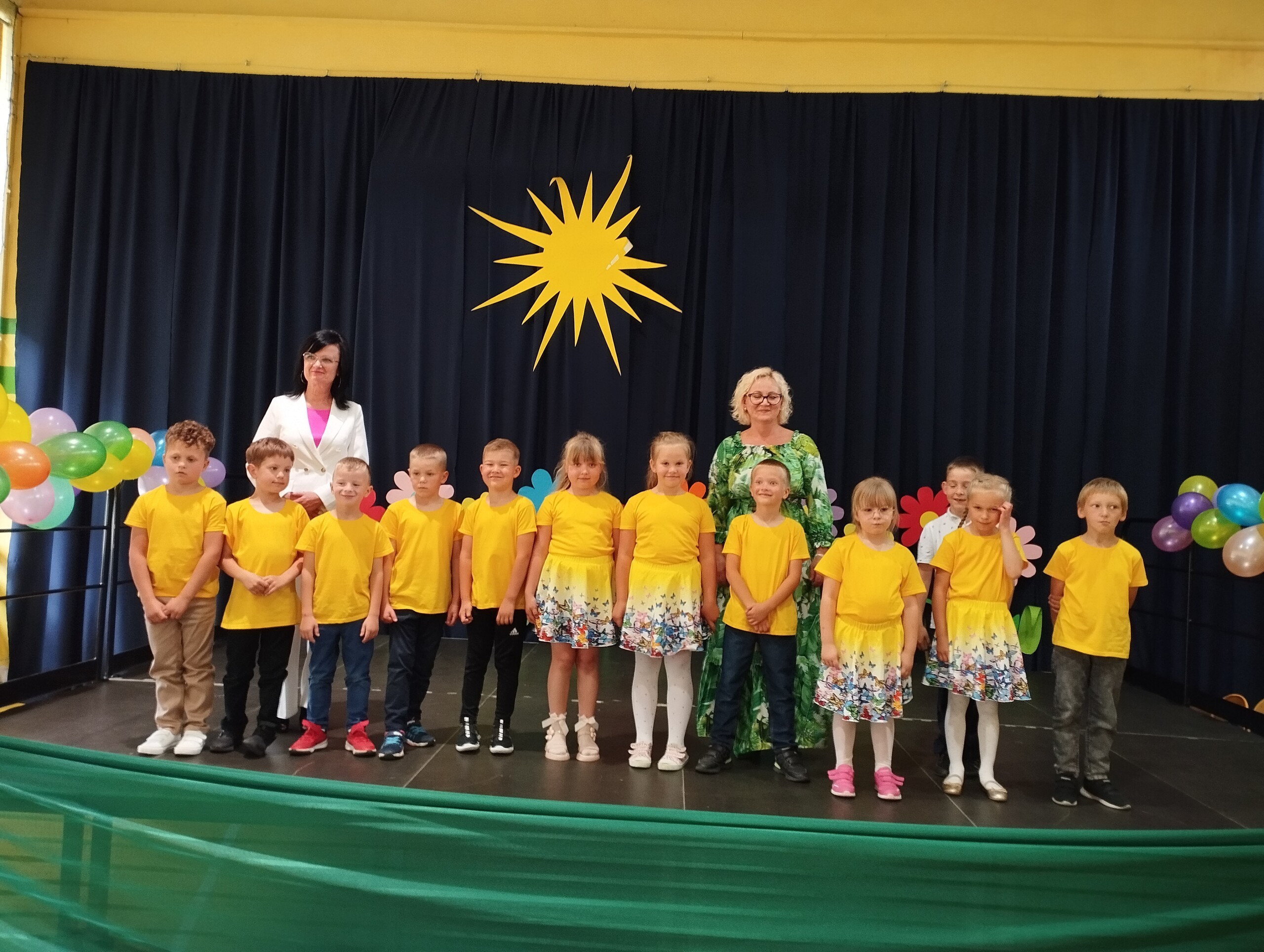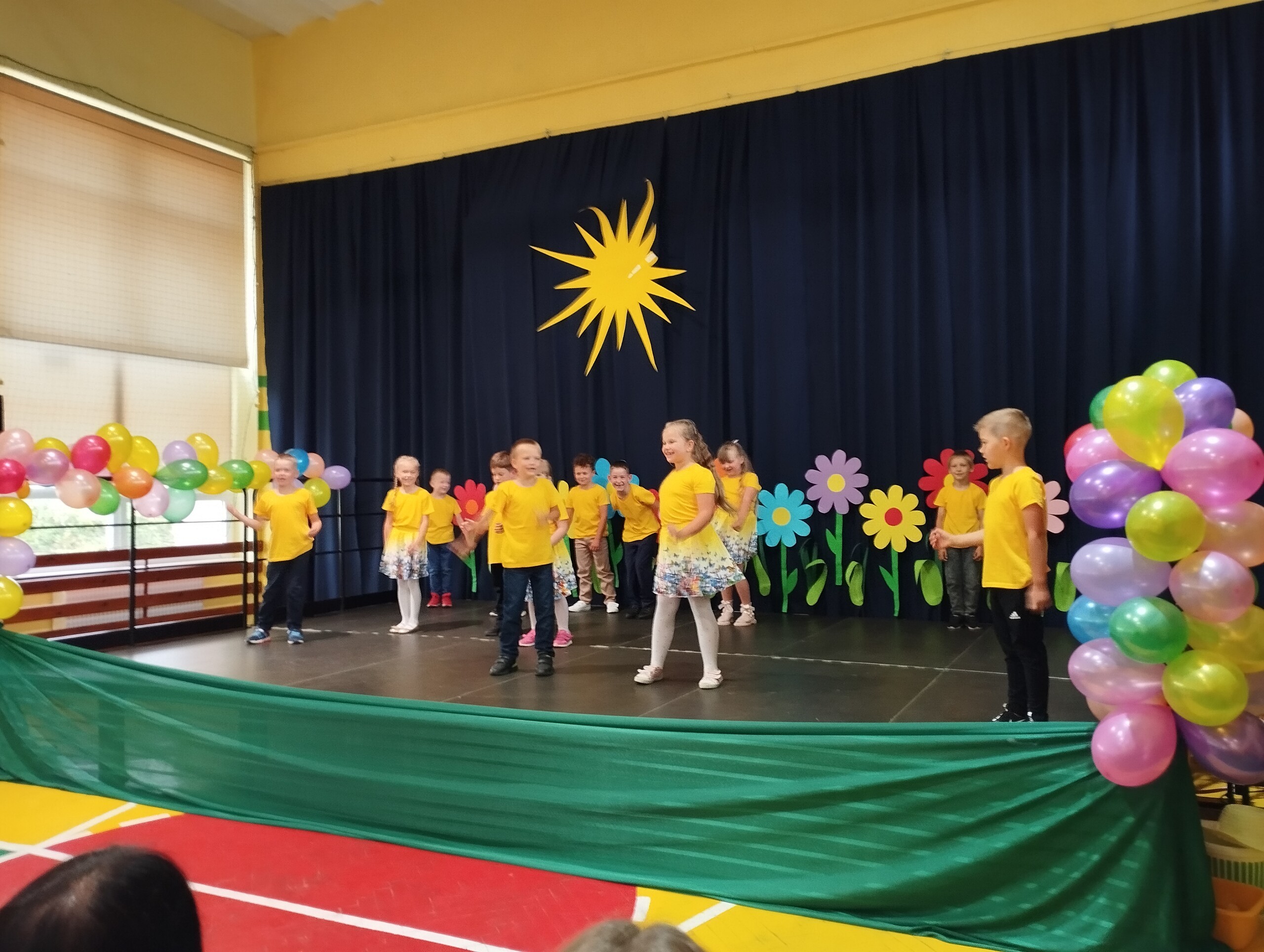 Z okazji zakończenia roku szkolnego dzieci zaprezentowały program artystyczny w którym zawarte były elementy realizowanych treści z całego roku szkolnego. Były tańce, piosenki, gra na instrumentach. Dzieci otrzymały dyplomy, książki, słodycze, rodzice odebrali podziękowania za wkład pracy. Dzieci podziękowały również kwiatami wychowawczyni. Pani dyrektor pogratulowała nam wyników i życzyła wesołych i bezpiecznych wakacji. Na koniec wykonaliśmy pamiątkowe zdjęcia.