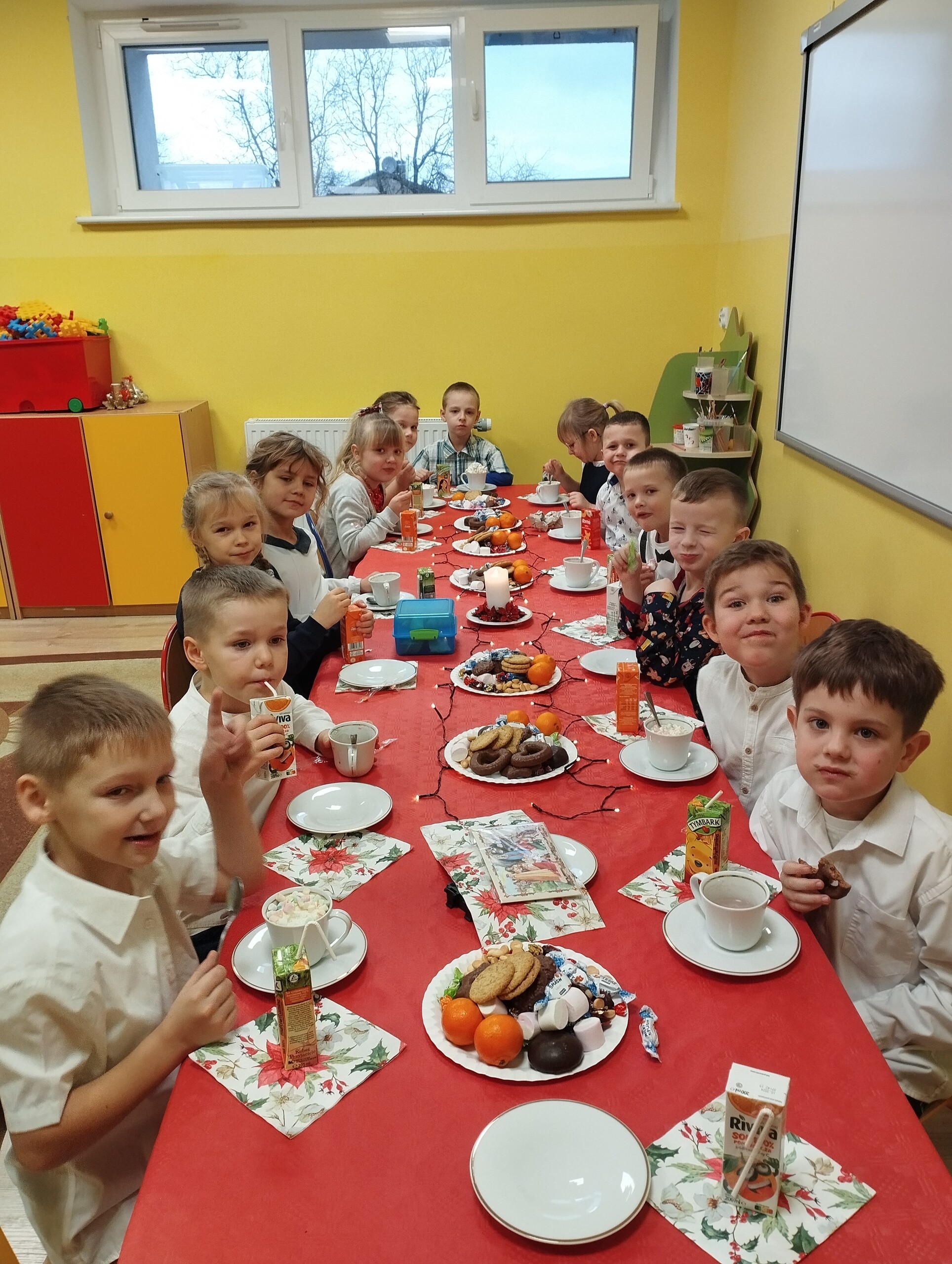 20 grudnia w naszym oddziale obchodziliśmy uroczystą Wigilię. Spotkaliśmy się przy świątecznie nakrytym stole, w odświętnych ubraniach, przy dźwiękach kolęd. Składaliśmy sobie życzenia, nie zabrakło tradycyjnych świątecznych słodyczy.