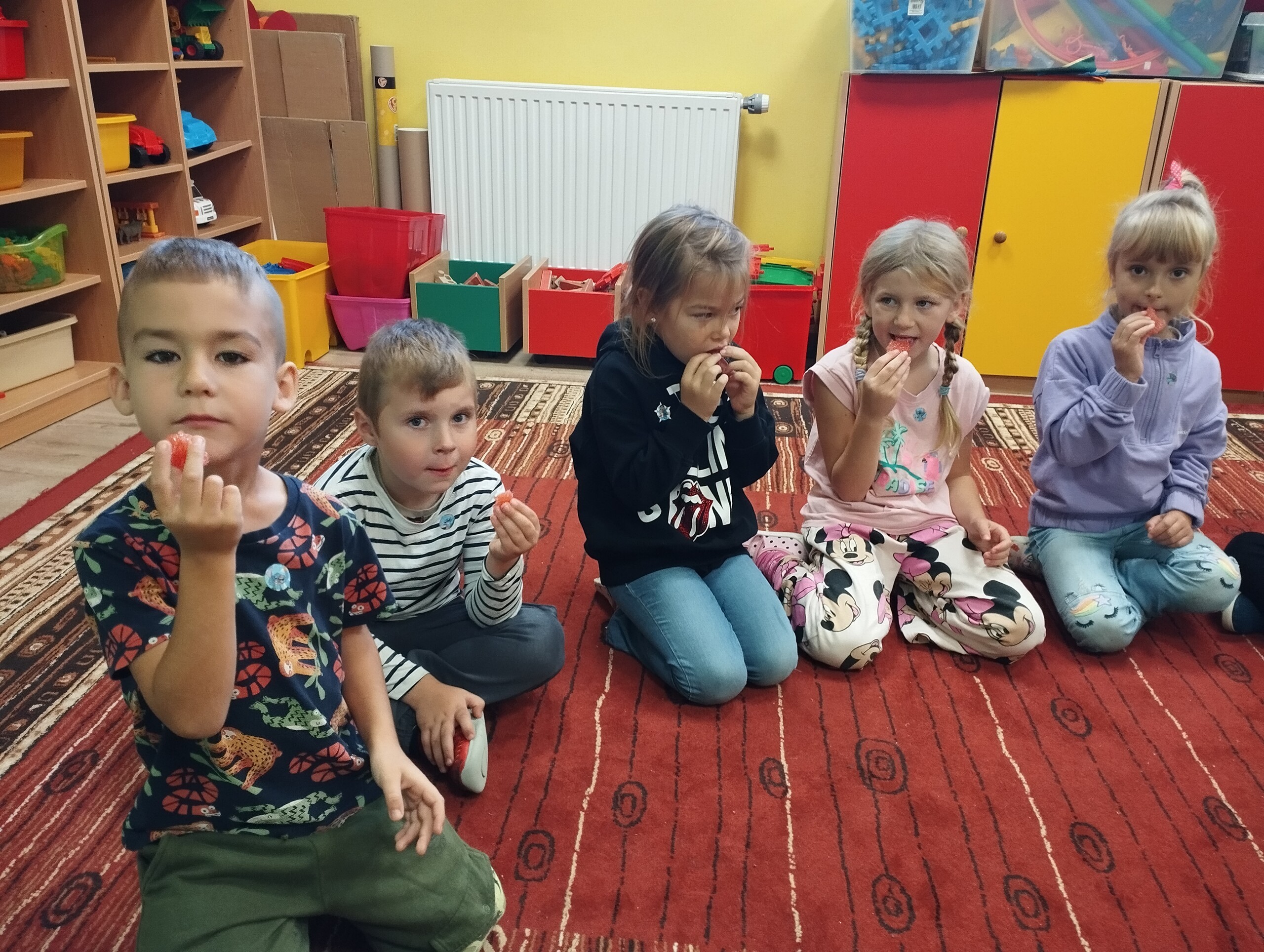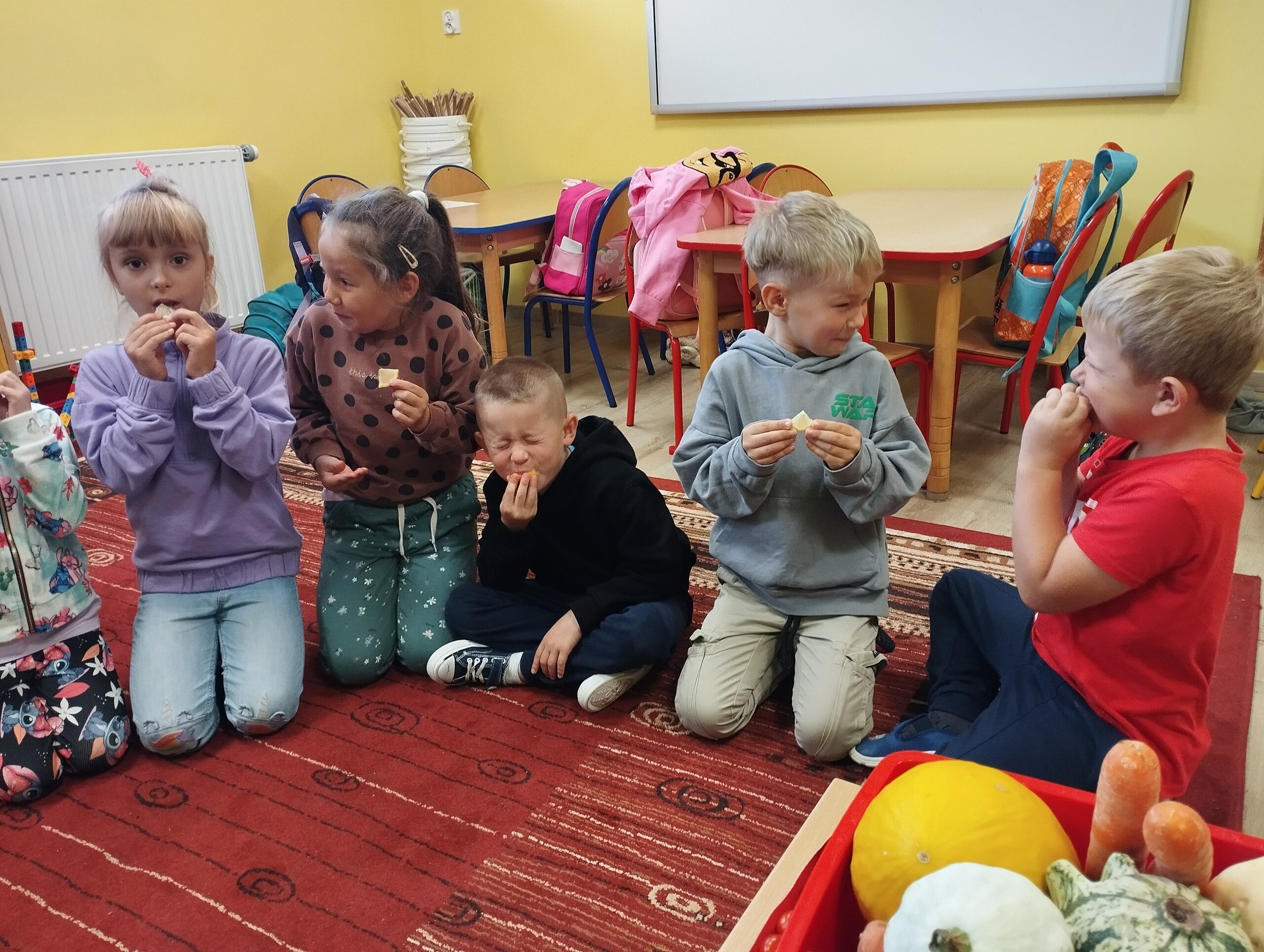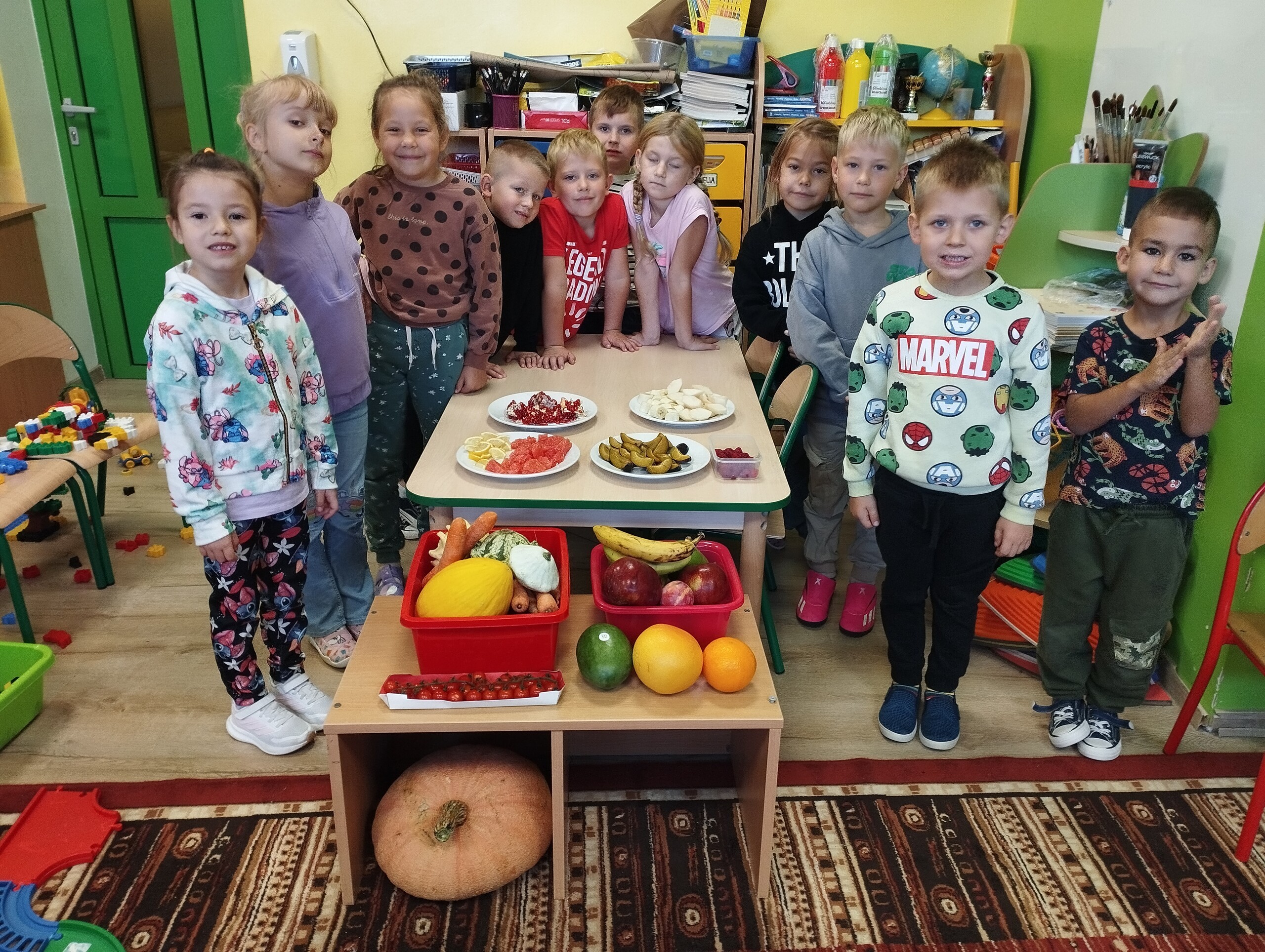 Poznawaliśmy dziś warzywa, owoce lokalne, egzotyczne i owoce leśne. Zrobiliśmy degustację owoców, wszystkie były bardzo smaczne, nawet cytryna była nam niestraszna.