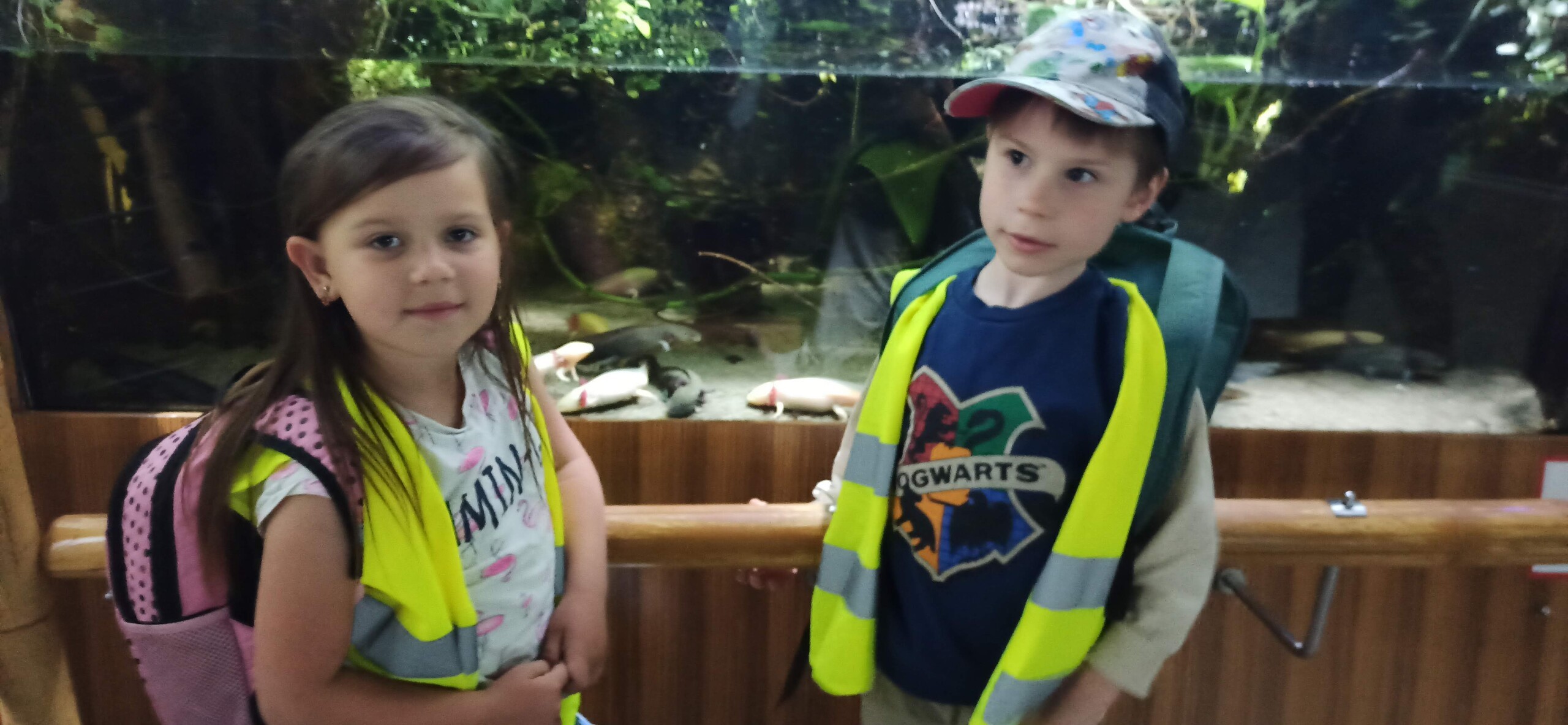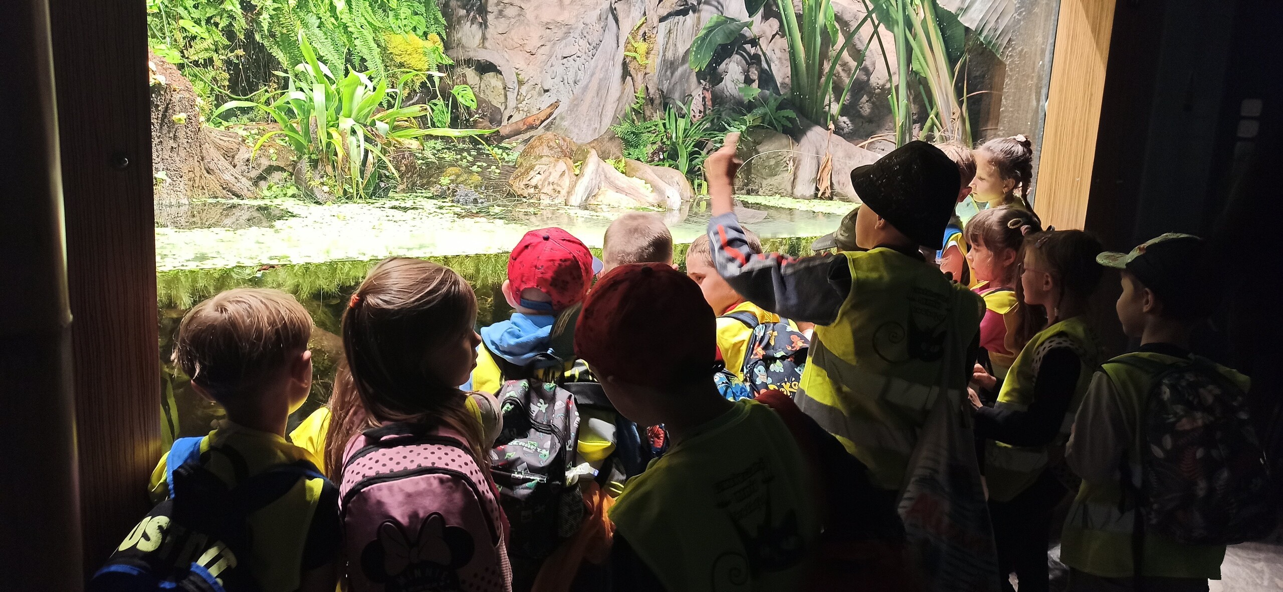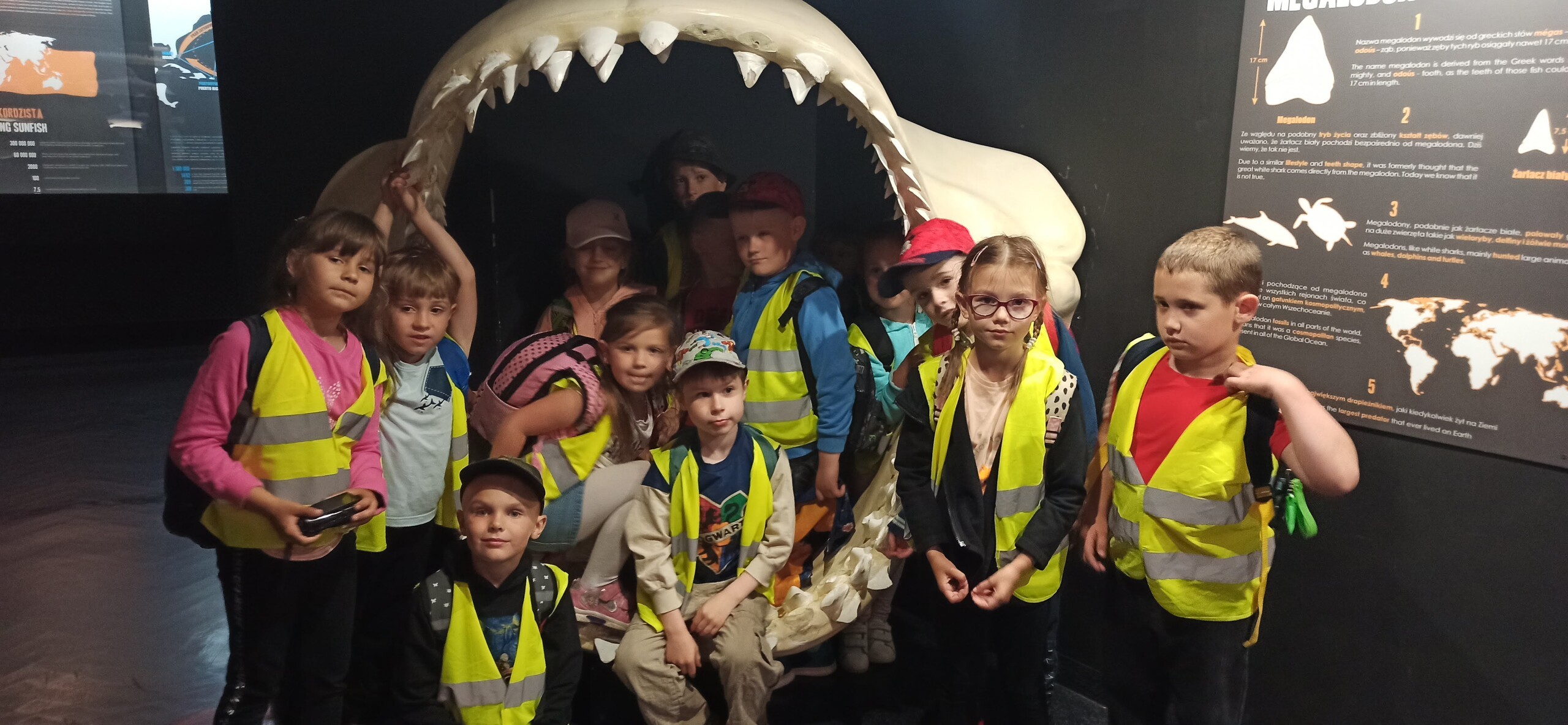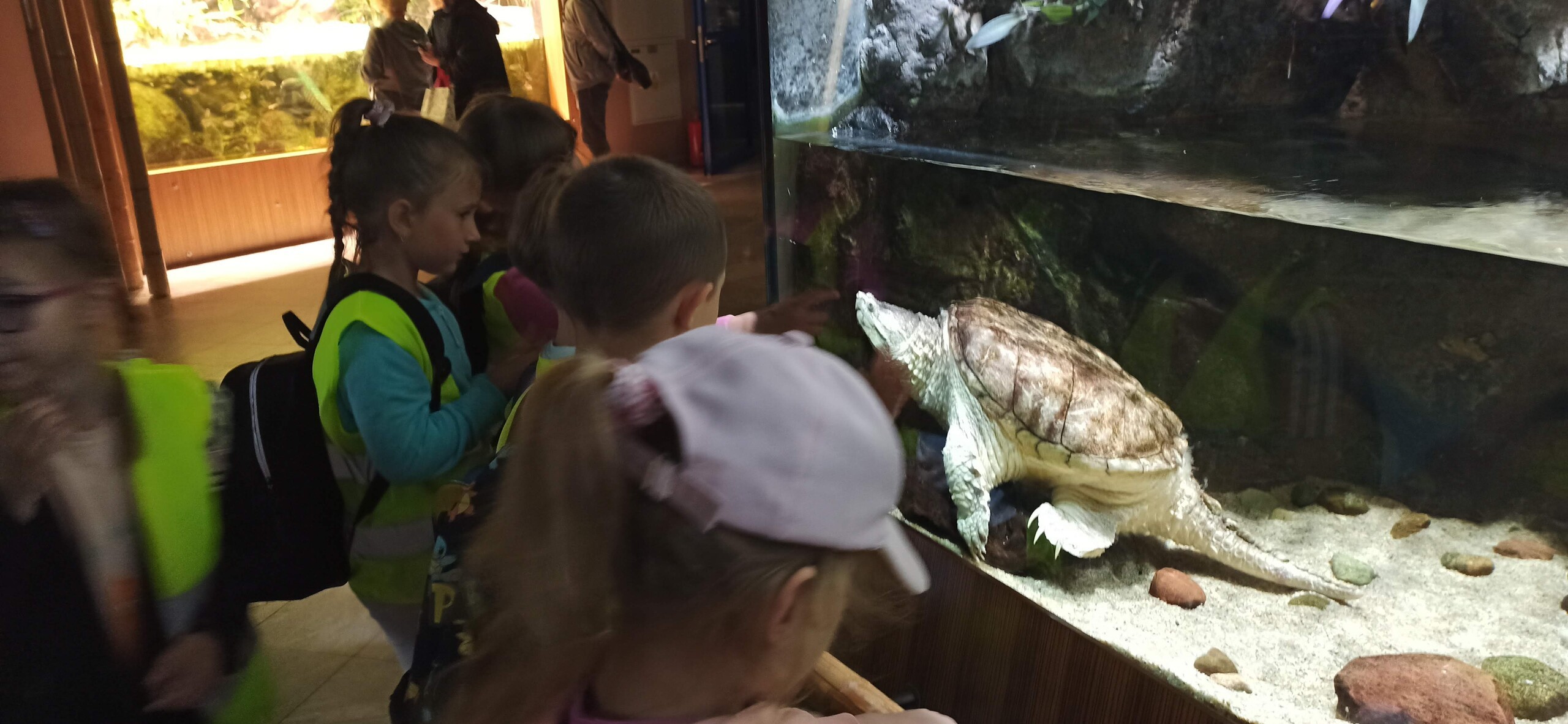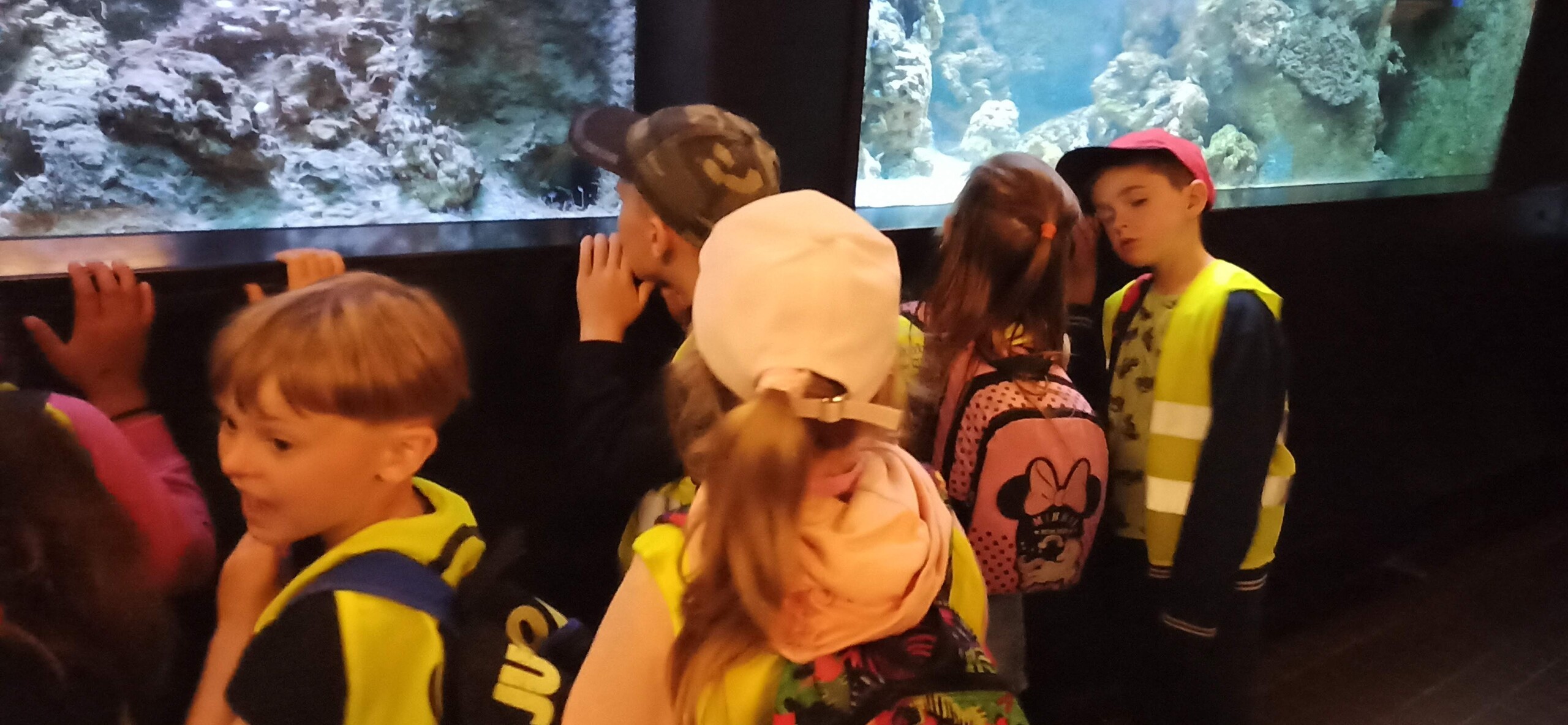 Wybraliśmy się do Akwarium Gdyńskiego. Oglądaliśmy różne gatunki ryb i zwierząt wodnych, od tych mieszkających w naszych stawach i jeziorach, do tych bardzo egzotycznych. Dzieci zachwycały się rekinami, płaszczkami, błazenkami, murenami, węgorzem elektrycznym, anakondą i wieloma innymi. Uczestniczyliśmy też w zajęciach edukacyjnych o mieszkańcach rafy koralowej. Na nabrzeżu mogliśmy obserwować cumowanie statku pirackiego oraz żaglowiec Dar Pomorza i okręt wojenny Błyskawica.