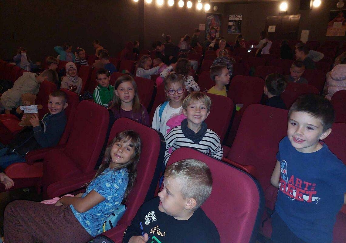 W środę 11.10.2023r. dzieci z oddziału przedszkolnego oraz klas Ia, Ib, II I III wybrały się na wycieczkę do kina "Fregata" w Lęborku na film animowany pt. "Kosmici w naszej szkole. Film dostarczył dzieciom dużą dawkę wrażeń i pozytywnych emocji.