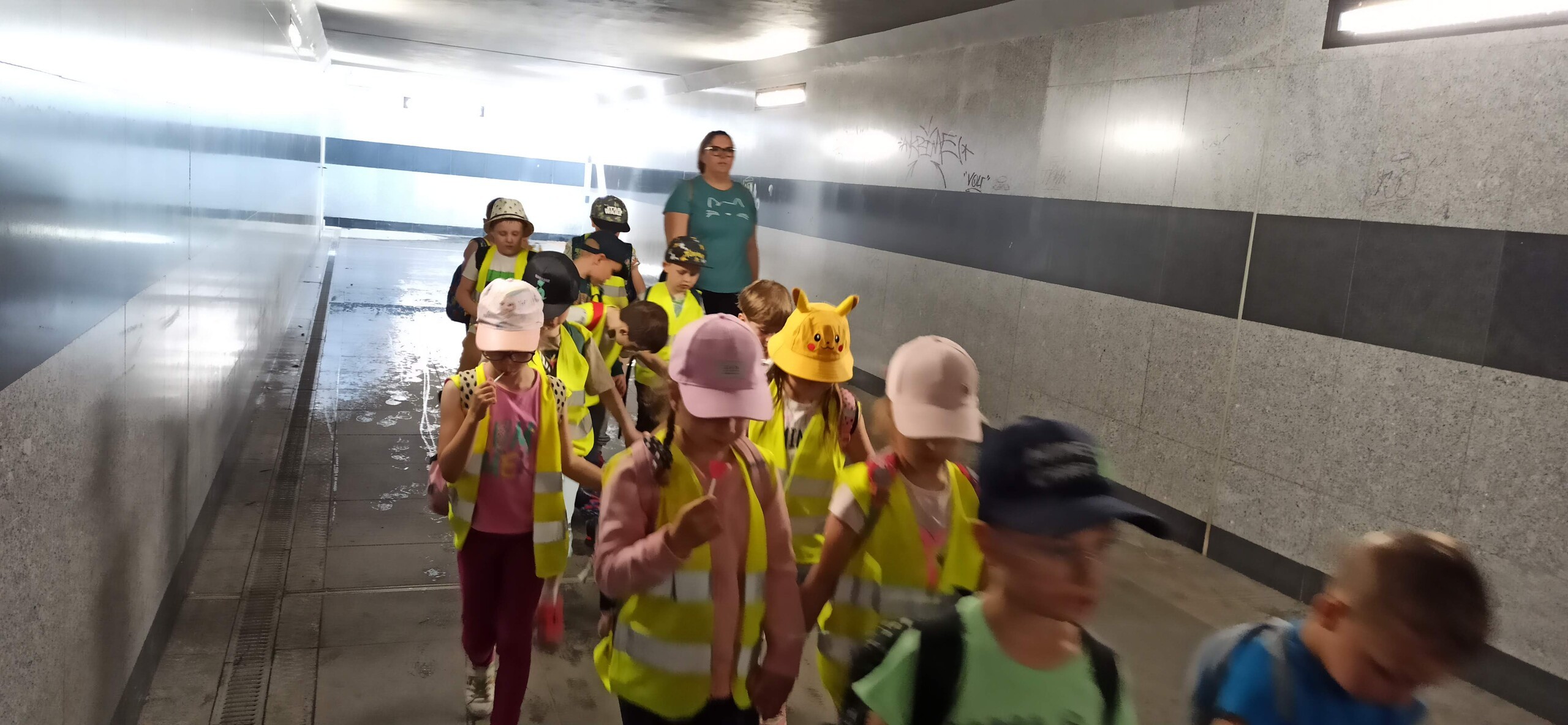 Wraz z grupą z Janowic, wybraliśmy się na dworzec kolejowy w Lęborku. Zwiedziliśmy budynek dworca, poczekalnię, kasy biletowe. Tunelem podziemnym przeszliśmy na perony 2 i 3. Na drugim peronie mieliśmy możliwość odwiedzić stanowisko dyżurnego ruchu. Mieliśmy również możliwość wybrania się w podróż pociągiem. Wszyscy z przyjemnością wsiedli do pociągu.