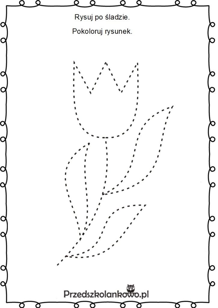Rysuj po linii i pokoloruj. Rysunek do wydruku poniżej.