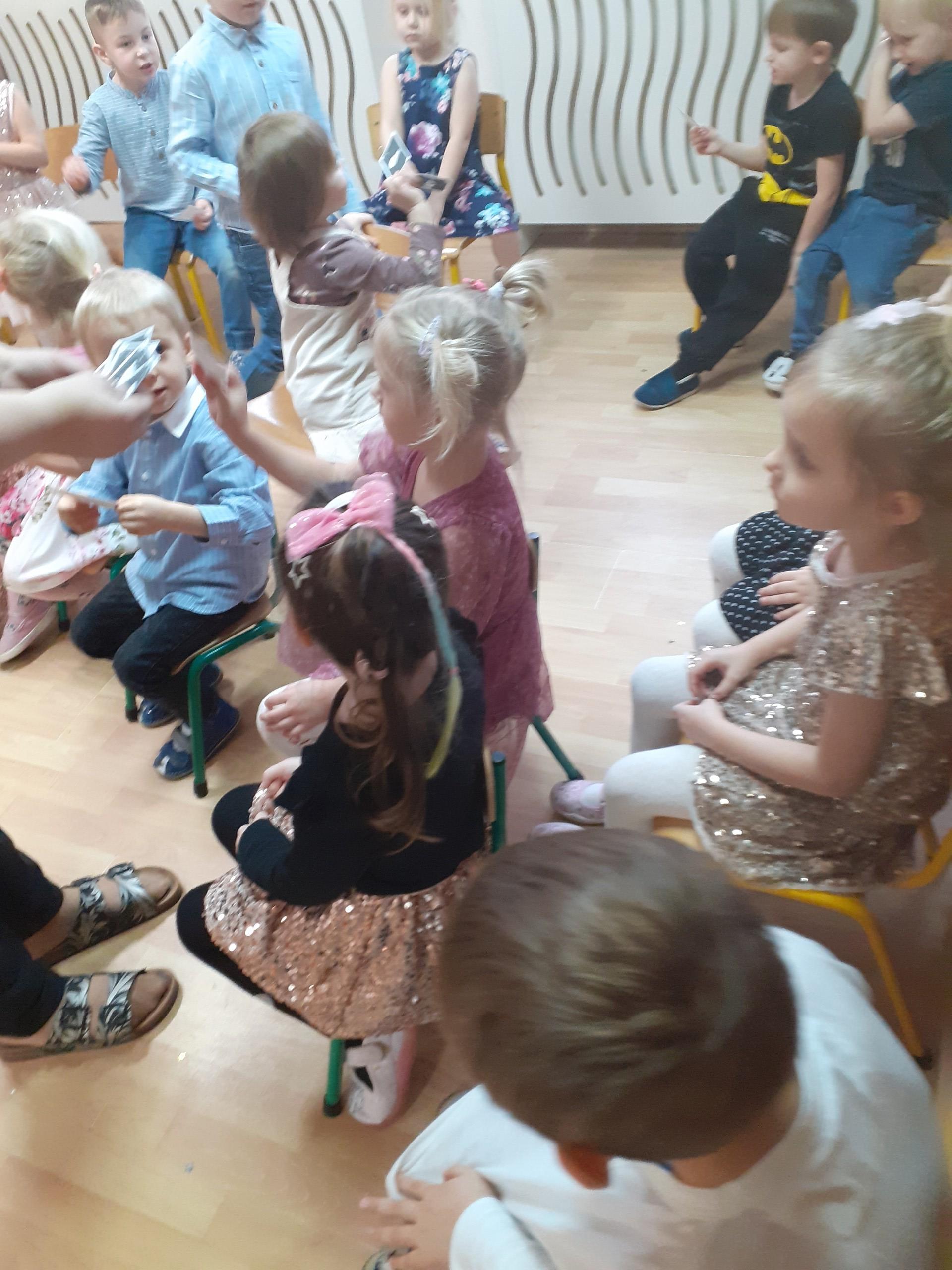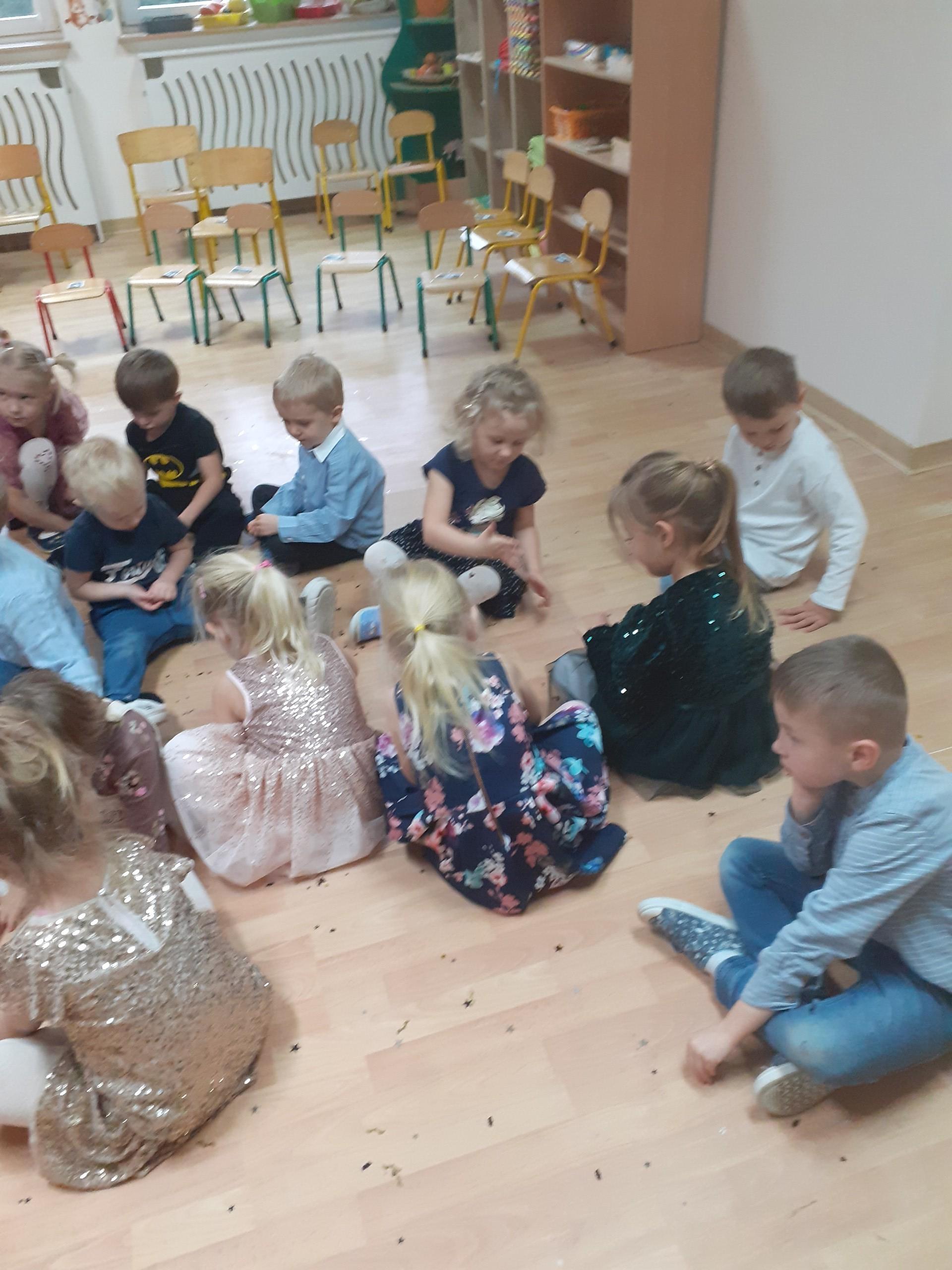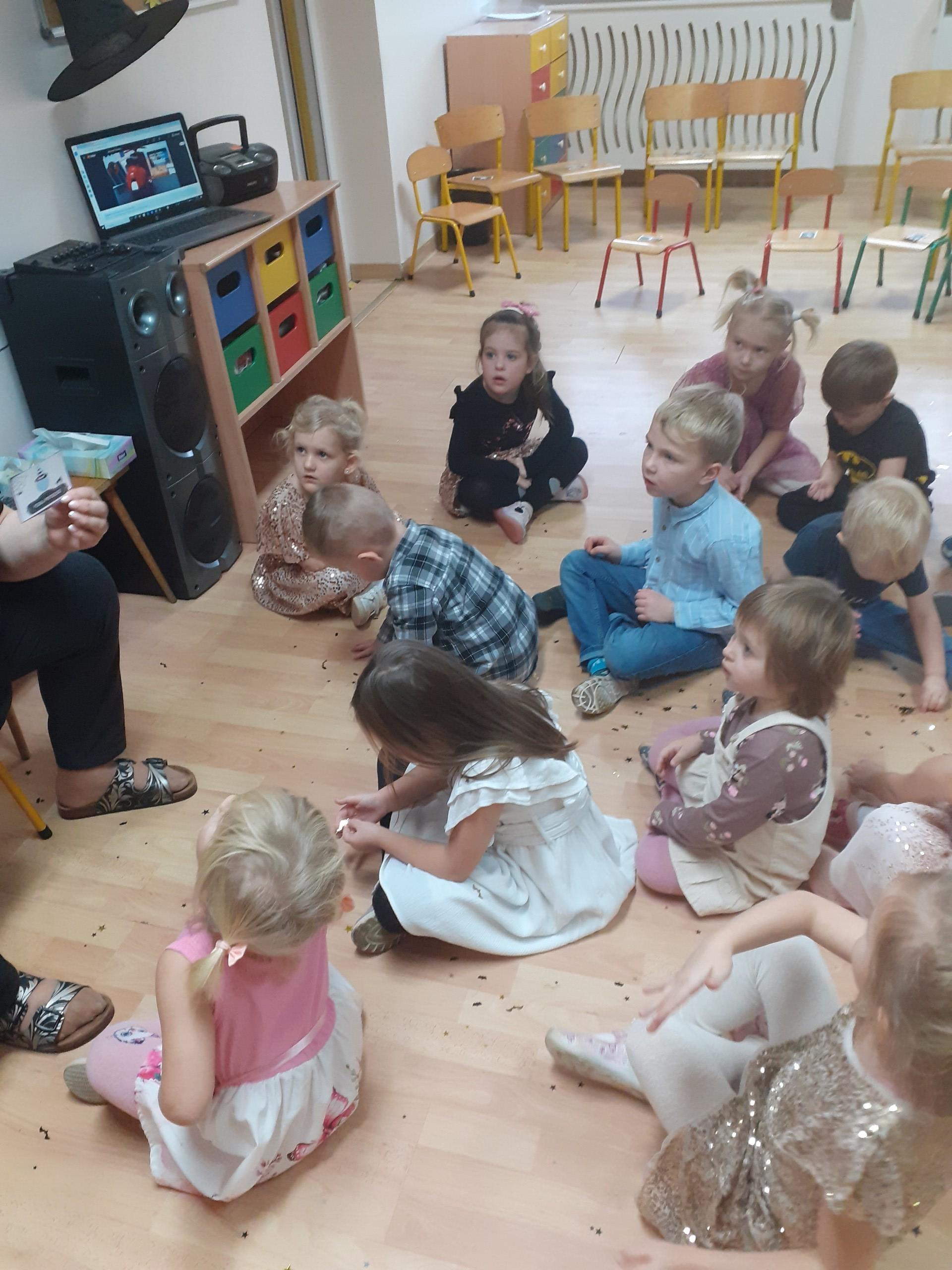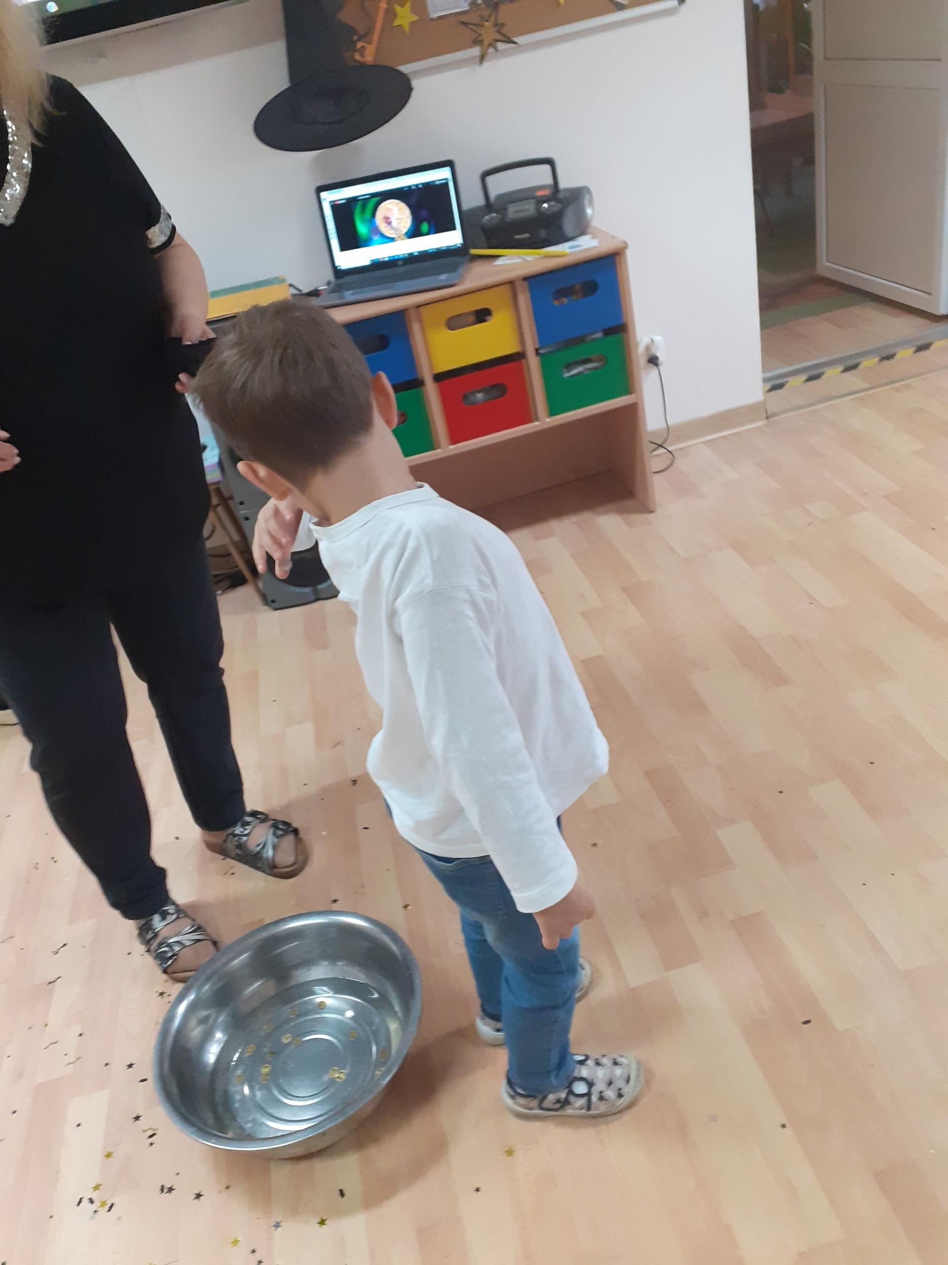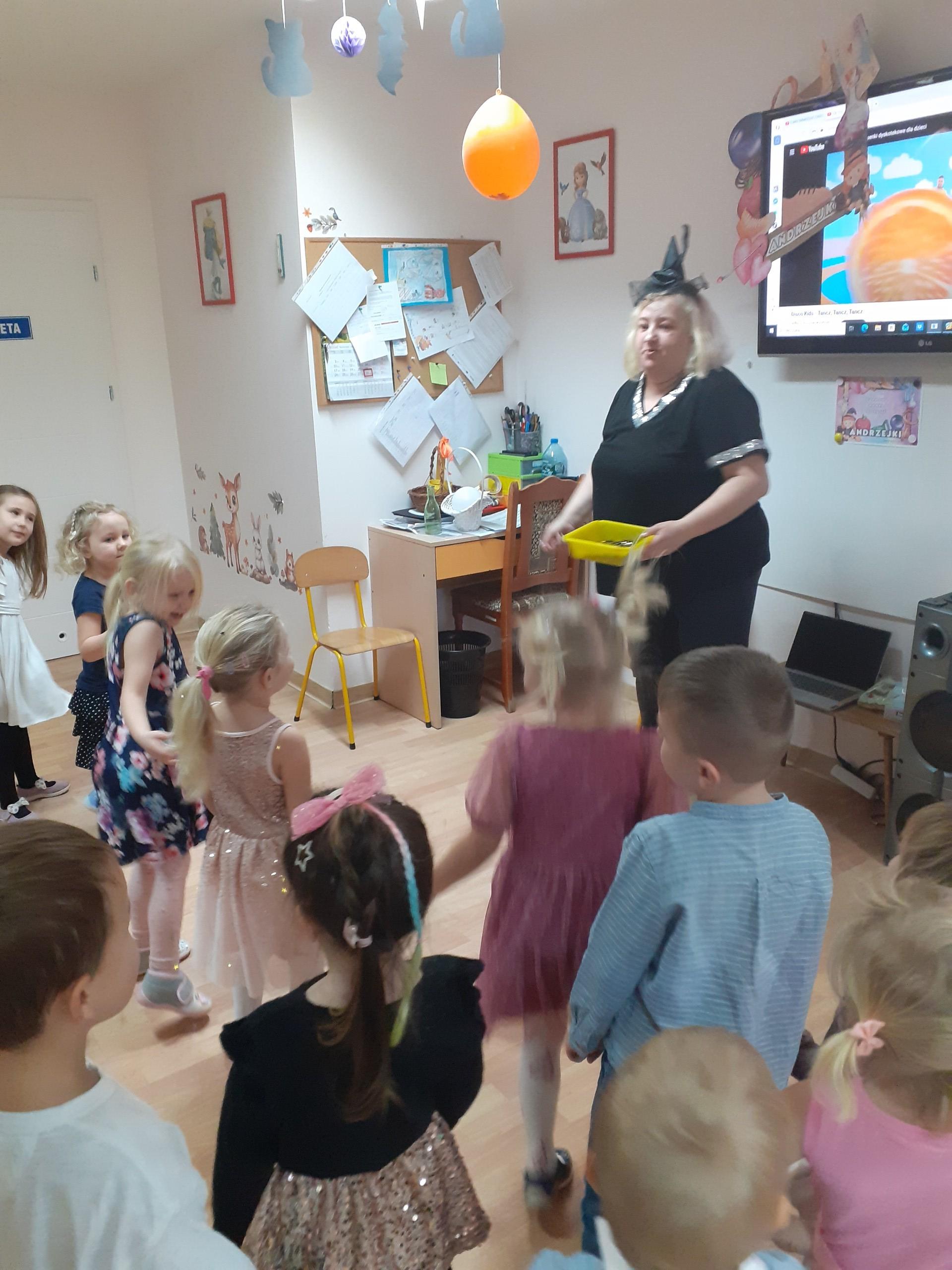 Dzisiaj do przedszkola przybyły dzieci w pięknych, imprezowych strojach. Na przedszkolaki czekała zabawa oraz wróżby andrzejkowe. Kolorowa, magiczna kula zaprosiła dzieci do świata magii i czarów a różczka wskazywała drogę do świetnej zabawy. Były wróżby, tańce, zabawy ruchowe oraz praca plastyczna - magiczny kot. Wielkim zainteresowaniem cieszyła się wróżba z lanego wosku.
