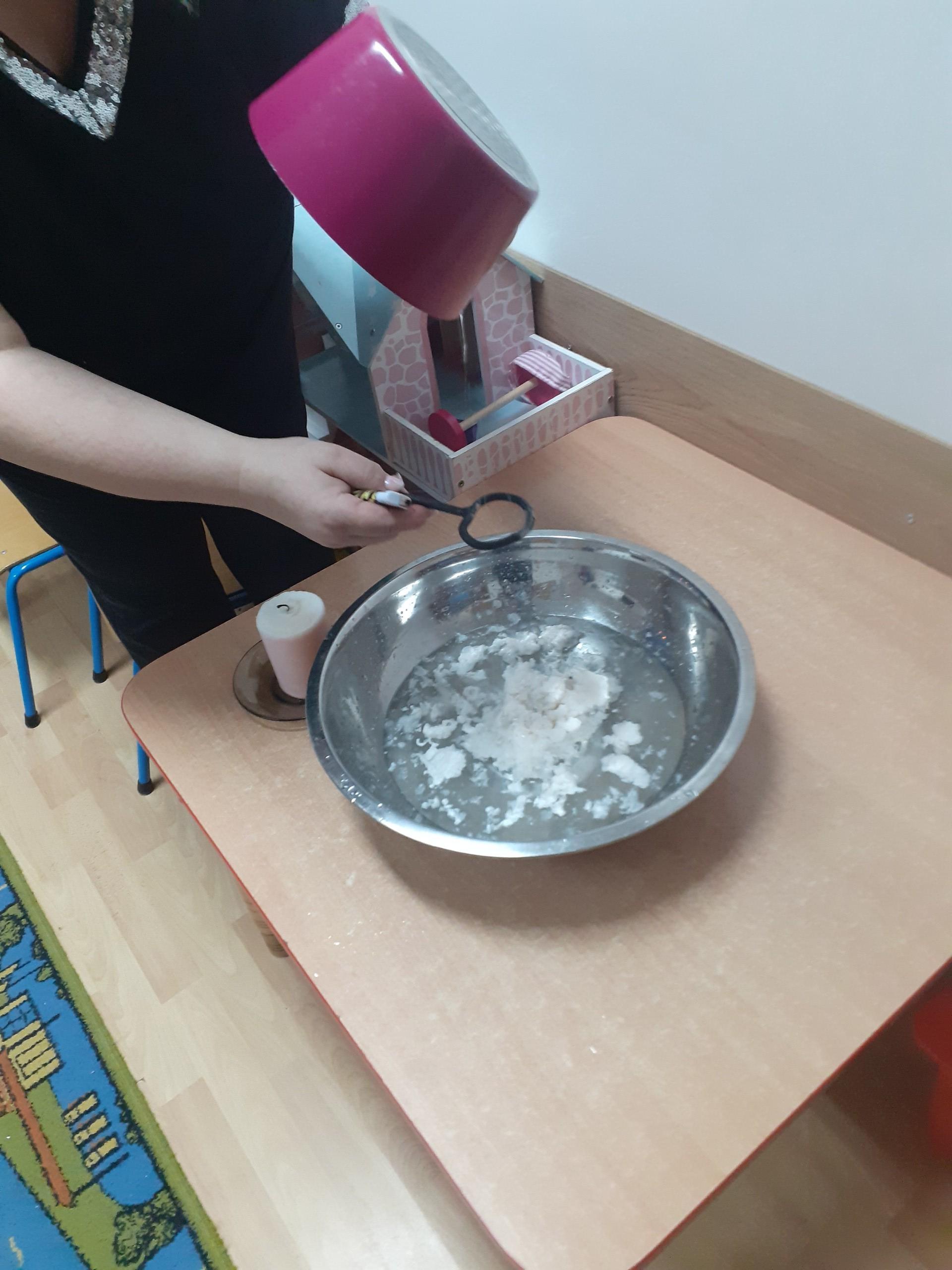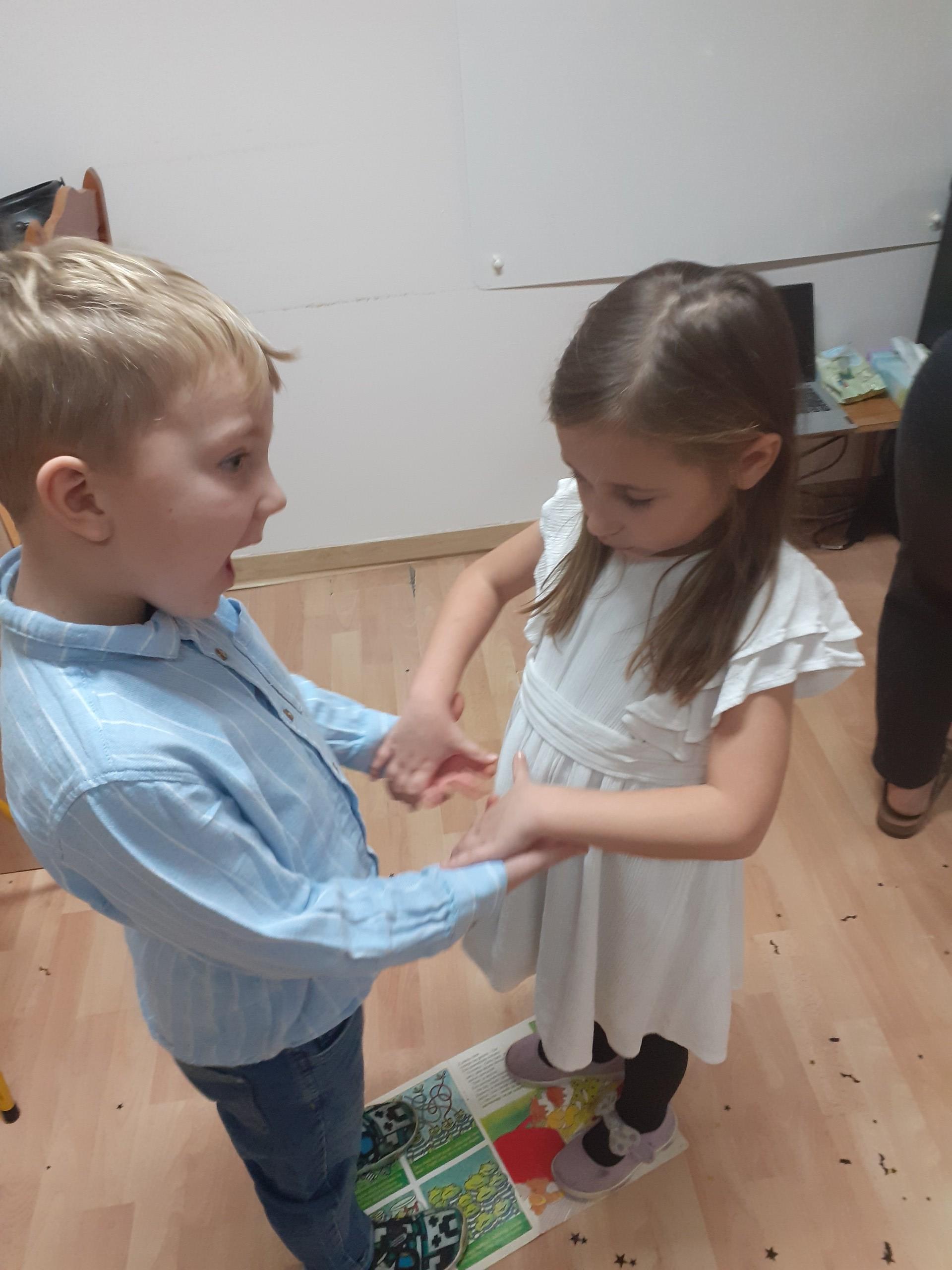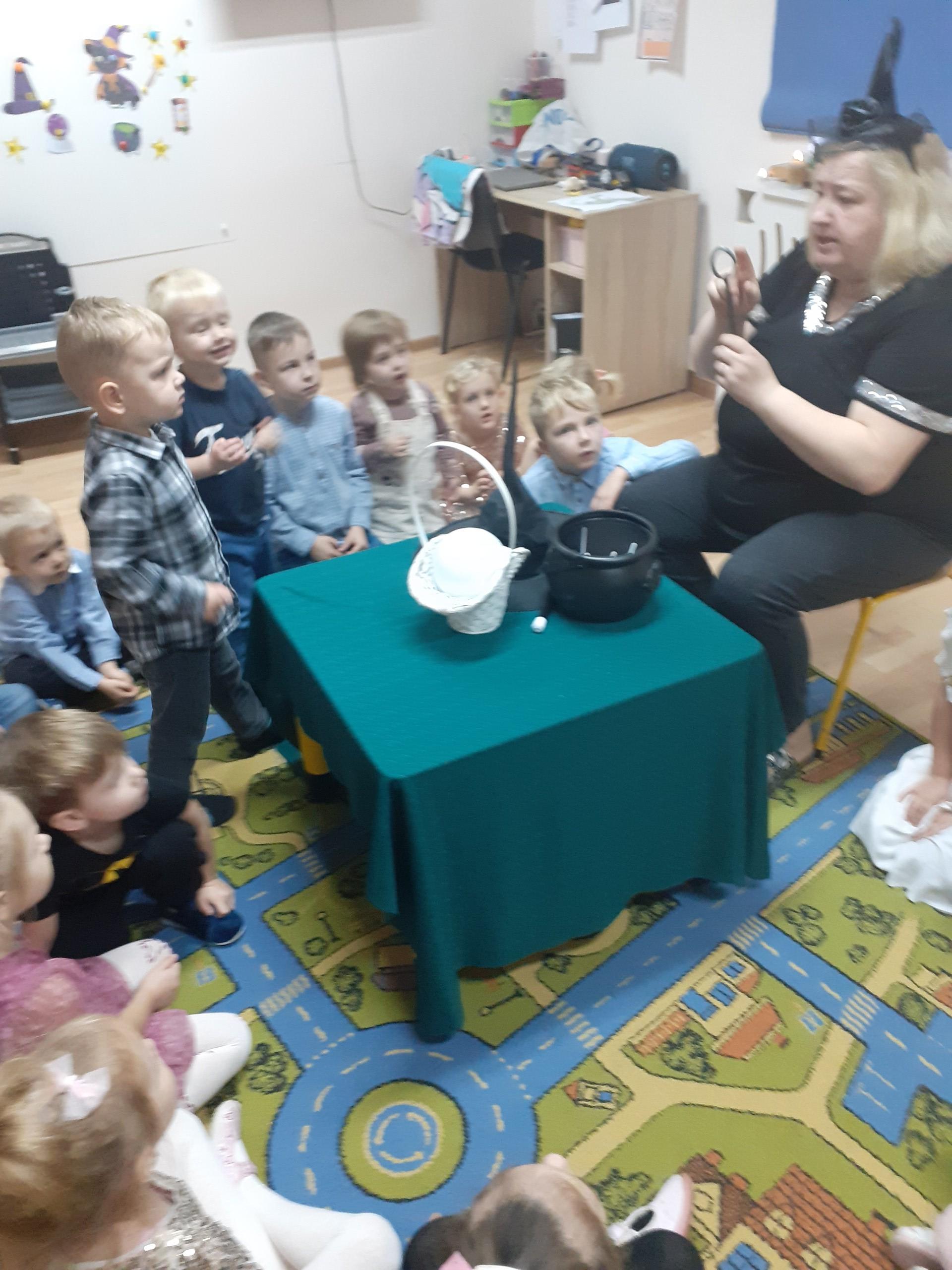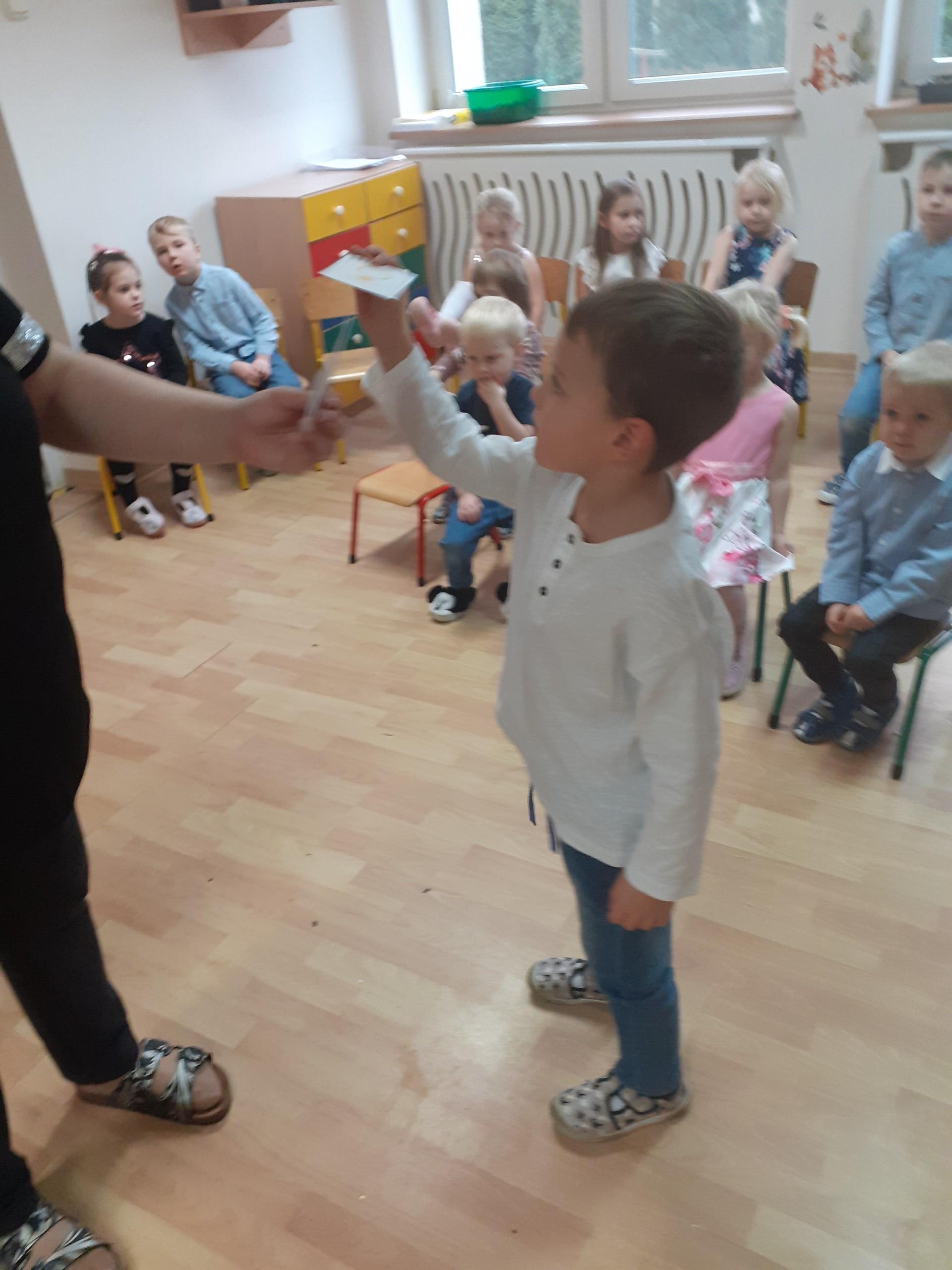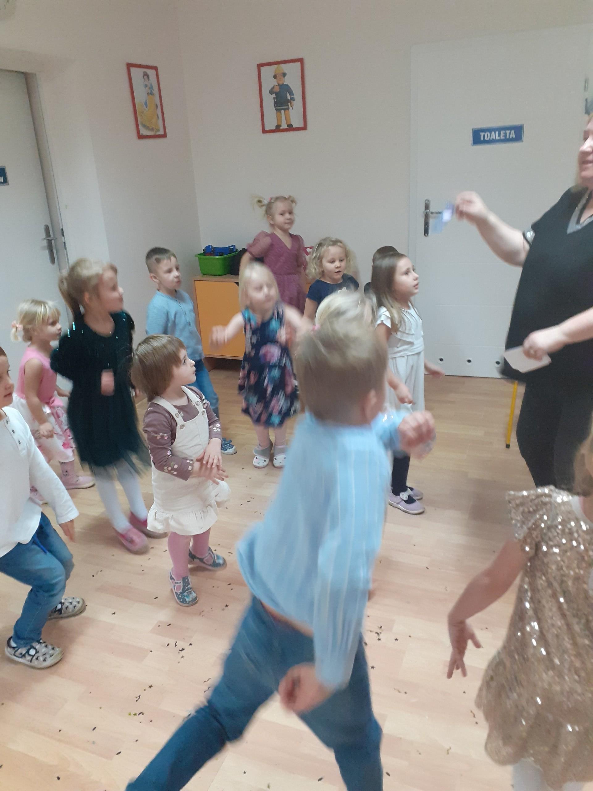 Dzisiaj do przedszkola przybyły dzieci w pięknych, imprezowych strojach. Na przedszkolaki czekała zabawa oraz wróżby andrzejkowe. Kolorowa, magiczna kula zaprosiła dzieci do świata magii i czarów a różczka wskazywała drogę do świetnej zabawy. Były wróżby, tańce, zabawy ruchowe oraz praca plastyczna - magiczny kot. Wielkim zainteresowaniem cieszyła się wróżba z lanego wosku.