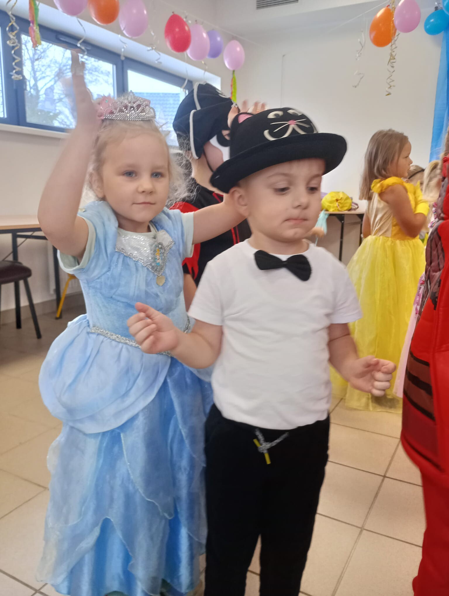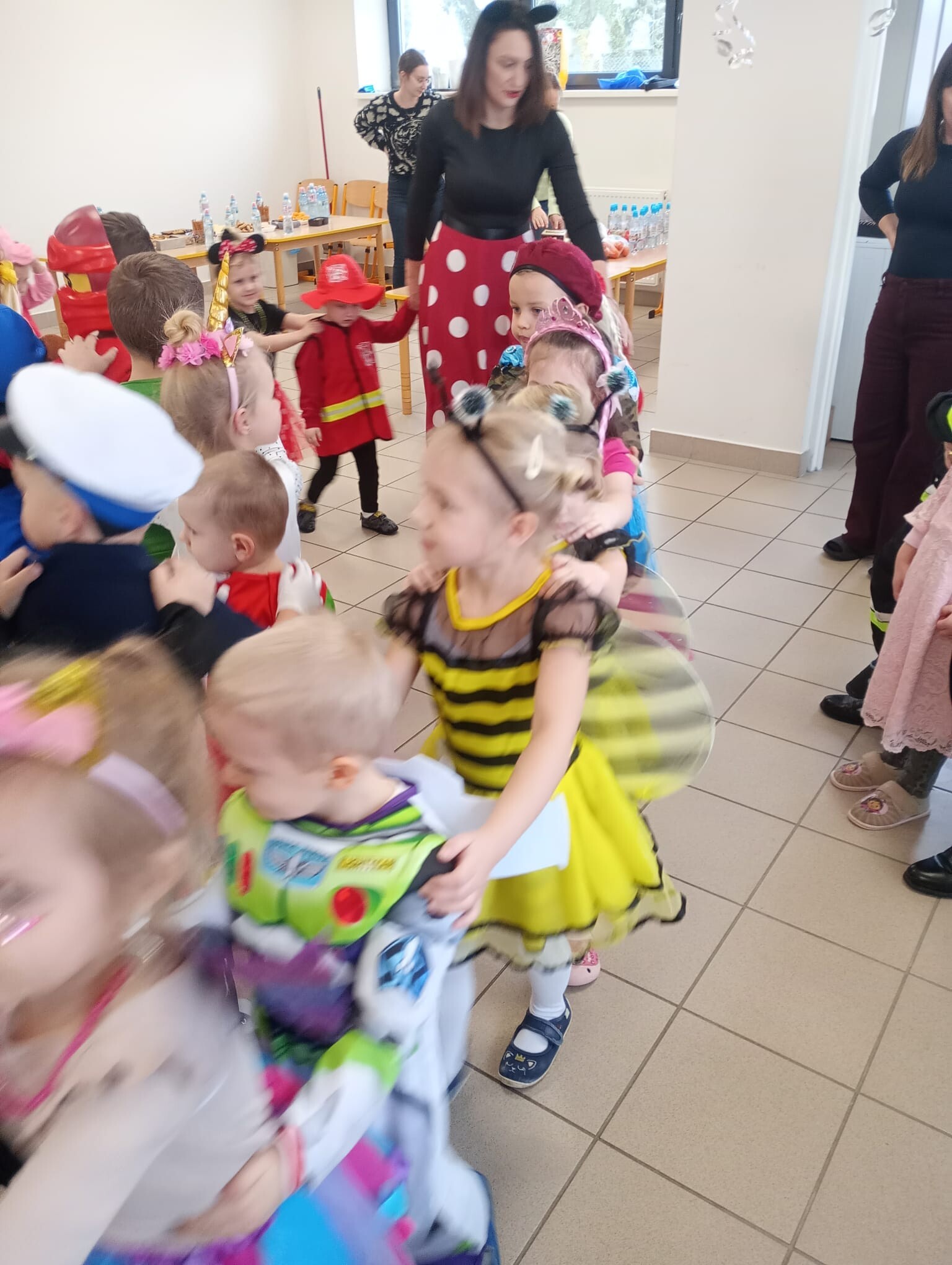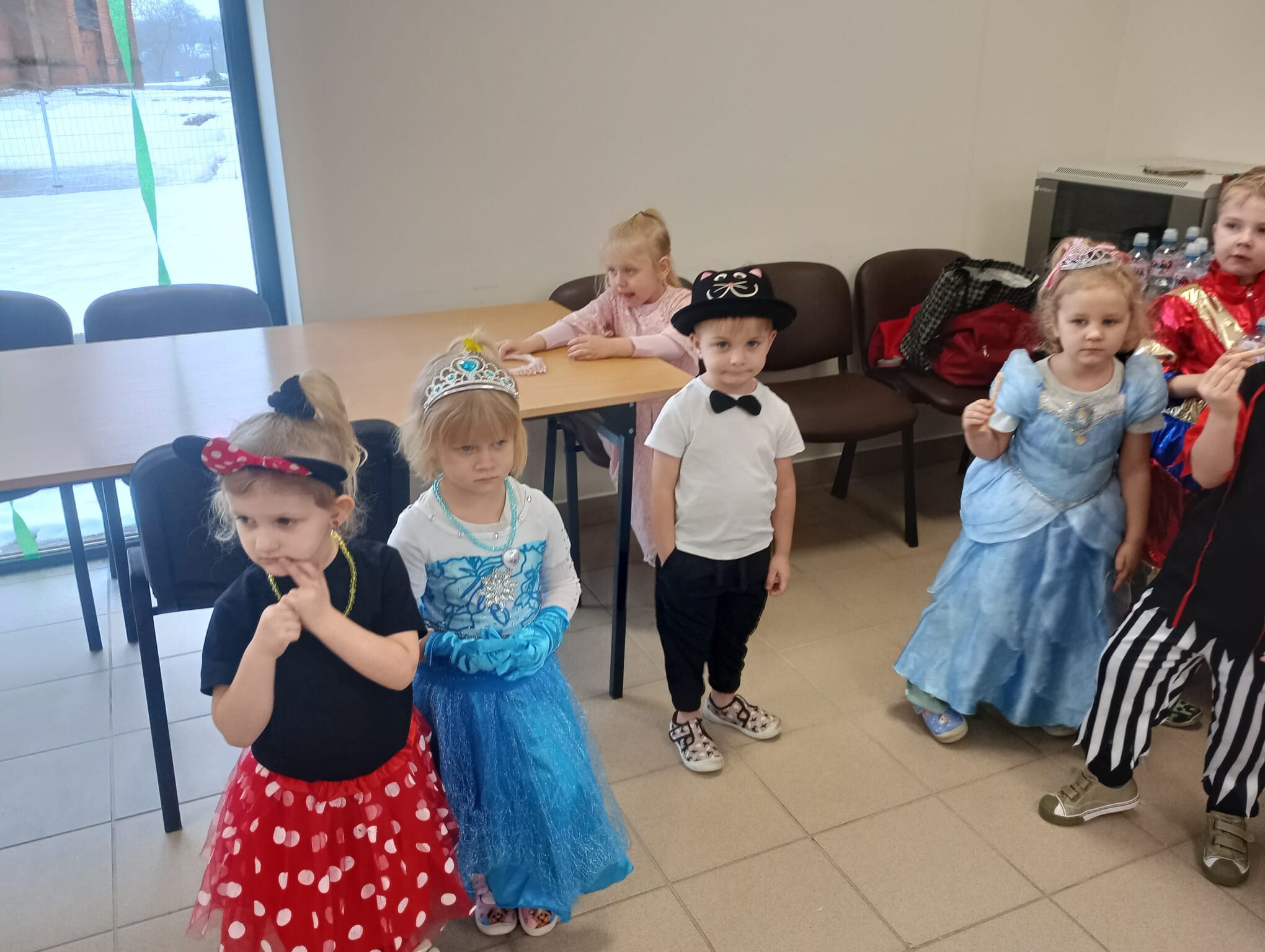 Dzisiaj przedszkolaki z przedszkola w Garczegorzu wraz z dziećmi z oddziału w Krępie Kaszubskiej pojechały do oddziału przedszkolnego w Janowicach aby bawić się wspólnie na balu karnawałowym. Dwie bohaterki z bajek tańczyły z dziećmi i prowadziły zabawy taneczne. Po tanecznych harcach dzieci miały możliwość poczęstować się łakociami.