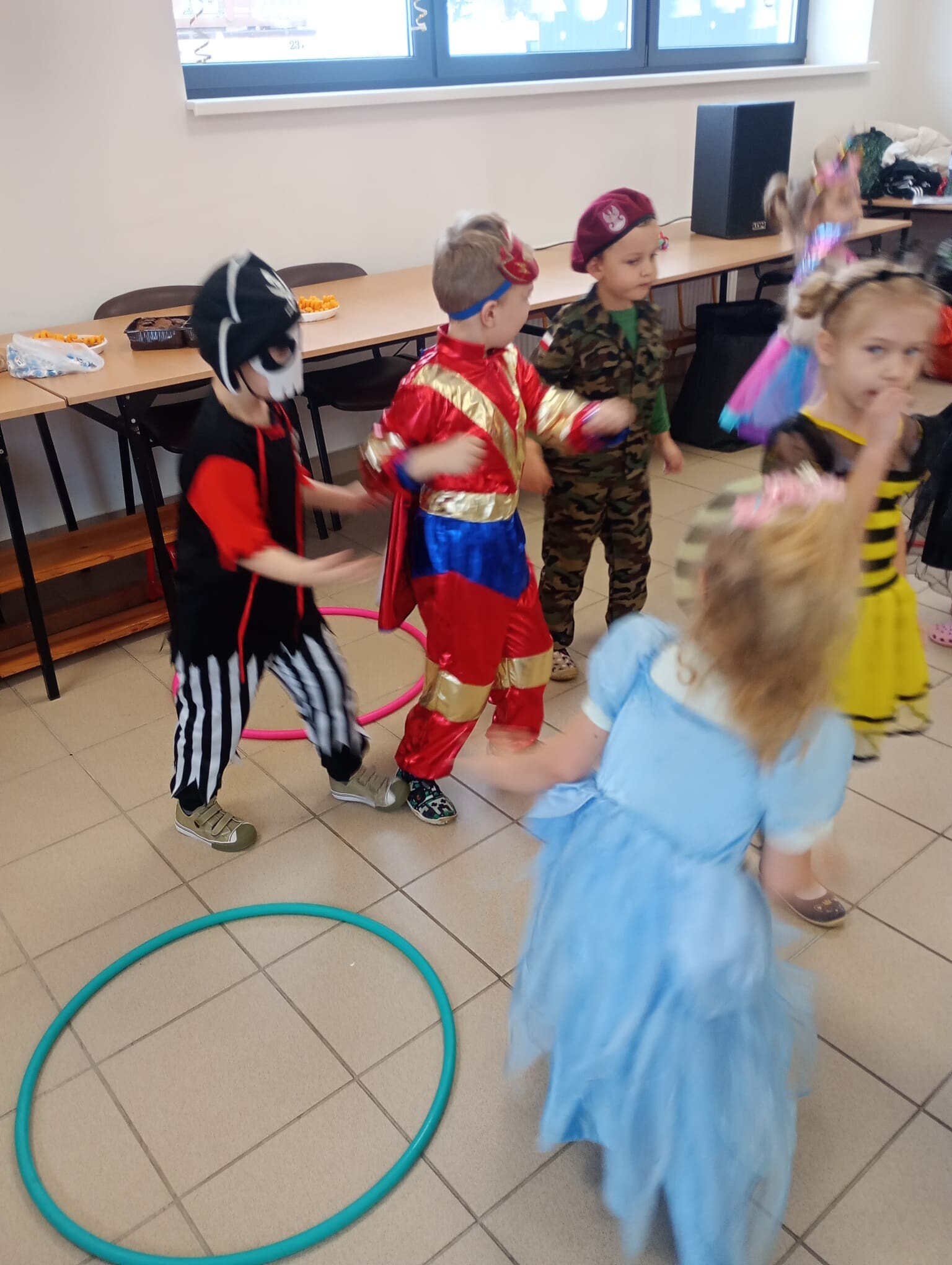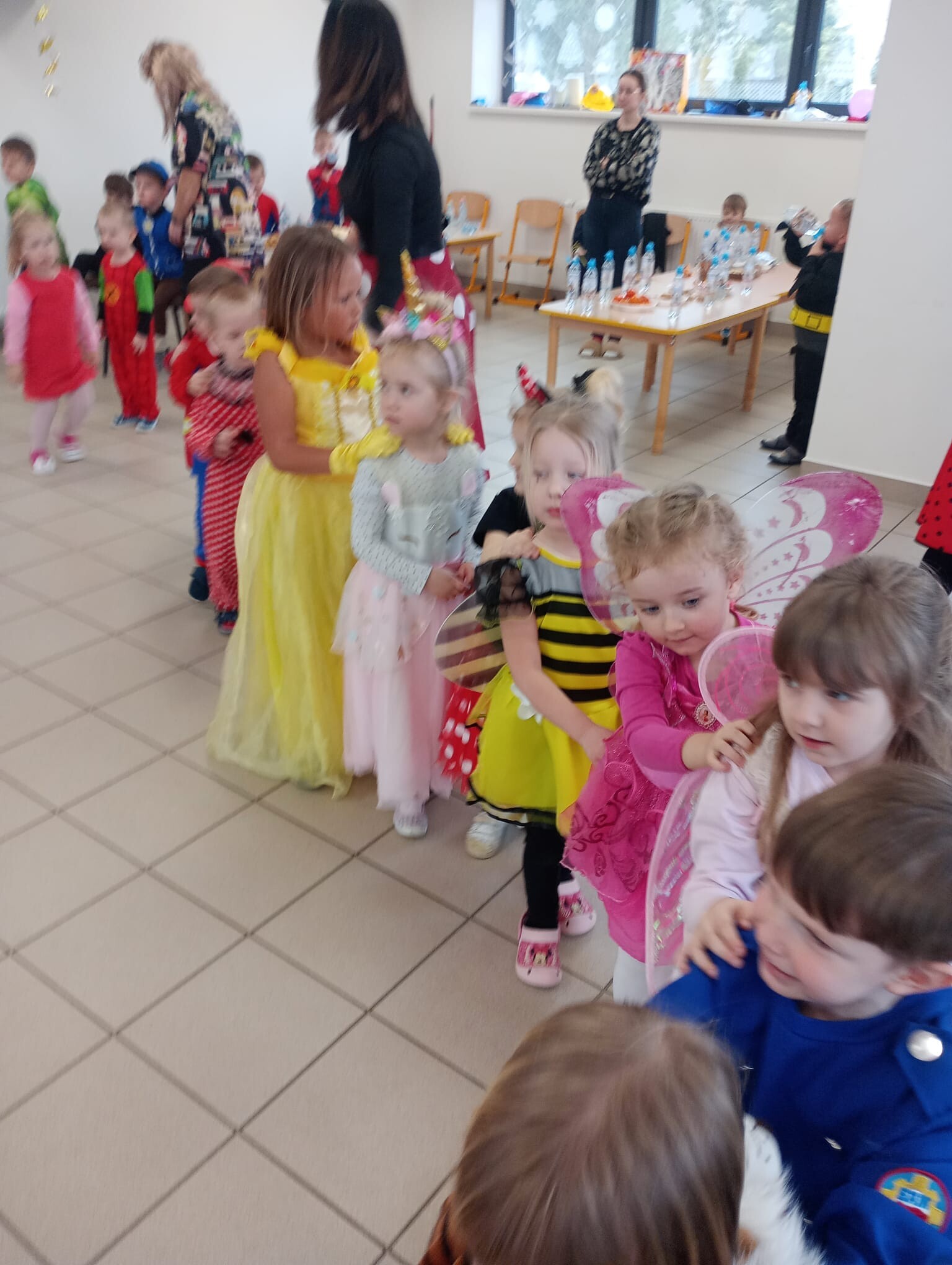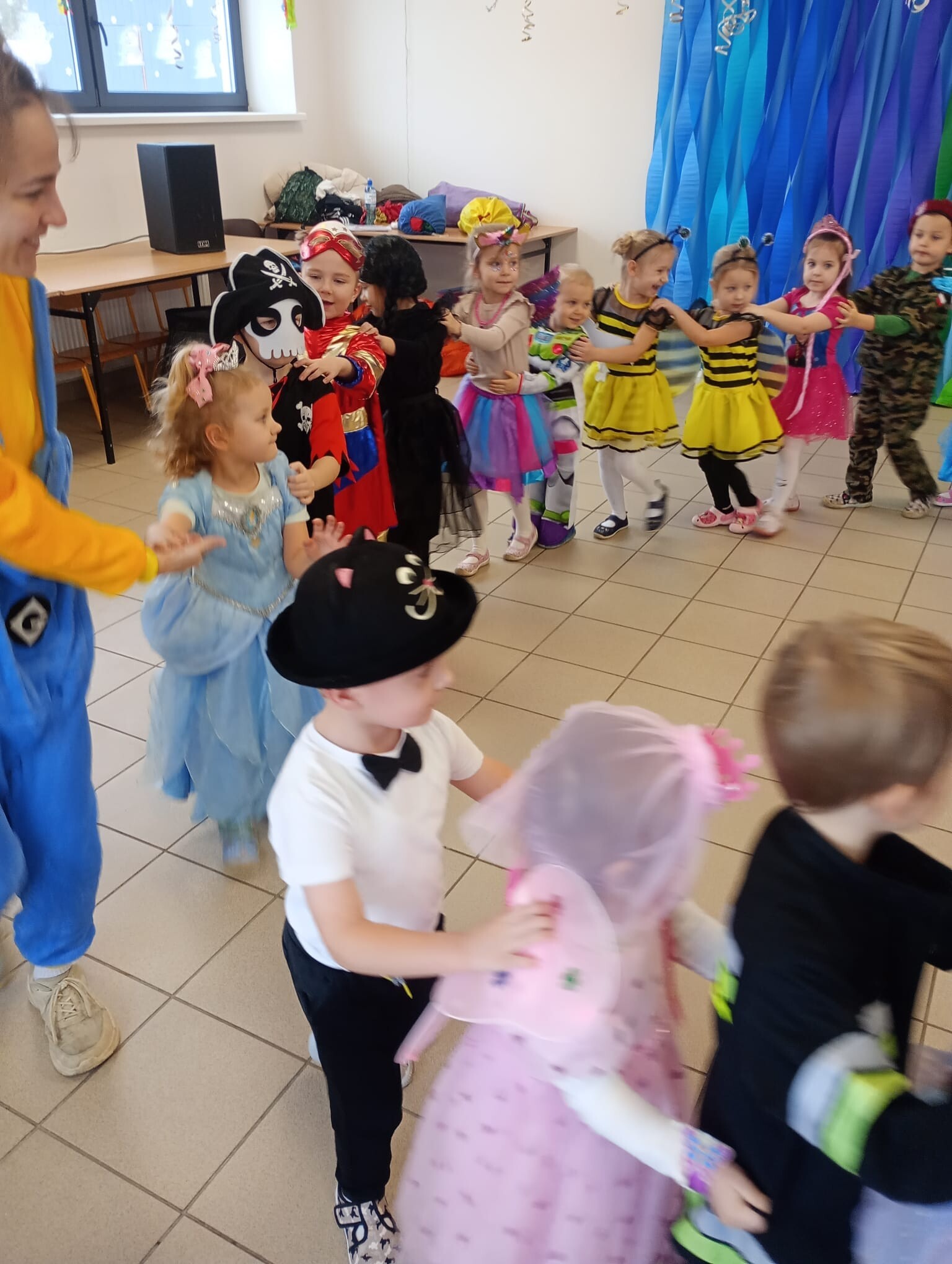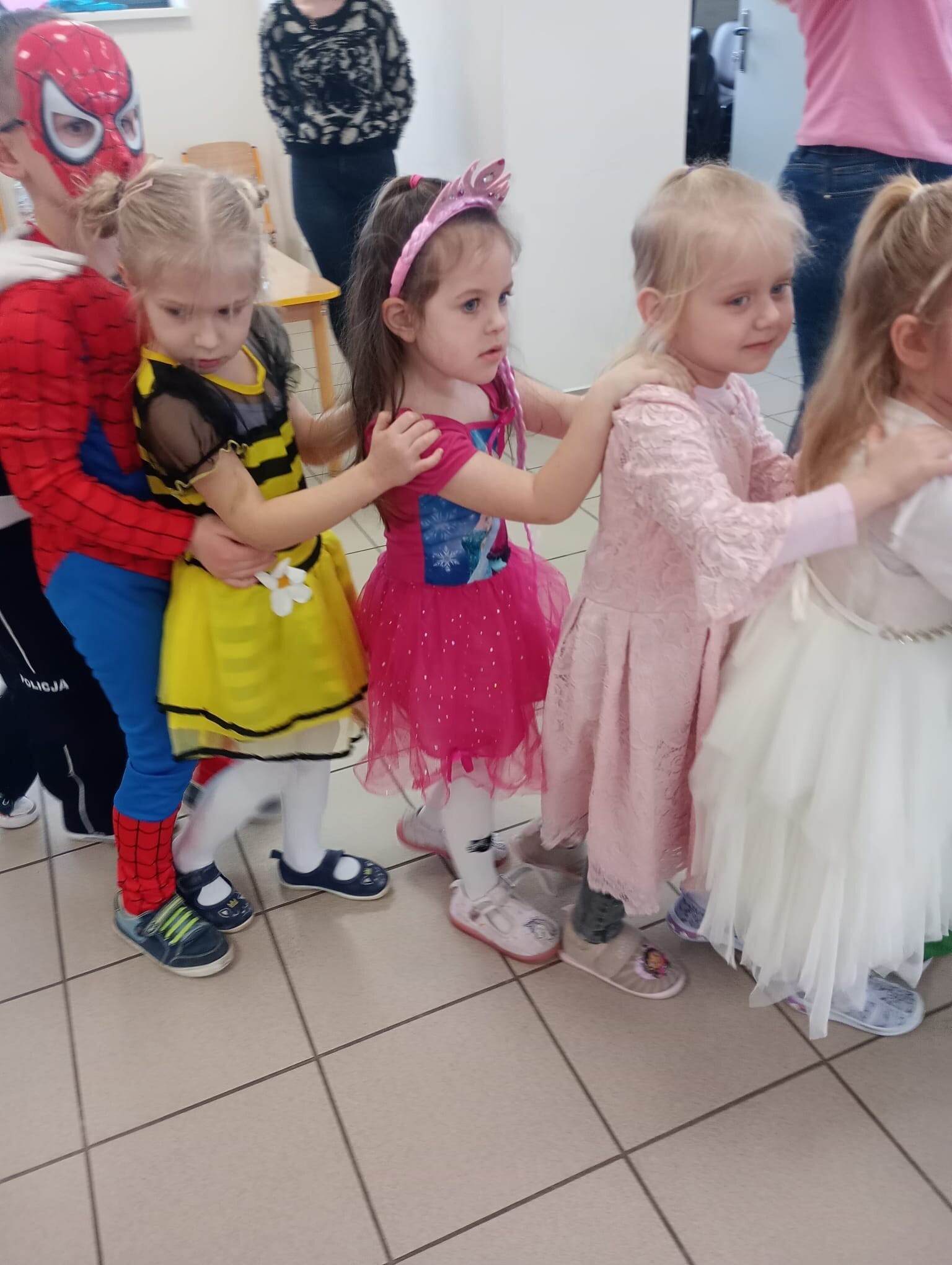 Dzisiaj przedszkolaki z przedszkola w Garczegorzu wraz z dziećmi z oddziału w Krępie Kaszubskiej pojechały do oddziału przedszkolnego w Janowicach aby bawić się wspólnie na balu karnawałowym. Dwie bohaterki z bajek tańczyły z dziećmi i prowadziły zabawy taneczne. Po tanecznych harcach dzieci miały możliwość poczęstować się łakociami.