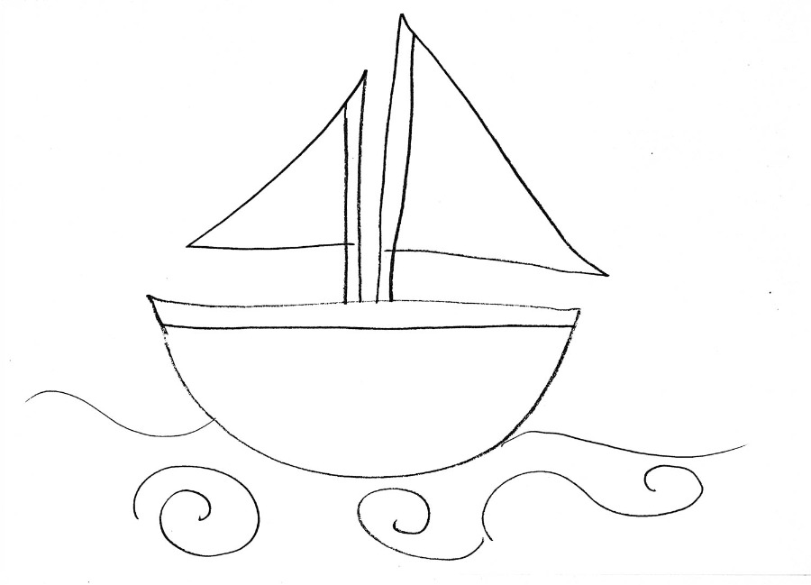 Dla dziecka: kolorowanka przedstawiająca żaglówkę, kredki.